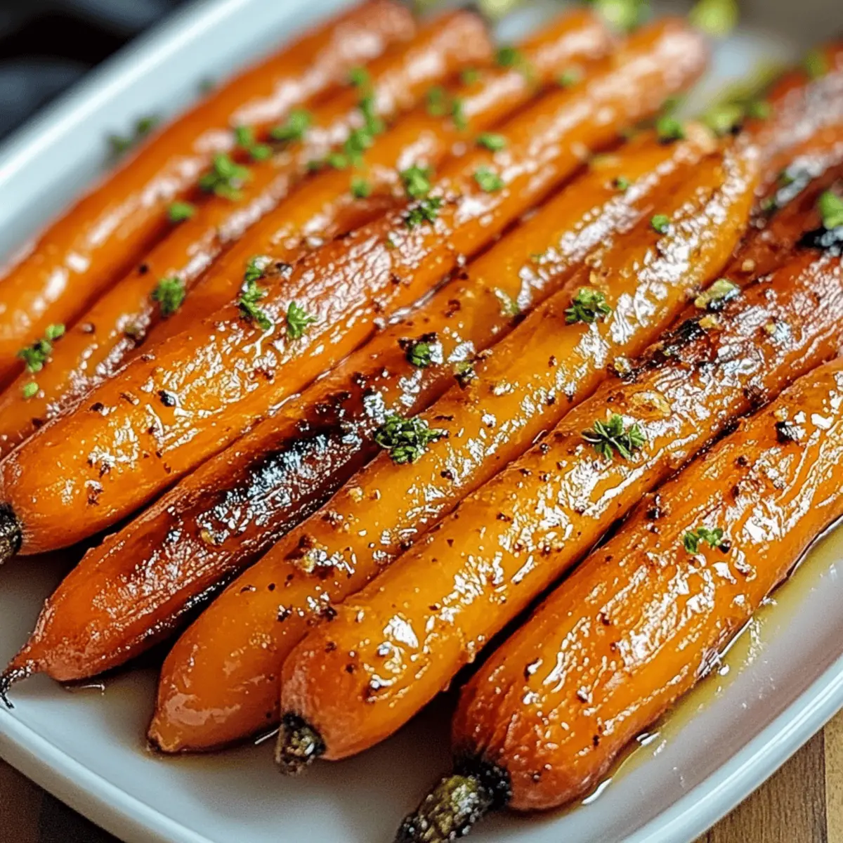 Die Aromen der Herbsternte bringen mich immer in festliche Stimmung, und was könnte da besser passen als eine belebende Portion Ahorn Dijon gerösteter Karotten? Diese einfache Beilage vereint die natürliche Süße der Karotten mit dem würzigen Kick von Dijon-Senf und einer Prise Ahornsirup. Der Röstprozess sorgt dafür, dass die Karotten zart und leicht karamellisiert sind, was sie sowohl für alltägliche Abendessen als auch für besondere Anlässe perfekt macht. Plus, sie sind kein Geheimnis – einfach zuzubereiten und nach Belieben anpassbar! Wer könnte da widerstehen? Lesen Sie weiter, um herauszufinden, wie Sie diese bunten Karotten ganz einfach in Ihrer Küche zum Leben erwecken können! Warum sind diese Karotten so unwiderstehlich? Vielfalt: Diese Ahorn Dijon gerösteten Karotten lassen sich ganz nach Ihren Vorlieben anpassen – fügen Sie Nüsse für einen zusätzlichen Crunch hinzu oder variieren Sie die Kräuter für den perfekten geschmacklichen Akzent. Einfache Zubereitung: Mit nur wenigen Zutaten und einem unkomplizierten Röstprozess werden Sie schnell zum Küchenprofi. Wenig Aufwand, große Wirkung: Das zarte, karamellisierte Ergebnis wird Ihre Gäste begeistern und jeden Teller aufwerten. Gesund und köstlich: Diese Beilage ist nicht nur lecker, sondern auch reich an Vitaminen und Ballaststoffen – eine gesunde Wahl für jede Mahlzeit. Akzente setzen: Egal ob zu gegrilltem Fleisch oder einer vegetarischen Hauptspeise, diese Karotten sind die perfekte Ergänzung. Probieren Sie auch unsere anderen klassischen Beilagen aus, um Ihre Mahlzeiten zu bereichern! Ahorn Dijon geröstete Karotten Zutaten • Die Ahorn Dijon gerösteten Karotten sind nicht nur frisch und würzig, sondern auch ganz einfach zuzubereiten! Für die Karotten Karotten – Sie bringen natürliche Süße und eine lebendige Farbe ins Gericht. Nutzen Sie große, geschälte Karotten, die Sie in Stifte schneiden oder kleine Babykarotten ganz lassen. Olivenöl – Gibt den Karotten eine reiche Textur und hilft beim Rösten. Kann durch Avocadoöl ersetzt werden. Für die Glasur Ahornsirup – Verleiht natürliche Süße; ersetzen Sie ihn durch Honig oder Agavensirup für eine andere Geschmacksrichtung. Dijon-Senf – Bietet eine würzige Note, die den Geschmack vertieft; andere Senfsorten können je nach Vorliebe verwendet werden. Balsamico-Essig – Fügt Säure und Geschmacksvielfalt hinzu. Kann durch Rotweinessig oder Apfelessig ersetzt werden. Knoblauchpulver – Bringt eine herzhafte Note; frischer, gehackter Knoblauch ist ebenfalls eine gute Alternative. Salz – Verstärkt den Geschmack; nach Bedarf anpassen. Schwarzer Pfeffer – Sorgt für eine milde Schärfe und Geschmack. Thymian – Verleiht einen erdigen Geschmack; kann durch Rosmarin oder Oregano ersetzt werden. Rote Pfefferflocken (optional) – Fügen Sie eine Schärfe hinzu; weglassen für einen milden Geschmack. Step-by-Step Instructions for Ahorn Dijon geröstete Karotten Step 1: Ofen vorheizen und Backblech vorbereiten Heizen Sie den Ofen auf 200 °C (400 °F) vor und bereiten Sie ein Backblech vor, indem Sie es mit Backpapier auslegen oder leicht einfetten. Diese Vorbereitung sorgt dafür, dass die Ahorn Dijon gerösteten Karotten gleichmäßig rösten und nicht ankleben. Achten Sie darauf, dass der Ofen die richtige Temperatur erreicht, bevor Sie die Karotten hineinlegen. Step 2: Karotten vorbereiten Schälen Sie die Karotten und schneiden Sie große Karotten in gleichmäßige Stifte. Wenn Sie kleine Babykarotten verwenden, können Sie diese ganz lassen. Ein gleichmäßiges Schneiden sorgt dafür, dass alle Karotten im gleichen Tempo garen und perfekt zart werden, während sie im Ofen rösten. Step 3: Glasur zubereiten In einer großen Schüssel vermengen Sie Olivenöl, Ahornsirup, Dijon-Senf, Balsamico-Essig, Knoblauchpulver, Salz, schwarzen Pfeffer, Thymian und optional rote Pfefferflocken. Mischen Sie die Zutaten gründlich, bis sie gut kombiniert sind. Diese aromatische Glasur bringt eine harmonische Süße und Würze zu den Ahorn Dijon gerösteten Karotten. Step 4: Karotten mit Glasur vermengen Geben Sie die vorbereiteten Karotten in die Schüssel mit der Glasur und werfen Sie sie vorsichtig um, bis sie gleichmäßig bedeckt sind. Achten Sie darauf, dass jede Karotte gut mit der Glasur beschichtet ist, um die besten Aromen zu erreichen. Diese Vorarbeit ist entscheidend für den köstlichen Geschmack des fertigen Gerichts. Step 5: Karotten auf dem Backblech verteilen Legen Sie die glasierten Karotten gleichmäßig auf das vorbereitete Backblech in einer einzigen Schicht aus. Vermeiden Sie es, die Karotten zu überlappen, damit sie optimal bräunen und karamellisieren können. Diese Anordnung fördert die richtige Röstung und sorgt für eine appetitliche Präsentation. Step 6: Rösten im Ofen Backen Sie die Karotten im vorgeheizten Ofen für etwa 20-25 Minuten. Wenden Sie die Karotten nach der ersten Hälfte der Garzeit, um ein gleichmäßiges Rösten zu gewährleisten. Sie wissen, dass sie fertig sind, wenn sie zart und am Rand leicht karamellisiert sind. Für eine intensivere goldene Farbe können Sie sie weitere 5 Minuten im Ofen lassen. Step 7: Warm servieren Nehmen Sie die Ahorn Dijon gerösteten Karotten aus dem Ofen und lassen Sie sie kurz abkühlen, bevor Sie sie servieren. Sie können die Karotten warm präsentieren, garniert mit frischer Petersilie, zerbröckeltem Käse oder gerösteten Nüssen, um den Geschmack und die Textur zu verfeinern. Jedes Gericht wird so zu einem unvergesslichen Erlebnis. Vorbereitungen für die Ahorn Dijon gerösteten Karotten Die Ahorn Dijon gerösteten Karotten sind ideal für die Vorbereitung im Voraus, was Ihnen wertvolle Zeit an hektischen Wochentagen spart! Sie können die Karotten bis zu 24 Stunden vorher schälen und schneiden, indem Sie sie in Stifte schneiden oder als ganze Babykarotten belassen. Bereiten Sie die Glasur ebenfalls im Voraus zu und bewahren Sie sie in einem luftdichten