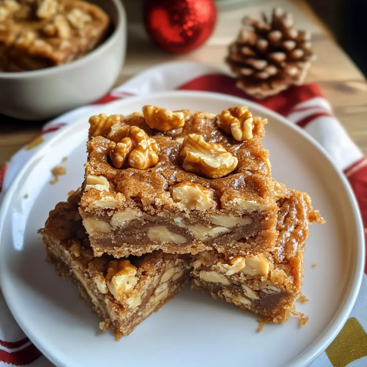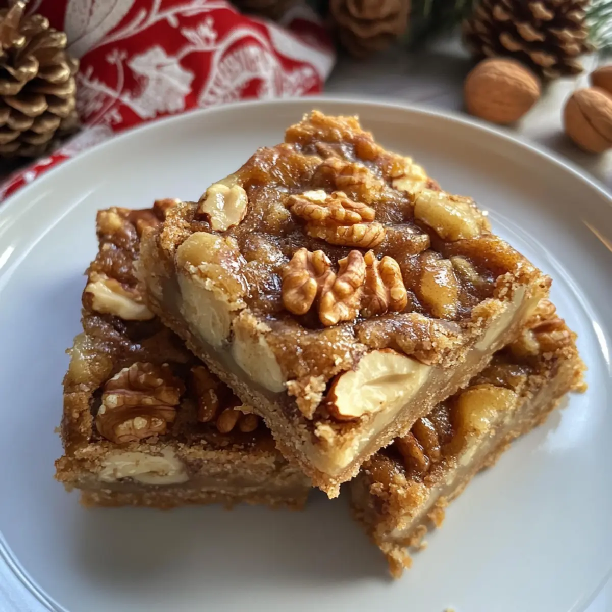 Ich stehe in meiner Küche, der süße Duft von frisch gebackenem Gebäck erfüllt den Raum und lässt mir das Wasser im Mund zusammenlaufen. Diese Ahorn-Walnuss-Riegel sind nicht nur ein festliches Highlight, sondern auch die perfekte Lösung für all jene, die auf der Suche nach einem köstlichen Dessert sind, das schnell zuzubereiten ist. Mit einer buttrigen Shortbread-Basis und einer cremigen Füllung aus echtem Ahornsirup, die mit knusprigen Walnüssen verfeinert wird, bieten diese Riegel ein unwiderstehliches Geschmackserlebnis. Egal, ob für einen festlichen Anlass oder einfach nur, um sich selbst zu verwöhnen – diese Riegel vereinigen den perfekten Crunch mit einer zarten Süße. Bist du bereit, deinen Gästen etwas ganz Besonderes zu bieten? Lass uns gemeinsam in die Welt der Ahorn-Walnuss-Riegel eintauchen! Warum sind Ahorn-Walnuss-Riegel so beliebt? Einzigartiger Geschmack: Diese Riegel kombinieren die Süße des echten Ahornsirups mit der herzhaften Note von knackigen Walnüssen, was sie zu einer wahren Gaumenfreude macht. Einfach zu machen: Du benötigst nur wenige Grundzutaten, um dieses köstliche Dessert zu kreieren. Perfekt für Kochanfänger oder die beschäftigte Küchenchefin! Allzeit-Favorit: Ob zu Feiertagen oder einfach für den Kaffeeklatsch – diese Riegel sind der Hit bei jeder Gelegenheit. Vielfältige Variationen: Experimentiere mit anderen Nüssen oder füge Schokoladenstückchen hinzu für einen zusätzlichen Genuss. Langanhaltender Geschmack: Gut verpackt, bleiben sie bis zu einer Woche frisch – somit hast du immer eine süße Überraschung auf Lager! Egal für welchen Anlass, diese leckeren Ahorn-Walnuss-Riegel werden deine Gäste beeindrucken und sie nach mehr verlangen! Ahorn-Walnuss-Riegel Zutaten • Hier sind alle Zutaten, die du benötigst, um die leckeren Ahorn-Walnuss-Riegel zuzubereiten. Für den Boden Butter – sorgt für die nötige Reichhaltigkeit und Feuchtigkeit im Boden. Substitution: Margarine kann für eine milchfreie Variante verwendet werden. Weißer Zucker – süßt den Boden und fördert das Bräunen. Kann durch Kokosblütenzucker ersetzt werden für einen anderen Geschmack. Weizenmehl – bildet die Struktur des Bodens und ist entscheidend für die flakige Textur. Für eine glutenfreie Version kann ein glutenfreies Mehl verwendet werden. Zimt – fügt dem Boden Wärme und Tiefe hinzu. Alternativ kann Muskatnuss verwendet werden für ein anderes Aroma. Salz – balanciert die Süße und hebt die Aromen hervor. Essentiell für den Gesamteindruck – nicht weglassen. Für die Füllung Große Eier – binden die Füllung und sorgen für Feuchtigkeit. Kein Ersatz für Eier in diesem Rezept verfügbar. Brauner Zucker – sorgt für eine tiefere Süße und mehr Feuchtigkeit in der Füllung. Kann durch zusätzlichen weißen Zucker ersetzt werden, wird aber geschmacklich anders sein. Ahornsirup – der Star der Füllung, sorgt für den charakteristischen Geschmack und Süße. Für intensiveren Geschmack kann Ahornextrakt verwendet werden, wenn Sirup nicht verfügbar ist. Schlagsahne – sorgt für Cremigkeit und eine glatte Textur in der Füllung. Kann durch Kokoscreme für eine milchfreie Variante ersetzt werden. Vanilleextrakt – verbessert das gesamte Geschmacksprofil. Reine Vanille für die besten Ergebnisse verwenden; Imitation ist akzeptabel. Zusätzliches Mehl (für die Füllung) – hilft, die Füllung zu verdicken. Pfeilwurzstärke kann für eine glutenfreie Option verwendet werden. Walnüsse (grob gehackt) – fügen der Füllung Crunch und Geschmack hinzu. Pekannüsse oder Mandeln können ebenfalls verwendet werden, aber der Geschmack variiert. Viel Spaß beim Backen deiner köstlichen Ahorn-Walnuss-Riegel! Step-by-Step Instructions für Ahorn-Walnuss-Riegel Step 1: Boden vorbereiten Heize den Ofen auf 180 °C vor und fette eine 20×20 cm große Backform leicht ein oder lege sie mit Backpapier aus. In einer Rührschüssel vermenge die Butter mit dem Zucker für etwa 2 Minuten, bis die Mischung cremig und glatt ist. Füge dann das Weizenmehl, Zimt, Salz und Muskatnuss hinzu und rühre weiter, bis die Masse krümelig ist. Drücke die Mischung gleichmäßig in die vorbereitete Backform und backe sie 15-20 Minuten, bis sie leicht goldbraun ist. Lass den Boden dann abkühlen. Step 2: Füllung zubereiten In einer sauberen Schüssel schlage die Eier mit dem braunen Zucker, Ahornsirup, Schlagsahne, Vanilleextrakt, dem zusätzlichen Mehl und einer Prise Salz für etwa 2 Minuten auf, bis die Mischung leicht und schaumig ist. Verteile die grob gehackten Walnüsse gleichmäßig über den abgekühlten Boden. Gieße die Füllung vorsichtig über die Walnüsse, sodass alles gut verteilt ist. Step 3: Riegel backen Backe die Ahorn-Walnuss-Riegel im vorgeheizten Ofen für etwa 30-35 Minuten, bis die Füllung fest ist und die Oberfläche leicht golden aussieht. Die Riegel sind fertig, wenn die Füllung nicht mehr wackelt, wenn du die Form leicht schüttelst. Nach dem Backen lasse die Riegel vollständig in der Form abkühlen, damit sie sich leichter schneiden lassen. Step 4: Riegel schneiden und servieren Sobald die Riegel abgekühlt sind, hebe sie vorsichtig aus der Backform und schneide sie in 16 gleichmäßige Stücke. Für sauberere Schnitte kannst du die Riegel vor dem Schneiden etwa 30 Minuten im Kühlschrank kühlen. Serviere die köstlichen Ahorn-Walnuss-Riegel als Dessert oder mit einer Tasse Kaffee. Lagerungstipps für Ahorn-Walnuss-Riegel Zimmertemperatur: Lege die Riegel in ein luftdicht verschlossenes Behältnis, um sie bis zu 3 Tage frisch zu halten. Kühlschrank: Bewahre die Riegel im Kühlschrank auf, um ihre Haltbarkeit auf bis zu 1 Woche zu verlängern. Achte darauf, sie gut zu verpacken, um Austrocknen zu verhindern. Gefrierschrank: Du kannst die Ahorn-Walnuss-Riegel bis zu 3 Monate einfrieren. Wickele sie einzeln in Frischhaltefolie und lagere sie in einem Gefrierbeutel. Auftauen: Um die Riegel wieder aufzutauen, lasse si