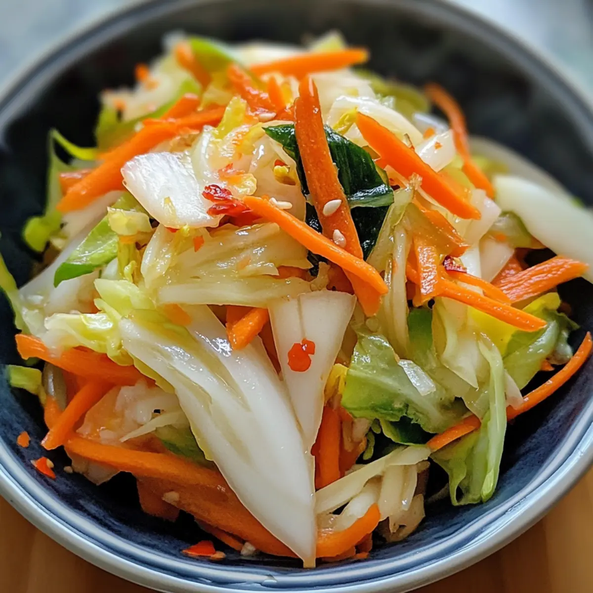 Als ich zum ersten Mal bei einem japanischen Essen saß und die knackigen, leuchtenden Scheiben von Asazuke probierte, war ich sofort verzaubert. Diese schnelle und einfache Zubereitung von eingelegtem Kohl, kombiniert mit knackigem Gemüse wie Karotten und frischem Ingwer, ist nicht nur ein köstlicher Farbtupfer auf dem Teller, sondern auch eine perfekte Ergänzung zu jeder Mahlzeit. Mit minimalem Aufwand und maximalem Geschmack wird dieses Asazuke (japanischer eingelegter Kohl) schnell zum Star Ihrer Küchentafel. Es ist nicht nur eine gesunde Beilage, die Ihre Teller aufpeppt, sondern auch ideal für all jene, die eine schnelle Lösung gegen das Fast-Food-Dilemma suchen. Seien Sie bereit, Ihre Geschmacksknospen auf eine Reise nach Japan zu schicken – möchten Sie mehr erfahren? Warum sollten Sie Asazuke lieben? Einfachheit: Die Zubereitung von Asazuke ist kinderleicht und erfordert nur wenige Schritte, ideal für Kochanfänger und Profis gleichermaßen. Frische Aromen: Die Kombination aus knackigem Gemüse und zartem Ingwer sorgt für ein Geschmackserlebnis, das Ihre Sinne verführt und Ihre Gerichte aufpeppt. Vielseitigkeit: Sie können mit verschiedenen Gemüsesorten experimentieren, von Daikon bis Gurke, um Ihren persönlichen Geschmack zu treffen. Gesundheitsbewusst: Asazuke ist eine kalorienarme Beilage voller Vitamine und Ballaststoffe, perfekt für eine ausgewogene Ernährung. Schnell zubereitet: In nur wenigen Stunden haben Sie eine köstliche, umami-reiche Beilage, die am besten zu Reis und gegrilltem Fleisch passt, so dass Sie Ihre Fast-Food-Gewohnheiten schnell ablegen können. Asazuke Zutaten • Zutaten für das Pickle Napa-Kohl – Der Hauptbestandteil sorgt für eine knackige Textur und ist die perfekte Basis für Ihr Asazuke. Karotten – Sie verleihen Süße und Farbe; jede Sorte eignet sich, auch wenn Sie kein Julienne-Stil haben. Frühlingszwiebeln – Sie fügen einen milden Zwiebelgeschmack hinzu; können durch Schnittlauch ersetzt werden, wenn eine sanftere Note gewünscht ist. Ingwer – Er bringt einen würzigen Kick; frischer Ingwer wird empfohlen, aber auch gemahlener Ingwer kann im Notfall verwendet werden. Salz – Unentbehrlich zum Entziehen von Feuchtigkeit und zur Geschmacksverstärkung; setzen Sie auf Meersalz oder koscheres Salz, um Tischsalz zu vermeiden. Getrocknete Chilischoten – Sie bringen Schärfe ins Spiel; optional, je nach Vorliebe; rote Paprikaflocken sind ein passender Ersatz. Kombu – Er fügt umami Geschmack hinzu; kann weggelassen werden, wenn er nicht erhältlich ist, führt jedoch zu milderen Pickles. Schritt-für-Schritt-Anleitung für Asazuke (japanischer eingelegter Kohl) Schritt 1: Gemüse vorbereiten Schneiden Sie den Napa-Kohl in 5 cm große Stücke, damit er gut pickelt. Julienne die Karotten in feine Streifen, hacken Sie die Frühlingszwiebeln und hacken Sie den Ingwer fein. Diese frischen Zutaten bilden die Basis für Ihr Asazuke und sorgen für einen ansprechenden Look und Geschmack. Schritt 2: Zutaten kombinieren Geben Sie die vorbereiteten Gemüseteile – Kohl, Karotten, Frühlingszwiebeln und Ingwer – in einen großen Ziplock-Beutel. Fügen Sie das Salz, die getrockneten Chilischoten und das Kombu hinzu. Verschließen Sie den Beutel und schütteln Sie ihn gut, sodass alle Zutaten gleichmäßig verteilt sind, um die Aromen zu intensivieren. Schritt 3: Versiegeln und beschweren Um den Pickelprozess zu starten, entfernen Sie die überschüssige Luft aus dem Beutel, während Sie ihn schließend. Legen Sie den Beutel in eine flache Schale und beschweren Sie ihn mit einem anderen Teller oder schweren Gegenständen, damit der Druck die Flüssigkeiten aus dem Gemüse herauszieht und es gut einlegt. Schritt 4: Einlegen lassen Lassen Sie den Beutel bei Zimmertemperatur für mindestens 2 bis 4 Stunden stehen, oder stellen Sie ihn über Nacht in den Kühlschrank. Achten Sie darauf, dass der Kohl durchscheinend wird und eine leichte Flüssigkeit im Beutel entsteht, was ein Zeichen dafür ist, dass das Asazuke fertig wird. Schritt 5: Abtropfen und servieren Nach der Einlegzeit nehmen Sie den Beutel aus dem Kühlschrank und lassen Sie die überschüssige Lake abtropfen. Transferieren Sie das Asazuke in einen luftdichten Behälter. Diese köstliche und knackige Beilage ist am besten innerhalb von 2 bis 3 Tagen zu genießen, aber sie kann auch länger fermentiert werden, je nach Ihrem Geschmack. Was serviert man zu Asazuke (japanischer eingelegter Kohl)? Erleben Sie eine kulinarische Reise mit dieser knackigen Beilage, die nicht nur frisch und gesund ist, sondern jede Mahlzeit aufwertet. Gedämpfter Reis: Perfekt, um die salzigen Aromen des Asazuke zu balancieren, während er dessen knackige Textur ergänzt. Grilltes Fleisch: Besonders Hühnchen oder Schwein passen ideal dazu, da der Salzigkeit des Asazuke eine köstliche, rauchige Note verliehen wird. Diese Kombination bringt die Geschmäcker wunderbar zur Geltung. Miso-Suppe: Die umami-reiche Brühe verstärkt das Geschmackserlebnis und bietet einen warmen Kontrast zu den frischen, knackigen Pickeln. Tempura-Gemüse: Die knusprige Textur der frittierten Gemüsesorten harmoniert hervorragend mit dem knackigen Asazuke und fügt eine zusätzliche Dimension hinzu. Nudelsalat: Ein frischer Salat aus Soba-Nudeln mit einer leichten Sojasauce und frischem Gemüse ergänzt die Aromen des Asazuke ideal. Ein kühles Bier: Besonders ein mildes Lager oder ein erfrischendes Ale bietet einen perfekten Kontrast zur pikanten Schärfe des Asazuke und rundet Ihr Geschmackserlebnis ab. Frische Ananas: Die Süße der Ananas sorgt für einen fruchtigen Kontrast und bringt eine tropische Note, die das Gericht hervorragend ergänzt. Sesam-Dressing-Salat: Ein knackiger Salat mit Sesam-Dressing bietet eine perfekte Ergänzung in Textur und Geschmack zu dem Erfrischenden des Asazuke. Expertentipps für Asazuke Gemüse vorbereiten: Achten Sie darauf, das Gemüse gleichmäßig zu schneiden, um ein gleichmä