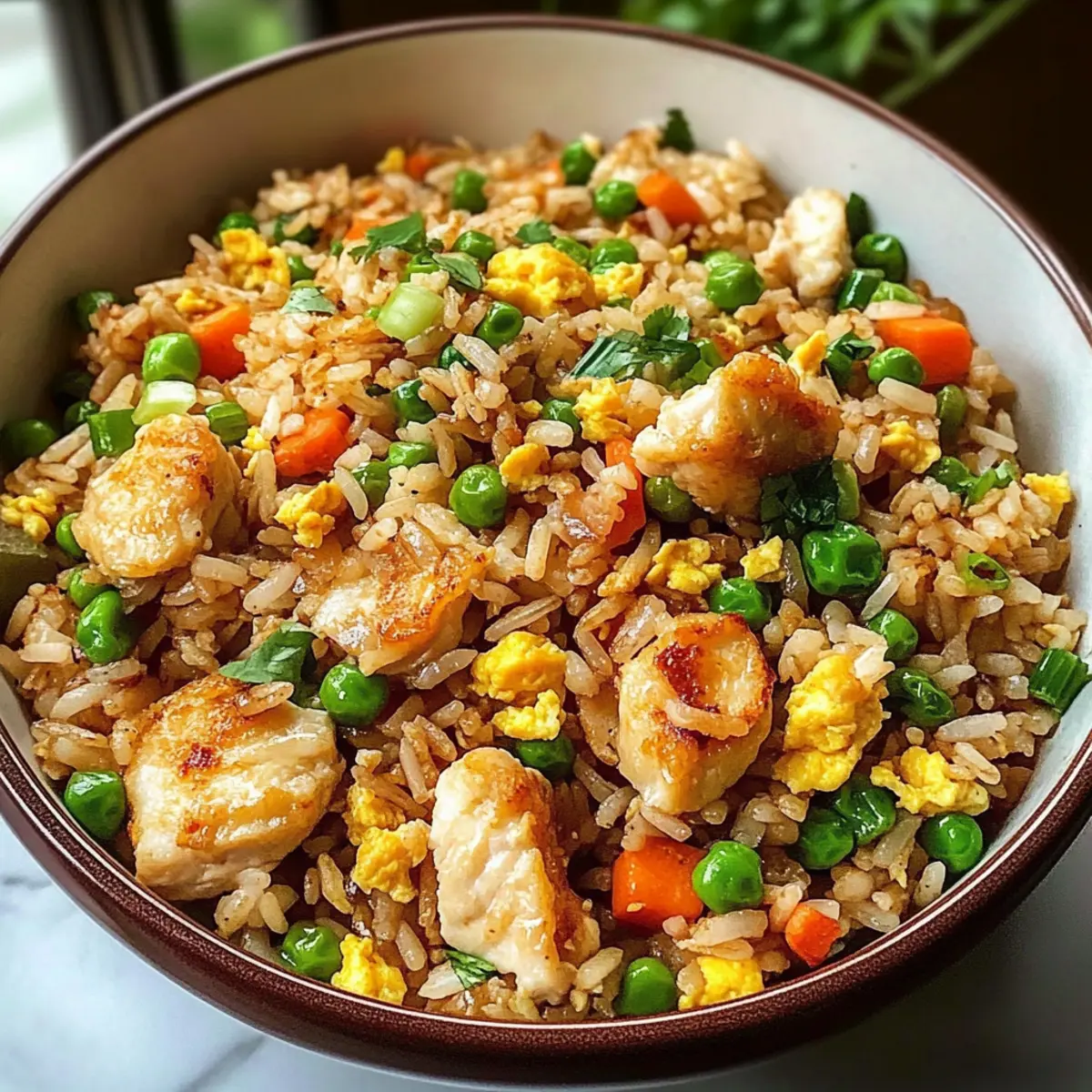 Die Küche duftet verführerisch nach gebratenem Reis, während ich das Pfannenwunder zubereite, das jeden Abend zu einem Abenteuer macht – Bang Bang gebratener Reis! Dieses schnelle, einpfannige Gericht vereint süße, würzige und herzhafte Aromen in einem bunten Mix aus knusprigem Reis, zartem Hähnchen und fluffigen Rühreiern. Perfekt für hektische Wochentage, lässt es sich in weniger als 30 Minuten zubereiten und ist nicht nur ein echter Hingucker, sondern auch kinderfreundlich und anpassbar. Die köstliche Bang Bang Sauce bringt eine cremige Note, die diesen Reis zu einem absoluten Favoriten macht. Neugierig, wie du mit ein paar einfachen Zutaten ein geschmackliches Festmahl zaubern kannst? Warum wird dir dieses Rezept gefallen? Einfachheit: Die Zubereitung ist unkompliziert und benötigt nur grundlegende Kochkenntnisse. Schnelle Zubereitung: In weniger als 30 Minuten auf dem Tisch; ideal für hektische Wochentage. Anpassungsfähigkeit: Du kannst Zutaten nach Geschmack oder Verfügbarkeit ersetzen, sei es Hähnchen, Garnelen oder Tofu. Voller Geschmack: Die Kombination aus cremiger Bang Bang Sauce und perfekten Bissen macht jede Gabel unwiderstehlich. Familienfreundlich: Kinder lieben die bunten Zutaten und den milden, aber würzigen Geschmack. Für noch mehr Rezeptideen kannst du dir auch unseren Artikel über schnelle Reisgerichte ansehen! Bang Bang gebratener Reis Zutaten Für den Reis • Gekochter Reis – Am besten eignet sich Tag-älter Reis für die perfekte Konsistenz; frischer Reis könnte matschig werden. Für das Hauptgericht • Hähnchenbrust – Diced für schnelles Garen und bietet eine großartige Proteinquelle; alternativ kannst du Garnelen oder Tofu verwenden. • Eier – Sie sorgen für eine weiche Textur und zusätzlichen Protein; vor dem Kochen verquirlt. • Karotten – Fügen süße Knackigkeit hinzu; klein gewürfelt für schnelleres Garen. • Erbsen – Brauchen keine lange Garzeit und bringen Farbe ins Gericht; gefrorene Erbsen können direkt verwendet werden. • Knoblauch – Minze ihn für ein besseres Aroma, das die Aromen verstärkt. • Frühlingszwiebeln – Für Garnitur und bringt zusätzliches Aroma, während du sie in der Pfanne kurz anbrätst. Für die Würze • Sojasauce – Salziger Umami-Kick für einen wunderbaren Geschmack; verwende Tamari für eine glutenfreie Option. • Bang Bang Sauce – Eine köstliche Mischung aus Mayonnaise, süßer Chilisauce, Sriracha und Reisessig, die Cremigkeit und Würze bietet. • Öl – Ein neutrales Öl wie Rapsöl ist ideal zum Braten der Zutaten. Entdecke die aufregenden Aromen von Bang Bang gebratenem Reis und bring ein wenig Abwechslung in deinen Küchenalltag! Schritt-für-Schritt-Anleitung für Bang Bang gebratenen Reis Step 1: Bang Bang Sauce zubereiten Vermische in einer kleinen Schüssel Mayonnaise, süße Chilisauce, Sriracha und Reisessig mit einem Schneebesen. Rühre alles gut durch, bis die Sauce eine gleichmäßige, cremige Konsistenz hat. Diese köstliche Bang Bang Sauce bringt deinem gebratenen Reis eine einzigartige Note; stelle sie beiseite, während du den Rest des Gerichts zubereitest. Step 2: Hähnchen braten Erhitze 1 Esslöffel Rapsöl in einer großen Pfanne oder einem Wok bei mittlerer bis hoher Hitze. Füge die gewürfelte Hähnchenbrust hinzu und brate sie 5–6 Minuten lang, bis sie goldbraun und durchgegart ist. Achte darauf, das Hähnchen gelegentlich zu wenden, damit es gleichmäßig brät. Nimm das Hähnchen anschließend aus der Pfanne und lege es beiseite. Step 3: Eier scrambled In derselben Pfanne gib etwas mehr Öl hinzu, falls nötig, und lasse es heiß werden. Gieße die verquirlten Eier hinein und lasse sie für 1–2 Minuten stocken, bis sie gerade fest sind. Rühre die Eier sanft um, um gleichmäßige Rühreier zu erhalten. Sobald sie gestockt sind, nimm die Eier aus der Pfanne und stelle sie zu dem Hähnchen. Step 4: Gemüse anbraten Füge erneut einen Esslöffel Öl in die Pfanne hinzu und gib die klein gewürfelten Karotten und den gehackten Knoblauch hinein. Brate diese Mischung 2–3 Minuten lang an, bis die Karotten leicht weich werden und der Knoblauch aromatisch duftet. Füge nach einer Minute die gefrorenen Erbsen hinzu und brate sie kurz mit, bis sie aufgetaut und warm sind. Step 5: Reis anbraten Erhöhe die Hitze auf hoch und gib den kalten, gekochten Reis in die Pfanne. Brate den Reis für 3–4 Minuten unter ständigem Wenden, bis er anfängt knusprig zu werden und leicht angeröstet ist. Diese Technik sorgt dafür, dass der Reis richtig gut wird und den köstlichen Geschmack aufnimmt, während er die Aromen des Gemüses und der Gewürze aufnimmt. Step 6: Hähnchen und Eier zurückgeben Füge das zuvor gebratene Hähnchen und die Rühreier zurück in die Pfanne. Gieße die Sojasauce darüber und vermische alles gut, sodass sich die Aromen verbinden. Brate alles gemeinsam für etwa 1–2 Minuten weiter, bis alles gleichmäßig erhitzt ist und gut durchgemischt ist. Step 7: Bang Bang Sauce einmischen Gib die vorbereitete Bang Bang Sauce über die Mischung in der Pfanne. Rühre alles gut um, damit die Sauce gleichmäßig verteilt wird und alles schön überzogen ist. Lasse den gebratenen Reis für weitere 1-2 Minuten in der Pfanne, damit die Aromen sich voll entfalten können und die Sauce gut aufgenommen wird. Step 8: Anrichten und servieren Nimm den Bang Bang gebratenen Reis aus der Pfanne und richte ihn auf Tellern an. Garniere das Gericht großzügig mit gehackten Frühlingszwiebeln für zusätzlichen Geschmack und Farbe. Serviere den Reis sofort, damit er frisch und warm genossen werden kann. Was passt gut zu Bang Bang gebratenem Reis? Der perfekte Bang Bang gebratene Reis wird noch besser, wenn du ihn mit den richtigen Beilagen kombinierst. Lass uns gemeinsam eine köstliche Mahlzeit kreieren! Cremiger Gurkensalat: Erfrischend und knackig, dieser Salat bietet eine kühlende Balance zu den würzigen Aromen des Reises. Perfekt, um die Hitze