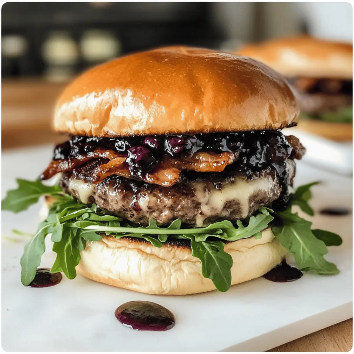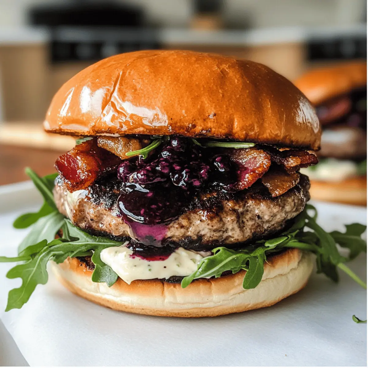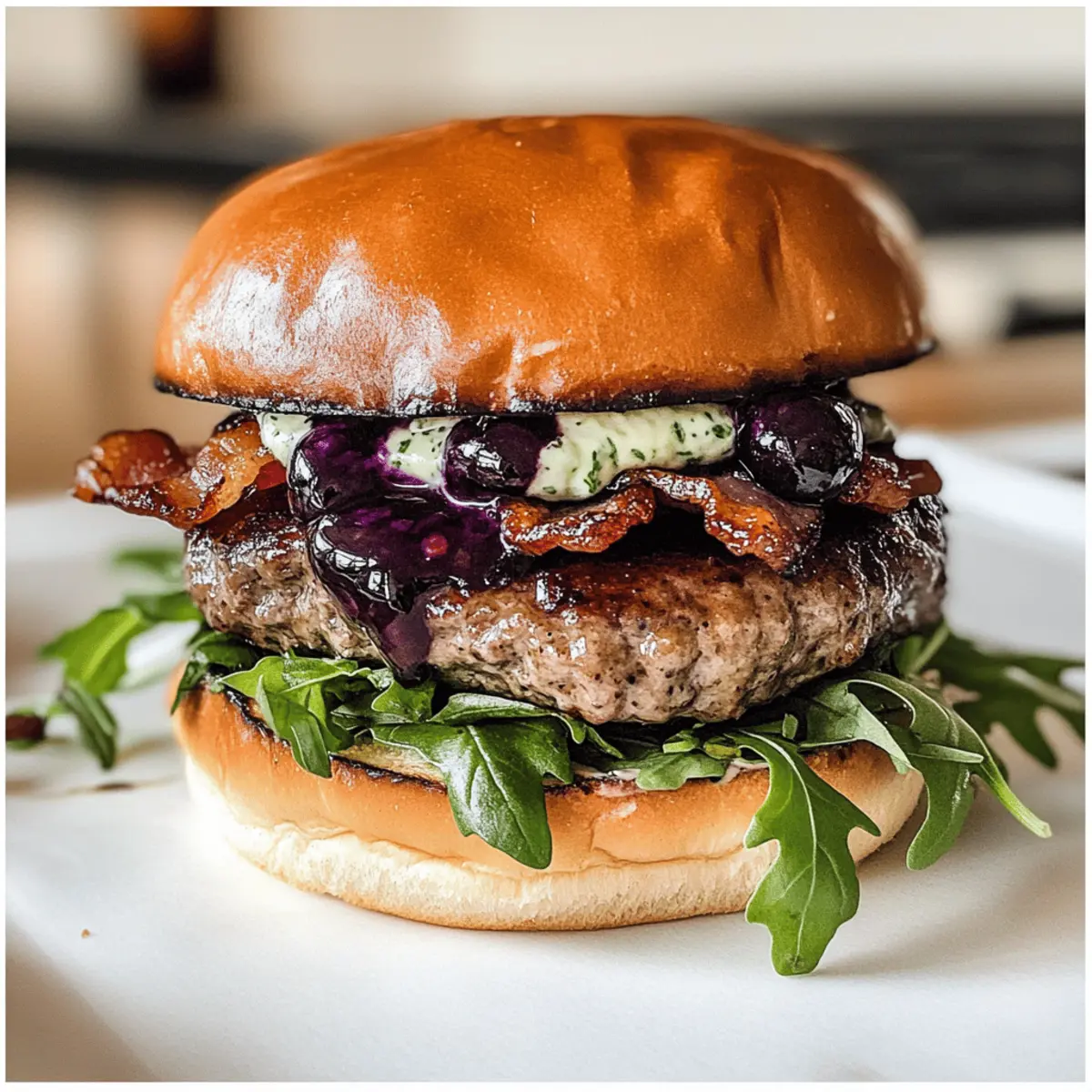 Der Geschmack von Sommer auf dem Grill – das ist der erste Gedanke, der mir kommt, wenn ich an den Blaubeere Basilikum Gourmet Burger denke. Diese außergewöhnliche Kreation kombiniert saftige Burger-Patties, samtigen Havarti-Käse und die knackige Frische von Rucola mit einer verführerischen Blaubeer-Balsamico-Sauce und einem aromatischen Basilikum-Knoblauch-Aioli. Ideal für all jene, die bei ihrem nächsten Grillabend Eindruck hinterlassen möchten, bietet dieses Rezept die perfekte Balance zwischen herzhaft und süß, während es gleichzeitig schnell zubereitet ist und sich hervorragend für gesellige Runden eignet. Bereit, deine Gäste zu beeindrucken? Lass uns gemeinsam dieses Geschmackserlebnis entdecken! Warum ist dieser Burger einzigartig? Einzigartiger Geschmack: Der Blaubeere Basilikum Gourmet Burger vereint fruchtige Süße und herzhafte Aromen, die auf der Zunge tanzen. Einfach zuzubereiten: Die klaren Schritte machen das Grillen zum Kinderspiel, ideal für Grillanfänger und -profis. Vielfältige Variationen: Du kannst leicht Zutaten nach deinem Geschmack anpassen, wie etwa mit verschiedenen Käsesorten oder Brotsorten experimentieren. Perfekte BBQ-Option: Dieser Burger ist der Star jeder Grillparty und zieht alle Blicke auf sich – ein echter Hingucker! Frische Zutaten: Die Kombination aus frischen Kräutern und fruchtigen Noten hebt deinen Burger auf ein neues Level und begeistert jeden Gaumen. Für mehr Inspiration, schau dir auch unser Rezept für Basilikum-Knoblauch-Aioli an, um deine Grillkünste noch weiter zu verfeinern! Blaubeere Basilikum Gourmet Burger Zutaten • Der Blaubeere Basilikum Gourmet Burger ist eine Geschmacksexplosion, die sich perfekt für deine nächste Grillparty eignet! Für die Patties Hochwertige Burger-Patties – Achte darauf, frische, dicke Patties vom Metzger zu verwenden, um den besten Geschmack zu gewährleisten. Meersalz – Verleiht den Patties die nötige Würze. Frisch gemahlener Pfeffer – Für zusätzlichen Geschmack und Aroma. Knoblauchsalz – Rundet das Gewürzprofil ab und intensiviert die Aromen. Zwiebelpulver – Für eine süße und aromatische Note in den Patties. Für die Burger-Basis Brioche-Brötchen – Die weichen und leicht süßen Brötchen sind ideal zum Halten der gesamten Burgerschicht. Frischer Rucola – Die pfeffrige Frische gleicht die süßen Aromen perfekt aus. Für den Käse Creme-Havarti-Käse – Fügt eine reichhaltige, cremige Schicht hinzu. Du kannst auch Provolone verwenden. Für das Blaubeer-Balsamico-Thymian-Sauce Blaubeeren (frisch oder gefroren) – Die Hauptzutat, die dem Burger seine Süße verleiht; du kannst auch Brombeeren verwenden. Zucker – Süßt die Sauce; für einen natürlichen Ersatz kannst du Honig verwenden. Balsamico-Essig – Fügt Säure und Tiefe hinzu; bei Bedarf mit Rotweinessig ersetzen. Frische Thymianblätter – Passt perfekt zu den Blaubeeren; getrockneter Thymian kann ebenfalls verwendet werden. Zitronensaft – Bringt Frische und Helligkeit in die Sauce. Für das Basilikum-Knoblauch-Aioli Mayonnaise – Die Basis für die Aioli; für eine leichtere Variante kannst du griechischen Joghurt verwenden. Frisches Basilikum – Für das aromatische Geschmacksprofil; getrocknetes Basilikum kann verwendet werden, hat aber einen anderen Geschmack. Knoblauch – Fügt Schärfe hinzu; die Menge kannst du nach deinem Geschmack anpassen. Extra natives Olivenöl – Für eine cremige und reichhaltige Textur; Avocadoöl ist ein guter Ersatz. Zitronensaft – Für zusätzliche Frische; Limettensaft ist auch eine alternative Wahl. Mit dieser Auswahl an Zutaten zauberst du den perfekten Blaubeere Basilikum Gourmet Burger bei deinem nächsten Barbecue! Schritt-für-Schritt-Anleitung für den Blaubeere Basilikum Gourmet Burger Step 1: Blaubeersauce zubereiten In einem mittelgroßen Topf die Blaubeeren, Zucker, Zitronensaft, Balsamico-Essig und frische Thymianblätter bei mittlerer Hitze vermengen. Rühre die Mischung regelmäßig um, bis sie zu köcheln beginnt und die Blaubeeren leicht zerplatzen, was etwa 5-7 Minuten dauert. Sobald die Sauce zu kochen beginnt, reduziere die Hitze und lasse sie 15 Minuten sanft köcheln, bis sie eingedickt ist. Vom Herd nehmen und abkühlen lassen. Step 2: Sauce kühlen Gieße die abgekühlte Blaubeersauce in ein luftdichtes Behältnis und stelle sie im Kühlschrank für mindestens 30 Minuten kalt. Dies hilft den Aromen, sich zu entfalten und ergibt eine leckere, gut zubereitete Sauce, die perfekt für den Blaubeere Basilikum Gourmet Burger ist. Die kühlere Temperatur verleiht der Sauce eine angenehme Frische. Step 3: Aioli vorbereiten Während die Blaubeersauce im Kühlschrank kühlt, bereite das Basilikum-Knoblauch-Aioli vor. In einer Küchenmaschine die Mayonnaise, frisches Basilikum, Knoblauch, Olivenöl und Zitronensaft gut vermischen. Mixe alles, bis eine cremige, glatte Konsistenz erreicht ist. Überprüfe den Geschmack und füge bei Bedarf mehr Knoblauch oder Basilikum hinzu, bevor du die Aioli in den Kühlschrank stellst, damit sie sich setzen kann. Step 4: Burger-Patties grillen Heize den Grill auf mittlere bis hohe Temperatur (ca. 200-220°C) vor. Würze die hochwertigen Burger-Patties gleichmäßig mit Meersalz, frisch gemahlenem Pfeffer, Knoblauchsalz und Zwiebelpulver. Lege die Patties auf den Grill und gare sie 4-5 Minuten pro Seite, bis sie die gewünschte Garstufe erreicht haben. Verwende ein Fleischthermometer, um sicherzustellen, dass sie im Inneren mindestens 70°C haben, ideal für einen perfekt saftigen Burger. Step 5: Burger zusammenstellen Sobald die Patties fertig gegrillt sind, beginne mit dem Zusammenstellen des Blaubeere Basilikum Gourmet Burgers. Lege auf die untere Hälfte eines Brioche-Brötchens eine Handvoll frischen Rucola. Platziere dann das gegrillte Patty darauf, gefolgt von einer Scheibe cremigem Havarti-Käse. Verteile großzügig die abgekühlte Blaubeersauce und füge knusprigen Bacon hinzu. Bestreiche die ob