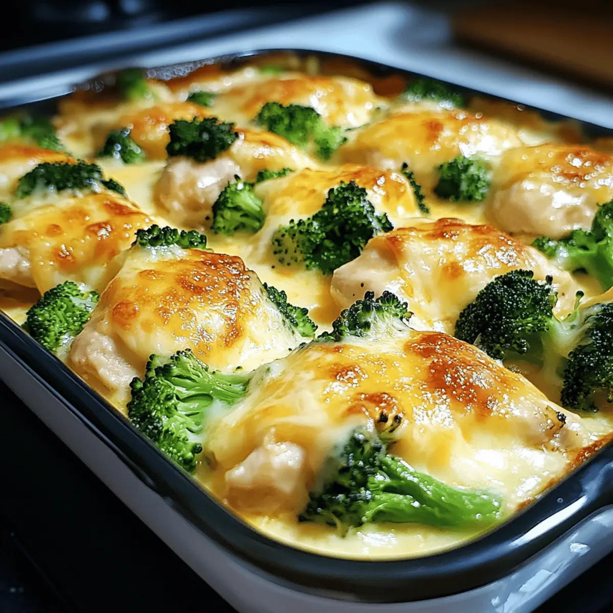 Die knusprige Käsedecke schmilzt förmlich auf saftigen Hähnchenfilets und knackigem Brokkoli – so schnell wird das Abendessen zum Höhepunkt des Tages! Bei meiner Suche nach dem perfekten Komfortessen bin ich auf die Brokkoli-Hähnchenfilets in Käsesauce gestoßen, das nicht nur einfach zuzubereiten ist, sondern garantiert sowohl bei Kindern als auch Erwachsenen ein Lächeln auf die Lippen zaubert. Diese herzhafte Speise vereint die Vorzüge einer proteinreichen Mahlzeit mit einer schnellen Zubereitungszeit, ideal für geschäftige Wochentage. Und das Tolle daran? Du kannst sie problemlos anpassen, indem du Gemüse oder Käsesorten variierst! Bleib dran, denn ich habe einige kreative Ideen für dich, um dieses Rezept nach deinem Geschmack zu gestalten. Warum sind Brokkoli-Hähnchenfilets so beliebt? Beliebtheit: Dieses Rezept bringt Familien zusammen; ein leckeres Gericht, das sowohl Kinder als auch Erwachsene begeistert. Einfachheit: Die einfache Zubereitung macht es leicht, auch an hektischen Tagen ein köstliches Abendessen zu zaubern. Vielseitigkeit: Ob mit zartem Spinat oder bunten Paprika – passe die Zutaten nach deinem Geschmack an! Nährstoffreich: Mit einer Kombination aus proteinreichem Hähnchen und nährstoffreichem Brokkoli ist diese Speise nicht nur lecker, sondern auch gesund. Schnelle Zubereitung: In weniger als 30 Minuten verwandelt sich dein Abendessen in ein Festmahl! Du kannst auch mehr über die Variationen und Serviervorschläge in meinem Blog entdecken. Brokkoli-Hähnchenfilets Zutaten • Perfekt für eine herzhafte Mahlzeit: Für die Hähnchenfilets Hähnchenfilets – die Hauptproteinquelle, für eine magerere Option kannst du Hähnchenbrust verwenden. Für den Brokkoli Brokkoli – sorgt für Textur und essentielle Nährstoffe; ersetze ihn bei Bedarf durch Blumenkohl für eine Variation. Für die Käsesauce Käse – bietet Cremigkeit und Geschmack; experimentiere mit verschiedenen Käsesorten wie Cheddar, Gouda oder sogar würzigem Pepper Jack für die Brokkoli-Hähnchenfilets. Sahne – verleiht der Sauce eine besonders angenehme Konsistenz. Für die Gewürze Knoblauchpulver – verstärkt den Geschmack; einfach anpassen, je nach Vorliebe. Paprika – sorgt für eine dezente Schärfe; wähle zwischen milder und scharfer Variante. Für die Beilagen Reis – eine klassische Beilage; ideal, um die köstliche Käsesauce aufzunehmen. Püree – cremiges Kartoffelpüree als perfekte Basis, um die Aromen zur Geltung zu bringen. Frisches Brot – ein knuspriges Baguette ergänzt das Gericht wunderbar und lädt zum Dippen ein. Step-by-Step Instructions für Brokkoli-Hähnchenfilets in cremiger Käsesauce Step 1: Hähnchenfilets würzen und anbraten Beginne damit, die Hähnchenfilets mit Knoblauchpulver, Paprika, Salz und Pfeffer zu würzen. Erhitze eine große Pfanne bei mittlerer Hitze und füge etwas Öl hinzu. Brate die Filets für etwa 4-5 Minuten auf jeder Seite, bis sie goldbraun und durchgegart sind. Achte darauf, dass die Innentemperatur mindestens 75 °C erreicht, um sicherzustellen, dass sie zart und saftig bleiben. Step 2: Brokkoli blanchieren In der Zwischenzeit bringe einen großen Topf mit Wasser zum Kochen und gebe eine Prise Salz hinzu. Füge die Röschen des Brokkolis hinzu und blanchiere sie für etwa 3-4 Minuten, bis sie zart, aber noch knackig sind. Schrecke den Brokkoli sofort in einer Schüssel mit Eiswasser ab, um die leuchtend grüne Farbe zu bewahren. Lass ihn gut abtropfen. Step 3: Käsesauce zubereiten In einem mittelgroßen Topf bei schwacher Hitze die Sahne erhitzen und langsam deinen gewählten Käse hinzufügen. Rühre vorsichtig, bis der Käse vollständig geschmolzen und die Mischung cremig ist, was etwa 4-5 Minuten dauern sollte. Füge nach Geschmack etwas Salz und Pfeffer hinzu und koche die Sauce sanft weiter, um die Aromen zu verbinden. Step 4: Gericht zusammenstellen Heize den Ofen auf 190 °C vor. In einer Auflaufform die Hähnchenfilets gleichmäßig verteilen und den blanchierten Brokkoli darüber streuen. Gieße die cremige Käsesauce großzügig über die Hähnchenfilets und den Brokkoli. Für zusätzlichen Geschmack kannst du noch etwas geriebenen Käse darüber streuen. Step 5: Backen Schiebe die Auflaufform in den vorgeheizten Ofen und backe das Gericht für 20-30 Minuten. Achte darauf, dass der Käse blubbert und eine goldbraune Kruste bildet. Dies ist ein Zeichen dafür, dass deine Brokkoli-Hähnchenfilets in cremiger Käsesauce perfekt sind und bereit zum Servieren. Step 6: Servieren und genießen Nimm die Auflaufform aus dem Ofen und lass die Brokkoli-Hähnchenfilets kurz abkühlen. Du kannst das Gericht nach Belieben mit frischen Kräutern garnieren. Serviere es warm, idealerweise zusammen mit einer Beilage wie Reis oder frischem Brot, um die köstliche Käsesauce aufzunehmen. Tipps für die besten Brokkoli-Hähnchenfilets Perfekte Würzung: Achte darauf, die Hähnchenfilets gut zu würzen, um einen intensiven Geschmack zu erzielen. Zu wenig Gewürz kann das Gericht fade machen. Kochzeit im Auge behalten: Überprüfe die Innentemperatur der Hähnchenfilets, um sicherzustellen, dass sie zart und saftig sind; sie sollten mindestens 75 °C erreichen. Brokkoli nicht überkochen: Um die leuchtend grüne Farbe und die Nährstoffe zu bewahren, blanchiere den Brokkoli nur kurz und schrecke ihn sofort ab. Käsevariationen: Experimentiere mit verschiedenen Käsesorten für die Käsesauce, um neue Geschmackserlebnisse zu kreieren. Zu viele verschiedene Käsesorten können jedoch den Geschmack überlagern. Guten Appetit: Lass das Gericht nach dem Backen kurz abkühlen, um die Aromen setzen zu lassen, bevor du die Brokkoli-Hähnchenfilets servierst. Was passt zu Brokkoli-Hähnchenfilets in Käsesauce? Ein komplettes Menü für einen gemütlichen Abend, das die Sinne verwöhnt und der Familie Freude bereitet! Cremiges Kartoffelpüree: Die samtige Textur ergänzt die Käsesauce perfekt und bringt eine zusätzliche Portion Ko