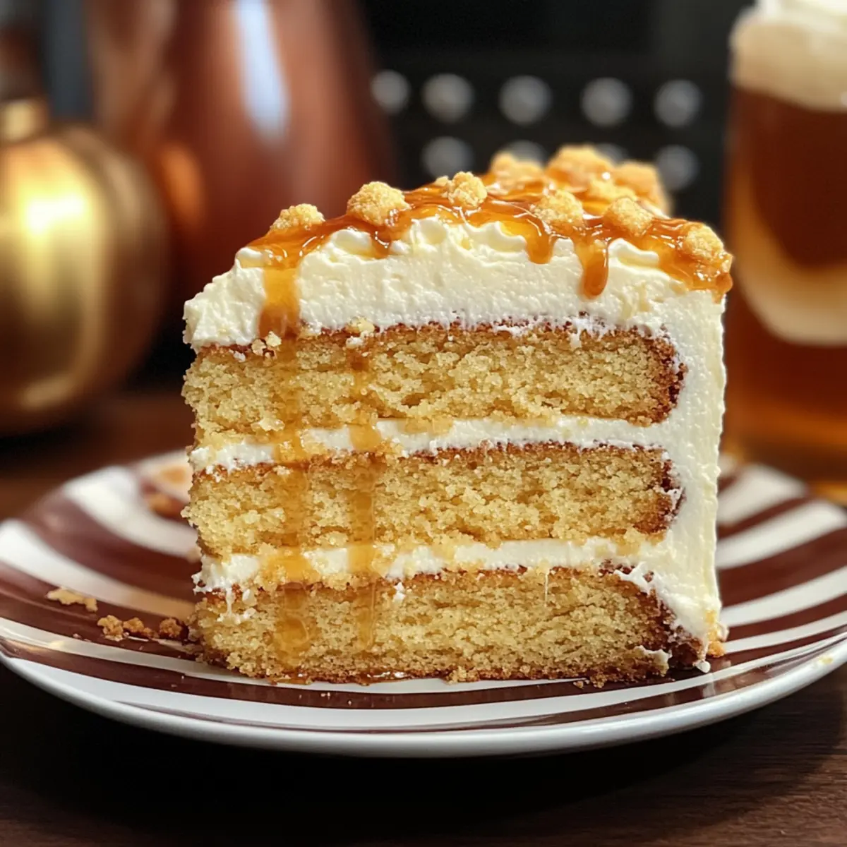 Während ich in meiner Küche stehe, verwandelt sich der Duft von frisch gebackenem Kuchen in ein Stück magische Nostalgie. Die Butterbier-Sahnetorte, inspiriert von der zauberhaften Welt der Harry-Potter-Geschichte, wird zum perfekten Dessert für jeden Fan und süßen Zahn. Diese Torte vereint die cremigen Geschmäcker von Butterscotch und Vanille in einer saftigen Schicht, überzogen mit köstlicher Butterscotchsauce. Sie ist nicht nur ein wahrer Publikumsliebling, sondern auch schnell zubereitet – ideal für einen kurzfristigen Genuss! Ich lade dich ein, diesen verführerischen Kuchen auszuprobieren. Welche Erinnerungen könnte er in dir wecken? Warum ist diese Butterbier-Sahnetorte so besonders? Magische Aromen: Die Butterbier-Sahnetorte vereint die himmlischen Geschmäcker von Butterscotch und Vanille zu einem absoluten Erlebnis. Einfachheit: Du benötigst keine besonderen Backfähigkeiten – probiere es einfach aus! Vielseitigkeit: Experimentiere mit verschiedenen Füllungen oder Toppings, um deine eigene Kreation zu schaffen. Schnell zubereitet: Ideal für spontane Lust auf Süßes; die Zubereitung ist unkompliziert und zügig. Perfekt für Feste: Diese Torte wird garantiert zum Star auf jeder Feier und fasziniert Kinder und Erwachsene gleichermaßen! Lass dich von der süßen Magie verzaubern und entdecke weitere köstliche Backideen in meinen anderen Rezepten. Butterbier-Sahnetorte Zutaten • Bereite dich vor, ein köstliches Stück Magie zu backen! Für den Teig Unsalzene Butter (weich) – Fügt Reichtum und Feuchtigkeit hinzu; kann durch Margarine für eine milchfreie Option ersetzt werden. Kristallzucker – Sorgt für Süße und Struktur; brauner Zucker kann für einen tieferen Geschmack verwendet werden. Schnelles Vanillepuddingpulver (ca. 1/2 einer 3,4 oz Packung) – Verbessert Feuchtigkeit und Textur; hausgemachter Vanillepudding ist auch eine gute Alternative. Eier (Zimmertemperatur) – Binden die Zutaten zusammen und liefern Eiweiß. Reiner Vanilleextrakt – Liefert Aroma und Geschmack; Imitationsvanille ist ebenfalls eine gute Wahl in der Not. Buttermilch (Zimmertemperatur) – Sorgt für Feuchtigkeit und einen leichten Geschmack; kann durch eine Mischung aus Milch, Essig oder Zitronensaft ersetzt werden. Backpulver & Natron – Treibmittel für den Aufstieg des Kuchens; achte auf Frische für optimale Ergebnisse. Salz – Verstärkt den Geschmack. Vor-gesiebtes Kuchenmehl – Sorgt für eine luftige Textur; Allzweckmehl kann als Ersatz verwendet werden, kann jedoch die Leichtigkeit der Torte beeinträchtigen. Wasser – Hilft, die Konsistenz des Teigs anzupassen. Für die Buttercreme Sahne – Fügt eine cremige Note hinzu; Milch kann für eine leichtere Alternative verwendet werden. Maisstärke – Stabilisiert die Butterscotch-Füllung. Frischkäse (Zimmertemperatur) – Sorgt für Reichtum in der Buttercreme. Schnelles Butterscotch-Puddingpulver (1 3,4 oz Packung) – Gibt den charakteristischen Butterscotch-Geschmack; kann auch hausgemacht sein. Gefrorene Schlagsahne (aufgetaut) – Sorgt für eine leichte Textur der Glasur; frische Schlagsahne ist eine schmackhafte Alternative. Pflanzenfett – Hilft, die gewünschte Konsistenz der Buttercreme zu erreichen. Puderzucker – Süßt und verdickt die Glasur. Butterscotch-Sauce – Zum Drizzlen; verleiht Geschmack und visuelle Attraktivität; kann durch Karamellsauce ersetzt werden. Genieße das Backen deiner eigenen Butterbier-Sahnetorte und lass dich von den himmlischen Aromen verzaubern! Step-by-Step Instructions for Butterbier-Sahnetorte Step 1: Ofen vorheizen Heize den Ofen auf 175 °C (350 °F) vor. Dies ist die ideale Temperatur für das Backen deiner Butterbier-Sahnetorte, um sicherzustellen, dass der Kuchen gleichmäßig aufgeht und eine goldbraune Farbe erhält. Bereite währenddessen deine Backformen vor und fette sie leicht ein oder lege sie mit Backpapier aus. Step 2: Trockene Zutaten mischen In einer großen Schüssel mische das vor-gesiebte Kuchenmehl, Backpulver, Natron und Salz gut zusammen. Diese trockenen Zutaten bilden die Basis für deine Butterbier-Sahnetorte und sorgen für die nötige Struktur. Achte darauf, dass alles gut vermengt ist, während du die Schüssel zur Seite stellst, um die flüssigen Zutaten vorzubereiten. Step 3: Butter und Zucker vermengen In einer separaten Schüssel schlägst du die weiche, ungesalzene Butter mit dem Kristallzucker, bis die Mischung leicht und cremig ist. Dies dauert etwa 3–5 Minuten mit einem Handrührgerät oder einer Küchenmaschine. Die cremige Konsistenz ist wichtig, da sie dem Kuchen die gewünschte Luftigkeit verleiht. Achte darauf, die Kanten der Schüssel regelmäßig abzukratzen. Step 4: Eier und Vanille hinzufügen Nun füge die Eier einzeln zu der Buttermischung hinzu und schlage jedes Ei gut unter, bevor du das nächste hinzufügst. Danach gib den reinen Vanilleextrakt hinzu und vermische alles gründlich. Diese Schritte sorgen dafür, dass der Geschmack gleichmäßig verteilt wird und deine Butterbier-Sahnetorte ein wunderbares Aroma erhält. Step 5: Trockene Zutaten und Buttermilch einarbeiten Gib die trockenen Zutaten abwechselnd mit der Buttermilch zur Buttermischung und beginne mit den trockenen Zutaten. Mische alles, bis es gerade so zusammenkommt; übermische den Teig nicht, um eine zarte Textur zu gewährleisten. Achte darauf, dass der Teig glatt ist und keine Klumpen übrigbleiben. Step 6: Wasser und Sahne einarbeiten Falls der Teig zu dick ist, füge nach Bedarf das Wasser und die Hälfte der Sahne hinzu, um die Konsistenz anzupassen. Diese zusätzlichen Zutaten helfen, den Teig weich und geschmeidig zu machen, was für eine saftige Butterbier-Sahnetorte unerlässlich ist. Rühre sanft, bis alles gut kombiniert ist. Step 7: Teig in Backformen gießen Verteile den Teig gleichmäßig auf die vorbereiteten Backformen und glätte die Oberflächen mit einem Spatel. Dies hilft, gleichmäßige Kuchen zu erhalten, die später leicht