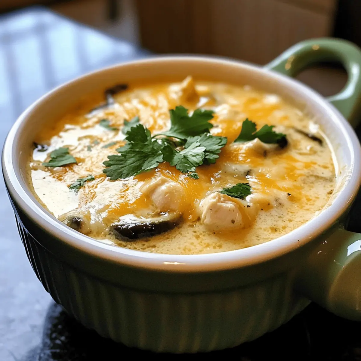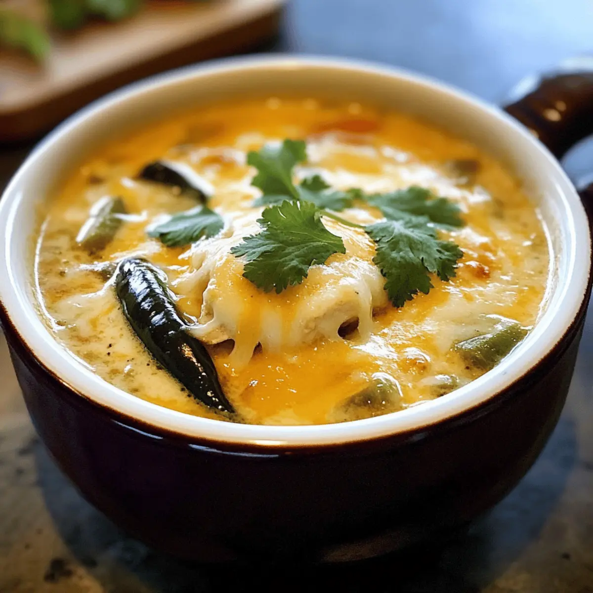 „Ich kann nicht glauben, dass ich noch nie daran gedacht habe!“ rief meine Freundin, als sie einen Löffel Chile Relleno Suppe probierte. Diese köstliche Suppe kombiniert die rauchigen Aromen von gerösteten Poblano-Paprika mit zartem Hühnchen und schmelzendem Cheddar-Käse, sodass sie einfach unwiderstehlich ist. Dieses Rezept passt nicht nur perfekt in eine low-carb Ernährung, sondern ist auch eine schnelle und einfache Lösung für gemütliche Abende. Was gibt es Schöneres, als mit einer warmen Schüssel voller comfort food nach einem langen Tag zu entspannen? Ob für ein schnelles Abendessen oder die nächste Dinnerparty – diese Chile Relleno Suppe bringt alle zusammen und lässt dich beim ersten Löffel garantiert in Erinnerungen schwelgen. Bist du auch bereit, deine Geschmacksknospen zu verwöhnen? Warum wirst du diese Suppe lieben? Simplicity: Die Zubereitung dieser Chile Relleno Suppe ist kinderleicht und erfordert keine speziellen Kochkünste. Reiche Aromen: Die Kombination aus gerösteten Poblano-Paprika und würzigem Hühnchen sorgt für einen unglaublichen Geschmack, der alle begeistert. Vielseitigkeit: Du kannst die Suppe ganz nach deinem Geschmack anpassen! Ersetze das Hühnchen durch schwarze Bohnen für eine köstliche vegetarische Version. Schnell und lecker: In weniger als 30 Minuten kannst du eine warme, sättigende Mahlzeit auf den Tisch bringen – perfekt für hektische Abende! Crowd-Pleaser: Egal, ob bei einer Dinnerparty oder einem gemütlichen Abend zu Hause, diese Suppe wird deine Gäste beeindrucken und sie um mehr bitten. Wenn du auch nach anderen leckeren Rezepten suchst, probiere unsere Herzhafte Erbsensuppe Mit oder die Cremige Champignon Suppe! Zutaten für Chile Relleno Suppe • Entdecke die köstlichen Zutaten für dieses Rezept! Für die Suppe 4 mittelgroße Poblano-Paprika – Ihre rauchige Tiefe verleiht der Suppe eine authentische Note. Substitution: Verwende bei Bedarf Anaheim- oder Paprika-Pfeffer für einen milderen Geschmack. 2 EL Butter – Dient zum Anbraten von Zwiebel und Knoblauch, was die geschmackliche Basis bildet. ¼ Tasse gehackte Zwiebel (ca. 40 g) – Bringt Süße und Tiefe in die Suppe. 2 Knoblauchzehen, gehackt – Verleiht der Suppe eine aromatische Fülle. 1 TL gemahlener Kreuzkümmel – Intensiviert den Geschmack der Paprika mit erdigen Noten. 4 Tassen Hühnerbrühe (ca. 946 g) – Bietet eine herzhafte, würzige Flüssigkeitsbasis. Salz und Pfeffer nach Geschmack – Zum Würzen und Verfeinern der Gesamtgeschmäcker. 1 ½ lbs Hähnchenbrust oder -schenkel, ohne Haut, in ½-Zoll-Stücke geschnitten (ca. 453 g) – Sorgt für Protein und Substanz in der Suppe. 8 oz Frischkäse (ca. 226 g) – Verleiht der Suppe eine cremige Reichhaltigkeit und dickt sie an. 1 ½ Tassen geriebener Cheddar-Käse (ca. 395 g) – Für eine verführerisch schmelzende Textur. 8 Scheiben Cheddar oder Pepper Jack Käse (dünne Sandwichscheiben, je ¾ oz) – Als Topping für eine zusätzliche Käse-Schicht. Step-by-Step Instructions for Chile Relleno Suppe Step 1: Poblano-Paprika rösten Röste die Poblano-Paprika über einer offenen Flamme oder unter dem Grill, bis die Haut auf allen Seiten gebräunt und aufgebläht ist. Dies dauert etwa 10–15 Minuten. Lege die gerösteten Paprika in eine Schüssel, decke sie ab und lasse sie 10 Minuten abkühlen. Danach kannst du die Haut abziehen, die Samen entfernen und die Paprika klein schneiden. Step 2: Aromaten anbraten In einem großen Topf schmilzt du die Butter bei mittlerer Hitze. Füge die gehackte Zwiebel hinzu und lasse sie etwa 5 Minuten lang dünsten, bis sie schön glasig ist. Gib dann den gehackten Knoblauch und den gemahlenen Kreuzkümmel dazu und brate alles kurz an, bis es aromatisch duftet, was etwa 1–2 Minuten dauert. Step 3: Zutaten kombinieren Nun kommen die klein geschnittenen, gerösteten Poblano-Paprika in den Topf. Gieße die Hühnerbrühe hinzu und würze die Mischung mit Salz und Pfeffer. Bringe die Suppe zum Kochen und reduziere dann die Hitze, um sie bei mittlerer Temperatur für etwa 15 Minuten leicht köcheln zu lassen. Step 4: Hähnchen hinzufügen Füge die Hähnchenstücke in die köchelnde Suppe hinzu und koche sie für ungefähr 10 Minuten, bis das Fleisch vollständig durchgegart ist. Achte darauf, dass die Temperatur nicht zu hoch ist, um zu verhindern, dass das Hähnchen trocken wird. Step 5: Cremige Basis pürieren In einer Küchenmaschine vermischt du den Frischkäse, den geriebenen Cheddar-Käse und eine Tasse der heißen Brühe, bis die Mischung schön glatt ist. Rühre diese cremige Mischung zurück in die Suppe und lasse sie für weitere 5 Minuten auf niedriger Hitze erwärmen, um die Aromen zu verbinden. Step 6: Käseschicht überbacken Heize den Grill auf hohe Stufe vor. Teile die Suppe in hitzebeständige Schalen auf, lege je eine Scheibe Käse obenauf und stelle die Schalen unter den Grill. Broil die Schalen für etwa 3–5 Minuten, bis der Käse geschmolzen und goldbraun ist. Achte darauf, dass du die Schalen während des Garens im Auge behältst. Vorbereitung für die Chile Relleno Suppe Die Chile Relleno Suppe eignet sich hervorragend für die Vorbereitung im Voraus! Du kannst die Poblano-Paprika bis 24 Stunden vorher rösten, abkühlen lassen, die Haut abziehen und sie in einem luftdichten Behälter im Kühlschrank aufbewahren. Auch die gehackten Zwiebeln und der Knoblauch lassen sich problemlos für 3 Tage im Voraus anbraten und im Kühlschrank lagern. Wenn es Zeit ist, die Suppe zuzubereiten, füge einfach die vorbereiteten Zutaten in den Topf, gieß die Brühe dazu und lass alles aufkochen. Achte darauf, die Hitze nicht zu hoch einzustellen, damit das Hähnchen zart bleibt. Mit diesen einfachen Schritten bist du nur einen kurzen Kochprozess entfernt von einer köstlichen, warmen Mahlzeit! Was passt zur Chile Relleno Suppe? Die perfekte Ergänzung zu deiner warmen Schüssel voller Geschmack. Cremige Guacamole: Diese frische, cremige Guacamole bri