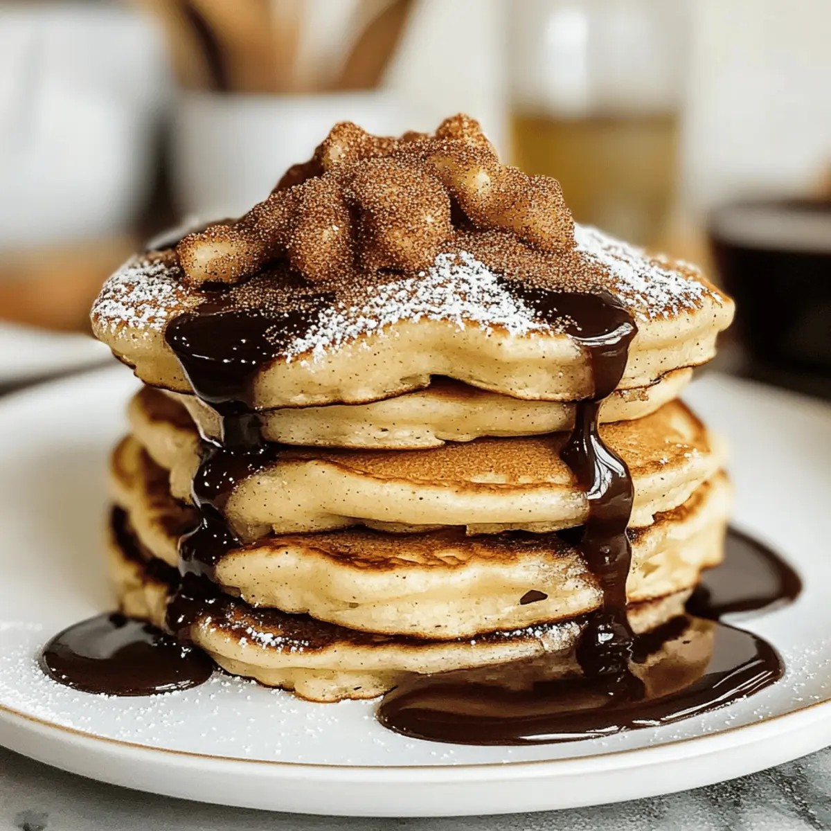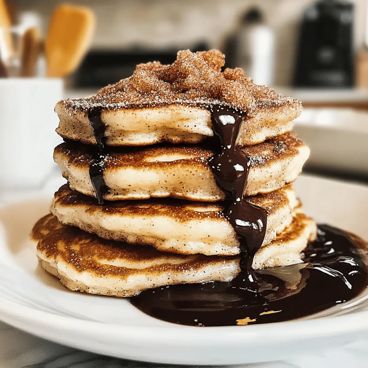 „Hast du schon einmal von der süßen Symbiose zwischen Pfannkuchen und Churros gehört? Diese Churro-Pfannkuchen kombinieren die Fluffigkeit klassischer Pfannkuchen mit der unwiderstehlichen Zimt-Zucker-Kruste, die wir von Churros lieben. Sie sind nicht nur der perfekte Start in den Tag, sondern auch ein köstliches Dessert für jede Gelegenheit. Das Beste daran? Die Zubereitung ist schnell und einfach – ideal für einen stressfreien Morgen oder eine versüßte Abendbrot-Mahlzeit. Lass uns gemeinsam in die Welt dieser verführerischen Churro-Pfannkuchen eintauchen und sie mit einem dekadenten Schokoladensauce krönen. Bist du bereit, deine Geschmacksknospen zu verwöhnen?“ Warum sind Churro-Pfannkuchen unwiderstehlich? Einzigartiger Genuss: Diese Churro-Pfannkuchen vereinen die weichheit und Fluffigkeit von Pfannkuchen mit der knusprigen Zimt-Zucker-Kruste von Churros. Einfache Zubereitung: Mit minimalem Aufwand zauberst du ein Frühstück oder Dessert, das direkt in dein Herz trifft. Vielseitigkeit: Variiere die Toppings mit frischen Früchten oder Sahne, um deine eigene Note hinzuzufügen. Perfekt für alle: Ob Familie oder Gäste, jeder wird von dieser süßen Versuchung begeistert sein! Verwöhne dich selbst mit diesen leckeren [Churro-Pfannkuchen]() – ein Muss für jeden Frühstücksliebhaber! Churro-Pfannkuchen Zutaten Für den Teig Weizenmehl – sorgt für Struktur und Stabilität der Pfannkuchen. Zucker – fügt Süße hinzu und kann nach Geschmack angepasst werden. Gemahlener Zimt – verleiht einen warmen, würzigen Geschmack; steigere die Menge für einen intensiveren Zimtgeschmack. Backpulver – dient als Treibmittel, um die Pfannkuchen fluffig zu machen. Salz – hebt den Geschmack hervor und balanciert die Süße. Buttermilch (oder Milch) – hydratisiert den Teig und sorgt für Zartheit; kann durch andere Milchsorten ersetzt werden. Ei – verbindet die Zutaten und sorgt für Reichhaltigkeit. Pflanzenöl – fügt Feuchtigkeit und Reichhaltigkeit hinzu; kann durch geschmolzene Butter ersetzt werden. Vanilleextrakt – sorgt für zusätzlichen Geschmack und verstärkt das Aroma. Für die Toppings Ungesalzene Butter (optional) – hilft dabei, dass der Zimt-Zucker an den Pfannkuchen haftet; kann weggelassen werden, um Kalorien zu reduzieren. Zucker (für das Topping) – süßt das Endprodukt, wenn er mit Zimt vermischt wird. Gemahlener Zimt (für das Topping) – ergänzt den Geschmack der Pfannkuchen, wenn er obenauf gestreut wird. Schokoladensauce oder gezuckerte Kondensmilch – wird dazu serviert, um das Erlebnis zu vervollständigen. Lass dich von diesen Churro-Pfannkuchen verzaubern und genieße jeden Bissen! Schritt-für-Schritt-Anleitung für Churro-Pfannkuchen Step 1: Trockene Zutaten vorbereiten In einer großen Schüssel das Weizenmehl, Zucker, gemahlenen Zimt, Backpulver und Salz gut vermengen. Verwende einen Schneebesen, um sicherzustellen, dass alles gleichmäßig verteilt ist. Achte darauf, keine Klumpen zu hinterlassen, da dies die Textur der Churro-Pfannkuchen beeinträchtigen könnte. Step 2: Nasse Zutaten vermengen In einer separaten Schüssel die Buttermilch, das Ei, das Pflanzenöl und den Vanilleextrakt gründlich verquirlen, bis alles gut vermischt ist. Die nach dem Vermengen entstehende Mischung sollte eine homogene Konsistenz haben, damit sie die trockenen Zutaten perfekt bindet. Step 3: Teig mischen Gieße die nassen Zutaten in die Schüssel mit den trockenen Zutaten. Rühre vorsichtig mit einem Spatel, bis gerade so alles kombiniert ist; einige Klümpchen sind in Ordnung und helfen, die Pfannkuchen fluffig zu halten. Achte darauf, den Teig nicht zu übermixen, da dies die Textur beeinträchtigen kann. Step 4: Pfannkuchen kochen Heize eine beschichtete Pfanne bei mittlerer Hitze vor und füge bei Bedarf etwas Pflanzenöl hinzu. Verwende eine Kelle oder 1/4 Tasse, um den Teig in die Pfanne zu geben. Koche die Churro-Pfannkuchen, bis sich Blasen bilden und die Ränder leicht fest werden, etwa 2 Minuten. Wende sie vorsichtig und koche weitere 30 Sekunden bis 1 Minute, bis sie goldbraun sind. Step 5: Zimt-Zucker-Mischung herstellen Während die Pfannkuchen kochen, kombiniere in einer kleinen Schüssel den Zucker und den gemahlenen Zimt für das Topping. Rühr die Mischung gut um, damit der Zimt gleichmäßig im Zucker verteilt ist, und stelle diese beiseite, bis die Pfannkuchen fertig sind. Step 6: Pfannkuchen beschichten Nachdem du die Pfannkuchen aus der Pfanne genommen hast, bestreiche sie sofort mit geschmolzener Butter, falls gewünscht. Tauche die noch warmen Pfannkuchen in die Zimt-Zucker-Mischung oder streue die Mischung großzügig auf die Oberseite. Dies verleiht den Churro-Pfannkuchen ihre charakteristische Süße und Knusprigkeit. Step 7: Servieren Serviere die Churro-Pfannkuchen warm und garniere sie nach Belieben mit Schokoladensauce oder gezuckerter Kondensmilch. Diese Kombination sorgt für ein unvergessliches Genusserlebnis und macht deine Churro-Pfannkuchen perfekt zum Frühstück oder Dessert! Churro-Pfannkuchen für die einfache Zubereitung vorbereiten Die Churro-Pfannkuchen sind perfekt für die Mahlzeitenplanung und können bis zu 24 Stunden im Voraus vorbereitet werden! Beginne damit, die trockenen Zutaten (Mehl, Zucker, Zimt, Backpulver und Salz) in einer luftdichten Schüssel zu vermischen, damit sie frisch bleiben. Die nassen Zutaten (Buttermilch, Ei, Öl und Vanilleextrakt) kannst du ebenfalls bis zu 24 Stunden vor dem Kochen in einem separaten Behälter im Kühlschrank lagern. Am nächsten Morgen musst du nur die nassen und trockenen Zutaten zusammenführen und den Teig in der Pfanne ausbacken. Um die Qualität zu wahren, sorge dafür, dass alles in gut verschlossenen Behältern lagert. Diese Zeitersparnis macht die Zubereitung der leckeren Churro-Pfannkuchen an geschäftigen Tagen zum Kinderspiel! Churro-Pfannkuchen Variationen & Substitutionen Lass deiner Kreativität freien Lauf und passe diese Churro-Pfannkuc