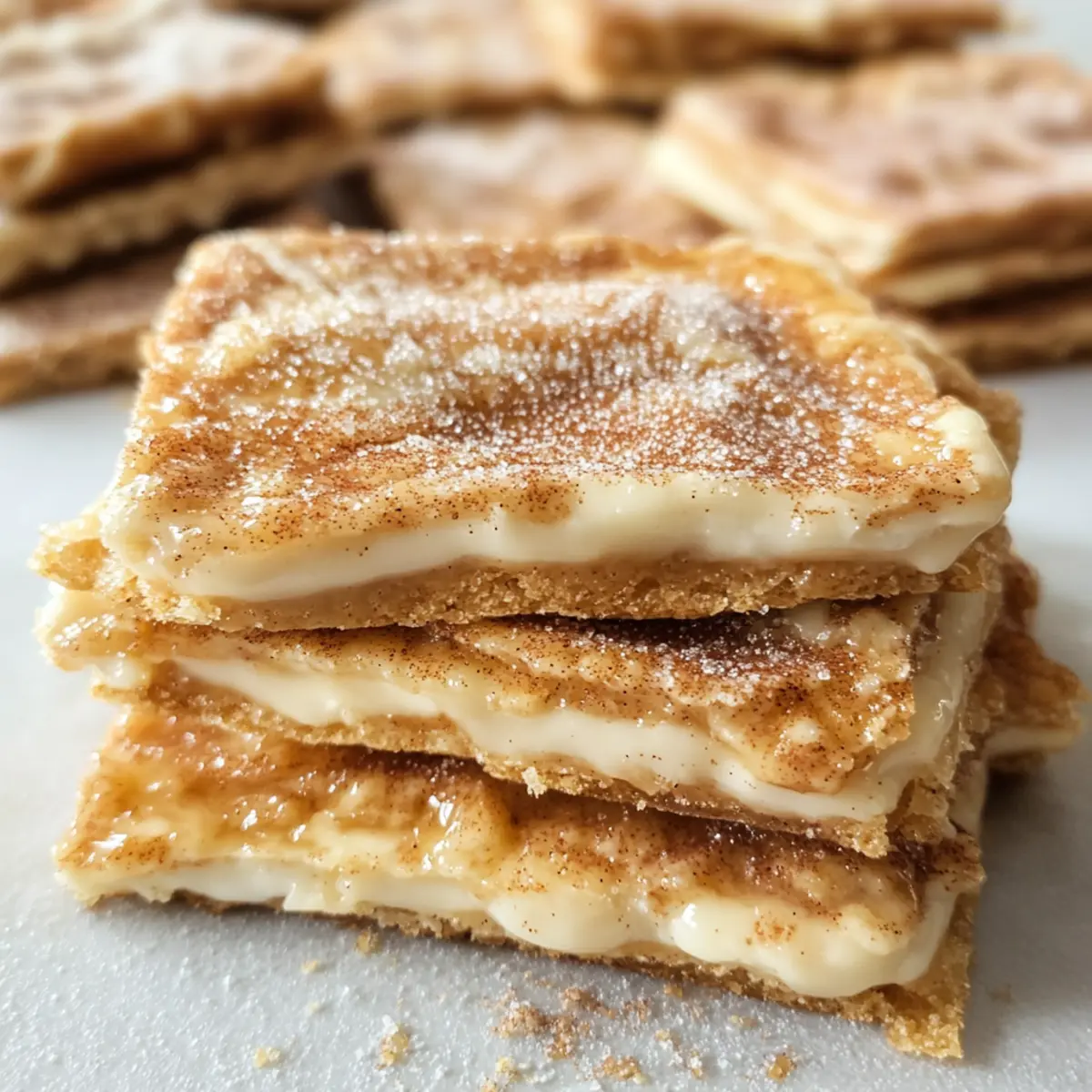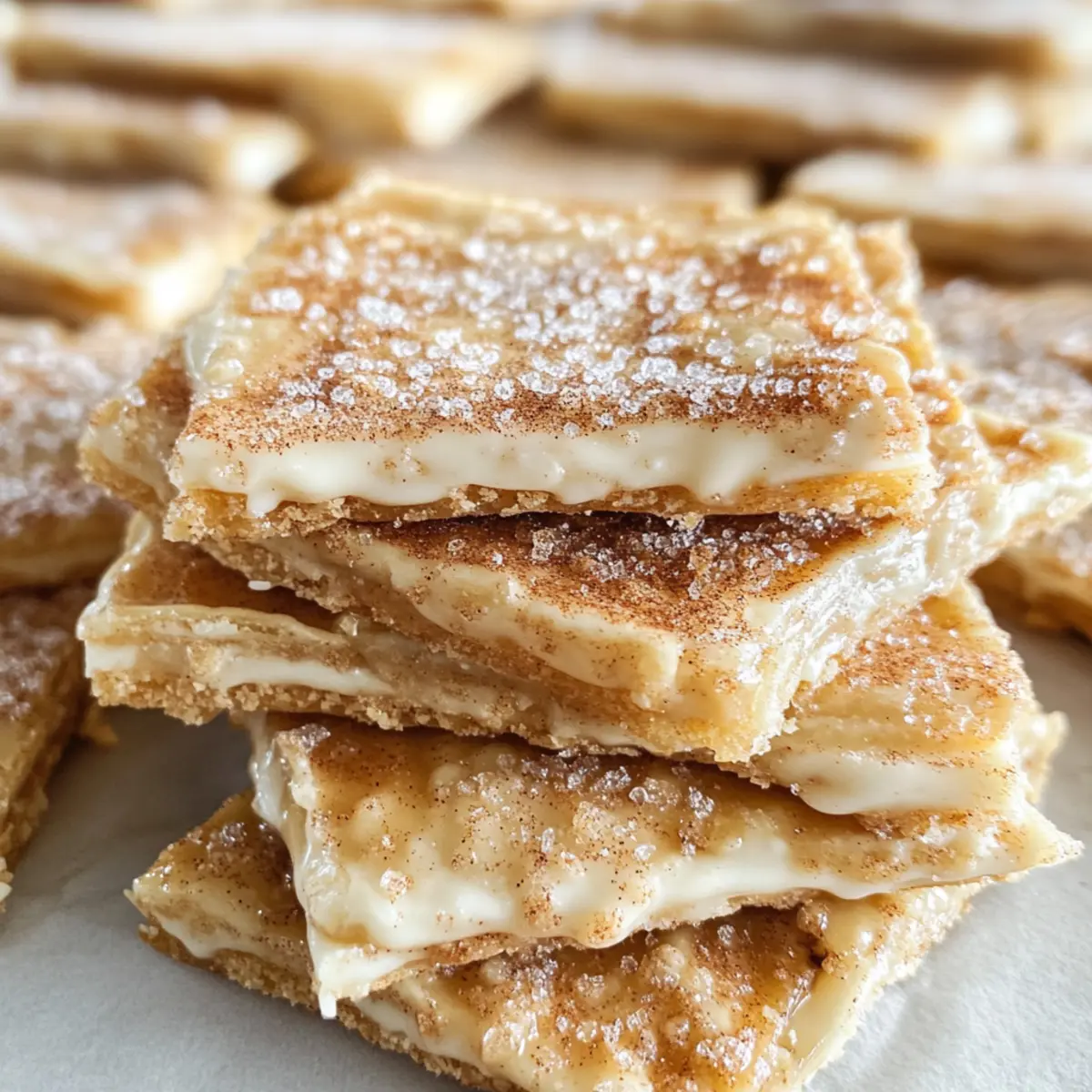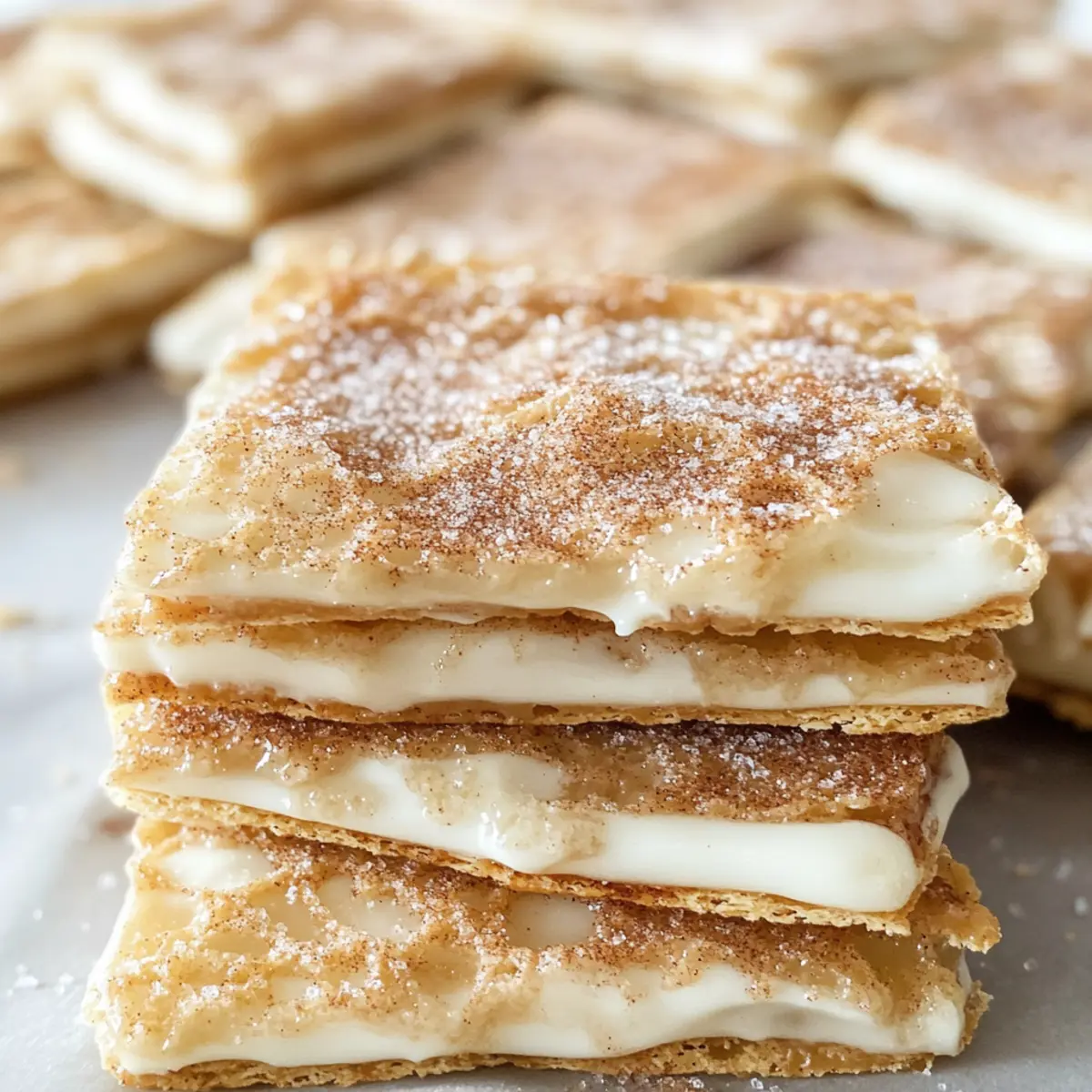 Ich stand neulich in meiner Küche, als der verführerische Duft von frisch gebackenen Churros durch die Luft zog. Diese köstliche Erinnerung an meine Zeit auf dem Jahrmarkt brachte mich auf die geniale Idee, Churro Salzburger Toffee zu kreieren! Es handelt sich um eine unwiderstehliche Mischung aus süß und salzig, die perfekt in nur 20 Minuten zubereitet ist – ideal für jeden Snack-Liebhaber. Die Kombination aus knusprigem Keksboden, reichhaltiger weißer Schokolade und einer Prise Zimt-Zucker macht dieses Rezept zu einem echten Hit auf jeder Feier. Außerdem ist es so einfach, dass sogar Küchenneulinge große Freude daran haben werden. Möchten Sie wissen, wie Sie sich dieses genussvolle Stückchen Glück selbst zaubern können? Warum werden Sie dieses Rezept lieben? Einfachheit: Die Zubereitung ist unkompliziert und benötigt nur grundlegende Kochfähigkeiten. Schnell gemacht: In nur 20 Minuten haben Sie einen köstlichen Snack, der perfekt für jede Gelegenheit ist. Süß und salzig: Die harmonische Kombination aus karamellisierten Keksen, schmelzender Schokolade und Zimt-Zucker sorgt für ein Geschmackserlebnis. Begeisterung garantiert: Ideal für Partys oder beim Filmabend mit Freunden – jeder wird nach mehr verlangen! Vielseitige Variationen: Probieren Sie verschiedene Schokoladensorten oder fügen Sie Nüsse hinzu, um den Geschmack zu variieren. Für weitere leckere Anregungen schauen Sie sich unsere leckeren Dessertideen an. Nostalgischer Genuss: Dieses Rezept erinnert an nostalgische Jahrmarktbesuche und bringt Freude in Ihre Küche! Churro Salzburger Toffee Zutaten Hinweis: Mit diesen Zutaten zaubern Sie ein himmlisches Churro Salzburger Toffee! Für die Basis Zucker – sorgt für die Süße und harmoniert perfekt mit der salzigen Note der Crackers. Verwenden Sie Kokosblütenzucker für eine weniger raffinierte Option. Zimt – fügt Wärme und Würze hinzu und erinnert an den klassischen Churro-Geschmack. Ein Hauch Muskatnuss kann die Tiefe zusätzlich verstärken. Saltine Crackers – bildet die knusprige Basis für das Toffee. Alternativen wie andere knusprige Cracker sind möglich, die Textur kann jedoch variieren. Gesalzene Butter – bringt Reichhaltigkeit in die Mischung und hilft, die Toffee-Basis zu kreieren. Ungesalzene Butter ist auch geeignet, fügen Sie jedoch eine Prise Salz hinzu. Brauner Zucker – verleiht einen intensiveren Geschmack und unterstützt den Karamellisierungsprozess. Wählen Sie je nach Verfügbarkeit hellen oder dunklen braunen Zucker. Für die Schokoladenschicht Weiße Schokoladenstückchen – schmelzen wunderbar und ergänzen den Geschmack des Toffees. Für einen reichhaltigeren Geschmack können Sie die weißen Schokoladenstückchen durch dunkle Schokolade ersetzen. Für das Topping Zimt-Zucker-Mischung – sorgt für den letzten Schliff mit einer süßen und würzigen Note. Dieses Topping ist unverzichtbar für das Churro-Feeling! Step-by-Step Instructions for Churro Salzburger Toffee Step 1: Ofen vorheizen Heizen Sie den Ofen auf 200 °C (400 °F) vor. Stellen Sie sicher, dass er vollständig aufgeheizt ist, bevor Sie mit dem nächsten Schritt fortfahren, um eine gleichmäßige Backtemperatur zu gewährleisten. Während der Ofen aufgeheizt wird, können Sie bereits die Backzeit optimal nutzen, indem Sie alle anderen Zutaten vorbereiten. Step 2: Backblech vorbereiten Legen Sie ein 10 x 15 Zoll großes Backblech mit Aluminiumfolie aus und sprühen Sie es mit Antihaftspray ein. Dies verhindert, dass der Churro Salzburger Toffee an der Folie kleben bleibt und erleichtert das spätere Herausnehmen. Achten Sie darauf, dass die Folie ordentlich eingepasst ist, um ein Überlaufen zu vermeiden. Step 3: Zimt-Zucker-Mischung herstellen In einer kleinen Schüssel mischen Sie den Zucker und den Zimt gründlich. Diese Mischung wird später auf die geschmolzene Schokolade gestreut, um die süß-würzige Note des Churro Salzburger Toffee zu verstärken. Stellen Sie die Schüssel beiseite, damit Sie sie später griffbereit haben. Step 4: Cracker anordnen Legen Sie 40 Saltine Crackers in einer einzigen Schicht gleichmäßig auf das vorbereitete Backblech. Achten Sie darauf, dass die Cracker dicht nebeneinander liegen, damit jeder Biss des Churro Salzburger Toffee gleichmäßig und knusprig wird. Diese Cracker bilden die perfekte Basis, die das süße Toffee trägt. Step 5: Butter und Zucker karamellisieren In einem mittelgroßen Topf die gesalzene Butter und den braunen Zucker bei mittlerer Hitze vermengen. Rühren Sie kontinuierlich, bis die Mischung zu kochen beginnt, und lassen Sie sie dann 5 Minuten weiter köcheln. Die Mischung sollte dicker werden und eine goldene Farbe annehmen, was auf die perfekte Karamellisierung hinweist. Step 6: Karamell über die Cracker gießen Gießen Sie die heiße Karamellmischung gleichmäßig über die Saltine Crackers. Verwenden Sie einen Spatel, um sicherzustellen, dass alle Cracker gut abgedeckt sind. Seien Sie vorsichtig, da die Mischung sehr heiß ist. Es sollte eine glatte, glänzende Schicht über den Crackern hinterlassen, die später ein köstliches Toffee-Feeling verleiht. Step 7: Backen Schieben Sie das Backblech in den Ofen und backen Sie es 5 Minuten lang. Nach Ablauf der Zeit nehmen Sie das Blech heraus und lassen Sie es für einen Moment stehen. Dies ermöglicht es dem Toffee, etwas abzukühlen und eine festere Konsistenz zu entwickeln, bevor Sie mit dem nächsten Schritt fortfahren. Step 8: Schokolade schmelzen Streuen Sie schnell die weißen Schokoladenstückchen gleichmäßig über die heißen Cracker. Die Wärme des Karamells lässt die Schokolade leicht schmelzen, sodass sie sich später leicht verteilen lässt. Achten Sie darauf, die Schokoladenstückchen gleichmäßig zu verteilen, um eine vollständige Abdeckung zu gewährleisten. Step 9: Schokolade gleichmäßig verteilen Verwenden Sie einen Spatel, um die geschmolzene Schokolade gleichmäßig über die Saltine Crackers zu verstreichen. D