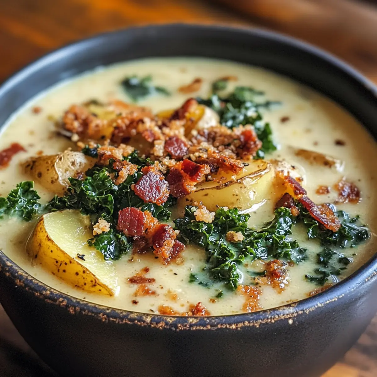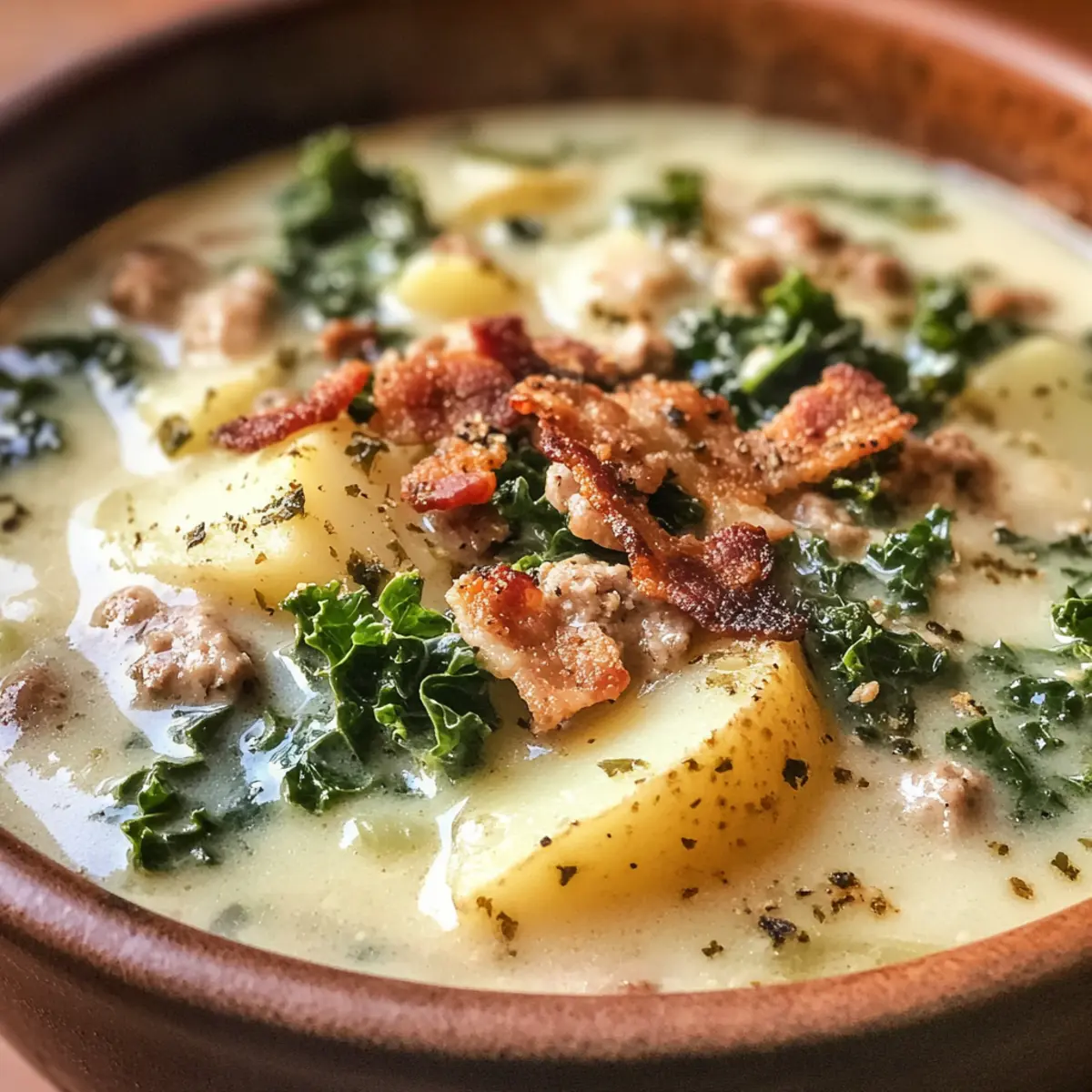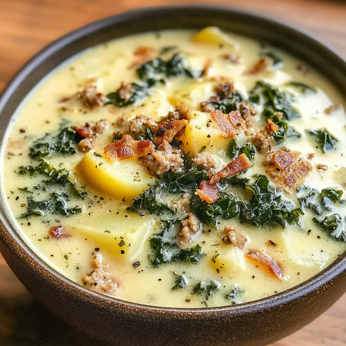 Die kühle Brise des Herbstes weht durch die Straßen und bringt den unwiderstehlichen Duft von wärmendem Komfortfood mit sich. In diesen Momenten, wenn das Verlangen nach etwas Herzhaftem und Kuscheligem überhandnimmt, stelle ich mir oft meine Lieblingsrezepte vor. Heute lade ich euch ein, die himmlischen Aromen meines Creamy Copycat Olive Garden Sausage Kale and Potato Soup zu erleben. Dieses Rezept ist nicht nur schnell und einfach in einem Topf zuzubereiten, sondern auch perfekt für die ganze Familie – ideal für eine gesellige Runde oder gemütliche Abende zu Hause. Wenn ihr also nach einer wärmenden Mahlzeit sucht, die den Gaumen verzaubert und unter der Woche für Entspannung sorgt, dann bleibt dran! Was sagt ihr dazu, eine Geschmacksexplosion für eure Sinne zu kreieren? Warum wird euch diese Suppe begeistern? Herzhaft und reichhaltig: Diese Suppe kombiniert die Aromen von italienischer Wurst, cremiger Sahne und frischem Grünkohl in einer einzigartigen Harmonisierung. Schnelle Zubereitung: In nur einer Stunde zaubert ihr eine köstliche Mahlzeit, ideal für stressige Wochentage. Familienfreundlich: Perfekt für die ganze Familie, lässt sich einfach anpassen, mit süßer oder würziger Wurst nach eurem Geschmack. Gemütlichkeit pur: Jeder Löffel erinnert an warme Umarmungen an kalten Tagen, was sie zum idealen Komfortfood macht. Vielseitig einsetzbar: Diese Suppe schmeckt auch hervorragend mit cremiger Champignon Suppe oder als Beilage zu einem einfachen herzhaften Quark. Zutaten für die Suppe Für die Brühe • Brühe – Sie bildet die geschmackvolle Basis der Suppe; wählt Hühner- oder Gemüsebrühe je nach Vorliebe. • Wasser – Dient dazu, die Konsistenz der Suppe anzupassen; ersetzt mehr Wasser durch Brühe für einen intensiveren Geschmack. Für die Hauptbestandteile • Wurst – Verleiht der Suppe eine herzhafte Note und Protein; probiert süße oder würzige italienische Wurst oder sogar Puten- oder Hähnchenwurst für eine magerere Variante. • Kartoffeln – Sorgen für die nötige Füllung und Struktur; schneidet die Kartoffeln in gleichmäßige 1/4-Zoll-Scheiben für optimale Garzeiten. • Grünkohl – Bietet Frische und Nährstoffe; gebt ihn am Ende des Kochens hinzu, um Überkochen zu vermeiden. Für die Aromen • Zwiebel – Bereitet die aromatische Basis der Suppe; verwendet Schalotten für einen milderen Geschmack. • Knoblauch – Vertieft den Geschmack; ersetzt ihn bei Bedarf durch Knoblauchpulver (1,5 Teelöffel für 1,5 Esslöffel frisch). • Rote Pfefferflocken – Fügen eine spitze Schärfe hinzu; variiert die Menge nach eurem persönlichen Geschmack. • Salz und Pfeffer – Essentiell für die Würze; nach Belieben anpassen. Für die cremige Note • Butter – Sorgt für eine reiche Basis; ersetzt die Butter durch Olivenöl für eine milchfreie Option. • Sahne – Damit wird die Suppe cremig und luxuriös; verwendet Zimmertemperatur-Sahne, um das Gerinnen zu vermeiden. Für die Garnierung • Bacon – Für zusätzliche Knusprigkeit und Geschmack; zerbröselt ihn für die besten Ergebnisse. • Parmesan – Ein weiteres köstliches Topping zur Verfeinerung; bringt eine tiefere Cremigkeit mit sich. Diese Zutaten verwöhnen nicht nur euren Gaumen, sondern helfen auch, das Gefühl von Wohlbefinden und Zuhause zu erzeugen! Schritt-für-Schritt-Anleitung für die Creamy Copycat Olive Garden Sausage Kale and Potato Soup Step 1: Wurst anbraten Erhitzt einen großen Topf bei mittlerer bis hoher Hitze und bratet die Wurst für 5-6 Minuten an, bis sie nicht mehr rosa ist und eine schöne Bräunung hat. Verwendet einen Holzlöffel, um die Wurst in kleine Stücke zu zerteilen. Nehmt die Wurst aus dem Topf und stellt sie beiseite. Step 2: Aromaten anbraten Fügt in denselben Topf die Butter und die gewürfelte Zwiebel hinzu; sautiert beides für 3-4 Minuten, bis die Zwiebel durchsichtig wird. Gebt den gehackten Knoblauch hinzu und rührt für eine weitere Minute, bis er duftet. Dies bildet die geschmackvolle Basis der Creamy Copycat Olive Garden Sausage Kale and Potato Soup. Step 3: Grundsuppe köcheln lassen Gießt nun die Brühe und das Wasser in den Topf und fügt die geschnittenen Kartoffeln, Salz, Pfeffer und die roten Pfefferflocken hinzu. Bringt die Mischung zum Kochen und reduziert dann die Hitze auf ein leichtes Köcheln für 12-15 Minuten, bis die Kartoffeln zart sind. Überprüft die Kartoffeln mit einer Gabel, um die Konsistenz zu testen. Step 4: Grünkohl und Sahne hinzugeben Rührt den Grünkohl in die Suppe und lasst ihn für 2-3 Minuten mitköcheln, bis er welk ist. Währenddessen fügt ihr langsam die Zimmertemperatur-Sahne hinzu und rührt sanft, um die Cremigkeit gleichmäßig zu verteilen. Achtet darauf, dass die Suppe nicht kocht, um ein Gerinnen der Sahne zu vermeiden. Step 5: Fertigstellen und Servieren Gebt die zuvor gebräunte Wurst zurück in den Topf und passt die Gewürze nach Belieben an. Ladet die Creamy Copycat Olive Garden Sausage Kale and Potato Soup in Schalen und garniert sie vor dem Servieren mit knusprigem Bacon und geriebenem Parmesan. Genießen Sie eine köstliche, wärmende Mahlzeit, die alle glücklich macht! Lagerungstipps für die Creamy Copycat Olive Garden Sausage Kale and Potato Soup Kühlschrank: Bewahrt die Suppe in einem luftdichten Behälter für bis zu 4 Tage auf. So kommen die Aromen richtig zur Geltung. Gefrierschrank: Für längere Lagerung könnt ihr die Suppe bis zu 3 Monate einfrieren. Am besten die Sahne weglassen und erst beim Aufwärmen hinzufügen. Auftauen: Lasst die gefrorene Suppe über Nacht im Kühlschrank auftauen, bevor ihr sie in einem Topf bei mittlerer Hitze erwärmt, bis sie durchgehend warm ist. Wiedererwärmen: Erwärmt die Suppe sanft, um ein Gerinnen der Sahne zu verhindern. Ein Schuss frischer Zitrone kann helfen, den Geschmack aufzufrischen! Variationen und Alternativen Entdeckt die spannenden Möglichkeiten, eure Creamy Copycat Olive Garden Sausage Kale and Potato S