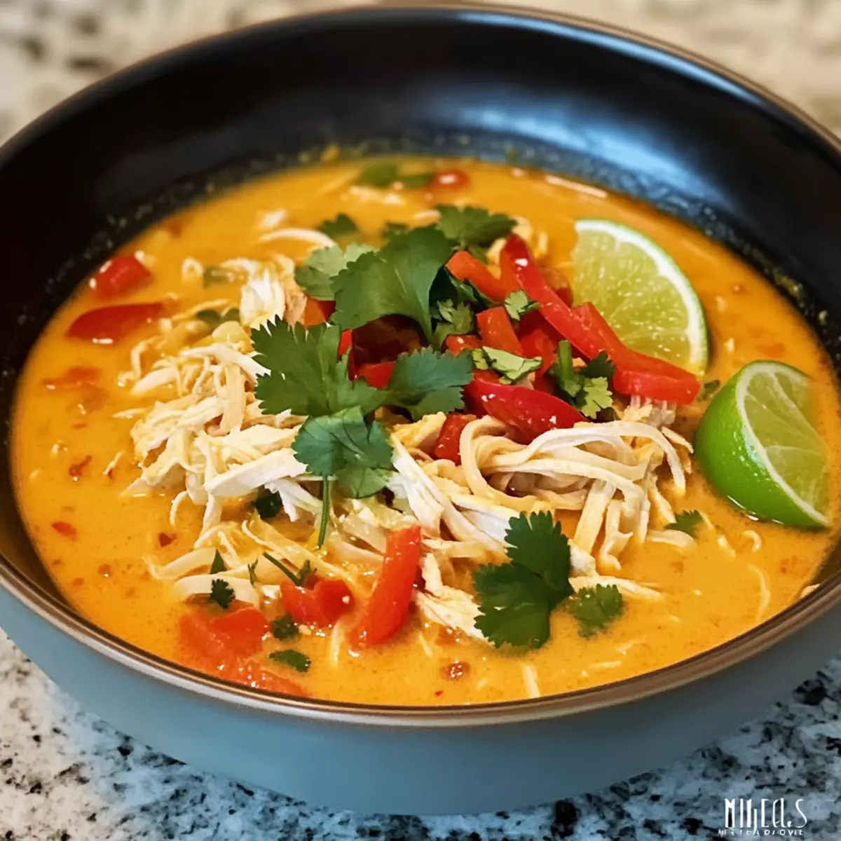 Eine cremige Hühnernudelsuppe, die thailändische Aromen vereint und in weniger als 30 Minuten zubereitet ist.