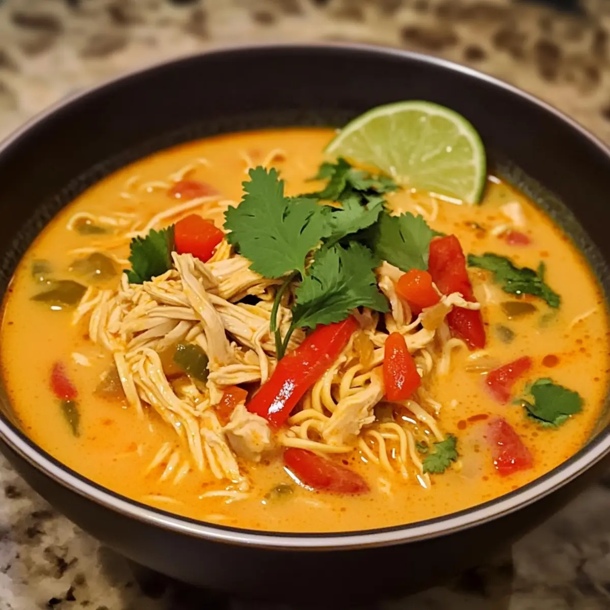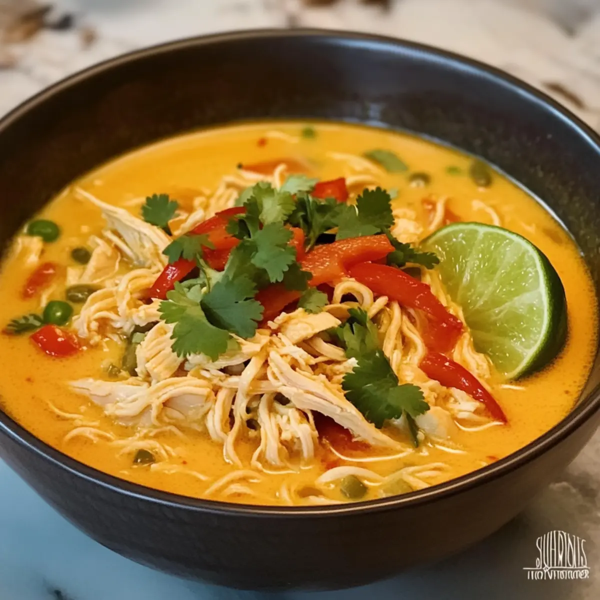 Cremige Hühnernudelsuppe mit Thai-Flair