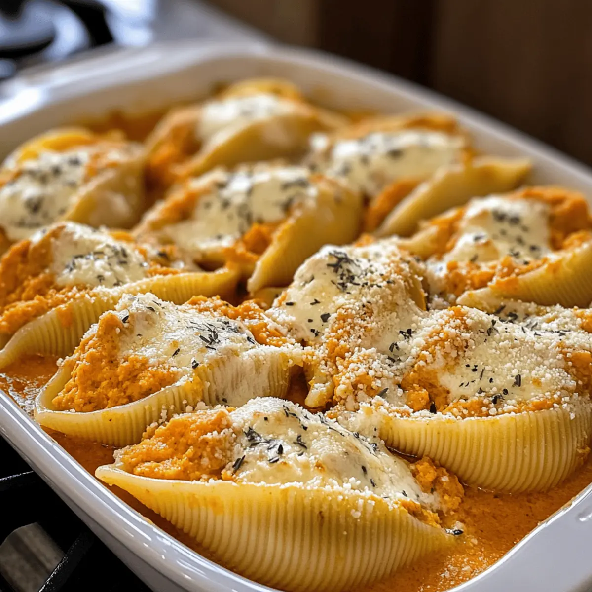 Während ich in der frühen Abenddämmerung in meiner Küche stehe, umhüllt mich der verlockende Duft von gebackenem Käse und würzigem Kürbis. Es gibt nichts Gemütlicheres als an einem kühlen Herbstabend cremige Kürbis-Ricotta gefüllte Muscheln zu genießen. Diese köstlichen Muscheln sind nicht nur ein Fest für die Sinne, sondern auch ein unkompliziertes Gericht, das blitzschnell zubereitet werden kann. Perfekt für ein schnelles Abendessen unter der Woche oder einen besonderen Anlass, sind sie ein vegetarischer Traum! Der samtige Kürbis und die cremige Ricotta-Füllung verschmelzen zu einer unwiderstehlichen Geschmackskombination, die eure Gäste garantiert begeistern wird. Bereit, die Küche mit einem Hauch von Herbstzauber zu füllen? Lasst uns loslegen! Warum wirst du dieses Rezept lieben? Einzigartige Kombination: Die cremige Kürbis-Ricotta-Füllung vereint die Süße des Kürbisses mit der samtigen Textur der Ricotta, was für ein unvergleichliches Geschmackserlebnis sorgt. Schnell und unkompliziert: Mit nur wenigen Zutaten und einem einfachen Zubereitungsprozess ist dieses Rezept perfekt für alle, die nach einer schmackhaften und schnellen Lösung suchen. Herbstliches Flair: Die hinzugefügten Gewürze wie Muskatnuss und Salbei bringen die Aromen des Herbstes direkt auf den Tisch. Vielseitige Variationen: Du kannst die Füllung nach deinem Geschmack anpassen, z.B. mit frischem Spinat oder verschiedenen Käsesorten experimentieren. Beliebtes Gericht für alle: Egal, ob du Gäste empfängst oder einfach nur eine gemütliche Familienmahlzeit zubereitest, diese Muscheln werden sicher lange in Erinnerung bleiben. Kombiniere sie mit einer frischen Beilage, wie einem Cremigen Salatsose Wie, und genieße das perfekte Dinner! Cremige Kürbis-Ricotta gefüllte Muscheln Zutaten • Hinweis: Entdecke die köstlichen Aromen dieser cremigen Kürbis-Ricotta gefüllten Muscheln! Für die Muscheln Jumbo Pasta Muscheln – Ideal zum Füllen; können durch Manicotti oder Cannelloni ersetzt werden, falls nicht verfügbar. Kürbispüree – Sorgt für einen reichhaltigen, süßen Geschmack; die Verwendung von frisch geröstetem Kürbis hebt das Aroma. Ricotta-Käse – Fügt Cremigkeit hinzu; kannst für eine leichtere Variante auch Quark verwenden. Geriebener Mozzarella – Klassischer Schmelzkäse; probiere für einen anderen Geschmack auch einen scharfen weißen Cheddar oder Provolone. Parmesan – Bringt Tiefe und Nussigkeit; wichtig für das Topping. Knoblauchpulver – Verstärkt den Geschmack der Füllung; frischer, gehackter Knoblauch kann ebenfalls verwendet werden. Getrockneter Salbei – Verleiht ein erdiges Aroma; frischer Salbei ist eine frische Alternative. Gemahlene Muskatnuss – Fügt Wärme und Gewürz hinzu; optional, aber empfohlen für ein herbstliches Geschmacksprofil. Salz & Pfeffer – Essentiell zum Würzen; nach Geschmack anpassen. Ei – Bindet die Füllung und sorgt für eine geschmeidige Textur. Marinara-Sauce – Hält die Muscheln beim Backen feucht; wähle deine Lieblingsmarke oder eine hausgemachte Variante. Olivenöl – Fügt Reichhaltigkeit hinzu und fördert die Bräunung. Schritt-für-Schritt-Anleitung für Cremige Kürbis-Ricotta gefüllte Muscheln Step 1: Ofen vorheizen Heize deinen Ofen auf 190 °C vor, damit er die ideale Temperatur erreicht, wenn die Cremigen Kürbis-Ricotta gefüllte Muscheln reinkommen. Mit einer hohen Temperatur wird der Käse gleichmäßig geschmolzen und goldbraun. Step 2: Muscheln kochen Koche die Jumbo Pasta Muscheln in einem großen Topf mit sprudelndem, gesalzenem Wasser für etwa 8–10 Minuten, bis sie al dente sind. Nach dem Abgießen die Muscheln kurz unter kaltem Wasser abspülen, damit sie nicht weiter garen und anschließend abtropfen lassen. Step 3: Füllung vorbereiten In einer großen Schüssel mischst du das Kürbispüree, den Ricotta, ½ Tasse geriebenen Mozzarella, Parmesan, Knoblauchpulver, Salbei, Muskatnuss, Salz, Pfeffer und das Ei. Rühre alles gut durch, bis eine cremige Konsistenz entsteht, die perfekt zum Füllen der Muscheln geeignet ist. Step 4: Marinara-Sauce vorbereiten Verteile 1 Tasse Marinara-Sauce gleichmäßig auf dem Boden einer 23×33 cm großen Auflaufform. Diese Sauce sorgt nicht nur für Geschmack, sondern hält auch die Pasta während des Backens schön feucht. Step 5: Muscheln füllen Nehme jede gekochte Muschel und fülle sie großzügig mit der cremigen Kürbis-Ricotta-Füllung. Lege die gefüllten Muscheln mit der Öffnung nach oben in die vorbereitete Auflaufform. Fülle jede Muschel vollständig für ein optimales Geschmackserlebnis. Step 6: Sauce hinzufügen Gieße die restliche Marinara-Sauce gleichmäßig über die gefüllten Muscheln und streue den verbleibenden Mozzarella darüber. Diese Schicht sorgt für eine köstliche, geschmolzene Käsekruste, die beim Backen entsteht. Step 7: Öl hinzufügen Träufle etwas Olivenöl über die Muscheln, um zusätzliche Reichhaltigkeit zuzufügen und ein schönes Bräunungsergebnis zu erzielen. Das Öl macht die Muscheln saftiger und verleiht dem Gericht einen besonderen Geschmack. Step 8: Backen Decke die Auflaufform mit Aluminiumfolie ab und backe die gefüllten Muscheln 25 Minuten lang im vorgeheizten Ofen. Danach nimm die Folie ab und backe für weitere 10 Minuten, bis der Käse schön blubbert und goldbraun wird. Step 9: Ruhen lassen Lass die cremigen Kürbis-Ricotta gefüllten Muscheln nach dem Backen für etwa 5 Minuten ruhen, damit sie sich setzen können. Dies hilft, die Aromen zu intensivieren und macht das Servieren einfacher. Step 10: Garnieren und servieren Serviere die Muscheln heiß und garniere sie nach Belieben mit frischer Petersilie oder zusätzlichem Salbei. Diese Cremigen Kürbis-Ricotta gefüllte Muscheln sind ein perfektes Gericht für jeden Herbstabend! Variationen & Alternativen Entdecke die Möglichkeiten und passe dein Rezept an deine Vorlieben an! Mit ein paar einfachen Änderungen kannst du die cremigen Kürb