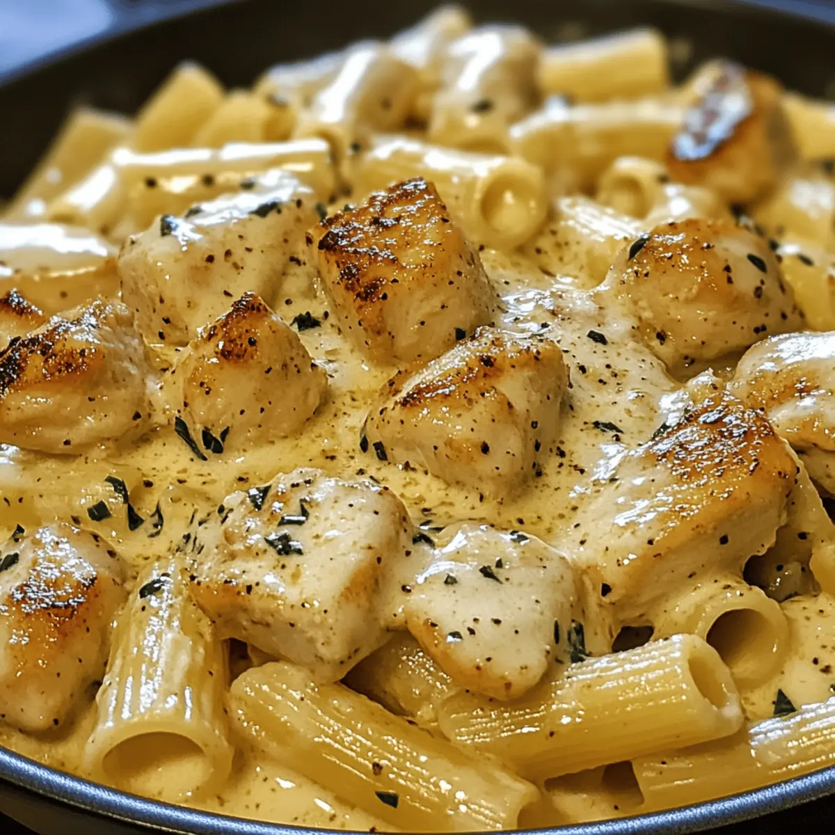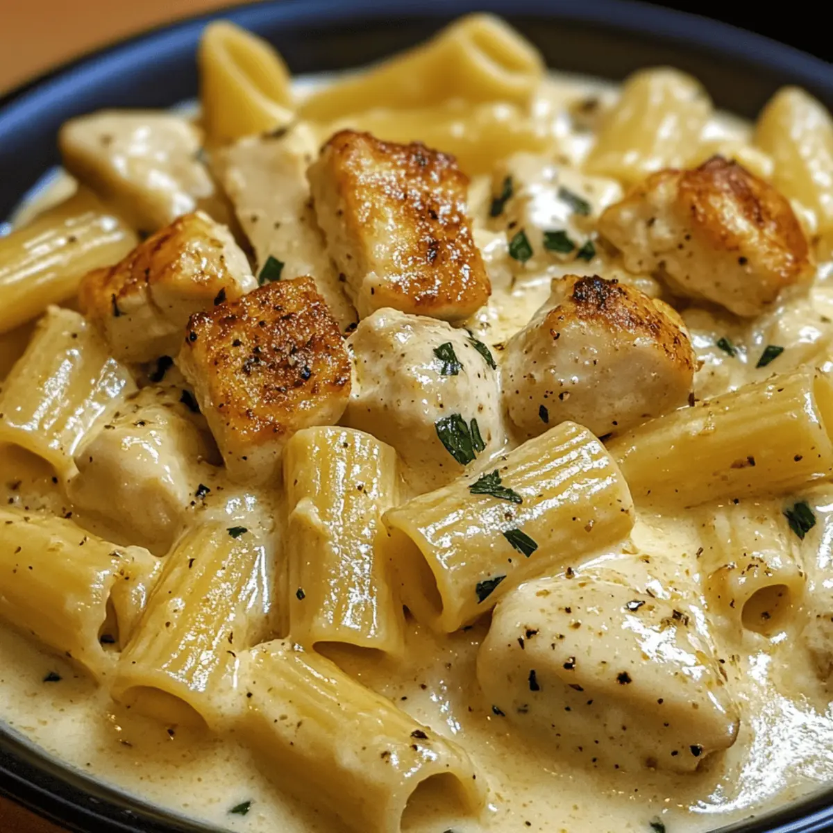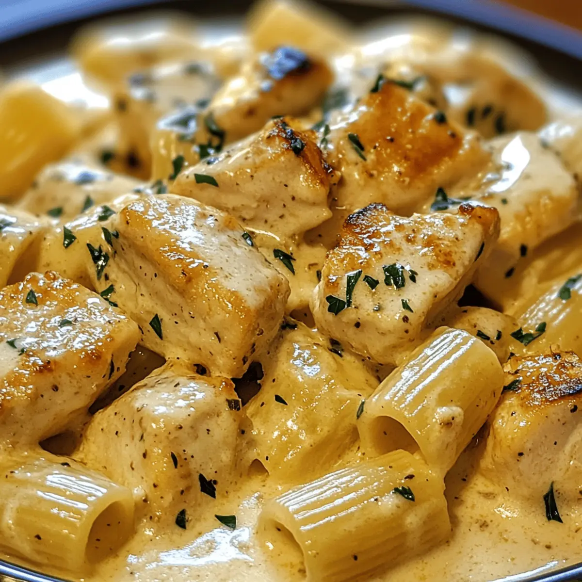 Das Aroma von frisch gebratenem Huhn und röstartigem Knoblauch ist einfach unbeschreiblich. Wenn ich an mein Lieblingsessen denke, kommt mir sofort das cremige Knoblauchbutter-Huhn und Rigatoni in Parmesan-Soße in den Sinn. Dieses Rezept vereint die herzliche Wuchtigkeit von Comfort Food mit der Leichtigkeit schneller Zubereitung – perfekt für hektische Abende, wenn der Hunger groß und die Zeit knapp ist. Die kombinierte Cremigkeit der Sauce und die al dente Rigatoni machen jede Gabel zu einem kleinen festlichen Moment. Und das Beste? Du kannst es ganz nach deinem Geschmack variieren, indem du Zutaten wie Spinat oder getrocknete Tomaten hinzufügst. Bist du bereit, deine nächsten Pasta-Abenteuer zu starten? Warum wirst du dieses Rezept lieben? Einfachheit: Die Zubereitung ist denkbar einfach und benötigt nur grundlegende Kochkenntnisse, sodass du in kürzester Zeit ein köstliches Gericht auf den Tisch zaubern kannst. Vielfalt: Dieses Rezept lässt sich problemlos mit verschiedenen Zutaten anpassen. Ob du Spinat, getrocknete Tomaten oder andere Pastaformen wie Tagliatelle oder Penne verwendest, deiner Kreativität sind keine Grenzen gesetzt. Goldene Aromen: Die Kombination aus zartem Huhn, würzigem Knoblauch und reichhaltigem Parmesan entführt deine Geschmacksknospen auf eine köstliche Reise. Kurze Kochzeit: In nur 30 Minuten ist dieses cremige Knoblauchbutter-Huhn und Rigatoni in Parmesan-Soße ein schneller Genuss für stressige Wochentage. Familienfreundlich: Jeder wird es lieben! Dieses Gericht zieht mit seinem cremigen, herzhaften Geschmack selbst die wählerischsten Esser an. Entdecke auch die fantastischen Rezepte wie das Cremige Parmesan Hühnchen oder die Gnocchi Mit Grürem Spargel Und Parmesan für weitere genussvolle Überraschungen! Cremiges Knoblauchbutter-Huhn und Rigatoni Zutaten Für das Huhn Hähnchenbrust – bietet eine herzhafte Basis für das Gericht; du kannst auch Hähnchenschenkel verwenden für mehr Saftigkeit. Knoblauch – bringt aromatische Tiefe; frische Zehen sorgen für den besten Geschmack. Butter – schafft eine cremige Sauce; kann durch Olivenöl für eine leichtere Variante ersetzt werden. Für die Pasta Rigatoni – die perfekte Pasta-Basis; alternativ sind Tagliatelle oder Penne ebenfalls hervorragend geeignet. Für die Sauce Parmesankäse – sorgt für die cremige, käsehaltige Sauce; Reggiano wird für seine Reichhaltigkeit empfohlen, aber Pecorino sorgt für einen schärferen Geschmack. Salz & Pfeffer – verbessern den Geschmack; nach Belieben anpassen. Chiliflocken (optional) – fügt eine scharfe Note hinzu; weglassen für ein milderes Gericht. Für Variationen Spinat oder getrocknete Tomaten (optional) – ideal für zusätzlichen Geschmack und Nährstoffe; diese Zutaten machen das Gericht noch bunter. Dieses Rezept für Cremiges Knoblauchbutter-Huhn und Rigatoni in Parmesan-Soße wird dich und deine Familie begeistern! Schritt-für-Schritt-Anleitung für Cremiges Knoblauchbutter-Huhn und Rigatoni in Parmesan-Soße Step 1: Pasta Kochen Bringe einen großen Topf mit gesalzenem Wasser zum Kochen. Gib die Rigatoni hinein und koche sie gemäß den Anweisungen auf der Verpackung, bis sie al dente sind, was normalerweise etwa 10–12 Minuten dauert. Sobald die Pasta fertig ist, gieße sie sorgfältig ab und lasse sie kurz ruhen, damit das Wasser abtropfen kann. Step 2: Huhn Vorbereiten In einer großen Pfanne erhitzt du bei mittlerer Hitze 2 Esslöffel Butter. Füge die fein gehackten Knoblauchzehen hinzu und brate sie 1–2 Minuten an, bis sie goldbraun und aromatisch sind. Achte darauf, dass der Knoblauch nicht verbrennt, da er sonst bitter wird. Step 3: Huhn Braten Das gewürzte Hähnchenbrustfilet in die Pfanne geben und bei mittlerer Hitze 6–8 Minuten auf jeder Seite braten, bis es goldbraun und vollständig durchgegart ist. Du kannst ein Fleischthermometer verwenden, um sicherzustellen, dass die Innentemperatur 75 °C erreicht hat. Danach die Hähnchenstücke auf ein Schneidebrett legen und kurz ruhen lassen. Step 4: Sauce Kombinieren Kehre die gekochten Rigatoni in die Pfanne, in der das Huhn zubereitet wurde. Reduziere die Hitze auf niedrig und füge 100 g frisch geriebenen Parmesan hinzu. Rühre alles gut um, sodass die Rigatoni gleichmäßig mit der cremigen Sauce überzogen werden und der Käse schmilzt. Step 5: Optionale Zutaten Hinzufügen Falls gewünscht, füge jetzt frischen Spinat oder getrocknete Tomaten hinzu und rühre alles gut um, bis der Spinat verwelkt ist, was etwa 1–2 Minuten dauert. Diese Zutaten bringen zusätzliche Farbe und Geschmack in dein Cremiges Knoblauchbutter-Huhn und Rigatoni in Parmesan-Soße. Step 6: Anrichten und Servieren Verteile das cremige Gericht auf Tellern und garniere es mit zusätzlichem Parmesan und einem Hauch von Chiliflocken für einen leichten Kick. Serviere das Gericht sofort, damit die Aromen frisch und die Sauce schön cremig bleiben. Vorbereitungen für das Cremige Knoblauchbutter-Huhn und Rigatoni in Parmesan-Soße Diese Cremiges Knoblauchbutter-Huhn und Rigatoni in Parmesan-Soße ist nicht nur ein schnelles Gericht, sondern auch ideal für die Vorbereitung. Du kannst die Hähnchenstücke und den Knoblauch bis zu 24 Stunden im Voraus marinieren, um die Aromen zu intensivieren. Koche die Rigatoni ebenfalls vor und bewahre sie in einem luftdichten Behälter im Kühlschrank auf – so bleiben sie bis zu 3 Tage frisch. Wenn du bereit bist zu servieren, erhitze die Hähnchenbrust in der Pfanne, füge die Pasta und den frisch geriebenen Parmesan hinzu und verrühre alles bei niedriger Hitze. Achte darauf, die Hitze niedrig zu halten, um die cremige Konsistenz der Sauce zu erhalten. So hast du in kurzer Zeit ein köstliches Gericht auf dem Tisch! Expertentipps für Cremiges Knoblauchbutter-Huhn und Rigatoni Die perfekte Pasta: Koche die Rigatoni nur bis sie al dente sind; sie sollten bissfest bleiben, um die Sauce optimal aufzunehmen. Aromatischer Knoblauch: Vermeide verbrannten 
