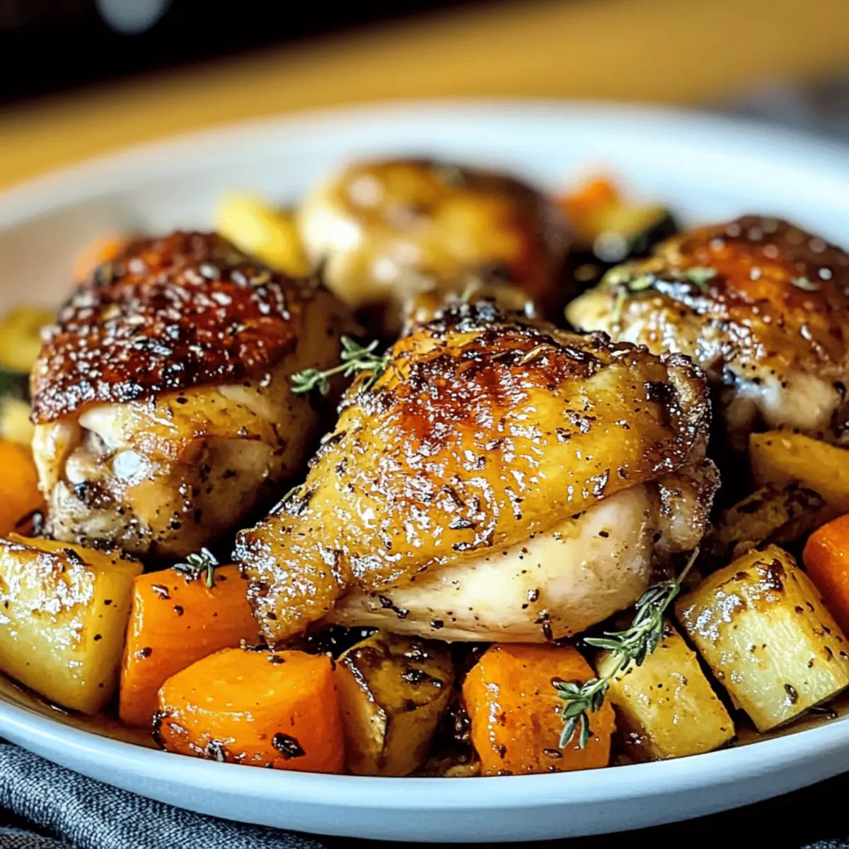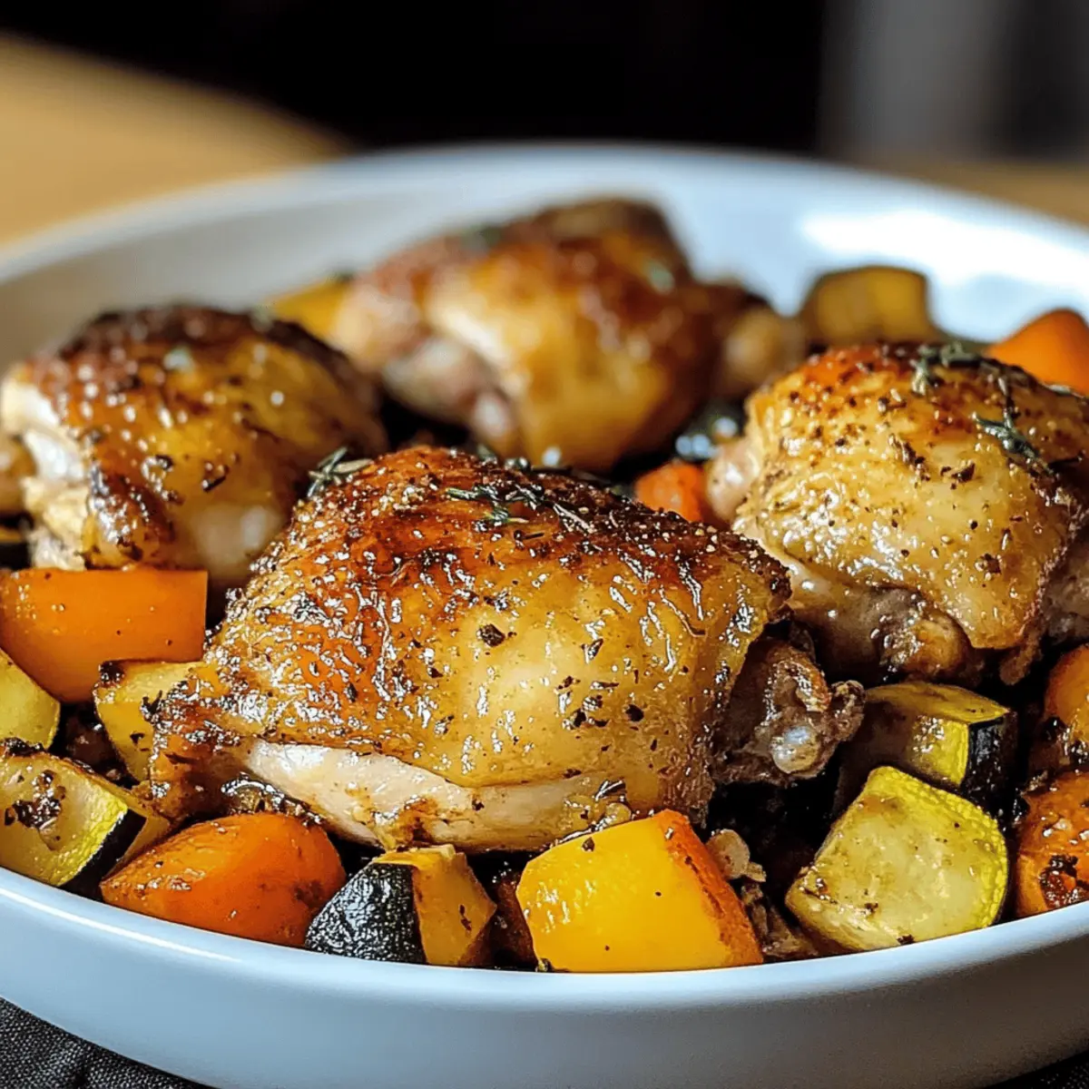 Stell dir vor, der herrliche Duft von goldbraunem Hühnchen und frisch geröstetem Gemüse zieht durch deine Küche, während du den Abend mit der Familie beginnst. Bei meinem Rezept für knusprige Hähnchenschenkel mit Ofen-Gemüse kannst du nicht nur eine einfache und glutenfreie Mahlzeit zaubern, sondern auch ein Gericht, das im Handumdrehen zubereitet ist und garantiert jeden begeistern wird! Dieses One-Pan-Dinner verwandelt einen gewöhnlichen Wochentag in etwas Besonderes, denn die Kombination aus saftigem Fleisch und aromatischen Gemüse macht jeden Bissen zu einem Fest. Bist du bereit, deine Liebsten mit diesem köstlichen Familienessen zu überraschen? Warum wird dieses Gericht dein Hit? Einfachheit: Das Rezept für knusprige Hähnchenschenkel mit Ofen-Gemüse erfordert nur minimalen Aufwand und ist ideal für vielbeschäftigte Tage, an denen du trotzdem ein köstliches Familienessen zubereiten möchtest. Vielseitigkeit: Du kannst die Gemüseauswahl ganz nach deinem Geschmack anpassen, sei es mit saisonalen Zutaten oder deiner Lieblingskombination – das macht jede Zubereitung einzigartig! Herzhafter Geschmack: Durch die perfekt gewürzten Hähnchenschenkel und das geröstete Gemüse entsteht eine unvergleichliche Geschmacksreise, die garantiert alle am Tisch begeistern wird. Einfache Reinigung: Da alles in einer Pfanne zubereitet wird, bleibt der Abwasch überschaubar – ideal für einen entspannten Abend mit der Familie. Gesund und nährend: Diese glutenfreie Mahlzeit liefert wichtige Nährstoffe und ist eine großartige Möglichkeit, frisches Gemüse in die Familienkost zu integrieren. Gönn dir und deiner Familie dieses einfache, aber beeindruckende Rezept und entdecke die Freude, die gemeinsames Kochen mit sich bringt! Zutaten für knusprige Hähnchenschenkel mit Ofengemüse • Hähnchenschenkel: Saftige und schmackhafte Hauptzutat. Kann durch Hähnchenkeulen oder Hähnchenbrust mit Haut ersetzt werden für eine andere Textur. • Olivenöl: Sorgt für Feuchtigkeit und hilft dabei, die Haut knusprig zu machen. Unentbehrlich zum Rösten des Gemüses. • Paprikapulver: Verleiht dem Gericht eine milde Süße. Kann durch Currypulver ersetzt werden für ein anderes Geschmacksprofil. • Knoblauchpulver: Gibt dem Gericht Tiefe im Geschmack. Frischer Knoblauch kann als Alternative verwendet werden. • Thymian/Rosmarin: Frische Kräuter, die das Aroma des Gerichts heben. Für Abwechslung können auch Petersilie oder andere Lieblingskräuter verwendet werden. • Salz & Pfeffer: Unentbehrlich zum Würzen. Passt den Salzgehalt je nach Geschmack an. • Gemüse (Kartoffeln, Karotten, Zucchini, Paprika, Zwiebel): Bringt Textur und Farbe; zentral für das One-Pan-Prinzip. Alternativen sind Süßkartoffeln, Brokkoli oder Auberginen für vielfältige Gemüsesorten. Schritt-für-Schritt-Anleitung für knusprige Hähnchenschenkel mit Ofengemüse Step 1: Ofen vorheizen Heize deinen Ofen auf 200 °C (392 °F) bei herkömmlicher Hitze oder 180 °C (356 °F) bei Umluft vor. Diese Temperatur sorgt dafür, dass die Hähnchenschenkel gleichmäßig garen und die Haut knusprig wird. Während der Ofen aufheizt, kannst du mit der Vorbereitung der Gewürzmischung beginnen. Step 2: Gewürzmischung zubereiten In einer Schüssel vermischst du Olivenöl, Paprikapulver, Knoblauchpulver, Thymian, Salz und Pfeffer. Die Mischung sollte gut durchmischt sein, um die Aromen zu entfalten. Diese Gewürzmischung wird gleichmäßig auf den Hähnchenschenkeln verteilt, um ihnen den wunderbaren Geschmack zu verleihen. Step 3: Hähnchenschenkel würzen Reibe die Gewürzmischung großzügig auf die Hähnchenschenkel, sodass die Haut und das Fleisch gleichmäßig bedeckt sind. Achte darauf, auch die Unterseite leicht mit Gewürzen zu versehen, damit der gesamte Hähnchenschenkel beim Backen aromatisch ist. Step 4: Gemüse vorbereiten Schneide das Gemüse, wie Kartoffeln, Karotten, Zucchini und Paprika, in mundgerechte Stücke. Gib das Gemüse in eine Schüssel und vermische es mit Olivenöl, Salz, Pfeffer und optional einem Spritzer Zitronensaft. Dies verleiht dem Ofengemüse zusätzlichen Geschmack und Frische. Step 5: Gemüse anrichten Verteile das vorbereitete Gemüse gleichmäßig auf einem Backblech und platziere die gewürzten Hähnchenschenkel darauf, mit der Hautseite nach oben. Achte darauf, dass genug Platz zwischen den Hähnchenschenkeln und dem Gemüse bleibt, damit die Luft zirkulieren kann und alles gleichmäßig gart. Step 6: Backen Backe das Gericht für 40 bis 45 Minuten im vorgeheizten Ofen. Achte darauf, dass die Haut der Hähnchenschenkel goldbraun und knusprig wird. Die Innentemperatur des Hähnchens sollte mindestens 75 °C (167 °F) erreichen, um sicherzustellen, dass es durchgegart ist. Step 7: Grillfunktion aktivieren Aktiviere die Grillfunktion deines Ofens in den letzten 5 Minuten der Backzeit. Dies sorgt dafür, dass die Haut der Hähnchenschenkel noch knuspriger wird und einen herrlich appetitlichen Glanz erhält. Halte die Ofentür während dieser Zeit im Auge, um ein Anbrennen zu verhindern. Step 8: Ruhen lassen Nimm das Blech aus dem Ofen und lasse die Hähnchenschenkel für etwa 5 Minuten ruhen, bevor du sie servierst. Dies ist wichtig, damit sich die Säfte im Fleisch setzen und die Hähnchenschenkel saftig bleiben. Vermeide es, das Hähnchen zu bedecken, um die knusprige Haut zu bewahren. Variationen & Alternativen für knusprige Hähnchenschenkel mit Ofengemüse Wage es, deiner kreativen Seite freien Lauf zu lassen und passe dieses Rezept ganz nach deinem Geschmack an! Glutenfrei: Achte darauf, dass alle verwendeten Gewürze und Zutaten glutenfrei sind, um eine sichere Mahlzeit zu gewährleisten. Piccante Variante: Füge eine Prise Cayennepfeffer oder Chiliflocken hinzu, um deinem Gericht eine angenehme Schärfe zu verleihen. Mediterrane Note: Verwende italienische Kräuter wie Oregano und Basilikum statt Thymian und Rosmarin für einen herzhaften, aromatischen Twist. Vegan: Ersetz