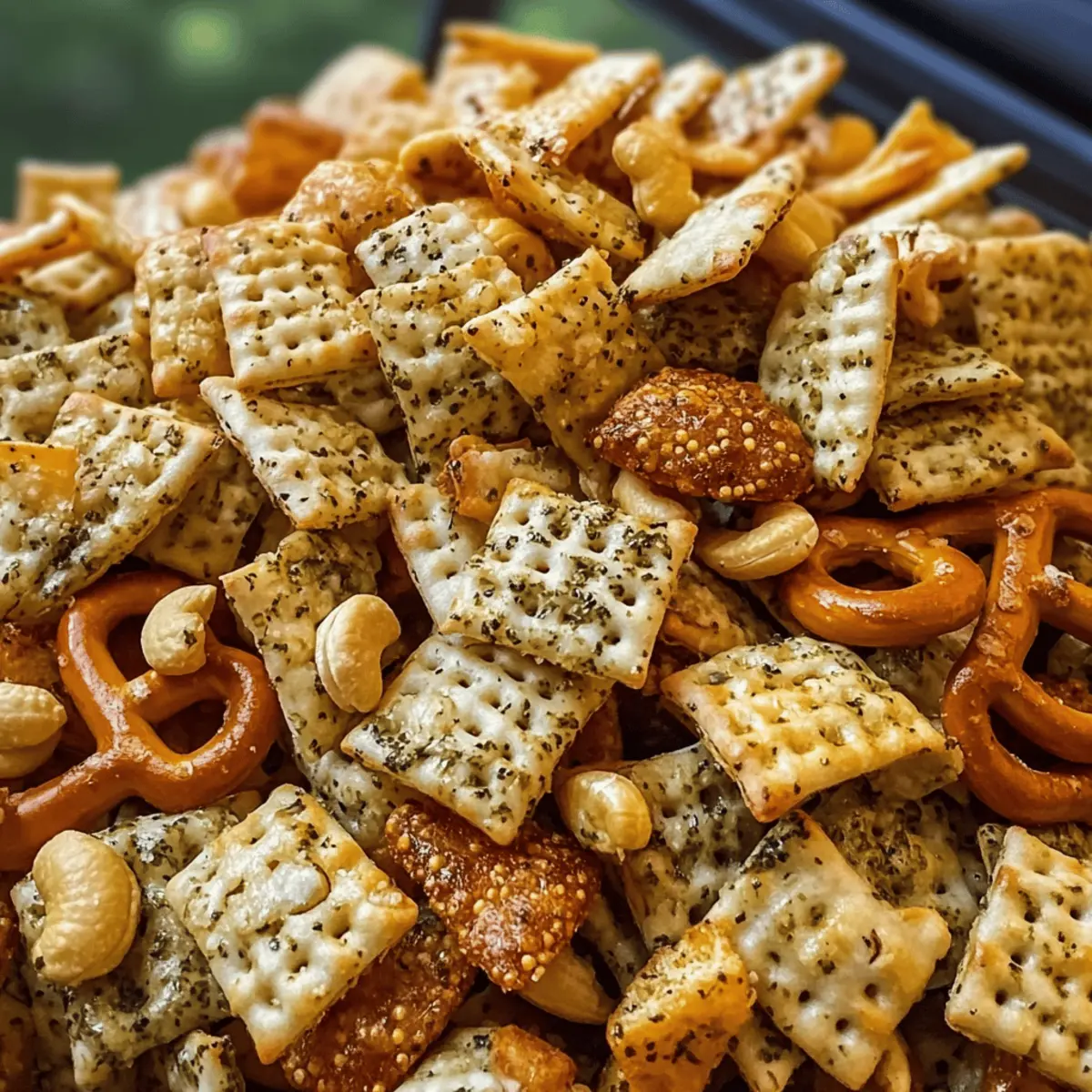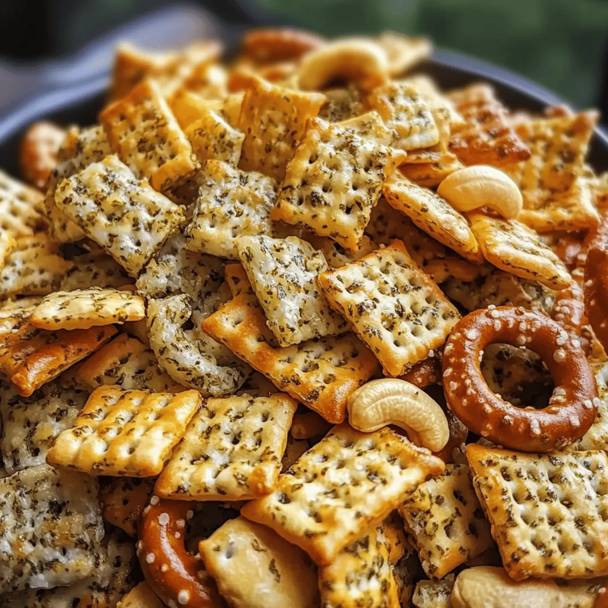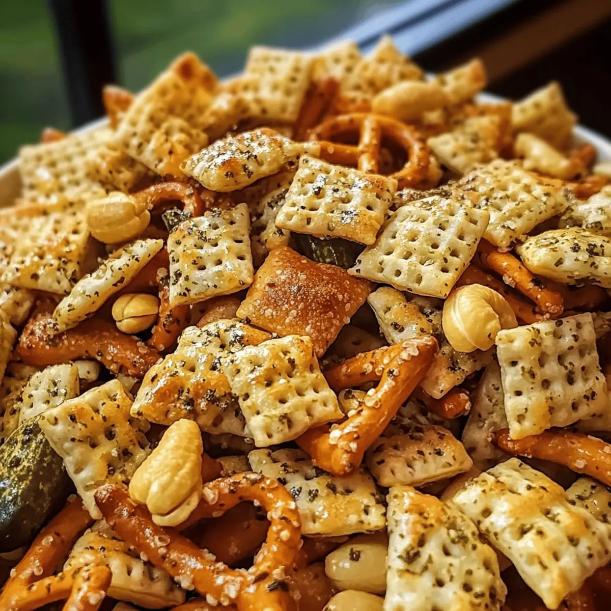 In einem kleinen Eckcafé habe ich neulich eine neue Leidenschaft entdeckt: Dillgurken Chex Mix. Während ich in die knusprigen Häppchen biss, überkam mich eine Welle von Geschmack – die perfekte Mischung aus salzigen, würzigen und leicht säuerlichen Noten. Unsere heutige Rezeptur vereint genau diese Aromen und verwandelt das klassische Chex Mix in einen unwiderstehlichen, tangy Snack, der sowohl bei Partys als auch beim entspannten Filmabend begeistert. Mit der schnellen Zubereitung und der Möglichkeit, die Zutaten nach Belieben anzupassen, ist dieser Snack nicht nur ein Hit, sondern auch ideal zum Verschenken – wer könnte da schon Nein sagen? Welche kreativen Tipps und Tricks werden Sie ausprobieren, um Ihr eigenes Dillgurken Chex Mix zu verfeinern? Warum werden Sie dieses Rezept lieben? Einzigartige Kombination: Dillgurken Chex Mix bringt die aufregende Mischung aus salzig und tangig auf einen neuen Level. Einfache Zubereitung: In nur wenigen Schritten erhalten Sie einen köstlichen Snack, der im Handumdrehen fertig ist. Anpassbare Zutaten: Sie können mühelos die Zutaten variieren, beispielsweise mit verschiedenen Nüssen oder Gewürzen, um Ihren persönlichen Geschmack zu treffen. Perfekt für jede Gelegenheit: Egal ob beim Familienabend oder als Party-Snack, dieser Mix begeistert jeden. Ideal zum Verschenken: Verpackt in einem hübschen Glas, ist es ein liebevolles Geschenk für Freunde oder Familie. Experimentieren Sie auch gerne mit unseren anderen Snack-Rezepten wie dem hausgemachten Ranch Dip. Dillgurken Chex Mix Zutaten • Entdecken Sie die perfekte Kombination für einen knackigen Snack! Für den Mix Chex Cereal – sorgt für die nötige Knusprigkeit und Struktur; verwenden Sie glutenfreies Müsli für eine glutenfreie Variante. Brezeln – fügen salzige Knusprigkeit hinzu; können durch Reiswaffeln als glutenfreie Alternative ersetzt werden. Bagel Chips – sorgen für eine extra knusprige Textur; bei Bedarf können Tortilla-Chips genutzt werden. Cashews – verleihen Nussigkeit und reichhaltigen Geschmack; ersetzen Sie sie durch Ihre Lieblingsnüsse oder -samen. Für die Würze Dillgurken-Saft – sorgt für tangigen Geschmack; können bei Abwesenheit durch Essig ersetzt werden. Ranch-Gewürz – verstärkt die herzhafte Tiefe; Sie können auch eine selbstgemachte Ranch-Mischung verwenden. Butter – bindet den Mix und sorgt für eine cremige Konsistenz; verwenden Sie Olivenöl oder eine vegane Butteralternative für eine milchfreie Option. Experimentieren Sie mit diesen Zutaten und kreieren Sie Ihr ideales Dillgurken Chex Mix für jede Gelegenheit! Schritt-für-Schritt-Anleitung für Dillgurken Chex Mix Step 1: Ofen vorheizen Heizen Sie Ihren Ofen auf 120°C (250°F) vor. Diese niedrige Temperatur sorgt dafür, dass Ihr Dillgurken Chex Mix gleichmäßig knusprig wird. Ein gut vorgeheizter Ofen ist entscheidend, um die perfekte Textur beim Backen zu erreichen. Step 2: Zutaten mischen Nehmen Sie eine große Schüssel und geben Sie das Chex-Müsli, die Brezeln, die Bagel-Chips und die Cashews hinein. Vermengen Sie alles gut, sodass die verschiedenen Komponenten gleichmäßig verteilt sind. Diese Mischung bildet die Basis für Ihren knusprigen Snack, der für zahlreiche Gelegenheiten geeignet ist. Step 3: Würzmischung zubereiten In einer separaten Schüssel schmmelzen Sie Butter und mischen sie mit dem Dillgurken-Saft sowie dem Ranch-Gewürz. Rühren Sie alles gründlich um, bis sich die Zutaten gut verbunden haben. Diese würzige Mischung wird Ihrem Dillgurken Chex Mix den charakteristischen Geschmack verleihen, also achten Sie darauf, dass alles gut vermengt ist. Step 4: Würzmischung hinzufügen Gießen Sie die würzige Mischung über die trockenen Zutaten in der großen Schüssel. Verwenden Sie einen großen Löffel oder Spatel, um alles gründlich zu vermengen. Jeder Bissen sollte gleichmäßig beschichtet sein, da dies der Schlüssel zu einem geschmackvollen Dillgurken Chex Mix ist. Step 5: Auf dem Backblech verteilen Breiten Sie die Mischung gleichmäßig auf einem Backblech aus, das mit Backpapier ausgelegt ist. Stellen Sie sicher, dass die Zutaten nicht übereinanderliegen, damit sie gleichmäßig backen. Diese gleichmäßige Verteilung ist wichtig, um einen perfekten Crunch zu erreichen. Step 6: Backen Backen Sie die Mischung für etwa 1 Stunde im vorgeheizten Ofen. Denken Sie daran, alle 15 Minuten umzurühren. Diese regelmäßige Bewegung sorgt dafür, dass der Dillgurken Chex Mix gleichmäßig bräunt und knusprig wird. Achten Sie darauf, dass die Mischung goldbraun und knusprig aussieht, bevor Sie sie herausnehmen. Step 7: Abkühlen lassen Nehmen Sie das Backblech aus dem Ofen und lassen Sie den Dillgurken Chex Mix auf dem Blech abkühlen. Dies ist ein wichtiger Schritt, da die Mischung beim Abkühlen noch knuspriger wird. Geduld zahlt sich hier aus, um das beste Ergebnis zu erzielen, das auch perfekt zum Verschenken oder für Ihren nächsten Filmabend ist. Lagerung und Einfrieren von Dillgurken Chex Mix Raumtemperatur: Lagern Sie den Dillgurken Chex Mix in einem luftdichten Behälter bei Raumtemperatur, um die Frische und Knusprigkeit für bis zu 3 Tage zu erhalten. Kühlschrank: Falls nicht alles verzehrt wird, können Sie den Mix auch im Kühlschrank aufbewahren, achten Sie jedoch darauf, dass der Behälter gut verschlossen ist, um Feuchtigkeit zu vermeiden. Einfrieren: Für eine langfristige Lagerung kann der Dillgurken Chex Mix bis zu 2 Monate eingefroren werden. Geben Sie ihn in einen gefrierfesten Behälter und stellen Sie sicher, dass er gut verpackt ist. Wiederaufwärmen: Um den Crunch beim Servieren zurückzubringen, könnten Sie den gefrorenen Mix für etwa 10 Minuten bei 120°C (250°F) im Ofen aufbacken. Perfekte Vorbereitung für Ihren Dillgurken Chex Mix Dillgurken Chex Mix ist eine hervorragende Wahl für die schnelle Zubereitung von Snacks, die Sie bis zu 3 Tage im Voraus vorbereiten können! Bereiten Sie die trockenen Zutaten – 