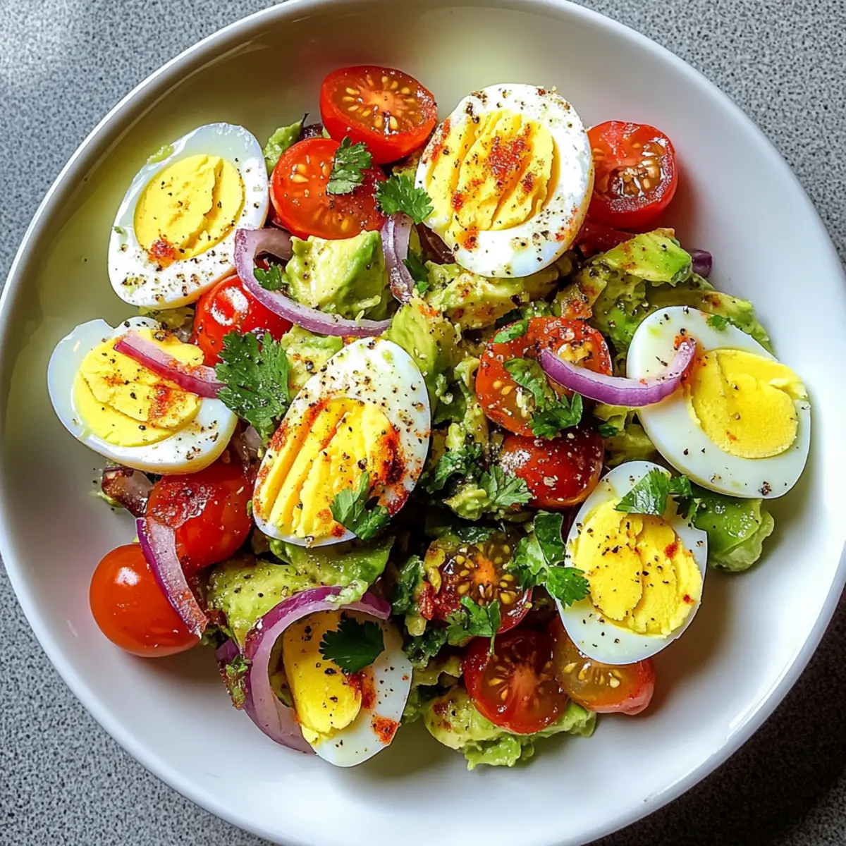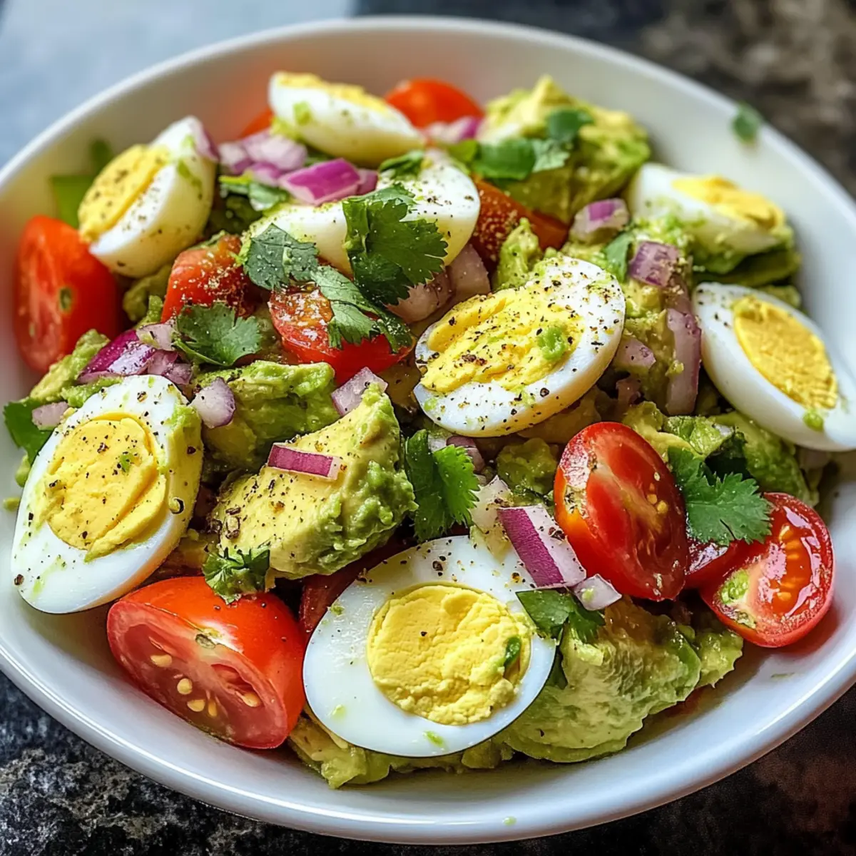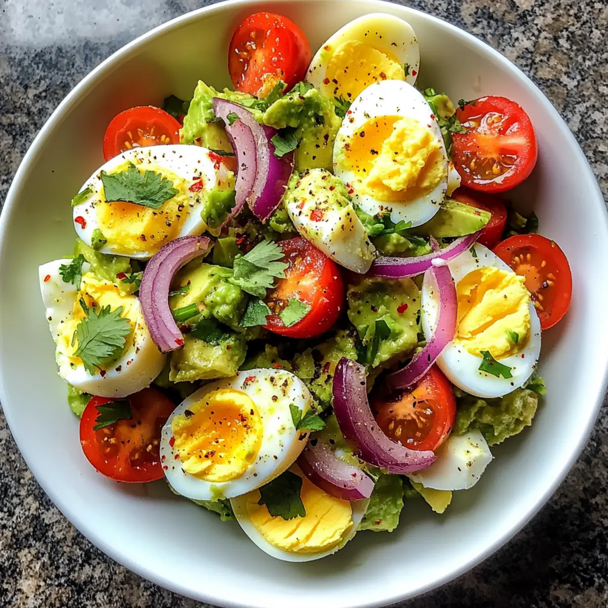 Es gibt Tage, an denen ich einfach Lust auf etwas Leckeres und Nahrhaftes habe, das mich nach dem Training wirklich belebt. Heute teile ich mein Rezept für einen Eiersalat mit Avocado, der nicht nur gesund ist, sondern auch im Handumdrehen zubereitet werden kann. Mit der Cremigkeit reifer Avocados und dem Protein aus hartgekochten Eiern ist diese Mahlzeit perfekt, um Energie zurückzugewinnen und den Hunger zu stillen. Egal, ob du ein Fitness-Enthusiast bist oder einfach nur nach einer schmackhaften und nahrhaften Idee suchst, dieser Salat wird dich begeistern. Und das Beste daran? Du kannst ihn ganz nach deinem Geschmack anpassen! Neugierig, was du alles hinzufügen kannst? Lass uns gemeinsam die Geschmackskombinationen entdecken! Warum wirst du diesen Eiersalat lieben? Einfachheit: Die Zubereitung ist kinderleicht und braucht nur grundlegende Kochkenntnisse. Frische Aromen: Die Kombination aus cremiger Avocado und zarten Eiern sorgt für ein geschmackliches Erlebnis, das jeden Bissen unvergesslich macht. Vielfältig: Du kannst ganz einfach weitere Zutaten hinzufügen, sei es Feta-Käse oder frische Kräuter, um neue Geschmäcker zu entdecken. Gesund und nährstoffreich: Dieser Salat ist reich an Proteinen und gesunden Fetten – perfekt, um nach dem Training wieder Energie zu tanken. Zeitersparnis: In weniger als 30 Minuten zubereitet, ist er die ideale Lösung für eine schnelle und gesunde Mahlzeit. Beliebt: Überzeuge deine Familie und Freunde mit diesem Rezept – es ist eine gesunde Option, die selbst die Schnellessen-Liebhaber begeistern wird! Eiersalat mit Avocado Zutaten Für den Eiersalat Große Eier – Sie liefern Protein und eine cremige Konsistenz; wähle große Eier für das beste Geschmackserlebnis. Reife Avocados – Bieten gesunde Fette und Cremigkeit; ersetze sie durch Guacamole für einen anderen Geschmack. Rote Zwiebel – Fügt eine angenehme Schärfe und Knackigkeit hinzu; kann durch gelbe oder grüne Zwiebeln ersetzt werden. Cherrytomaten – Bringen Süße und Säure; für einen anderen Geschmack, probiere gewürfelte Paprika als Alternative. Frischer Koriander – Sorgt für einen frischen Geschmack; wechsele zu Petersilie für eine mildere Note. Limettensaft – Fügt Helligkeit hinzu und verhindert das Braunwerden der Avocados; frischer Limettensaft ist empfohlen. Olivenöl – Verbessert die Geschmacksintensität; verwende Avocadoöl für eine alternative Fettquelle. Salz und Pfeffer – Verstärken die Aromen; nach persönlichem Geschmack anpassen. Rote Paprikaflocken (optional) – Fügen Schärfe hinzu; weglassen für einen milderen Geschmack. Für die Variation Grüne Erbsen – Fügen eine süße Note und zusätzliche Nährstoffe hinzu. Feta-Käse – Bringt einen herzhaften Geschmack, der gut mit der Cremigkeit der Avocado harmoniert. Quinoa – Ideal für mehr Textur und Ballaststoffe; macht den Salat noch sättigender. Salatblätter – Perfekt für eine kohlenhydratarme Option; serviere den Salat in einer Schüssel oder als Wrap. Schritt-für-Schritt-Anleitung für Eiersalat mit Avocado Step 1: Eier kochen Lege die großen Eier in einen Topf und bedecke sie mit kaltem Wasser. Bringe das Wasser bei mittlerer bis hoher Hitze zum Kochen. Sobald das Wasser blubbert, decke den Topf ab, nimm ihn vom Herd und lasse die Eier 10 bis 12 Minuten ruhen, damit sie fest werden. Step 2: Avocados vorbereiten Halbiere während die Eier kochen die reifen Avocados und schäle das Fruchtfleisch in eine Schüssel. Mit einer Gabel das Avocadofleisch leicht zerdrücken, bis es cremig, aber noch stückig ist. Diese cremige Basis wird die Hauptzutat für deinen Eiersalat mit Avocado sein, also achte darauf, dass sie nicht zu püriert wird. Step 3: Zutaten mischen Füge nun die gehackte rote Zwiebel, die halbierten Cherrytomaten, den frischen Koriander sowie den Limettensaft und das Olivenöl in die Schüssel mit der Avocado hinzu. Mische alles vorsichtig mit einem Löffel, bis die Zutaten gut verteilt sind und eine schöne, bunte Mischung entsteht. Step 4: Eier abkühlen und schälen Gebe die gekochten Eier direkt nach der Ruhezeit in eine Schüssel mit Eiswasser, um den Kochprozess zu stoppen und sie abzukühlen. Nach etwa 5 Minuten kannst du die Eier schälen. Sie sollten jetzt leicht zu handhaben sein und die Schale sollte sich gut lösen lassen. Step 5: Eier schneiden und hinzufügen Schneide die geschälten Eier in kleine Stücke oder Scheiben, je nachdem, wie du deinen Eiersalat mit Avocado magst. Füge die Ei-Stücke in die Schüssel mit der Avocado-Mischung hinzu. Hier wird alles zusammengebracht und bekommt eine schöne, nahrhafte Basis. Step 6: Würzen und servieren Würze den Eiersalat mit Avocado mit Salz, Pfeffer und, wenn gewünscht, roten Paprikaflocken. Mische alles vorsichtig, damit die Avocados nicht vollständig zerdrückt werden. Taste abschließend die Mischung und passe die Gewürze nach Belieben an. Serviere den Salat frisch und genieße die bunten Aromen! Vorbereiten für den Eiersalat mit Avocado Der Eiersalat mit Avocado eignet sich hervorragend für die Vorbereitung. Du kannst die Eier bis zu 3 Tage im Voraus hart kochen und im Kühlschrank aufbewahren. Die Avocados hingegen solltest du erst kurz vor dem Servieren zubereiten, da sie schnell bräunlich werden; du kannst aber bereits die Zwiebel, Koriander und Tomaten klein schneiden und ebenfalls bis zu 24 Stunden im Voraus lagern. Um die Qualität des Salats zu erhalten, mische den Limettensaft mit der Avocado, da er die Farbe bewahrt. Wenn du bereit bist zu servieren, füge einfach die vorbereiteten Zutaten zu der Avocado-Mischung hinzu und genieße ein nahrhaftes und schmackhaftes Gericht, das dir viel Zeit spart! Tipps für den besten Eiersalat mit Avocado Eier kühlen: Kühl die hartgekochten Eier in Eiswasser, um Überkochen zu vermeiden und das Schälen zu erleichtern. Frische Limette: Verwende frischen Limettensaft für mehr Geschmack; abgefüllter Saft kann das Aroma verändern. Avocado f