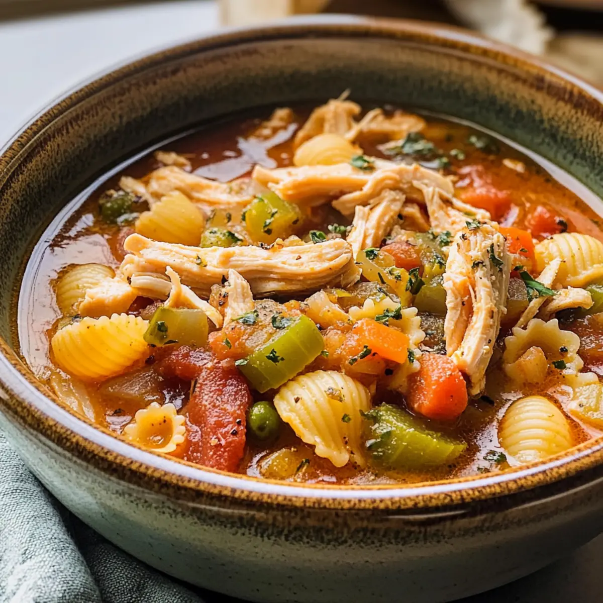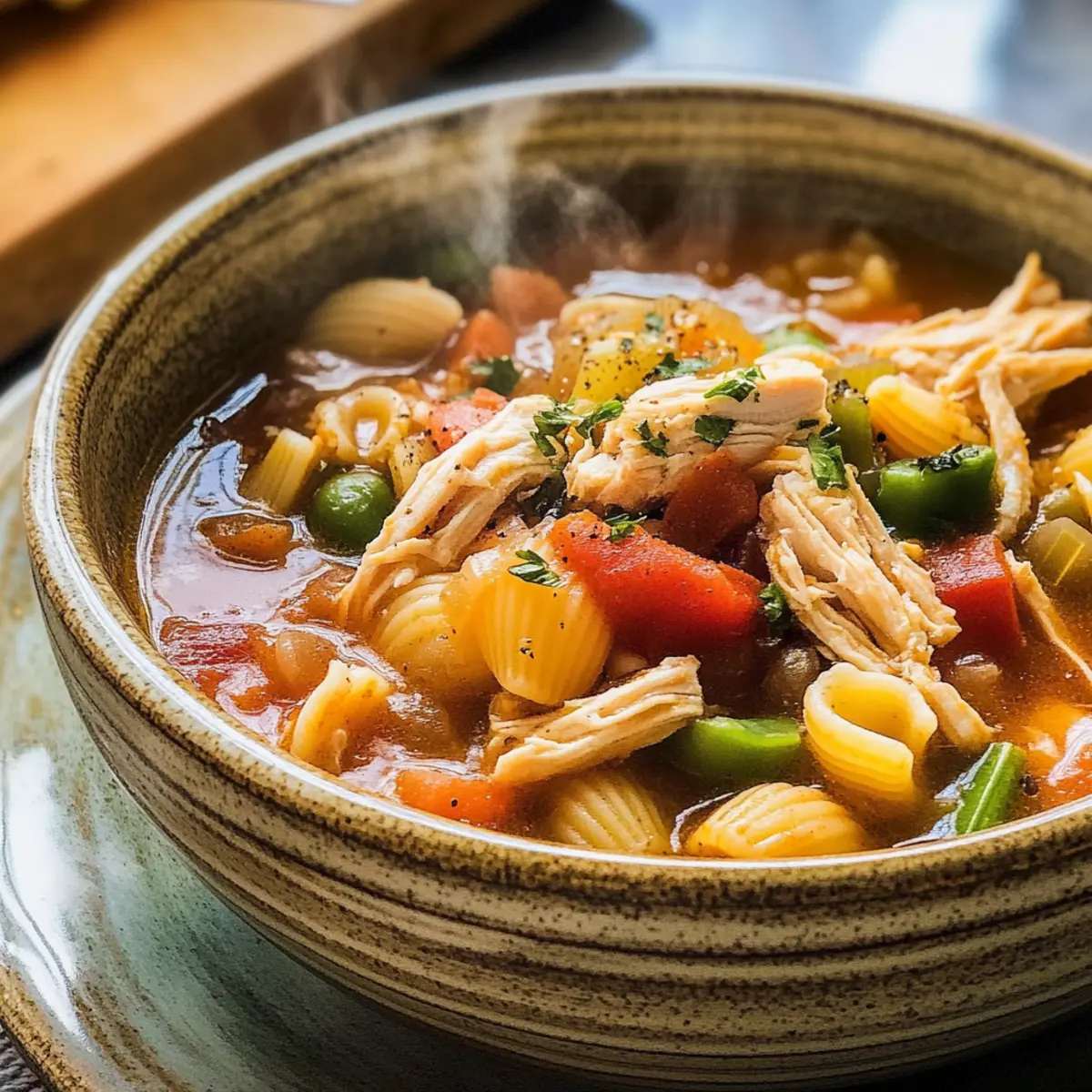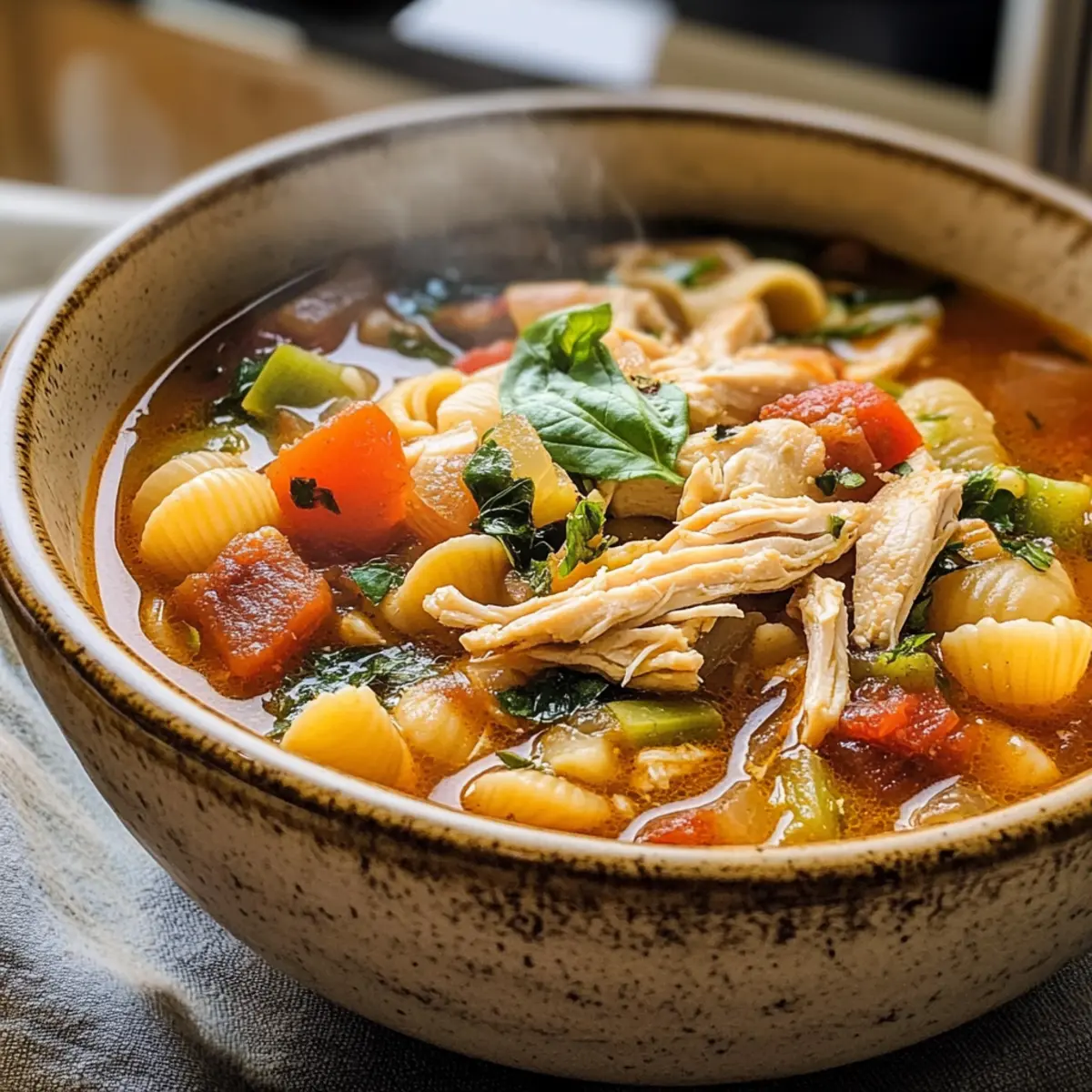Die Ein-Topf-Hühnchen-Minestrone-Suppe ist ein herzhaftes und gesundes Gericht, perfekt für kalte Winterabende.
