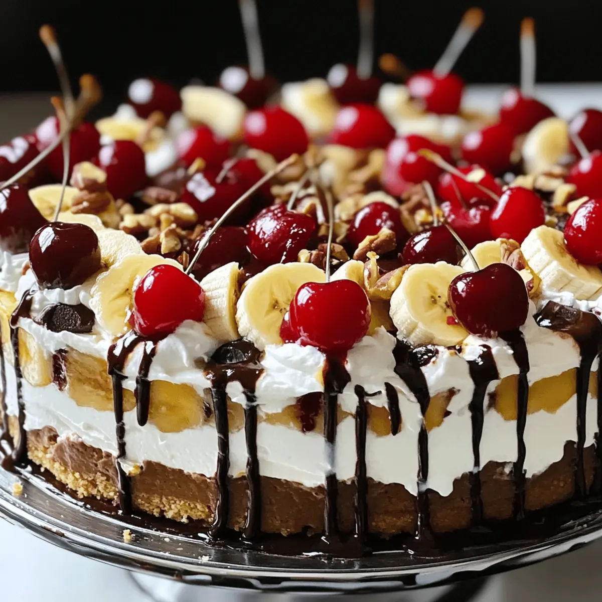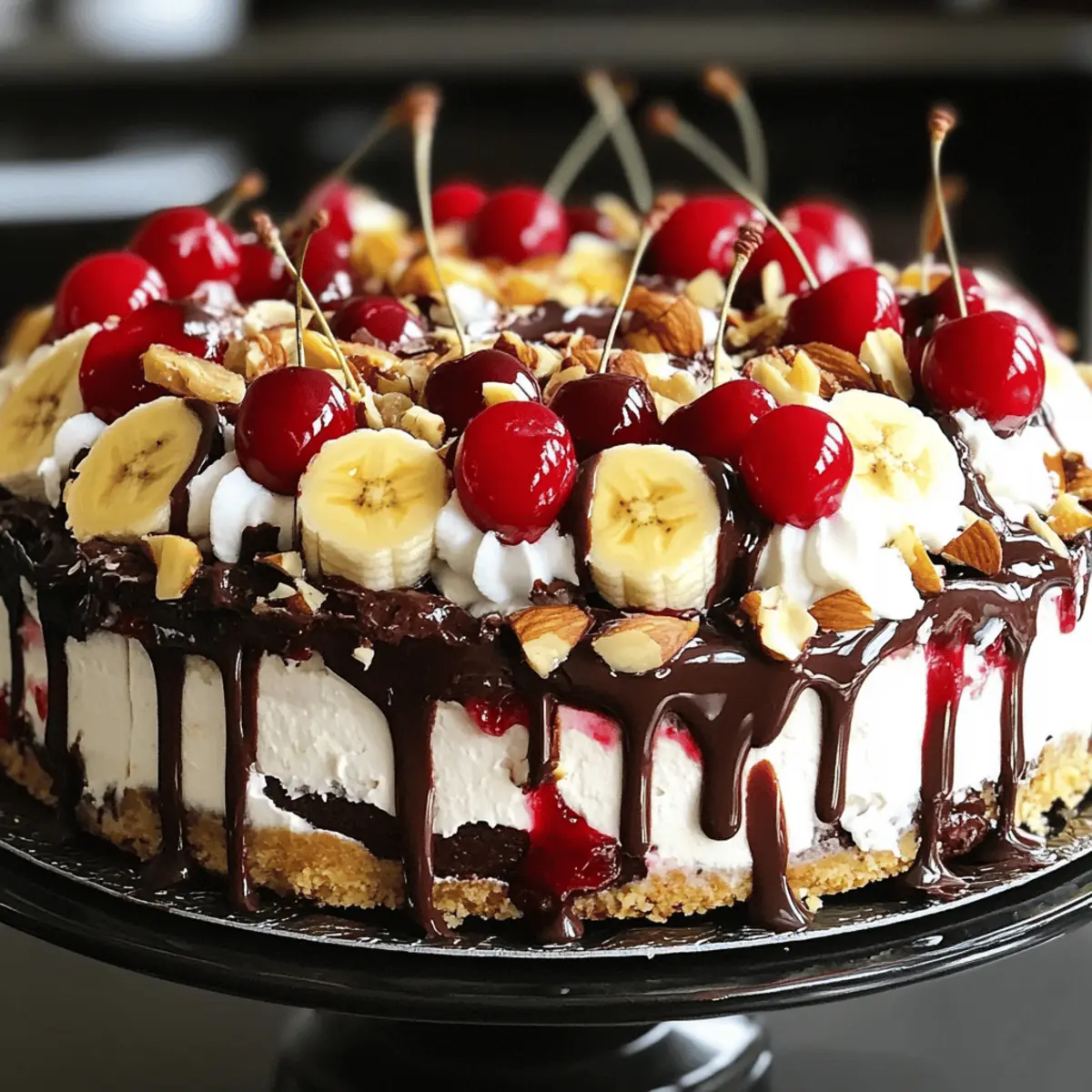 Wenn die Temperaturen steigen und die Lust auf etwas Süßes kommt, ist meine einfache Bananensplitttorte genau das, was ich brauche. Dieses erfrischende Dessert macht das Gelüst nach dem klassischen Eisbecher zu einem Kinderspiel, ohne auch nur den Ofen anzuschmeißen. In Kürze zusammengestellt, vereint es die cremigen Schichten von Banane, Sahne und Schokolade zu einem unwiderstehlichen Genuss, der perfekt für gesellige Sommertage geeignet ist. Und das Beste? Es ist nicht nur ein Genuss für den Gaumen, sondern auch eine kinderleichte, schnelle Zubereitung, die deinen Freunden und Familie sicher ein Lächeln ins Gesicht zaubert. Bereit, das Geheimnis einer köstlichen und unkomplizierten Nachspeise zu entdecken? Warum wirst du diese Bananensplitttorte lieben? Erfrischend und perfekt für den Sommer! Dieses Rezept vereint die Aromen eines klassischen Bananensplits ohne den Aufwand des Backens. Einfach zuzubereiten mit nur wenigen Zutaten, ideal für spontane Sommerpartys. Vielseitig anpassbar, kannst du frische Früchte oder deine Lieblingssaucen hinzufügen, um deine eigene Note zu setzen. Köstlich und reichhaltig, die cremigen Schichten verführen jeden Gaumen. Schnell gemacht, lässt sich die Torte bequem im Voraus zubereiten – perfekt für stressfreie Momente! Einfache Bananensplitttorte Zutaten • Für alle Naschkatzen und Kochliebhaber, die etwas erfrischend Süßes suchen! Für den Boden Butterkekse – Grundstruktur für die Torte; du kannst sie auch durch glutenfreie Kekse ersetzen. Butter – Bindet die Keksbrösel zusammen; achte darauf, dass sie geschmolzen ist, um die Mischung zu erleichtern. Für die Füllung Sahne – Sorgt für reichhaltige Cremigkeit; verwende schwere Sahne oder veganen Ersatz wie Kokoscreme. Bananen – Hauptgeschmacksträger; nutze reife, aber feste Bananen, damit die Torte nicht matschig wird. Schokolade – Fügt eine luxuriöse Schokoladenschicht hinzu; wähle hochwertige Zartbitterschokolade (mindestens 70% Kakao) für den besten Geschmack. Für die Dekoration Kirschen – Für eine fruchtige Note und schöne Dekoration. Karamellsauce – Eine süße Ergänzung zur Torte; eignet sich perfekt zum Träufeln. Nüsse – Für zusätzlichen Crunch und Geschmack, einfach nach Belieben verwenden. Diese einfache Bananensplitttorte ist somit ein schneller Genuss für heiße Sommertage und verwandelt jede Zusammenkunft in ein süßes Erlebnis! Schritt-für-Schritt-Anleitung für die einfache Bananensplitttorte Step 1: Bereite den Boden vor Zerbrösle 300 g Butterkekse in einer großen Schüssel, bis sie feine Krümel sind. Schmelze 150 g Butter und mische sie gut mit den Keksbröseln. Drücke die Mischung in eine mit Backpapier ausgelegte Springform (Ø 24 cm) gleichmäßig fest, sodass ein fester Boden entsteht. Stelle die Form dann für etwa 15 Minuten in den Kühlschrank, damit der Boden fest wird. Step 2: Schlage die Sahne Gieße 500 ml Sahne in eine Rührschüssel und schlage sie mit einem Handmixer auf hoher Stufe, bis sich steife Spitzen bilden. Achte darauf, die Sahne nicht zu überschlagen, damit sie cremig bleibt. Verwende die Hälfte der geschlagenen Sahne, um sie gleichmäßig über den gekühlten Boden der Bananensplitttorte zu verteilen, und glätte sie mit einem Spatel. Step 3: Füge die Bananenschicht hinzu Schäle 2-3 reife, aber feste Bananen und schneide sie in dünne Scheiben. Ordne die Bananenscheiben gleichmäßig über der Sahneschicht an und achte darauf, dass sie gut verteilt sind. Dies sorgt für einen frischen Geschmack und eine schöne Farbe in deiner einfachen Bananensplitttorte. Daraufhin kommt die restliche geschlagene Sahne als zweite Schicht obendrauf. Step 4: Kühle die Torte Decke die Form mit Frischhaltefolie ab und stelle sie für mindestens 4 Stunden in den Kühlschrank, damit die Torte fest wird. Überprüfe nach der Kühlzeit die Konsistenz, indem du leicht auf die Oberfläche drückst; sie sollte fest, aber noch cremig sein. Diese Kühlzeit verbessert auch die Aromen, sodass die Bananensplitttorte köstlich schmeckt. Step 5: Dekoriere die Torte Vor dem Servieren schmilzt du 100 g hochwertige Zartbitterschokolade und träufelst sie gleichmäßig über die oberste Schicht der Torte. Du kannst optional Kirschen oder Nüsse als Dekoration hinzufügen, um der einfachen Bananensplitttorte eine besondere Note zu verleihen. Stelle sicher, dass die Schokolade etwas abkühlt, bevor du sie aufträgst, damit sie nicht verläuft. Step 6: Serviere die Bananensplitttorte Sobald die Dekoration fertig ist, schneide die Torte mit einem warmen Messer in Stücke und serviere sie sofort. Achte darauf, die Resttorte im Kühlschrank aufzubewahren, damit sie frisch bleibt. Diese einfache Bananensplitttorte ist der perfekte Genuss für heiße Sommertage und sicher ein Hit bei deinen Gästen! Was passt zu einer einfachen Bananensplitttorte? Die Kombination aus kühler Süße und cremigen Schichten macht die einfache Bananensplitttorte zum perfekten Genuss an heißen Sommertagen. Eisgekühlter Kaffee: Dieser aromatische Drink sorgt für eine erfrischende Begleitung und bringt die Kaffeeliebhaber zum Strahlen. Die sanften Kaffeearomen harmonieren großartig mit der süßen Torte. Zitronenlimonade: Eine spritzige Limonade bringt einen Hauch von Säure ins Spiel und sorgt für einen erfrischenden Kontrast zu den süßen Schichten der Torte. Die fruchtige Note ergänzt das Dessert perfekt. Früchte der Saison: Ein frischer Obstsalat mit Erdbeeren, Kiwi und Ananas fügt zusätzliche Frische hinzu und sorgt für einen bunten, knackigen Genuss. Die Sommerfrüchte bringen natürliche Süße und Textur ins Spiel. Vanilleeis: Eine Kugel cremiges Vanilleeis, die auf der Torte schmilzt, macht das Geschmackserlebnis noch dekadenter. Das Eis verbindet sich harmonisch mit den Bananen und der Sahne. Nüsse: Geröstete Mandeln oder Walnüsse bieten einen köstlichen Crunch und einen nussigen Geschmacksspielraum. Diese Ergänzung sorgt für interessante 