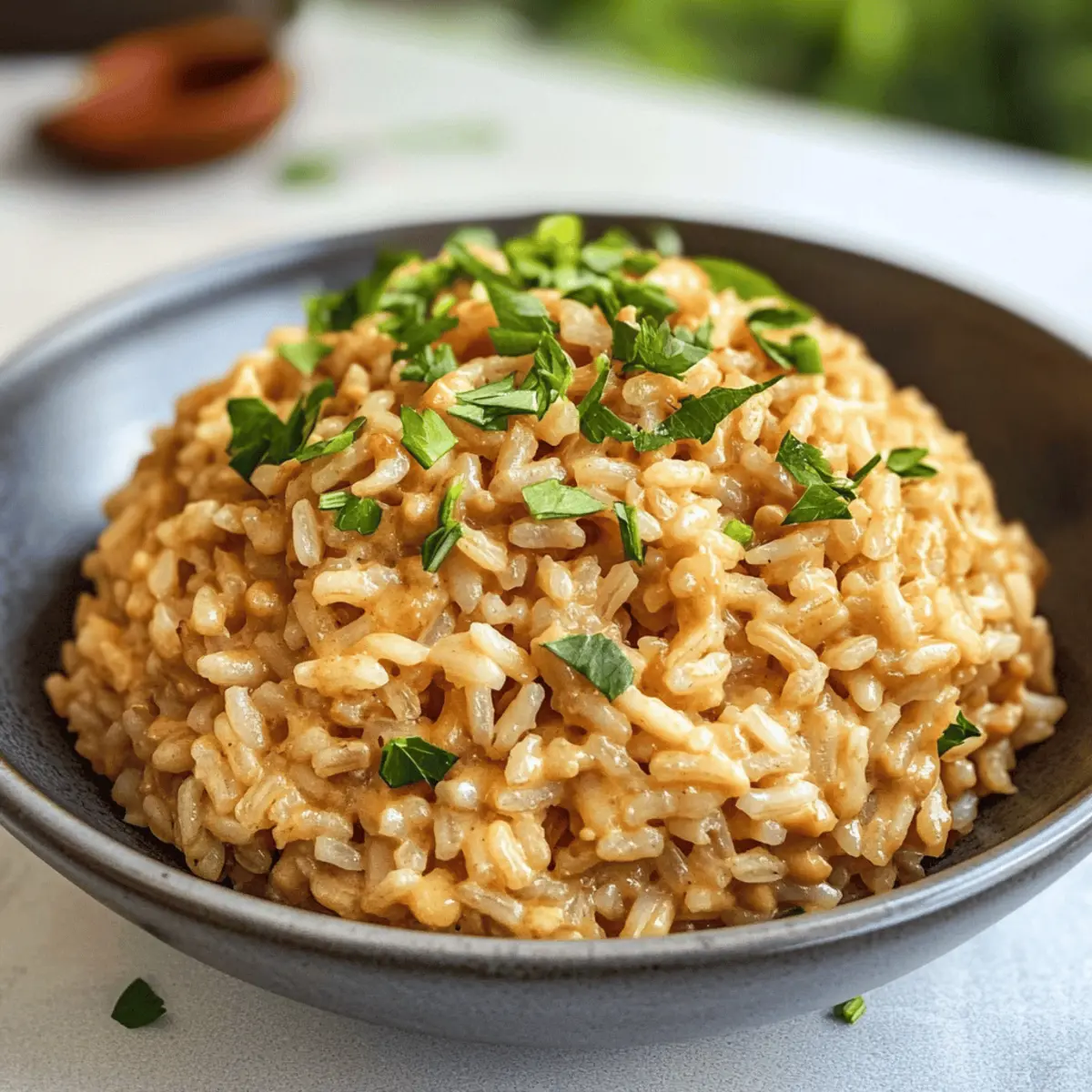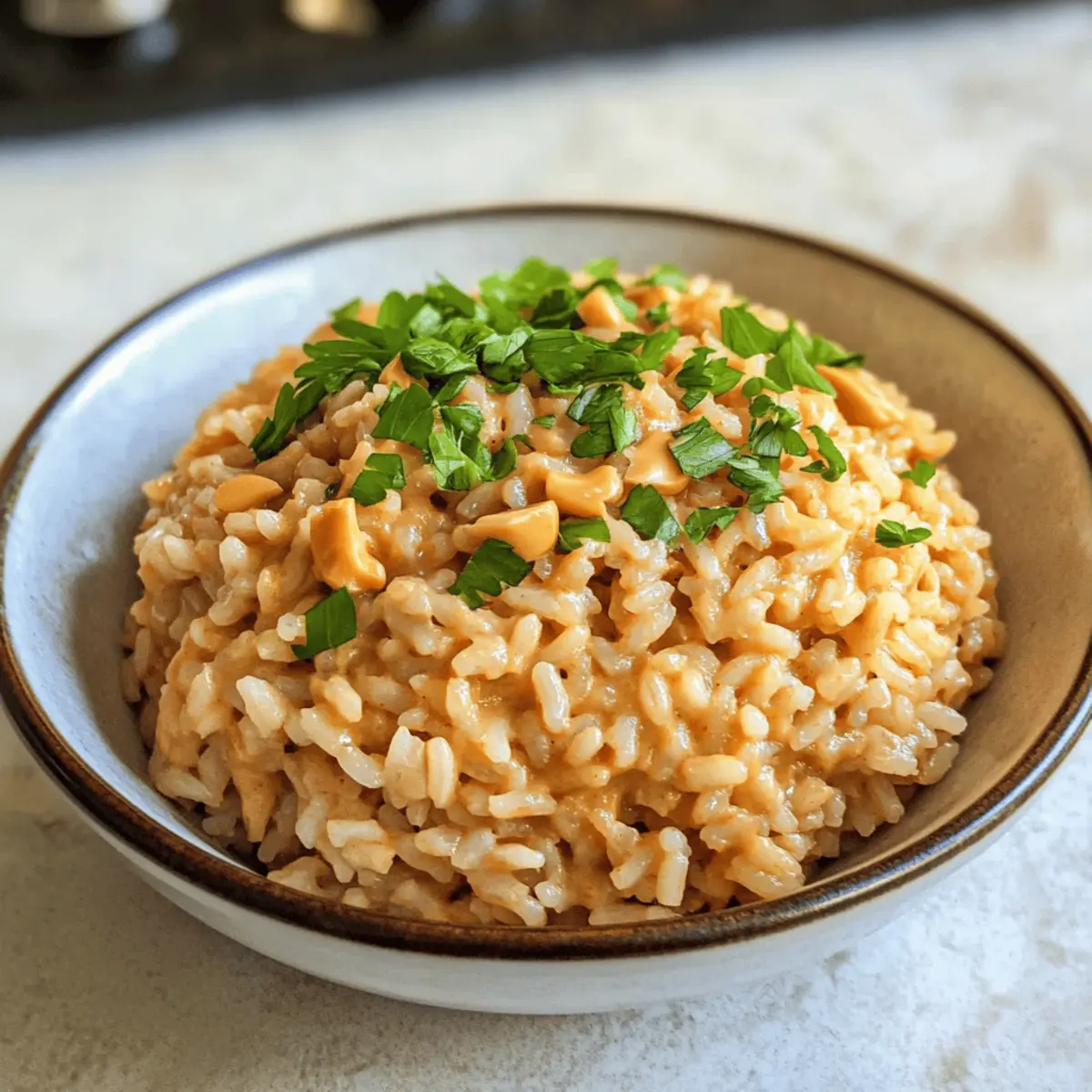 Beim ersten Löffel von einfachem Erdnussbutter Reis wird klar: Hier erwartet euch eine ganz neue Geschmackserfahrung! Diese Rezeptur vereint die nussige Cremigkeit von Erdnussbutter mit fluffigem Reis und einer herrlichen Gewürzmischung. In weniger als 30 Minuten zubereitet, ist dieses Gericht nicht nur ideal für ein schnelles Abendessen unter der Woche, sondern eignet sich auch perfekt für eure nächste Dinner-Party. Es ist vegan, einfach zuzubereiten und wird garantiert zum Star auf dem Tisch – genießt es warm oder bei Raumtemperatur zu knackigem Gemüse oder eurem Lieblingsprotein. Neugierig, wie dieser köstliche Twist euren Essensalltag bereichern kann? Warum wird dieser Reis zum Liebling? Einfach und schnell: Die Zubereitung ist unkompliziert und erfordert nur wenige Grundkenntnisse, ideal für jede Küchensituation. Nussiger Genuss: Die Kombination aus Erdnussbutter und Gewürzen sorgt für einen vollen, befriedigenden Geschmack, der jedes Gericht aufwertet. Vegan und vielseitig: Perfekt für alle, die eine vegane Ernährung schätzen, kann der Reis einfach mit verschiedenen Zutaten wie Gemüse oder Kräutern angepasst werden. Schnelle Zubereitung: In weniger als 30 Minuten habt ihr ein köstliches Gericht, das Zeit spart und die Familie begeistert. Perfekte Beilage: Ob als Hauptgericht oder als Begleiter zu gegrilltem Gemüse – dieser Reis wird allen gefallen. Entdeckt neue Aromen: Lasst euch inspirieren von dieser fusionsartigen Kreation, die traditionelle Küchen mit modernen Trends verbindet. Einfache Erdnussbutter Reis Zutaten • Das Geheimnis für ein schnelles, geschmackvolles Gericht! 2 Tassen uncooked long grain rice – ist die Basis des Gerichts. Kann durch mittelkörnigen oder kurz-körnigen Reis ersetzt werden; brauner Reis kann verwendet werden, wenn die Wassermenge angepasst wird. ½ Esslöffel onion powder – fügt Tiefe zum Geschmack hinzu. Kann weggelassen werden, wenn nicht vorhanden; vermeidet die Verwendung von Zwiebelgranulat, da es Textur hinzufügt. 1 Teelöffel garlic powder – verstärkt die umami Noten. Frische Knoblauchzehen können als frische Alternative verwendet werden. ½ Teelöffel smoked paprika – sorgt für ein rauchiges Aroma und eine schöne Farbe. Reguläre Paprika wird nicht empfohlen; sucht nach Pimentón de la Vera, wenn verfügbar. ¼ Teelöffel cayenne – fügt milde Schärfe hinzu. Kann weggelassen werden, wenn eine mildere Variante gewünscht wird. 3 Tassen vegetable stock – dient als Kochflüssigkeit für den Reis. Jede Brühe kann ersetzt werden; Wasser kann mit zusätzlichem Salz verwendet werden. 3 Esslöffel soy sauce – bringt umami Geschmack ins Spiel. Kokos-Aminos sind eine gute Alternative für sojaempfindliche Diäten. 5 Esslöffel peanut butter – sorgt für Cremigkeit und einzigartigen Geschmack. Verwendet hochwertige, natürliche Erdnussbutter oder Tahini (fügt mehr Wasser hinzu, wenn Tahini verwendet wird). Salz nach Geschmack – hebt den Gesamtgeschmack an. Anpassen je nach Salzigkeit der Brühe und Sojasauce. Schritt-für-Schritt-Anleitung für Einfache Erdnussbutter Reis Schritt 1: Reis spülen Spült den Reis gründlich unter kaltem Wasser, bis das Wasser klar bleibt, um überschüssige Stärke zu entfernen. Dies verhindert, dass der Reis zu klebrig wird. Gebt den gewaschenen Reis in ein Sieb und lasst ihn gut abtropfen, während ihr die anderen Zutaten vorbereitet. Schritt 2: Zutaten kombinieren In einem mittleren Topf kombiniert ihr den abgetropften Reis, Zwiebelpulver, Knoblauchpulver, geräucherte Paprika und Cayenne-Pfeffer. Vermischt alles gut, damit der Reis gleichmäßig mit den Gewürzen umhüllt ist. Diese Mischung verleiht dem Einfache Erdnussbutter Reis eine geschmackvolle Grundlage. Schritt 3: Flüssigkeit hinzufügen Gießt die Gemüsebrühe und die Sojasauce in den Topf mit der Reis-Gewürz-Mischung. Rührt alles gut um, damit die Flüssigkeiten gleichmäßig verteilt sind. Deckt den Topf mit einem Deckel ab und bringt die Mischung bei mittlerer Hitze zum Kochen, bis sie zu köcheln beginnt. Schritt 4: Reis garen Reduziert die Hitze auf niedrig, sobald die Flüssigkeit köchelt, und lasst den Reis 13 Minuten lang kochen, ohne den Deckel zu öffnen. Achtet darauf, dass die Brühe vollständig vom Reis aufgenommen wird und nicht überkocht. Der Reis sollte am Ende weich und flauschig sein. Schritt 5: Dämpfen Nehmt den Topf vom Herd und lasst den Reis 10 Minuten lang mit geschlossenem Deckel dämpfen. Dies hilft, die restliche Feuchtigkeit gleichmäßig zu verteilen und macht den Reis besonders locker. Vermeidet es, in dieser Zeit den Deckel zu heben, um den Dampf im Topf zu halten. Schritt 6: Erdnussbutter hinzufügen Lockert den Reis mit einer Gabel auf, um die Körner voneinander zu trennen. Gebt dann die Erdnussbutter dazu und rührt alles gut durch, bis die Erdnussbutter gleichmäßig im Reis verteilt ist. Schmeckt den Einfache Erdnussbutter Reis ab und fügt nach Belieben Salz hinzu. Schritt 7: Servieren Serviert den Einfache Erdnussbutter Reis sofort, entweder warm oder bei Raumtemperatur. Er passt hervorragend zu sautiertem Gemüse oder eurer bevorzugten Proteinquelle. Bewahrt eventuelle Reste in einem luftdichten Behälter im Kühlschrank für bis zu fünf Tage auf. Was passt gut zu Einfacher Erdnussbutter Reis? Ein köstliches Abendessen entsteht, wenn Aromen und Texturen harmonisch zusammenkommen, um jeden Bissen zum Erlebnis zu machen. Sautiertes Gemüse: Bunte oder grüne Gemüse wie Brokkoli oder Paprika bringen frische und Vielfalt auf den Tisch. Ihre knackige Textur ergänzt die Cremigkeit des Reises perfekt. Gegrillte Tofu-Spieße: Proteinreiche Tofu-Spieße, mariniert in Sojasauce und Gewürzen, sorgen für erhellende Aromen, die das Gericht abrunden und Aufwertung bieten. Würzige Kichererbsen: Diese fleischige Option passt zur Erdnussbutterbasis und bringt zusätzlich gesunde Ballaststoffe mit. Ein Genuss, der zum Schlemmen einlädt! Salat mit Avocado: Ein frischer