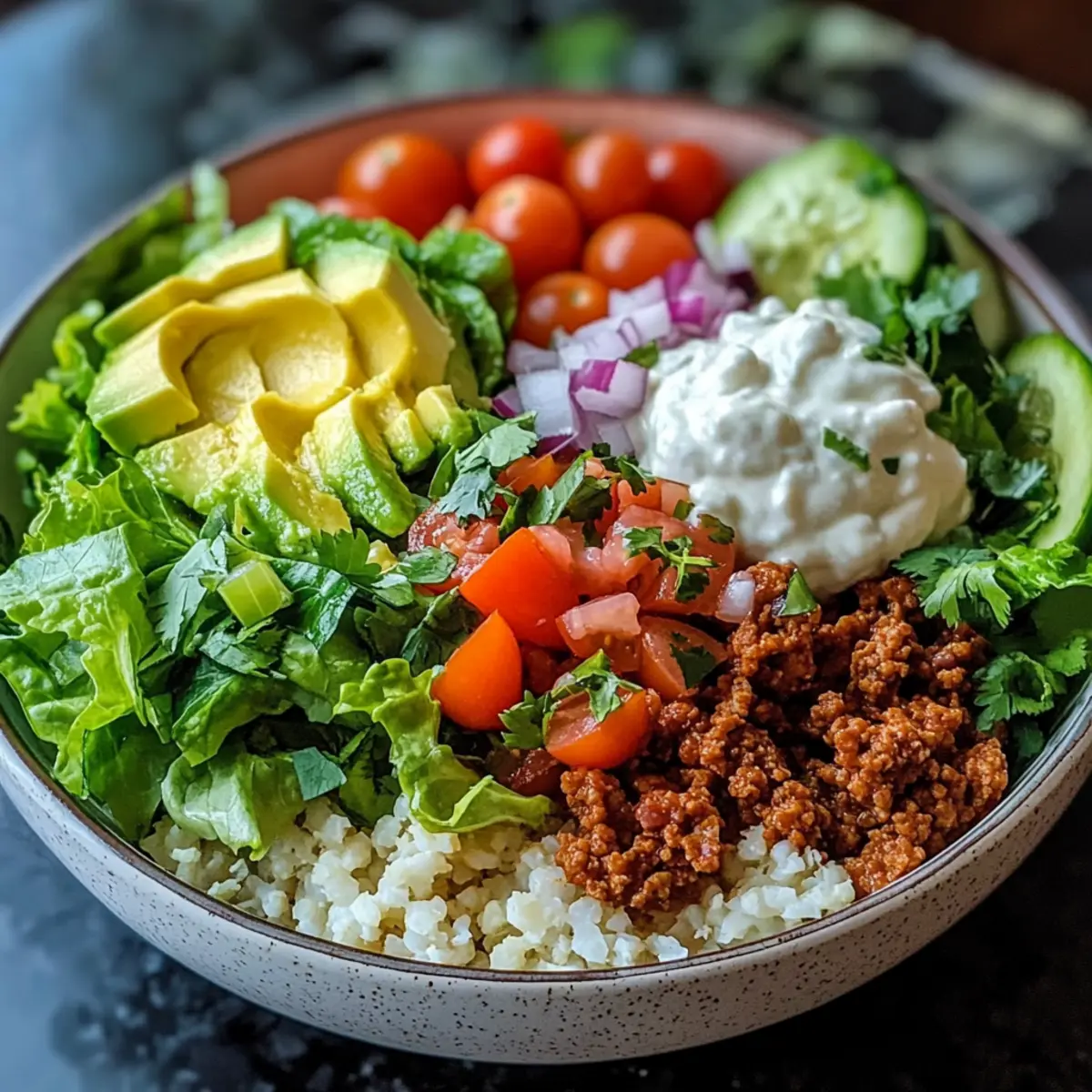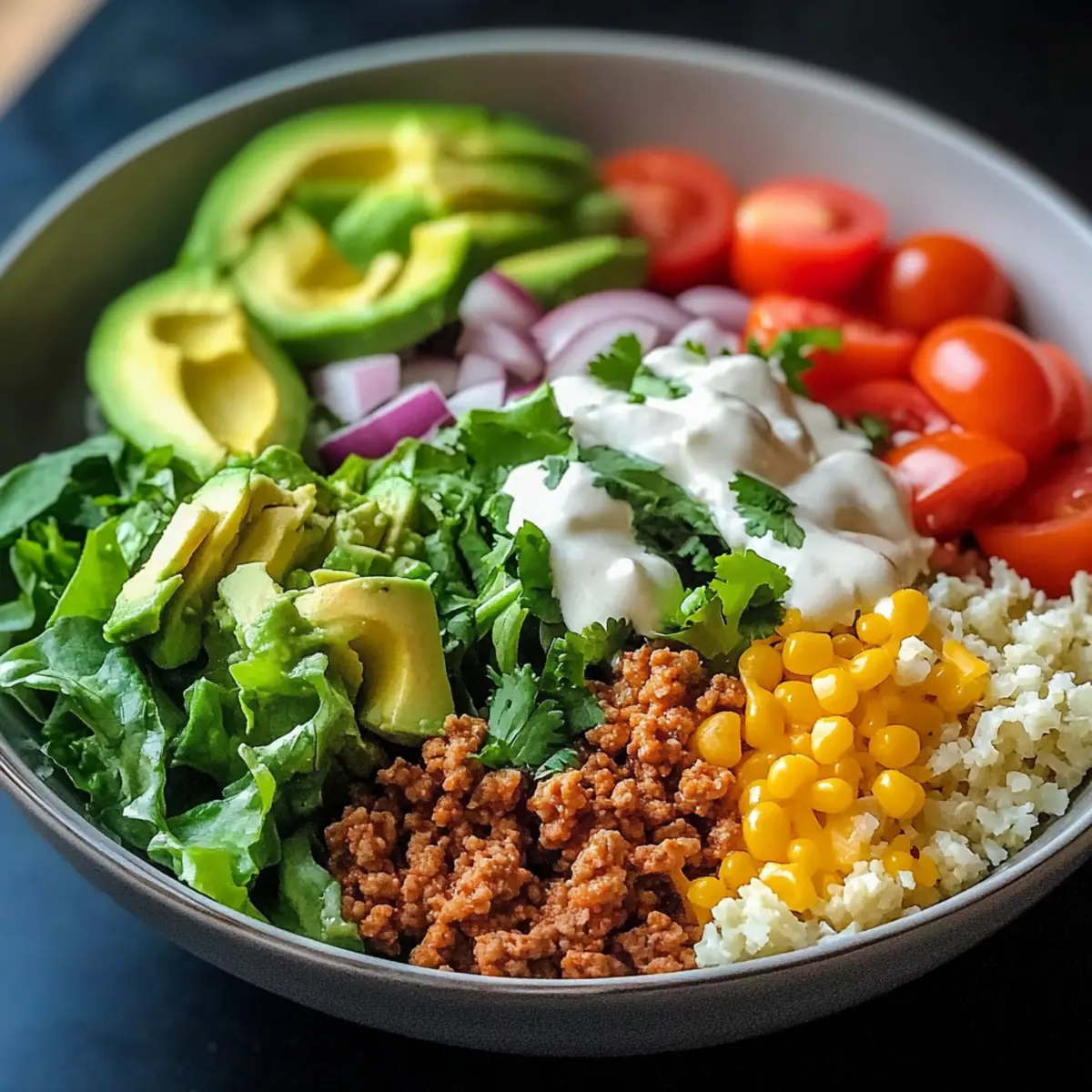 Es gibt nichts Besseres, als nach einem langen Tag in der Küche zu stehen und ein köstliches, nahrhaftes Gericht zu zaubern. Der „Einfache niedrige Kohlenhydrate Burrito“ ist die perfekte Lösung, wenn ich eine ausgewogene Mahlzeit mit reichlich Geschmack und über 35 Gramm Protein pro Portion suche. Diese schmackhafte Burrito-Schüssel bietet nicht nur kräftige Tex-Mex-Aromen, sondern auch die Flexibilität, sie nach Belieben anzupassen – sei es mit magerem Fleisch oder einer pflanzlichen Proteinquelle. Und das Beste daran? Sie ist schnell zubereitet und ideal fürs Meal Prep, sodass ich sie mühelos in der hektischen Woche genießen kann. Wer kann da widerstehen? Lass uns gemeinsam entdecken, wie einfach es ist, gesunde und leckere Gerichte zu kreieren! Was ist dein liebster Burrito-Bowl-Topping? Warum wirst du dieses Rezept lieben? Einfache Zubereitung: Der Einfache niedrige Kohlenhydrate Burrito erfordert nur grundlegende Kochfähigkeiten und ist in kürzester Zeit fertig. Vielseitigkeit: Du kannst ihn nach Belieben anpassen, ob mit magerem Fleisch oder pflanzlichen Optionen. Reichhaltiger Geschmack: Die Kombination von Taco-Gewürz und frischen Zutaten sorgt für ein unverwechselbares Geschmackserlebnis. Proteinreich: Mit über 35 Gramm Protein pro Portion ist diese Schüssel nicht nur sättigend, sondern auch nährstoffreich. Perfekt für Meal Prep: Diese Burrito-Schüssel eignet sich ideal für die Vorbereitung von Mahlzeiten und ist die perfekte Lösung für geschäftige Wochentage. Lass dich auch von anderen Rezepten inspirieren, wie der Bruschetta Huehnchen Einfaches oder dem Hamburger Auflauf Einfaches. Einfache niedrige Kohlenhydrate Burrito-Zutaten • Um dein Geschmackserlebnis zu maximieren, nutze frische Zutaten und passe die Schüssel nach deinem Wunsch an! Für die Proteinbasis Gemahlenes Hähnchen oder Rindfleisch/Türkei/ pflanzliches Protein – Hauptquelle für Protein; wähle magere Varianten für weniger Fett. Für die Gewürze Taco-Gewürzmischung (1 Päckchen) – Für zusätzlichen Geschmack und Würze; kann auch selbstgemacht werden. Für die Basis Blumenkohlreis (3 Tassen) – Eine kohlenhydratarme Alternative zu normalem Reis; frisch geraspelt oder gefroren verwenden. Römersalat (4 Tassen, gehackt) – Bietet eine frische, knackige Basis für die Schüssel. Für die Cremigkeit Avocado (1 große, gewürfelt) – Fügt Cremigkeit und gesunde Fette hinzu; kann durch Guacamole ersetzt werden. Frischer Limettensaft (2 EL) – Für die Frische und einen Hauch von Säure; frisch ist ideal, aber auch abgefüllt verwendbar. Für die Frische und Farbe Kirschtomaten (1 Tasse, halbiert) – Für Süße und Farbe; vine-ripened Tomaten bieten intensiveren Geschmack. Rote Zwiebel (0,5 Tasse, fein gewürfelt) – Für eine scharfe Note; grüne Zwiebeln sind milder. Frischer Koriander (0,25 Tasse, gehackt) – Steigert die Frische; bei Vorliebe weglassen. Für den Käse Mexikanische Käsemischung (1 Tasse, gerieben) – Fügt Reichhaltigkeit hinzu; kann durch laktosefreien Käse ersetzt werden. Für das Topping Zuckerfreie Salsa (0,5 Tasse) – Bringt einen würzigen Geschmack; wähle eine Marke ohne zugesetzten Zucker. Vollfette saure Sahne (0,25 Tasse) – Sorgt für Cremigkeit; kann durch griechischen Joghurt ersetzt werden. Jalapeño (1, ganz, fein gewürfelt) – Fügt Schärfe und Geschmack hinzu; je nach Vorliebe anpassbar. Schritt-für-Schritt-Anleitungen für Einfache niedrige Kohlenhydrate Burrito Bowl Step 1: Protein anbraten Erhitze eine große Pfanne bei mittlerer bis hoher Hitze. Füge das gemahlene Hähnchen oder Rindfleisch hinzu und zerbrösele es mit einem Holzlöffel. Brate das Fleisch 5-6 Minuten lang, bis es nicht mehr rosa ist und leicht gebräunt aussieht. Achte darauf, alles gut zu vermengen, damit es gleichmäßig gart. Step 2: Gewürze hinzufügen Lass das überschüssige Fett abtropfen und gib die Taco-Gewürzmischung zusammen mit 2-3 Esslöffeln Wasser in die Pfanne. Rühre alles gut um und koche es 2 Minuten lang, bis das Fleisch gleichmäßig mit den Gewürzen bedeckt ist und die Flüssigkeit verdampft ist. Die Mischung sollte aromatisch und gut durchzogen sein. Step 3: Fleisch ruhen lassen Nimm die Pfanne vom Herd und lasse das gewürzte Fleisch 5 Minuten ruhen. Diese kurze Pause ermöglicht es den Aromen, sich zu setzen und intensiviert den Geschmack der Einfache niedrige Kohlenhydrate Burrito Bowl. Laufe in dieser Zeit bereits zur nächsten Zubereitung über. Step 4: Blumenkohlreis vorbereiten Wenn du gefrorenen Blumenkohlreis verwendest, erhitze ihn in der Mikrowelle gemäß den Anweisungen auf der Verpackung. Alternativ kannst du frischen Blumenkohlreis in einer Pfanne mit etwas Öl 3-4 Minuten anbraten, bis er zart, aber trotzdem fest ist. Er sollte eine leichte Bräune annehmen, um Geschmack zu entwickeln. Step 5: Schüsseln zusammenstellen Bereite deine Schüsseln vor, indem du zuerst eine Schicht Römersalat auf den Boden gibst. Darauf kommt der frisch zubereitete Blumenkohlreis, gefolgt von der warmen, gewürzten Proteinmischung. Schichte dann gewürfelte Avocado, halbierte Kirschtomaten, rote Zwiebel, geriebenen Käse und frisch gehackten Koriander darüber für zusätzlichen Geschmack und Farbe. Step 6: Toppings hinzufügen Vervollständige dein Meisterwerk, indem du einen Löffel saure Sahne und eine großzügige Portion zuckerfreie Salsa auf deine Burrito Bowl gibst. Für einen zusätzlichen Kick kannst du den fein gewürfelten Jalapeño hinzufügen. Zum Abschluss einen spritzigen Schuss frischen Limettensaft darüber geben, um die Aromen lebhaft zu machen und das Gericht zu perfektionieren. Expertentipps für die beste Einfache niedrige Kohlenhydrate Burrito Bowl Frische Zutaten: Verwende immer frische Zutaten für maximalen Geschmack und Nährstoffgehalt. Frischer Koriander und Limettensaft machen einen großen Unterschied. Abwechslungsreiche Proteine: Experimentiere mit verschiedenen Proteinquellen, wie magerem Rindfle
