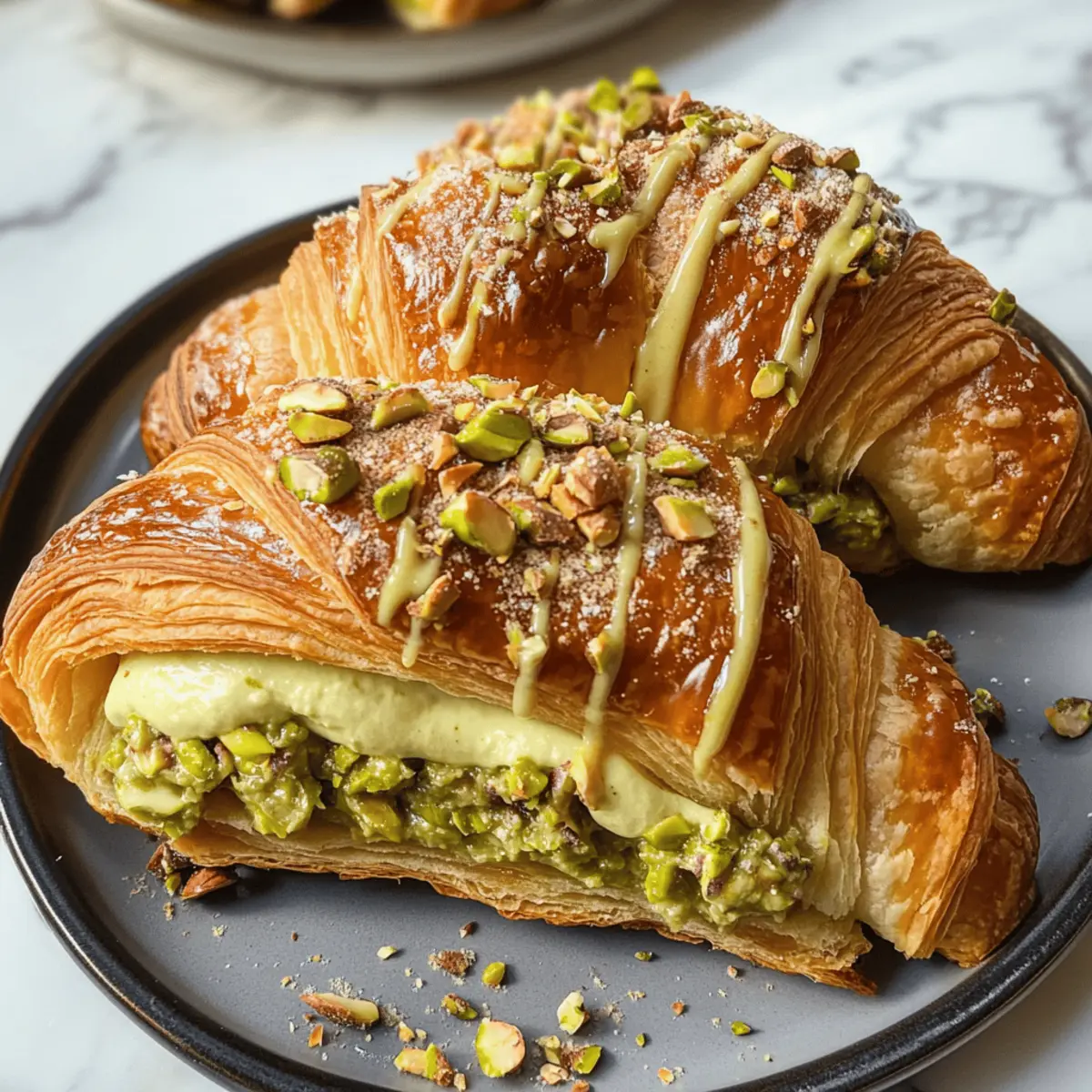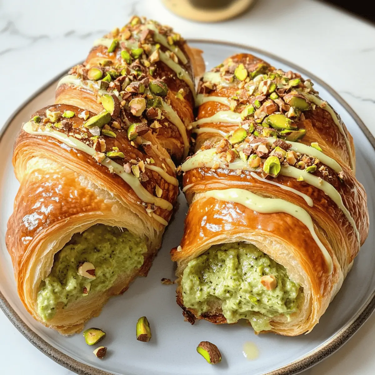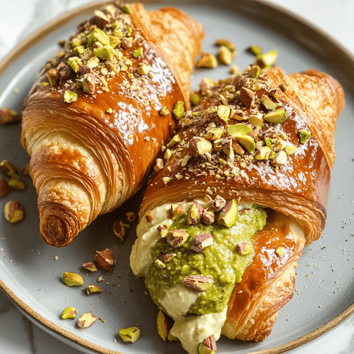 Wenn ich morgens die Backstube betrete, erfüllt der zarte Duft von frisch gebackenen Croissants den Raum und weckt meine Sinne. Diese einfache Pistaziencroissants-Rezept ist eine köstliche Abwandlung der klassischen französischen Backkunst und lässt sich mühelos zubereiten. In Windeseile verwandeln sich knusprige Croissants in ein himmlisches Erlebnis, gefüllt mit einer samtigen Pistaziencreme und einer knusprigen Pistazienkruste. Diese croissantigen Köstlichkeiten sind nicht nur ein perfektes Snack für Zwischendurch, sondern auch der ideale Begleiter zu einer Tasse Tee oder Kaffee – ein wahres Highlight für Genussliebhaber! Zudem lässt sich die Füllung super im Voraus zubereiten, sodass du flexibel bleiben kannst. Neugierig, wie du dieses wunderbare Rezept umsetzen kannst? Lass uns gleich loslegen! Warum wirst du diese Croissants lieben? Einfachheit: Dieses Rezept macht die Zubereitung zum Kinderspiel und erfordert nur grundlegende Backkenntnisse – perfekt für alle, die sich an die französische Patisserie wagen möchten. Reichhaltiger Geschmack: Die Kombination aus der samtigen Pistaziencreme und dem knusprigen Croissant sorgt für ein Geschmackserlebnis, das einfach unwiderstehlich ist. Vielfältiger Genuss: Ob als süßer Snack oder als krönender Abschluss eines Essens, diese Croissants passen zu jedem Anlass und erfreuen garantiert jeden Feinschmecker. Beeindruckende Präsentation: Die knusprigen Pistazien und das elegante Drizzle verwandeln deine Croissants in ein kunstvolles Dessert, das Gäste garantiert beeindruckt. Schnell zubereitet: In weniger als 30 Minuten stehen diese köstlichen Leckereien bereit, sodass du auch spontanen Besuch verwöhnen kannst. Möchtest du mehr solche Rezepte entdecken? Schau dir auch unsere Schnellen Dessert-Klassiker an! Einfache Pistaziencroissants Zutaten • Für diese einfachen Pistaziencroissants benötigst du nur wenige, aber qualitativ hochwertige Zutaten, um das beste Geschmackserlebnis zu erzielen. Für die Croissants Frische Croissants – Verwende am besten frisch gebackene Croissants für ein optimales Aroma; selbstgemacht sollten vor dem Füllen vollständig abgekühlt sein. Für die Füllung Schlagsahne – Sorgt für eine cremige Konsistenz; achte darauf, dass sie kalt ist, um besser geschlagen werden zu können. Zucker – Verleiht der Füllung die nötige Süße; taste dich je nach Vorliebe an die richtige Menge heran. Pistazienpaste – Fügt einen intensiven Pistaziengeschmack hinzu; wähle eine hochwertige Paste für eine angenehme Textur. Für das Topping Gehackte Pistazien – Diese sorgen für den perfekten Crunch und eine ansprechende Optik; andere Nüsse können ebenfalls verwendet werden, wenn du etwas Abwechslung wünschst. Pistazienpaste (zum Drizzeln) – Verbessert den Geschmack und das Aussehen der Croissants; bei Bedarf mit etwas Öl verdünnen, wenn die Paste zu dick ist. Schritt-für-Schritt-Anleitung für Einfache Pistaziencroissants Schritt 1: Pistazien vorbereiten Zuerst hackst du die geschälten Pistazien grob und stellst sie beiseite. Dies wird dir helfen, die Texur und den Geschmack der einfachen Pistaziencroissants zu verstärken. Achte darauf, dass die Pistazien gleichmäßig zerkleinert sind, damit sie später gut auf den Croissants haften. Schritt 2: Sahne schlagen In einer großen Rührschüssel gibst du die kalte Schlagsahne und den Zucker. Mit einem Handmixer schlägst du die Mischung für etwa 3 Minuten, bis sich weiche Spitzen bilden. Achte darauf, dass die Sahne kalte Temperaturen hat, damit sie optimal aufgeht und eine luftige Konsistenz erreicht. Schritt 3: Pistazienpaste hinzufügen Nun fügst du 1,5 Esslöffel der Pistazienpaste zur geschlagenen Sahne hinzu. Schlage die Mischung für weitere 2 Minuten, bis sich steife Spitzen bilden. Die Farbe sollte eine cremige, helle Pistazientönung annehmen, und die Füllung sollte schön stabil sein für deine einfachen Pistaziencroissants. Schritt 4: Croissants vorbereiten Jetzt schneidest du die frischen Croissants horizontal in der Mitte auf. Achte darauf, dass du sie nicht ganz durchschneidest, damit die Füllung gut hineinpasst. Diese knusprigen Croissants sind die ideale Basis für das cremige Innenleben und sorgen für eine perfekte Kombination aus Texturen. Schritt 5: Füllen der Croissants Mit einem Spritzbeutel oder einem Löffel füllst du jede Croissant-Hälfte großzügig mit der Pistaziencreme. Schließe die Croissants anschließend vorsichtig, sodass die leckere Füllung nicht ausläuft. Achte darauf, dass die Füllung gleichmäßig verteilt ist, um den vollen Geschmack in jedem Bissen zu genießen. Schritt 6: Dekorieren Jetzt gibst du jedem gefüllten Croissant einen zusätzlichen Klecks Pistaziencreme obendrauf. Bestreue sie dann mit den gehackten Pistazien für den perfekten Crunch und dekoriere sie mit etwas zusätzlicher Pistazienpaste. Eine ansprechende Präsentation macht deine einfachen Pistaziencroissants sofort unwiderstehlich. Schritt 7: Servieren Die fertigen Croissants sollten sofort serviert werden, um ihre Frische zu bewahren. Genieße sie am besten warm zu einer Tasse Tee oder Kaffee. Die Kombination aus dem knusprigen Croissant und der cremigen Füllung wird sicherlich ein Highlight für jeden Feinschmecker sein. Was passt zu Einfache Pistaziencroissants? Genieße die köstlichen Aromen dieser Croissants, während du eine perfekte Begleitung für einen unvergesslichen Genuss kreierst. Frischer Obstsalat: Eine bunte Mischung aus saisonalen Früchten bringt eine frische, süße Komponente in dein Dessert und balanciert die Cremigkeit der Croissants. Kaffee oder Tee: Ein warmes Getränk wie aromatischer Kaffee oder feiner Tee stellt eine herrliche Verbindung zu den zarten Aromen der Pistaziencroissants her und rundet dein Erlebnis ab. Vanilleeis: Die Kombination von warmen Croissants mit kaltem, cremigem Vanilleeis bietet einen aufregenden Temperaturkontrast, der deine Geschmacksknospen belebt. Schokoladensauce: