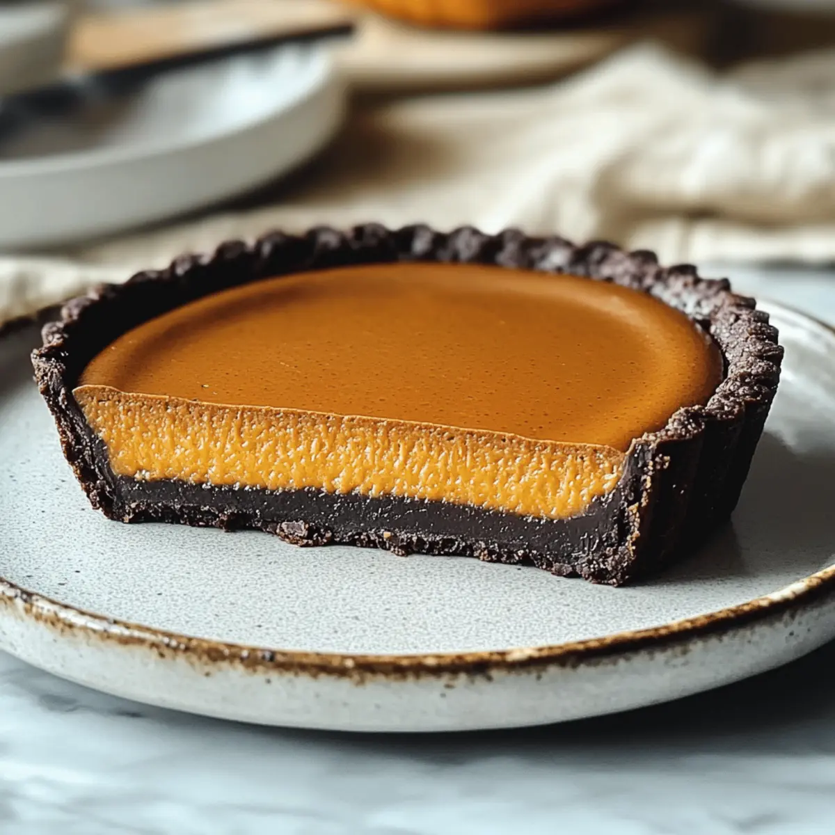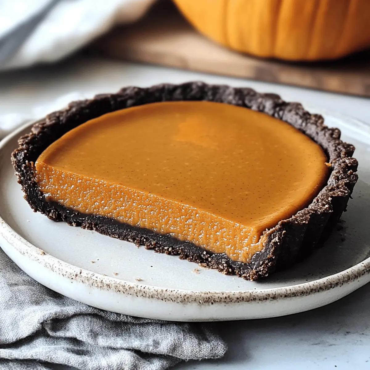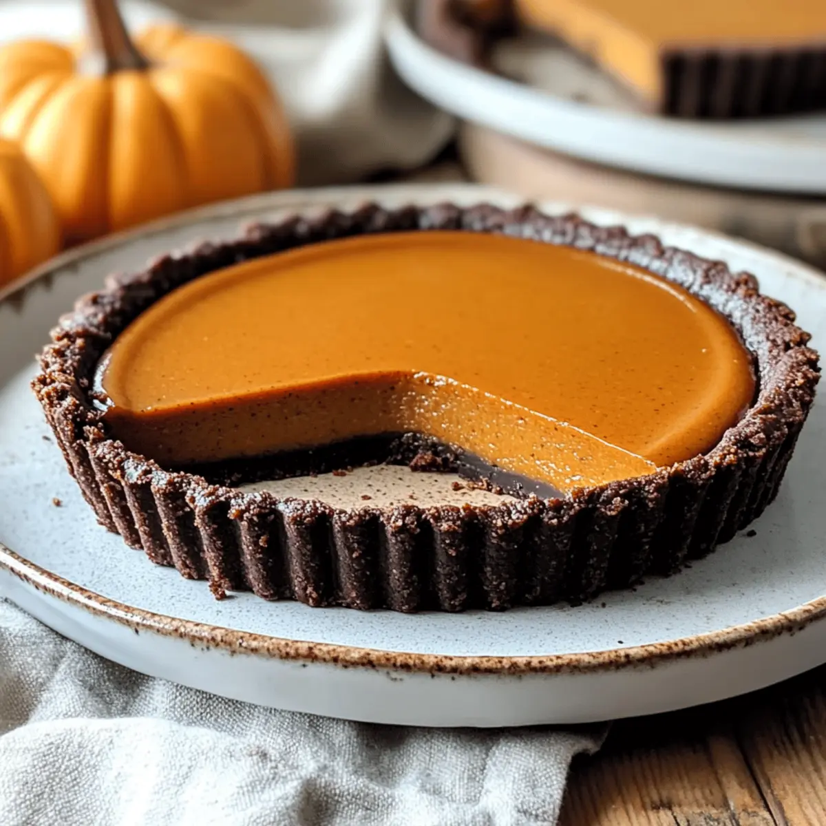 Die goldenen Herbstblätter rascheln unter unseren Füßen, während ich in der Küche stehe und damit beginne, meine eigene Version eines Herbstklassikers zu kreieren: einer Einfachen Dunklen Schokoladen-Kürbis-Tarte. Diese Kombination aus zartem Kürbis und tiefem Schokoladengeschmack hat nicht nur eine verführerische Note, sondern bringt auch eine neue Dimension auf euren Tisch, perfekt für das nächste Festmahl. Die robuste Schokoladenkruste sorgt dafür, dass ihr keine Angst vor einer matschigen Tarte haben müsst, während die Verwendung von Kürbispüree aus der Dose euch wertvolle Zeit spart, die ihr mit euren Liebsten verbringen könnt. Neugierig, wie sich dieser geschmackvolle Leckerbissen zubereiten lässt? Lasst uns gemeinsam in die Welt der Verbundenheit durch gutes Essen eintauchen! Warum wird diese Tarte Dein Favorit? Einfachheit, die beste Eigenschaft: Die Schritte sind unkompliziert und erfordern keine speziellen Backfähigkeiten. Reichhaltiger Geschmack: Die Kombination aus dunkler Schokolade und würzigem Kürbis vereint die Aromen des Herbstes in einem köstlichen Dessert. Perfekte Konsistenz: Dank des vorgebackenen Schokoladenbodens bleibt die Tarte beim Servieren in Form – kein matschiger Boden mehr! Vielseitigkeit, die begeistert: Variiere die Füllung nach Lust und Laune, indem du zum Beispiel Süßkartoffel- oder Butternut-Kürbispüree verwendest. Schnell und zeitsparend: Mit Kürbispüree aus der Dose zubereitet, kannst du deine Zeit besser mit Freunden und Familie verbringen. Die Einfachheit dieser Dunklen Schokoladen-Kürbis-Tarte macht sie zum perfekten Desertersatz und zum Hingucker auf jedem Festmahl. Entdecke auch unsere anderen Rezepte wie die Bruschetta Hühnchen Einfaches oder den Pilz-Hamburger Auflauf Einfaches, die schnell und lecker zubereitet werden können! Einfacher Dunkler Schokoladen-Kürbis-Tarte Zutaten • Hier sind die entscheidenden Zutaten für eine köstliche Tarte, die in dieser Herbstsaison ein Hit sein wird! Für den Boden Allzweckmehl – sorgt für die Struktur der Kruste. Ungesüßtes Kakaopulver – verleiht dem Boden schokoladigen Geschmack und Farbe. Weiße Zucker – fügt Süße hinzu; brauner Zucker kann für mehr Tiefe verwendet werden. Koshersalz – hebt die Aromen hervor; notwendig für den perfekten Geschmack. Ungesalzene Butter – bindet den Boden und bringt Reichtum; kann durch Kokosöl ersetzt werden. Für die Füllung Reines Kürbispüree – ist die Hauptzutat und sorgt für den typischen Kürbisgeschmack. Gesüßte Kondensmilch – sorgt für Cremigkeit und Süße; durch evaporierte Milch für weniger Süße ersetzbar. Großes Ei – bindet die Füllung und gibt Struktur. Kürbiskuchengewürz – bringt die warmen, würzigen Aromen; eine Mischung aus Zimt, Muskat und Ingwer kann ebenfalls verwendet werden. Koshersalz – balanciert die Süße und verbessert die Geschmäcker. Mit diesen Zutaten wird die Einfacher Dunkler Schokoladen-Kürbis-Tarte zum unvergesslichen Höhepunkt deiner festlichen Feiern! Step-by-Step Instructions für Einfacher Dunkler Schokoladen-Kürbis-Tarte Step 1: Ofen vorheizen Heize deinen Ofen auf 220°C (425°F) vor. Bereite eine 9-Zoll-Tarteform vor, indem du sie mit Antihaftspray besprühst. Dies verhindert, dass die Tarte anklebt, und erleichtert das Servieren. Der Ofen sollte gut vorgeheizt sein, um eine perfekte Kruste für die Einfacher Dunkler Schokoladen-Kürbis-Tarte zu erzielen. Step 2: Kruste zubereiten Vermische in einer großen Schüssel das Allzweckmehl, das ungesüßte Kakaopulver, den Zucker und das Koshersalz miteinander. Füge die geschmolzene Butter hinzu und verrühre alles, bis sich ein krümeliger Teig bildet. Drücke den Teig gleichmäßig auf den Boden und die Seiten der Tarteform, damit er schön formt, und achte darauf, dass er gut anliegt. Step 3: Kruste backen Backe die Kruste für 10 Minuten im vorgeheizten Ofen, bis sie fest und leicht gebräunt ist. Nimm die Tarteform danach aus dem Ofen und lasse sie 10 Minuten abkühlen. Diese Vorbackzeit sorgt dafür, dass die Kruste knusprig bleibt und nicht durch die Füllung matschig wird. Step 4: Füllung vorbereiten In einer sauberen Schüssel vermische das Kürbispüree, die gesüßte Kondensmilch, das große Ei, das Kürbiskuchengewürz und das Koshersalz. Schlage alles gut miteinander, bis die Mischung glatt und cremig ist. Diese Füllung wird der Einfacher Dunkler Schokoladen-Kürbis-Tarte ihre reichhaltige und würzige Note verleihen. Step 5: Füllung einfüllen und backen Gieße die vorbereitete Kürbisfüllung vorsichtig in die abgekühlte Kruste. Backe die Tarte zunächst bei 220°C (425°F) für 10 Minuten, dann reduziere die Temperatur auf 175°C (350°F) und backe sie zusätzlich 25-30 Minuten lang. Achte darauf, dass die Füllung fest wird und ein Zahnstocher, der in die Mitte gestochen wird, sauber herauskommt. Step 6: Tarte abkühlen lassen Lasse die Einfacher Dunkler Schokoladen-Kürbis-Tarte in der Form für eine Stunde bei Raumtemperatur abkühlen. Das Abkühlen ist wichtig, damit sich die Füllung stabilisieren kann und die Tarte beim Servieren in Stücke geschnitten werden kann, ohne auseinanderzufallen. Was passt gut zur Einfachen Dunklen Schokoladen-Kürbis-Tarte? Die perfekte Ergänzung zu dieser verführerischen Tarte sorgt nicht nur für Vielfalt auf dem Tisch, sondern hebt auch die verschiedenen Geschmäcker hervor. Vani-eis: Eine Kugel cremiges Vanilleeis verleiht der Tarte eine kühle Note und harmoniert wunderbar mit dem warmen Kürbis. Karamellsauce: Ein Schuss hausgemachter Karamellsauce bringt Süße und Tiefe, die den schokoladigen Boden perfekt ergänzt. Schlagsahne: Leichter, fluffiger Schlagsahne-Pepp sorgt für Kontrast und macht jeden Bissen besonders. Du kannst sie auch mit einem Hauch Zimt aromatisieren! Frischer Obstsalat: Ein leichter Obstsalat mit Äpfeln und Birnen bringt frische, knackige Textur und eine fruchtige Säure – der ideale Ausgleich zur süßen Tarte. Kräut