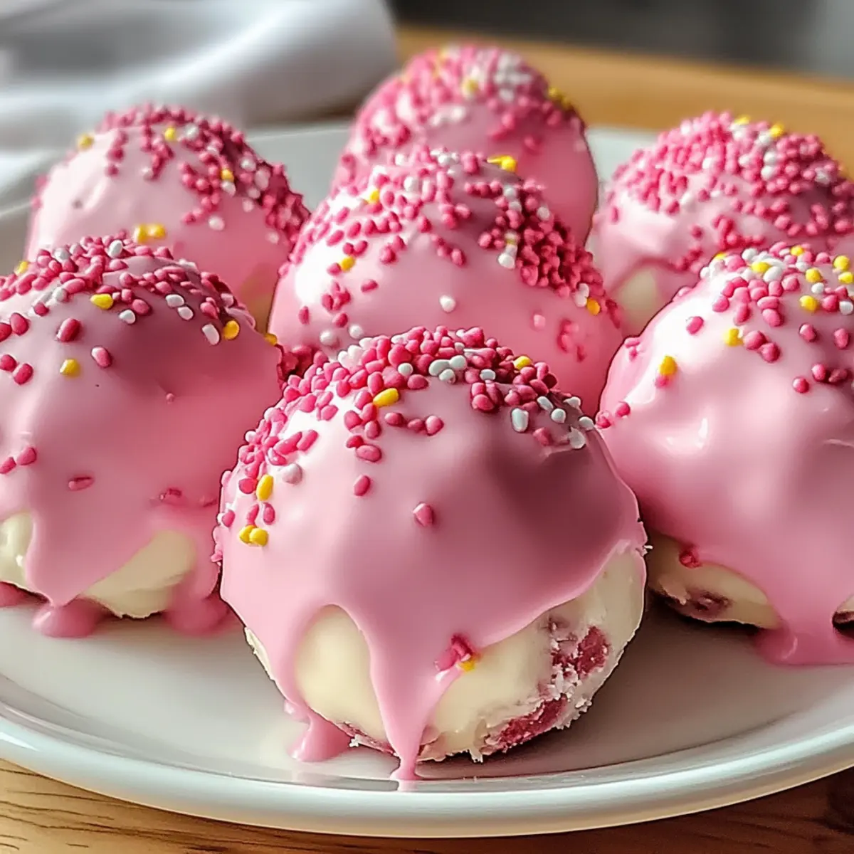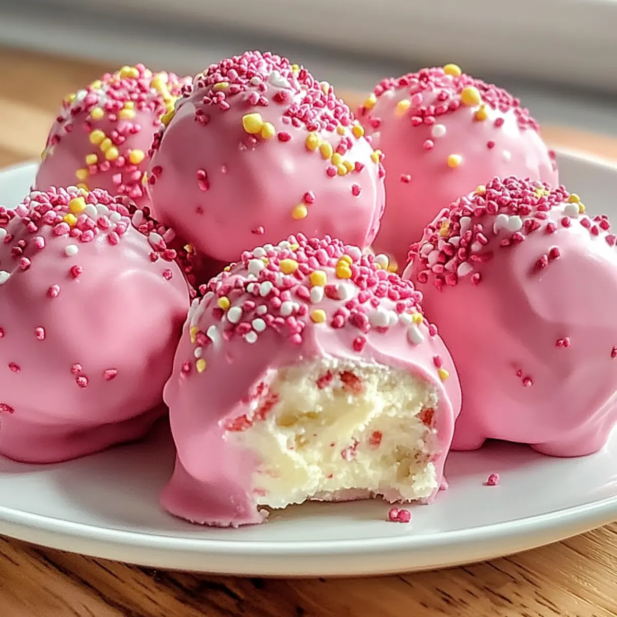 Der süße Duft von reifen Erdbeeren und frisch gebackenem Kuchen entfaltet sich in meiner Küche, während ich an meinen neuesten Genuss arbeite: die Erdbeerkuchen-Trüffel. Diese bezaubernden kleinen Leckerbissen sind nicht nur ein Fest für die Augen, sondern auch ein schnelles, unkompliziertes Dessert, das mich an warme Sommertage erinnert. Mit ihrer cremigen, süßen Füllung sind die Trüffel perfekt für Zusammenkünfte, Baby-Partys oder einfach als selbstgemachtes Mitbringsel. Die Möglichkeit, sie nach Belieben anzupassen – ob mit Schokolade, Zitrone oder sogar einer veganen Variante – lässt diese Trüffel zum wahren Star jeder Desserttafel werden. Wer kann da widerstehen? Neugierig, wie Sie diese köstlichen Leckerbissen selbst zubereiten können? Warum sind Erdbeerkuchen-Trüffel so besonders? Einfachheit: Die Zubereitung dieser Trüffel ist kinderleicht und erfordert kaum mehr als grundlegende Backfähigkeiten. Vielfältige Variationen: Egal, ob Sie Schokolade, Zitrone oder eine vegane Version bevorzugen, diese Trüffel lassen sich nach Lust und Laune anpassen! Visuelle Anziehungskraft: Die lebendige Farbe und die appetitliche Präsentation machen diese Trüffel zu einem echten Hingucker bei jeder Feier. Perfekte für jede Gelegenheit: Ob als süßer Snack für Ihre Familie oder als Mitbringsel zu einer Party, die Trüffel sind immer ein Hit! Schnelle Zubereitung: Mit minimalem Aufwand und ohne Backen sind diese Leckerbissen in Windeseile fertig. Entdecken Sie auch diese Limonade als erfrischende Begleitung! Köstlicher Genuss: Jeder Biss ist ein Traum mit cremigem, süßem Innenleben, das im Mund zergeht – perfekter Genuss! Erdbeerkuchen-Trüffel Zutaten • Diese köstlichen Erdbeerkuchen-Trüffel sind einfach zuzubereiten und erfordern nur wenige Zutaten! Für die Trüffelmasse Vanillekuchenmischung – bildet die Grundlage der Trüffel und sorgt für Geschmack und Struktur; können Sie eine gekaufte oder selbstgemachte Mischung verwenden. Erdbeer-Frosting – sorgt für die süße, cremige Textur und bindet die Keksbrösel; passen Sie die Menge nach gewünschter Konsistenz an. Pinke Candy Melts – verwenden Sie sie für die Glasur und verleihen Sie den Trüffeln eine lebendige Farbe; Sie können auch weiße Schokolade verwenden. Kokosöl – hilft, die Candy Melts zu verdünnen und sorgt für eine glatte Glasur. Gehackte gefriergetrocknete Erdbeeren – optional, für mehr Textur und intensiven Erdbeergeschmack, ohne zusätzliche Feuchtigkeit. Dekorationen (Streusel/Obst) – verleihen den Trüffeln eine zusätzliche Geschmacksdimension und machen sie noch ansprechender. Lassen Sie sich von diesen Erdbeerkuchen-Trüffeln verzaubern und genießen Sie die Flexibilität, sie nach Ihren Wünschen zu gestalten! Schritt-für-Schritt-Anleitung für Erdbeerkuchen-Trüffel Step 1: Vanillekuchen backen Heizen Sie den Ofen auf 175 °C vor. Fetten Sie eine 23×33 cm große Backform ein und geben Sie die Vanillekuchenmischung hinein. Backen Sie die Mischung für 25-30 Minuten, bis ein Zahnstocher sauber herauskommt. Lassen Sie den Kuchen ganz auskühlen, damit sich die Brösel gut verarbeiten lassen. Step 2: Kuchen zerbröseln Zerbröseln Sie den vollständig abgekühlten Kuchen in einer großen Schüssel zu feinen Krümeln. Achten Sie darauf, dass keine größeren Stücke zurückbleiben, da diese die Konsistenz der Trüffel beeinträchtigen könnten. Die Vorbereitung der Krümel ist entscheidend für die Herstellung der Erdbeerkuchen-Trüffel. Step 3: Frosting unterrühren Fügen Sie das Erdbeer-Frosting zu den Kuchenbröseln hinzu. Mischen Sie alles gründlich mit einem Löffel oder den Händen, bis eine formbare teigartige Konsistenz entsteht. Die Mischung sollte zusammenhalten, wenn Sie sie zusammendrücken. Passen Sie die Menge des Frostings an, um die gewünschte Textur zu erreichen. Step 4: Gefriergetrocknete Erdbeeren einarbeiten (optional) Fügen Sie die gehackten gefriergetrockneten Erdbeeren hinzu und falten Sie sie vorsichtig unter die Masse. Dies sorgt nicht nur für zusätzlichen Geschmack, sondern auch für eine interessante Textur in den Erdbeerkuchen-Trüffeln. Achten Sie darauf, dass die Erdbeeren gleichmäßig verteilt sind. Step 5: Trüffel formen Nehmen Sie etwa 1-2 Esslöffel der Mischung und rollen Sie sie zu kleinen Kugeln. Platzieren Sie die geformten Trüffel auf ein mit Backpapier ausgelegtes Backblech. Achten Sie darauf, genügend Platz zwischen den Trüffeln zu lassen, damit sie beim Kühlen nicht zusammenkleben. Step 6: Chill-Trüffel Kühlen Sie die geformten Trüffel für 30 Minuten im Kühlschrank oder frieren Sie sie für 15 Minuten ein, bis sie fest sind. Dieser Schritt hilft, die Trüffel stabil zu halten, während Sie sie später in die Candy Melts tauchen. Step 7: Candy Melts schmelzen Schmelzen Sie die pinken Candy Melts zusammen mit dem Kokosöl in der Mikrowelle. Erwärmen Sie die Mischung in 30-Sekunden-Intervallen und rühren Sie dazwischen um, bis sie glatt und flüssig ist. Achten Sie darauf, dass die Schokolade nicht überhitzt wird, um Klumpenbildung zu vermeiden. Step 8: Trüffel glasieren Tauchen Sie jede Trüffel in die geschmolzene Glasur und lassen Sie den Überschuss abtropfen. Platzieren Sie die beschichteten Trüffel zurück auf das Backpapier. Diese Glasurschicht verleiht den Erdbeerkuchen-Trüffeln ihr charakteristisches Aussehen und schützt die Füllung. Step 9: Dekoration aufbringen Bestreuen Sie die frisch glasierte Trüffel mit Dekorationen, solange die Glasur noch weich ist. Dies sorgt dafür, dass die Dekorationen gut haften. Sehen Sie sich vielfältige Möglichkeiten an, um das Aussehen Ihrer Erdbeerkuchen-Trüffel anzupassen! Step 10: Schokolade dekorieren Schmelzen Sie weiße Schokolade und träufeln Sie sie über die bereits glasierte Trüffel, nachdem die pinke Glasur leicht fest geworden ist. Dies fügt eine zusätzliche Geschmacksdimension hinzu und schafft ein ansprechendes, schickes Aussehen. Step 11: Tr