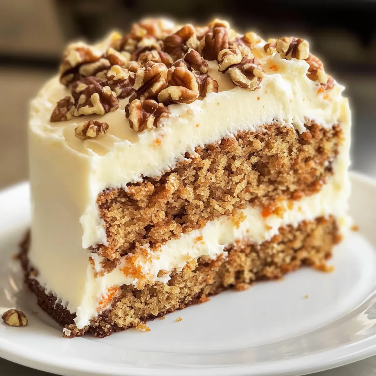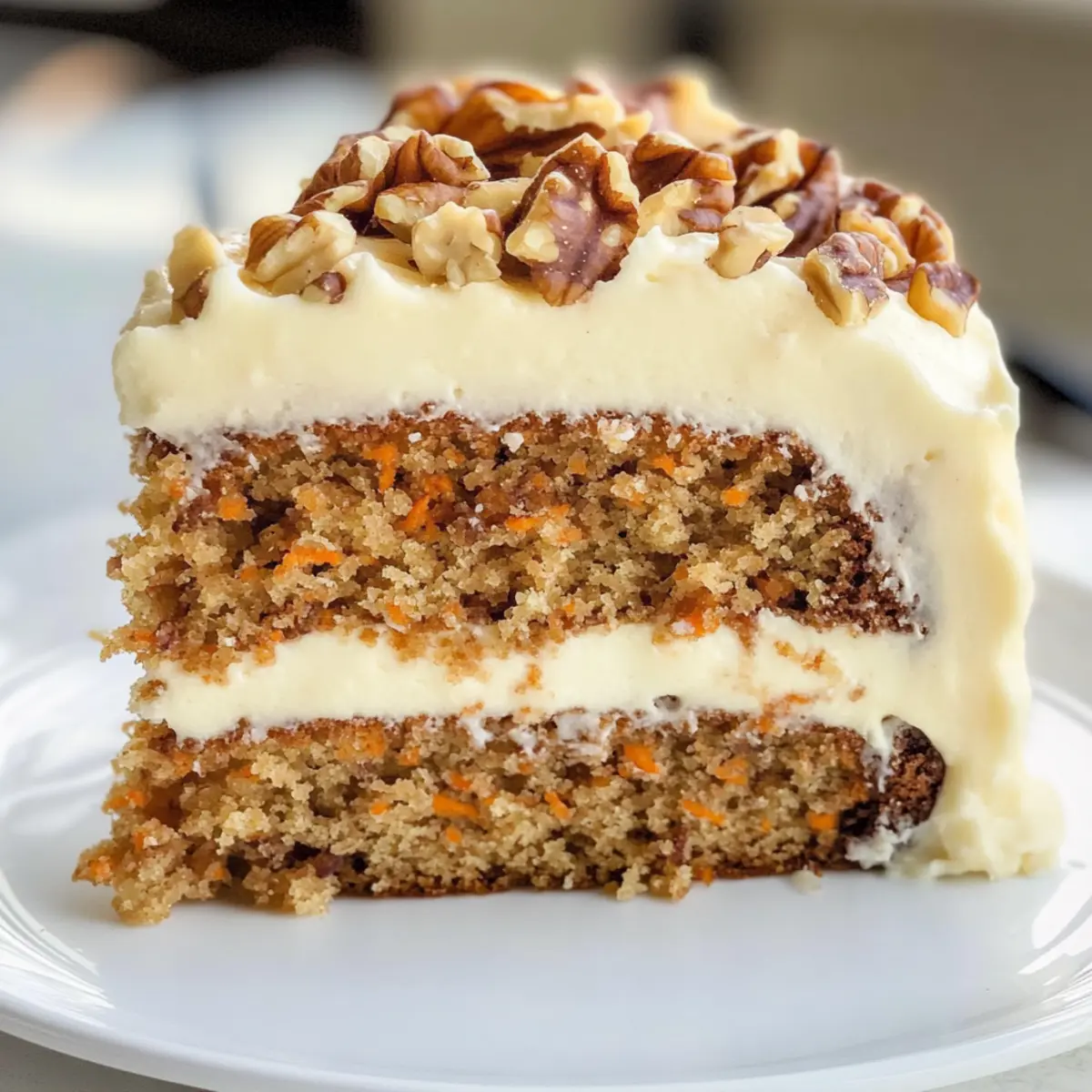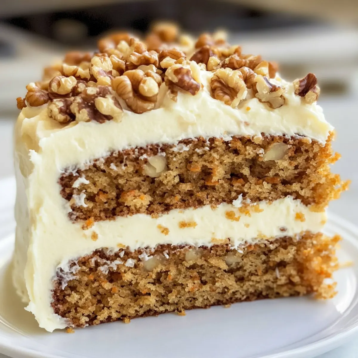 Ein herrlicher feuchter Karottenkuchen mit Walnüssen, perfekt für jede Feier oder als Snack.