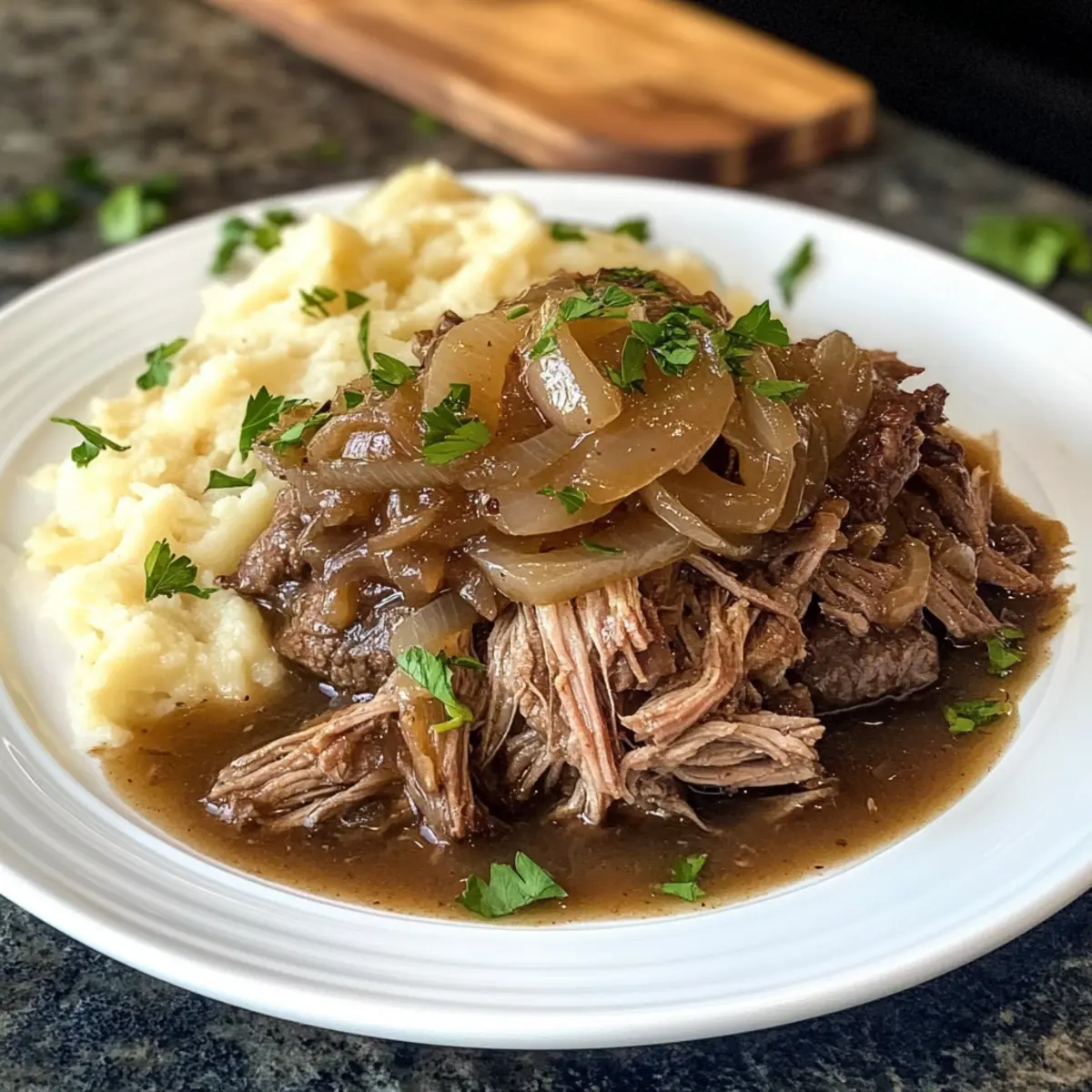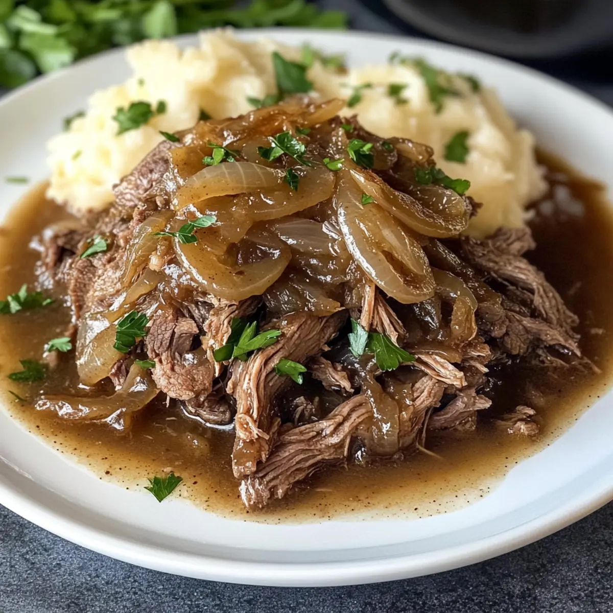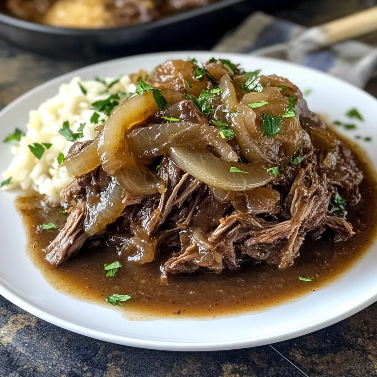 Die Saison für gemütliche Mahlzeiten ist endlich da, und ich kann den verlockenden Duft von meinem Französischen Zwiebelbraten kaum erwarten. Dieses Rezept ist mehr als nur ein klassisches Komfortessen; es vereint die zarte Textur von langsam gegartem Rindfleisch mit den herzhaften Aromen karamellisierter Zwiebeln und einer reichhaltigen Soße. Mit nur wenigen Zutaten und einem Slow Cooker in der Küche steht Ihnen ein köstliches Abendessen in kürzester Zeit zur Verfügung. Der Französische Zwiebelbraten ist nicht nur perfekt für hektische Wochentage, sondern auch ein echter Publikumsliebling, der Ihre Gäste begeistern wird. Wer kann schon einem saftigen Braten mit cremigen Kartoffeln widerstehen? Neugierig, wie Sie dieses Gericht zu Hause zaubern können? Lassen Sie uns gemeinsam in die Zubereitung eintauchen! Warum sollten Sie diesen Zwiebelbraten lieben? Vielseitigkeit: Dieses Rezept für den Französischen Zwiebelbraten bietet unzählige Möglichkeiten zur Anpassung. Fügen Sie Ihr Lieblingsgemüse hinzu oder variieren Sie die Gewürze für einen persönlichen Touch. Einfachheit: Mit nur wenigen Zutaten und der Verwendung eines Slow Cookers wird das Kochen zu einem Kinderspiel – perfekt für beschäftigte Tage. Reichhaltiger Geschmack: Die Kombination aus süßen Zwiebeln und würzigem Rindfleisch sorgt für eine Geschmacksexplosion, die einfach verführt. Zartes Ergebnis: Nach stundenlangem Garen ist das Fleisch extrem zart und zerfällt förmlich, um in der köstlichen Soße zu baden. Familienfreundlich: Dieser Zwiebelbraten ist ein Hit bei Groß und Klein – servieren Sie ihn mit cremigen Kartoffeln oder frischem Brot, um die Soße aufzutunken! Französischer Zwiebelbraten Zutaten • Um den perfekten Französischen Zwiebelbraten zu kreieren, benötigen Sie einige grundlegende Zutaten, die Ihnen ein herzhaftes und köstliches Gericht garantieren! Für den Braten Chuck Roast – Wählen Sie ein 2-Pfund Stück mit wenig Fett; überflüssiges Fett sollte entfernt werden. Rote oder gelbe Zwiebel – Verleiht Süße und Tiefe; verwenden Sie eine große Zwiebel oder etwa 2 Tassen, dünn geschnitten. Alternativ können auch weiße oder süße Zwiebeln verwendet werden. Knoblauchzehen – Für aromatischen Geschmack; benötigen Sie 3 Zehen, fein gehackt. Frischer Knoblauch ist am besten. Weißweinessig – Fügt Säure hinzu, um die Aromen zu balancieren; kann auch durch Rotweinessig ersetzt werden. Worcestershire-Sauce – Sorgt für tiefen Umami-Geschmack in der Soße. Tomatensoße – Basis der Soße; essenziell für Feuchtigkeit und Geschmack. Rinderbrühe – Notwendig für das langsame Garen; verwenden Sie 1 Tasse. Salz – Verbessert den Gesamtschmack; Meersalz wird empfohlen. Schwarzer Pfeffer – Fügt milde Schärfe hinzu; etwa 1 Teelöffel zum Würzen. Frischer Thymian – Für kräuterliche Noten; verwenden Sie ½ Teelöffel frischen, gehackten Thymian oder ¼ Teelöffel getrockneten Thymian. Frische Petersilie – Optional, zum Garnieren; sorgt für frischen Geschmack. Allzweckmehl oder Maisstärke – 1-2 Esslöffel zur Verdickung der Soße, falls gewünscht. Schritt-für-Schritt-Anleitung für Französischer Zwiebelbraten Schritt 1: Soße zubereiten In einer großen Schüssel vermengen Sie die Tomatensoße, Rinderbrühe, den fein gehackten Knoblauch, frischen Thymian, Worcestershire-Sauce und Weißweinessig. Rühren Sie diese Mischung gut um, bis alle Zutaten gleichmäßig verteilt sind. Diese aromatische Soße wird das Herzstück Ihres Französischen Zwiebelbratens sein! Schritt 2: Fleisch vorbereiten Trimmen Sie das überschüssige Fett vom Chuck Roast und würzen Sie alle Seiten mit Salz und frisch gemahlenem schwarzen Pfeffer. Achten Sie darauf, das Fleisch gut zu würzen, damit es während des Garens ein Maximum an Geschmack entfaltet. Dies ist entscheidend für einen saftigen und zarten Braten. Schritt 3: Zwiebeln und Soße in den Slow Cooker Legen Sie die Hälfte der dünn geschnittenen Zwiebeln gleichmäßig auf den Boden des Slow Cookers. Gießen Sie die Hälfte der zuvor zubereiteten Soße über die Zwiebeln, um eine solide Basis zu schaffen. Diese Schichten sorgen für zusätzlichen Geschmack während des Garens. Schritt 4: Braten hinzufügen Positionieren Sie den gewürzten Chuck Roast sorgfältig auf den Zwiebeln im Slow Cooker. Diese Anordnung lässt den Braten die Aromen der Zwiebeln und der Soße aufnehmen. Decken Sie ihn dann mit den restlichen Zwiebeln und der restlichen Soße ab, um das Fleisch beim Kochen bestens zu umhüllen. Schritt 5: Garzeit einstellen Decken Sie den Slow Cooker und stellen Sie ihn auf die höchste Stufe für 4 Stunden oder auf niedrige Stufe für 7 Stunden ein. Das langsame Garen sorgt dafür, dass der Französische Zwiebelbraten zart wird und sich leicht mit einer Gabel zerteilen lässt. Überprüfen Sie nach Ablauf der Zeit den Garzustand. Schritt 6: Soße andicken Falls Sie eine dickere Soße wünschen, nehmen Sie 1 Esslöffel von der Soße und vermengen Sie ihn mit 1-2 Esslöffeln Allzweckmehl oder Maisstärke. Erwärmen Sie die Mischung bei niedriger Hitze in einem kleinen Topf, bis sie eindickt. So erhalten Sie eine köstliche, reichhaltige Soße für Ihren Braten. Schritt 7: Servieren Servieren Sie den zarten Französischen Zwiebelbraten auf einem Bett aus cremigen Kartoffeln oder mit frischem Brot, um die köstliche Soße aufzutunken. Garnieren Sie das Gericht nach Belieben mit frischer Petersilie, um einen zusätzlichen Frischekick zu verleihen. Lassen Sie sich dieses unvergessliche Comfort Food schmecken! Vorbereitung für den Französischen Zwiebelbraten Der Französische Zwiebelbraten ist ideal für die Vorbereitung, sodass Sie mehr Zeit für andere Dinge haben! Sie können die Zwiebeln und die Soße bis zu 24 Stunden im Voraus zubereiten. Einfach die Zwiebeln in einer luftdichten Box im Kühlschrank aufbewahren, um ihre Frische zu gewährleisten. Für die Soße vermengen Sie alle Zutaten und lagern sie ebenfa