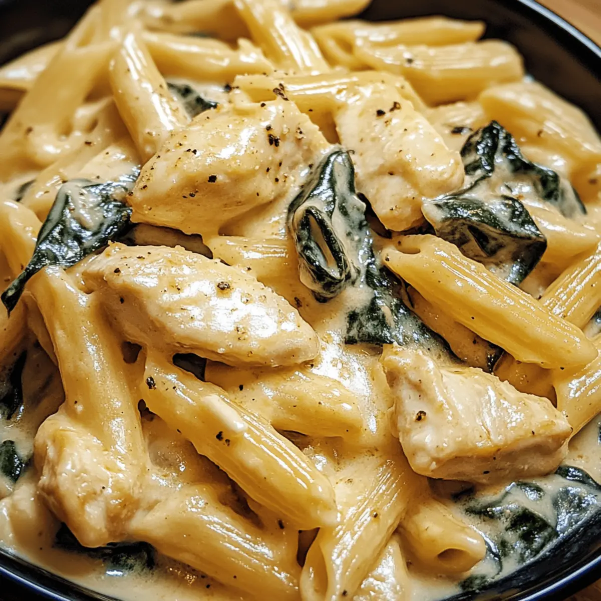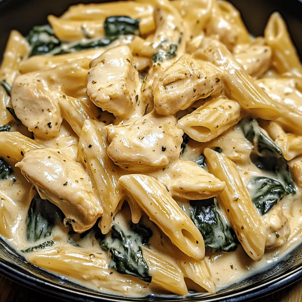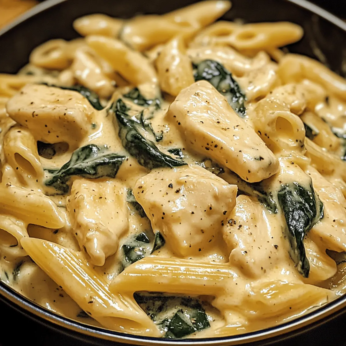 In der Hektik des Alltags kann es manchmal eine kleine Herausforderung sein, ein köstliches Abendessen auf den Tisch zu bringen. Aber was wäre, wenn ich Ihnen sage, dass die Lösung nur einen Topf entfernt ist? Diese cremige Frischkäse-Spinat-Hähnchen-Pasta vereint einfaches Kochen mit unglaublich viel Geschmack. Mit zartem Hähnchen und frischem Spinat in einer samtigen Soße aus Frischkäse wird dieses Rezept garantiert zum Wochenliebling. Nicht nur, dass es schnell zuzubereiten ist, es bietet auch die Möglichkeit, ganz leicht eine vegetarische Variante zu kreieren. Egal, ob Sie nach einer unkomplizierten Idee für das Abendessen suchen oder ein besonderes Gericht für Freunde planen – dieses Rezept wird Sie und Ihre Gäste begeistern! Welche Variationen fallen Ihnen ein, um diese Pasta noch aufregender zu machen? Warum werden Sie dieses Rezept lieben? Einfachheit: Die Zubereitung dieser Frischkäse-Spinat-Hähnchen-Pasta ist kinderleicht und erfordert nur wenige Zutaten, die Sie wahrscheinlich schon zu Hause haben. Vielfalt: Ob Sie es knackig oder cremig mögen, Sie können die Pasta nach Ihrem Geschmack anpassen und sogar eine vegetarische Variante ausprobieren! Wohlschmeckend: Die Kombination von zartem Hähnchen, frischem Spinat und einer reichhaltigen Frischkäsesoße sorgt für ein unvergessliches Geschmackserlebnis, das jeden Magen erfreut. Zeitsparend: In nur 30 Minuten auf dem Tisch, ideal für hektische Wochentage oder überraschenden Besuch! Küchenfreundlich: Perfekt als Hauptgericht, lässt sich gut mit einem frischen Salat oder knusprigem Knoblauchbrot kombinieren. Diese Pasta wird schnell zum beliebten Rezept in Ihrem Haushalt! Frischkäse-Spinat-Hähnchen-Pasta Zutaten • Diese cremige Pasta wird Ihre Kochkünste bereichern und ist super einfach zuzubereiten! Für die Sauce Frischkäse – die Basis für eine herrlich cremige Soße, die jede Nudel perfekt umhüllt. Milch oder Sahne – macht die Soße geschmeidig und passt die Konsistenz nach Belieben an. Für die Pasta Pasta – wählen Sie zwischen Penne, Fusilli oder Farfalle für den optimalen Soßenhalt. Spaghetti funktionieren auch hervorragend! Für das Gemüse Spinat – bringt frische ins Gericht; können auch tiefgefrorenen Spinat verwenden, wenn es schneller gehen soll. Für das Hähnchen Hähnchenbrust – sorgt für eine gute Proteinquelle; kann durch Tofu oder Kichererbsen für eine vegetarische Option ersetzt werden. Für das Anbraten Olivenöl – verhindert, dass das Hähnchen und die Pasta kleben und verleiht einen feinen Geschmack. Diese Frischkäse-Spinat-Hähnchen-Pasta ist nicht nur ein Genuss, sondern auch eine großartige Gelegenheit, kreative Variationen auszuprobieren! Schritt-für-Schritt-Anleitung für Frischkäse-Spinat-Hähnchen-Pasta Step 1: Hähnchen vorbereiten Schneiden Sie die Hähnchenbrust in gleichmäßige Würfel und erhitzen Sie 2 Esslöffel Olivenöl in einer großen Pfanne bei mittlerer Hitze. Braten Sie das Hähnchen für etwa 6–8 Minuten an, bis es goldbraun und durchgegart ist. Achten Sie darauf, dass es nicht rosa in der Mitte bleibt. Nehmen Sie das Hähnchen heraus und legen Sie es beiseite. Step 2: Spinat hinzufügen Geben Sie bei Bedarf einen weiteren Esslöffel Olivenöl in die Pfanne und fügen Sie 200 g frischen Spinat hinzu. Lassen Sie den Spinat bei mittlerer Hitze etwa 3–4 Minuten garen, bis er verwelkt und leuchtend grün ist. Rühren Sie regelmäßig um, um ein Anbrennen zu verhindern, und haben Sie Geduld – das Verwelken dauert nicht lange. Step 3: Frischkäse-Soße zubereiten Senken Sie die Hitze auf niedrig und fügen Sie 200 g Frischkäse zur Pfanne mit dem Spinat hinzu. Mischen Sie alles gründlich, bis der Frischkäse schmilzt und eine cremige Soße entsteht. Dies sollte ca. 2–3 Minuten dauern. Achten Sie darauf, den Frischkäse gleichmäßig zu verteilen, damit er nicht klumpt. Step 4: Pasta vermengen In der Zwischenzeit haben Sie die Pasta Ihrer Wahl nach Packungsanweisung gekocht und gut abtropfen lassen. Fügen Sie die gekochte Pasta direkt zur Pfanne mit der Frischkäse-Soße und dem Spinat hinzu. Vermischen Sie alles sorgfältig, sodass die Pasta gleichmäßig mit der Soße bedeckt ist. Außerdem kann die Hitze auf mittlere Stufe erhöht werden, um alles gut durchzuwärmen. Step 5: Nach Bedarf anpassen Falls die Soße zu dick erscheint, fügen Sie nach Belieben einen Schuss Milch oder Sahne hinzu, um die gewünschte Konsistenz zu erreichen. Rühren Sie die Zutaten gut durch und lassen Sie sie noch 2 Minuten auf dem Herd, sodass sich die Aromen gut vermischen. Die Frischkäse-Spinat-Hähnchen-Pasta ist nun bereit, serviert zu werden! Lagerung und Einfrieren der Frischkäse-Spinat-Hähnchen-Pasta Kühlschrank: Lagern Sie die Reste der Frischkäse-Spinat-Hähnchen-Pasta in einem luftdichten Behälter, wo sie bis zu 3 Tage frisch bleibt. Gefrierschrank: Sie können die Pasta bis zu 3 Monate einfrieren. Achten Sie darauf, sie portionsweise in gefrierfesten Behältern zu verpacken, um Gefrierbrand zu vermeiden. Auftauen: Lassen Sie die gefrorene Pasta über Nacht im Kühlschrank auftauen oder verwenden Sie die Mikrowelle für eine schnellere Methode, aber achten Sie darauf, sie gleichmäßig zu erhitzen. Wiedererwärmen: Bei Bedarf können Sie die Pasta auf dem Herd erhitzen und gegebenenfalls etwas Milch oder Sahne hinzufügen, um die Cremigkeit der Soße wiederherzustellen. Frischkäse-Spinat-Hähnchen-Pasta Variationen Lassen Sie Ihrer Kreativität freien Lauf und verleihen Sie Ihrer Pasta einen herrlichen individuellen Touch! Vegetarisch: Ersetzen Sie das Hähnchen durch Tofu oder Kichererbsen für eine köstliche vegetarische Variante. Knoblauchgeschmack: Fügen Sie 2-3 gehackte Knoblauchzehen zur Soße hinzu und lassen Sie sie kurz anbraten. Der aromatische Duft wird den ganzen Raum erfüllen. Exotische Gewürze: Binden Sie einen Teelöffel Kurkuma oder Paprika in die Soße ein. Dies bringt nicht nur Farbe, sondern auch ein warmes, wür