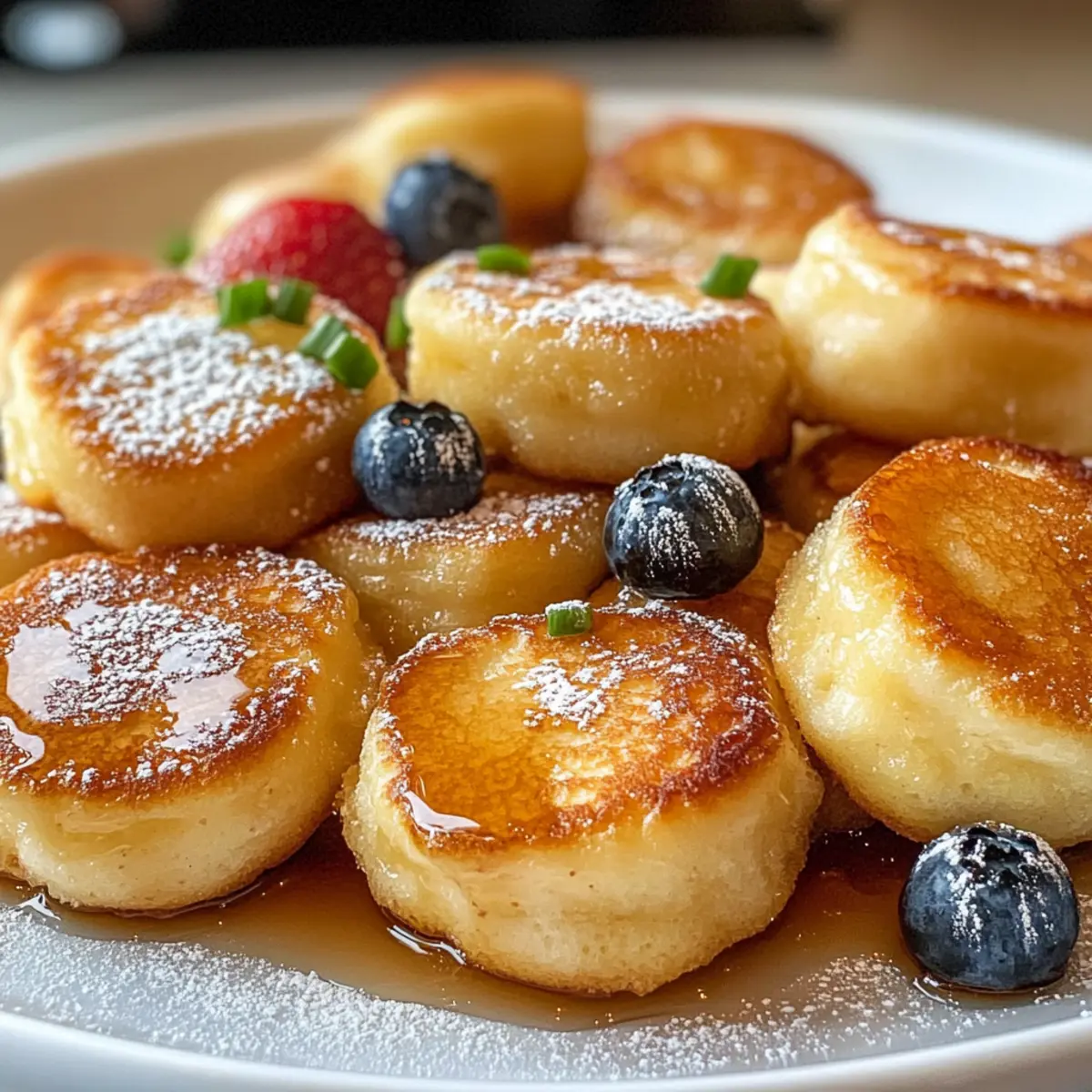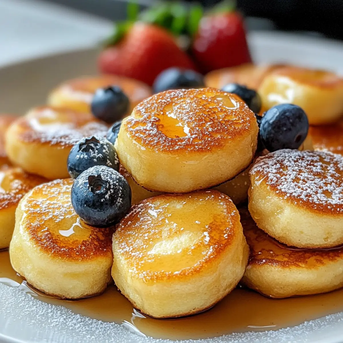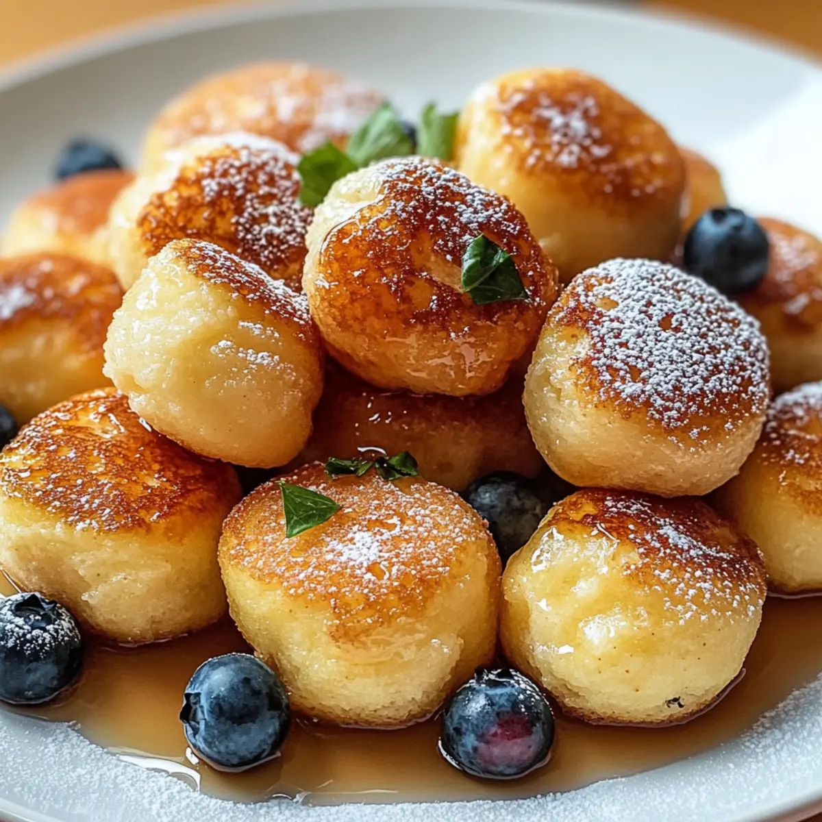 Das Frühstück mit Pfannkuchen muss nicht immer eine Herausforderung sein! Mit diesen Frühstück Pfannkuchen Poppers wird das Zubereiten von einer klassischen Mahlzeit zum Kinderspiel. Diese kleinen, fluffigen Bissen sind nicht nur perfekt für stressige Morgen, sondern fungieren auch als idealer Snack für Brunch-Feiern oder zur Vorbereitung von Mahlzeiten. In nur 20 Minuten zaubern wir köstliche, goldene Pfannkuchen, die sich wunderbar individualisieren lassen – von frischen Früchten bis hin zu schokoladigen Überraschungen. Wer kann da schon widerstehen? Taucht mit mir ein in die Welt der Frühstück Pfannkuchen Poppers und entdeckt, wie viel Spaß gesunde und einfache Frühstücksoptionen machen können! Seid ihr bereit, eure Morgende revolutionieren? Warum du diese Frühstück Pfannkuchen Poppers lieben wirst Einfachheit: Der Prozess ist kinderleicht, sodass du in nur 20 Minuten leckere und fluffige Snacks zaubern kannst. Unendliche Anpassungsmöglichkeiten: Von frischen Früchten bis zu Schokoladensplittern – jeder kann seine Lieblingszutaten wählen und seine ganz eigenen Pfannkuchen Poppers kreieren! Familienfreundlich: Diese kleinen Häppchen sind perfekt für die ganze Familie und werden selbst die wählerischsten Esser begeistern. Perfekt für unterwegs: Dank ihrer praktischen Größe sind sie ideal für hektische Morgen oder als Snack für zwischendurch. Nostalgischer Geschmack: Jeder Bissen bietet den klassischen Geschmack von Pfannkuchen, aber in einem modernes, poppbaren Format, das wirklich Freude bereitet! Frühstück Pfannkuchen Poppers Zutaten Für den Teig: Allzweckmehl – sorgt für die Struktur der Poppers; ersetze es durch Vollkornmehl für eine gesündere Variante. Zucker – fügt eine leichte Süße hinzu; kann durch Kokoszucker für eine niedrigere glykämische Option ersetzt werden. Backpulver – als Treibmittel ist es wichtig, dass es frisch ist, damit die Poppers gut aufgehen. Salz – hebt den Geschmack hervor und rundet das Aroma ab. Milch – Vollmilch sorgt für eine cremige Textur; für eine milchfreie Option kann Mandel- oder Hafermilch verwendet werden. Eier – helfen, den Teig zu binden; für eine vegane Version können Flachseier (1 EL Leinsamenmehl + 2,5 EL Wasser pro Ei) verwendet werden. Ungesalzene Butter – verleiht den Poppers eine reichhaltige Note, kann aber durch Kokosöl oder pflanzliche Butter ersetzt werden. Vanilleextrakt – sorgt für einen aromatischen Genuss; optional, aber sehr empfehlenswert. Mix-ins (z.B. Heidelbeeren, Schokoladenstückchen, Bananen, Erdbeeren) – optional; variiere die Aromen, um jede Charge einzeln zu gestalten. Für die Dekoration: Ahornsirup – perfekt zum Servieren und bringt eine süße Note. Puderzucker – als leichtes Topping für eine elegante Präsentation. Frische Früchte – ergänzen die Poppers und bringen Farbe sowie frische Aromen. Tauche ein in den Genuss der Frühstück Pfannkuchen Poppers und lasse deiner Kreativität freien Lauf, während du verschiedene Mix-ins ausprobierst! Schritt-für-Schritt-Anleitungen für Frühstück Pfannkuchen Poppers Schritt 1: Ofen vorheizen Heize den Ofen auf 190°C (375°F) vor. Dies ist wichtig, damit deine Frühstück Pfannkuchen Poppers gleichmäßig backen und beim Garen schön fluffig werden. Stelle sicher, dass du die Ofentür erst öffnest, wenn die gewünschte Temperatur erreicht ist, um Temperaturverluste zu vermeiden. Schritt 2: Trockenstoffe mischen In einer großen Schüssel kombinierst du das Allzweckmehl, den Zucker, das Backpulver und das Salz. Mische alles gründlich mit einem Schneebesen, bis die trockenen Zutaten gut vermischt sind. Diese Schritte sind entscheidend, um eine gleichmäßige Struktur für die Frühstück Pfannkuchen Poppers zu gewährleisten. Schritt 3: Feuchte Zutaten kombinieren In einer separaten Schüssel vermischst du die Milch, die Eier, die geschmolzene Butter und den Vanilleextrakt. Rühre die Mischung mit einem Schneebesen, bis sie gut verbunden ist und eine homogene Konsistenz erreicht. Das sorgt für die nötige Feuchtigkeit in deinem Teig, was zu fluffigen Poppers führt. Schritt 4: Teig vereinen Gieße die feuchten Zutaten langsam in die Schüssel mit den trockenen Zutaten und rühre vorsichtig um. Mische die beiden Komponenten, bis gerade so alles kombiniert ist. Achte darauf, nicht zu viel zu rühren, da dies die Poppers zäh machen kann. Füge nun deine gewünschten Mix-ins, wie z.B. Heidelbeeren oder Schokoladenstückchen, hinzu und falte sie sanft unter. Schritt 5: Muffinblech vorbereiten Fette ein Mini-Muffinblech großzügig ein, um ein Ankleben der Frühstück Pfannkuchen Poppers zu verhindern. Verwende dafür entweder Butter oder ein Back-Spray. Dies ist wichtig, damit die kleinen Leckerbissen nach dem Backen problemlos herausgenommen werden können und ihre Form behalten. Schritt 6: Teig einfüllen Verteile den vorbereiteten Teig gleichmäßig mit einem Esslöffel oder einem Eiskugelportionierer in die Mulden des Muffinblechs. Fülle jede Mulde etwa zu drei Vierteln, um Platz für das Aufgehen der Poppers zu lassen. Die gleichmäßige Verteilung sorgt dafür, dass alle Poppers gleichmäßig backen und gleich gut aussehen. Schritt 7: Backen Schiebe das Muffinblech in den vorgeheizten Ofen und backe die Frühstück Pfannkuchen Poppers für etwa 12 bis 15 Minuten. Sie sind fertig, wenn sie goldbraun sind und ein Zahnstocher in der Mitte sauber herauskommt. Achte darauf, sie nicht zu lange zu backen, um ihre fluffige Konsistenz zu bewahren. Schritt 8: Abkühlen lassen Lass die Poppers nach dem Backen für circa 5 Minuten im Muffinblech abkühlen. Dies erleichtert das Herausnehmen und verhindert, dass sie zerbrechen. Verwende ein kleines Küchenmesser, um rund um die Poppers zu fahren, bevor du sie vorsichtig heraushebst und auf ein Kuchengitter legst. Schritt 9: Servieren Serviere die Frühstück Pfannkuchen Poppers warm mit Ahornsirup, Puderzucker oder frischen Früchten. Diese kleinen Snacks sin