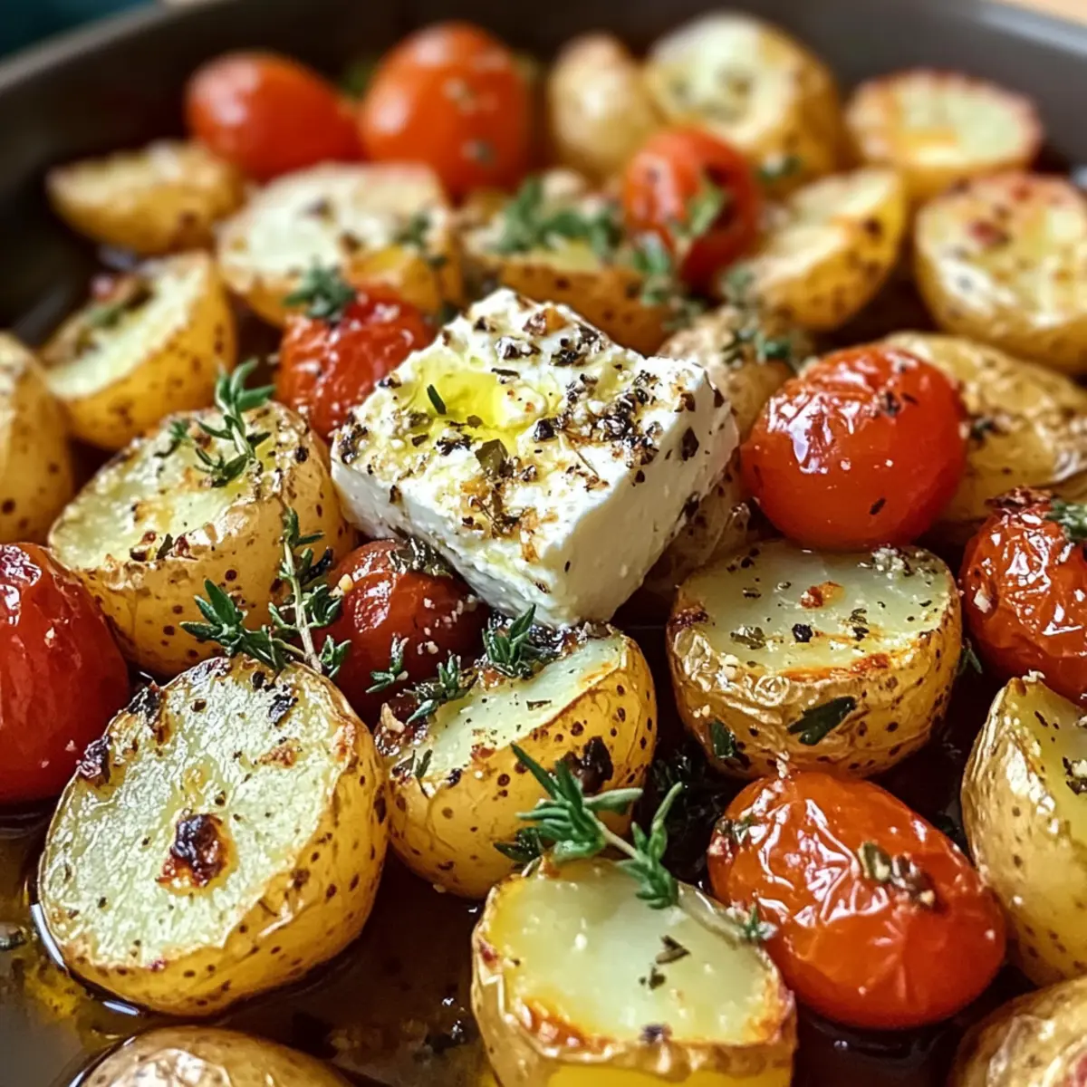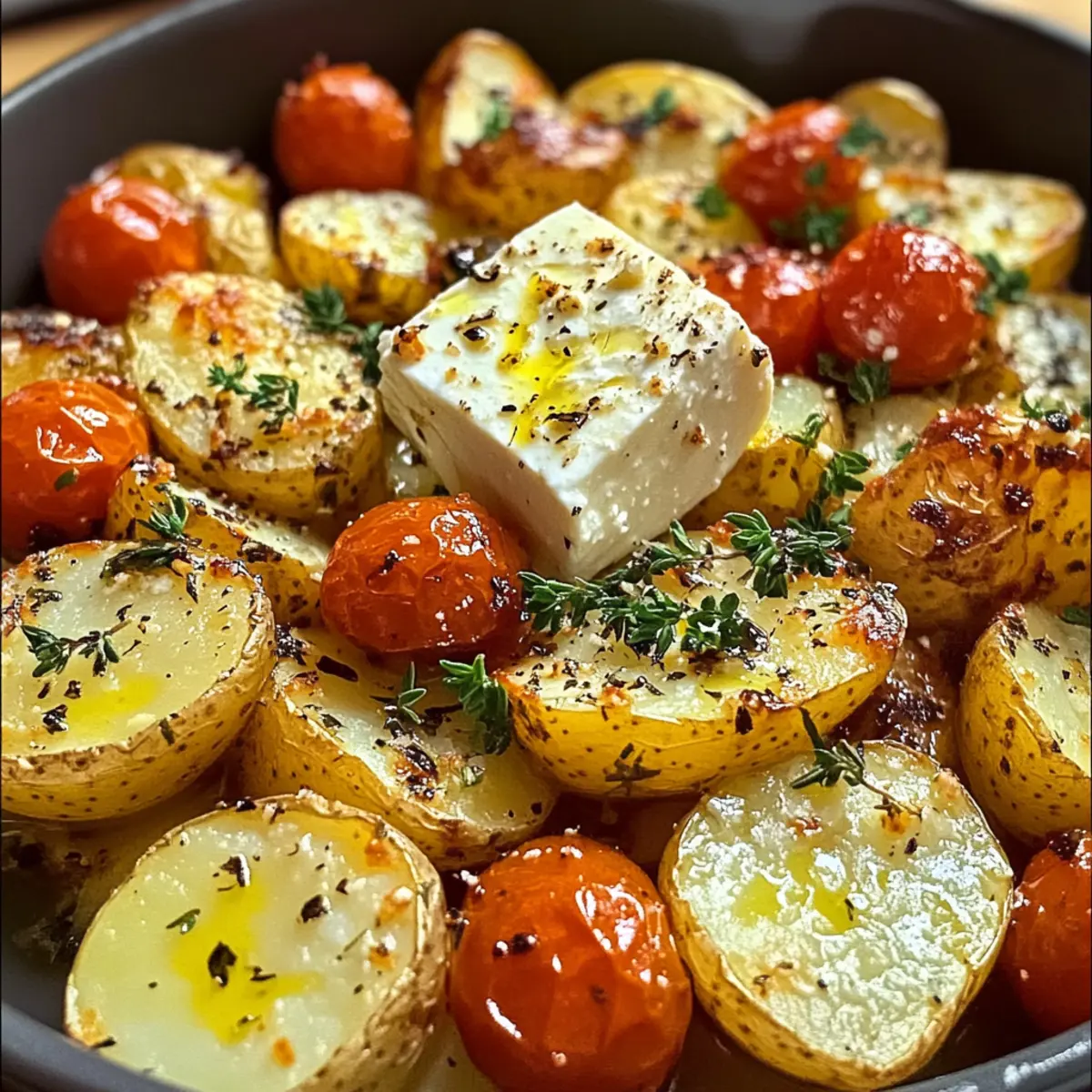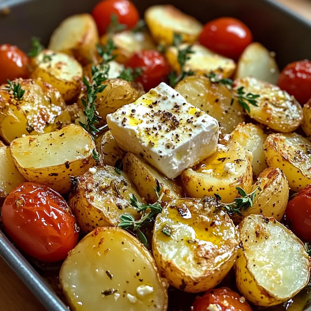 Als ich das erste Mal den köstlichen Duft frisch gebratener Feta Kartoffeln in meiner Küche verspürte, wusste ich, dass ich etwas Besonderes kreiert hatte. Die Kombination aus zarten Baby-Kartoffeln, saftigen Kirschtomaten und der cremigen Textur von gebackenem Feta bringt nicht nur das mediterrane Flair in mein Zuhause, sondern macht auch jedes Abendessen zu einem besonderen Erlebnis. Dieses Rezept für Gebratene Feta Kartoffeln ist nicht nur unglaublich einfach zuzubereiten, sondern eignet sich auch perfekt für eine schnelle Woche oder Meal Prep. In kürzester Zeit verwandelte ich einfache Zutaten in ein vollwertiges, gesundes Gericht, das sowohl Vegetarier als auch alle anderen begeistert. Bist du bereit, deine Familie mit diesem leckeren und nahrhaften Rezept zu überraschen? Lass uns anfangen! Warum wirst du dieses Rezept lieben? Einfachheit: Die Zubereitung ist kinderleicht und benötigt nur grundlegende Kochfähigkeiten – ideal für ein schnelles Abendessen! Aromatische Vielfalt: Die Kombination aus gebackenem Feta, süßen Kirschtomaten und zarten Kartoffeln sorgt für eine Geschmacksexplosion, die jeden Gaumen erfreut. Gesunde Wahl: Mit Zutaten wie Olivenöl und frischen Kräutern ist dieses Gericht nicht nur lecker, sondern auch nahrhaft und gesund. Vielseitig: Du kannst die Kartoffeln als Beilage genießen oder sie als Hauptgericht in einem salatähnlichen Mix servieren – perfekt für jede Gelegenheit! Zeitsparend: In nur 40 Minuten bereit, ist dieses Rezept optimal für beschäftigte Wochentage; du kannst es auch vorbereiten und später aufwärmen. Die Gebratene Feta Kartoffeln sind eine fantastische Möglichkeit, um frische Aromen auf den Tisch zu bringen – ein Gericht, das du immer wieder genießen willst! Gebratener Feta Kartoffel Zutaten Hinweis: Bereite die Zutaten vor, um die Zubereitung der gebratenen Feta Kartoffeln noch einfacher und schneller zu gestalten! Für die Kartoffeln Baby-Kartoffeln – Sie bilden die Basis des Gerichts und behalten beim Rösten ihre zarte Textur; du kannst auch rote Kartoffeln verwenden. Für den Feta Feta-Käse – Er verleiht dem Gericht eine cremige und leicht salzige Note; probiere alternativ Ziegenkäse für einen anderen Geschmack. Für die Tomaten Kirschtomaten – Diese platzen beim Rösten und geben eine natürliche Süße ab; keine Substitution empfohlen. Für das Rösten Olivenöl – Unverzichtbar für das Rösten der Zutaten und zur Steigerung des Geschmacks; kann bei Bedarf durch Avocadoöl ersetzt werden. Für die Würze Knoblauch – Gibt dem Gericht eine aromatische Tiefe; keine Alternativen empfohlen. Getrockneter Oregano – Klassischer mediterraner Geschmack; italienische Gewürzmischung kann ebenfalls verwendet werden. Schwarzer Pfeffer – Verstärkt die Aromen; nach Geschmack anpassen und ggf. mit roten Pfefferflocken für Schärfe ergänzen. Salz – Wichtiger Geschmacksträger, aber sparsam verwenden, da Feta bereits salzig ist; keine Substitution empfohlen. Für den Garni Frisches Basilikum oder Petersilie – Für einen frischen Akzent als Garnitur; kann auch durch Schnittlauch oder Dill ersetzt werden. Die Gebratene Feta Kartoffeln sind nicht nur ein Genuss für den Gaumen, sondern auch eine gesunde und einfache Option für dein nächstes Abendessen! Schritt-für-Schritt-Anleitung für Gebratene Feta Kartoffeln Step 1: Ofen vorheizen Heize den Ofen auf 200°C (400°F) vor, damit er die perfekte Temperatur für das Rösten der Zutaten erreicht. Dies sorgt dafür, dass die Kartoffeln gleichmäßig garen und die Kirschtomaten ein köstliches Röstaroma entwickeln. Bereite ein tiefes Backblech oder eine große Auflaufform vor, die genügend Platz für die Zutaten bietet. Step 2: Kartoffeln vorbereiten Wasche die Baby-Kartoffeln gründlich unter fließendem Wasser und schneide sie in Hälften oder Viertel, je nach Größe. Achte darauf, dass die Stücke gleichmäßig sind, damit sie gleichmäßig garen. Die Kartoffeln bilden die Basis für die gebratenen Feta Kartoffeln und sorgen für eine zarte Textur beim Rösten. Step 3: Zutaten vermischen Gib die vorbereiteten Kartoffeln, Kirschtomaten, den gehackten Knoblauch, das Olivenöl, getrockneten Oregano, schwarzen Pfeffer und Salz in die große Auflaufform. Mische alles gründlich, sodass die Kartoffeln und Tomaten gleichmäßig mit der Marinade überzogen sind. Dies sorgt für einen intensiven Geschmack, der die Grundlage für die gebratenen Feta Kartoffeln bildet. Step 4: Feta hinzufügen Platziere den Block des Feta-Käses in der Mitte der Mischung auf dem Blech. Träufle etwas zusätzliches Olivenöl über den Feta, um dessen Geschmack beim Backen zu intensivieren. Dies ist der Höhepunkt der gebratenen Feta Kartoffeln und sorgt für eine cremige Textur, wenn er schmilzt. Step 5: Backen Setze das Backblech in den vorgeheizten Ofen und backe die Zutaten 35-40 Minuten lang. Rühre die Mischung etwa nach der Hälfte der Backzeit um, damit die Kartoffeln gleichmäßig bräunen und die Kirschtomaten platzen. Achte darauf, dass die Kartoffeln goldbraun und zart sind, während die Tomaten ihre Süße entfalten. Step 6: Umrühren und Servieren Nimm das Blech aus dem Ofen und rühre den geschmolzenen Feta vorsichtig in die Kartoffel-Tomaten-Mischung ein. Dies ergibt eine cremige Sauce, die alle Aromen vereint. Garniere das Gericht abschließend mit frischem Basilikum oder Petersilie und serviere es warm oder bei Zimmertemperatur. Die gebratenen Feta Kartoffeln sind nun bereit, genossen zu werden! Gebratener Feta Kartoffel Variationen Lass deiner Kreativität beim Kochen freien Lauf und gestalte dieses Rezept nach deinem Geschmack! Vegetarisch: Füge mehr Gemüse wie Zucchini oder Paprika hinzu, um noch mehr Farbe und Nährstoffe zu integrieren. Scharf: Streue etwas Cayennepfeffer oder rote Paprika über das Gericht, um eine würzige Note zu erzielen. Ein kleiner Schuss Schärfe kann den gesamten Geschmack aufpeppen. Kräuter: Verändere die frischen Kräuter und p
