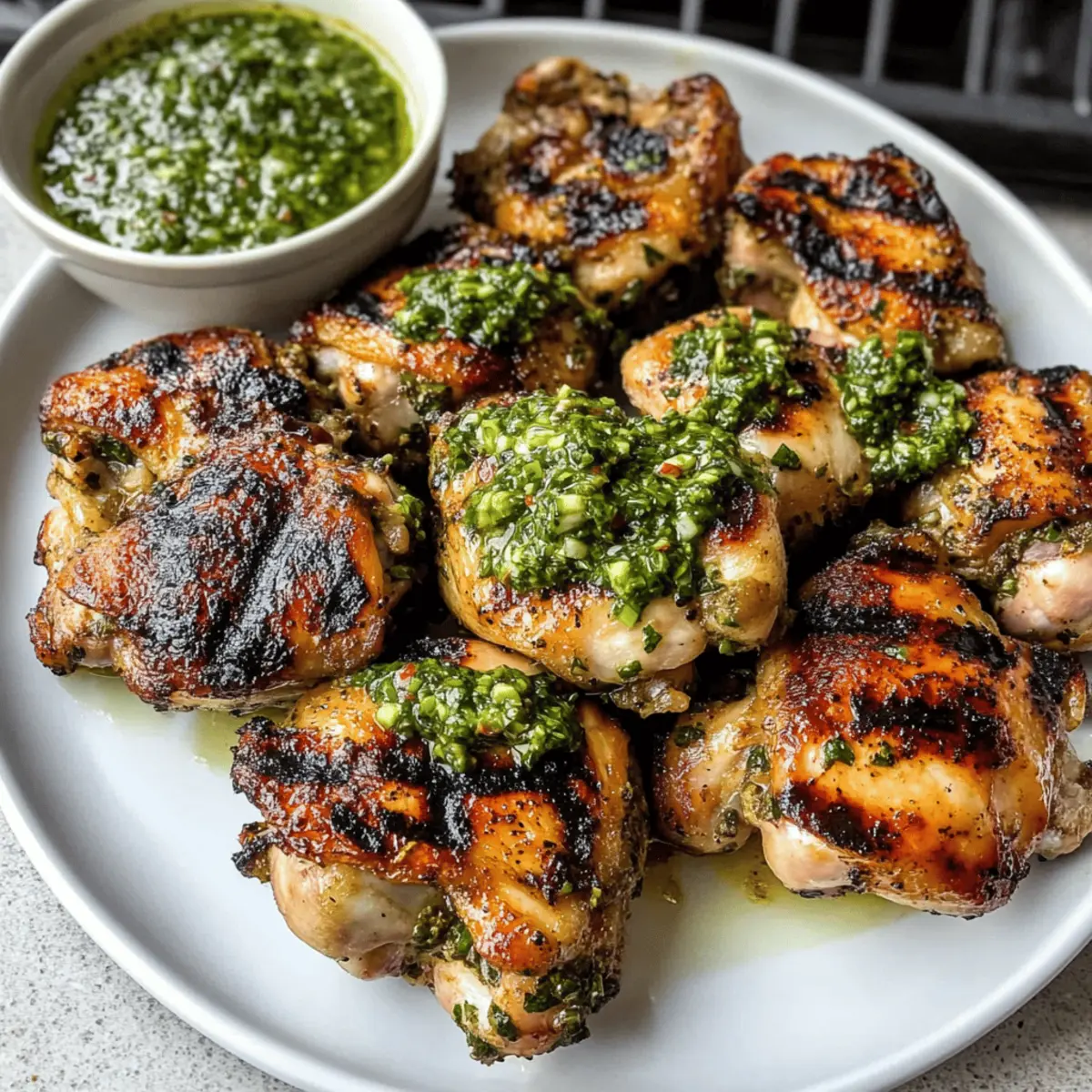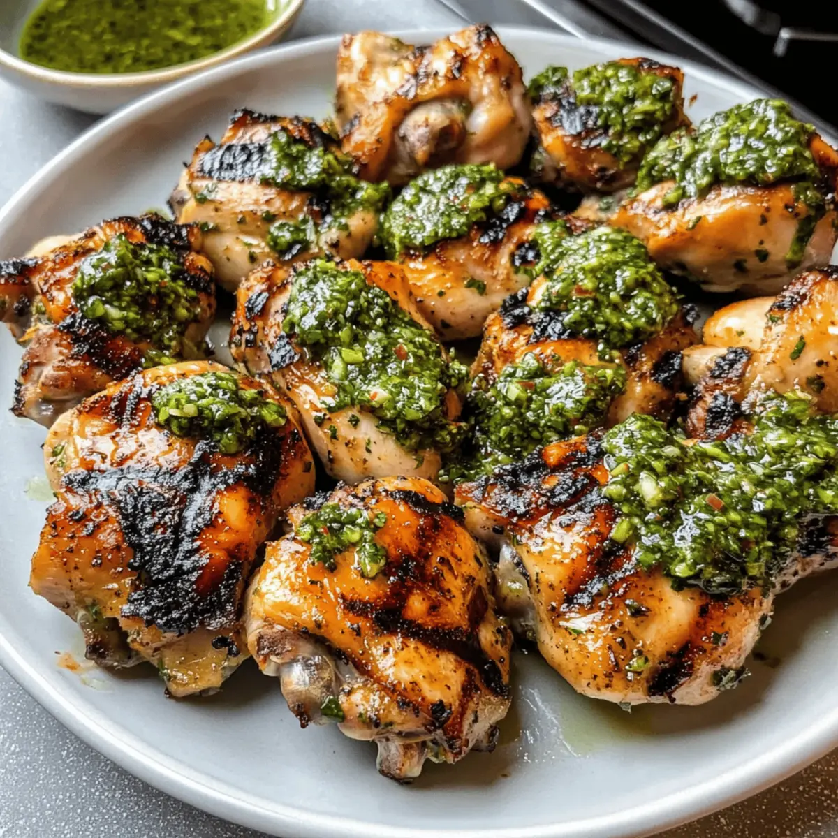 Die Sonne scheint, das Grillen beginnt und der Duft von frischen Kräutern liegt in der Luft – genau das ist der perfekte Moment für mein Rezept für Gegrilltes Chimichurri-Hühnchen. Saftige, boneless Hähnchenschenkel, die in einer köstlichen, aromatischen Chimichurri-Marinade eingelegt sind, sorgen für ein Geschmackserlebnis, das sowohl Gaumen als auch Sinne begeistert. Diese glutenfreie und schnelle Mahlzeit ist nicht nur ideal für Grillliebhaber, sondern auch eine herrliche Wahl für alle, die sich an Paleo- oder Whole30-Diäten halten. Kochen Sie mit mir und machen Sie Ihr nächstes Grillfest unvergesslich! Neugierig, wie einfach dieses Rezept zu meistern ist? Lassen Sie uns gleich loslegen! Warum sollten Sie dieses Rezept ausprobieren? Einfachheit: Die Zubereitung ist unkompliziert und erfordert keine besonderen Kochkünste – perfekt für jeden Grillliebhaber. Frischer Geschmack: Die Kombination aus Kräutern und der aromatischen Marinade sorgt für ein intensives Geschmackserlebnis, das Sie und Ihre Gäste begeistern wird. Vielseitigkeit: Dieses Rezept ist anpassbar! Verwenden Sie verschiedene Hähnchenteile oder probieren Sie es mit frischem Gemüse – für jeden Geschmack ist etwas dabei. Zeitersparnis: Die Marinierzeit kann flexibel gestaltet werden, sodass Sie mehr Zeit für Ihre Gäste haben. Gesund und nahrhaft: Dieses Gericht ist glutenfrei und passt perfekt zu Paleo- und Whole30-Diäten – eine gesunde Option für alle! Lassen Sie sich auch von meinen anderen Rezepten inspirieren, wie Schnellen gegrillten Gemüse oder Gesunden Beilagen für Grillabende! Gegrilltes Chimichurri-Hühnchen Zutaten Für die Chimichurri-Sauce Frische glatte Petersilie – sorgt für einen frischen, kräuterigen Geschmack; ersetzen Sie durch Koriander für eine andere Note. Frischer Oregano – bringt erdige Aromen; 2 Teelöffel getrockneter Oregano können die frische Variante ersetzen. Knoblauchzehen – für tiefen, herzhaften Geschmack; fein hacken, um maximalen Geschmack zu entfalten. Kleine Schalotte – fügt süße und komplexe Noten hinzu; fein schneiden für eine optimale Mischung. Kleine Serrano-Chili – optionale Schärfe; oder verwenden Sie eine Jalapeño für weniger Hitze oder weglassen für eine milde Version. Rotweinessig – bietet Säure zur Balance der Aromen; Apfelessig ist eine gute Alternative. Meersalz – hebt alle Aromen; nach Geschmack hinzufügen. Frisch gemahlener schwarzer Pfeffer – sorgt für eine leichte Wärme; je nach Vorliebe anpassen. Natives Olivenöl Extra – dient als Basis für die Chimichurri-Sauce und hält das Hähnchen saftig; verwenden Sie hochwertiges Öl für besten Geschmack. Für das Hühnchen Boneless Hähnchenschenkel – beste Wahl für Saftigkeit; auch Knochenstücke oder Hähnchenbrust sind anpassbar, aber die Grillzeit anpassen. Genießen Sie das Gegrillte Chimichurri-Hühnchen als die perfekte Sommermahlzeit! Step-by-Step Instructions für Gegrilltes Chimichurri-Hühnchen Step 1: Chimichurri vorbereiten In einer Schüssel die frische, glattblättrige Petersilie, den Oregano, die fein gehackten Knoblauchzehen, die Schalotte und die Serrano-Chili kombinieren. Fügen Sie Rotweinessig, Meersalz und frisch gemahlenen schwarzen Pfeffer hinzu. Während Sie umrühren, träufeln Sie langsam das natives Olivenöl Extra ein, bis die Mischung gut emulgiert ist. Probieren Sie die Sauce und passen Sie die Gewürze nach Ihrem Geschmack an. Step 2: Hühnchen marinieren Legen Sie die boneless Hähnchenschenkel in eine große Schüssel oder einen Plastikbeutel. Gießen Sie die Hälfte der vorbereiteten Chimichurri-Sauce über die Hähnchenteile und stellen Sie sicher, dass sie gleichmäßig bedeckt sind. Decken Sie die Schüssel ab oder verschließen Sie den Beutel und lassen Sie das Hühnchen mindestens eine Stunde im Kühlschrank mariniert – idealerweise über Nacht für mehr Geschmack. Step 3: Grill vorheizen Heizen Sie Ihren Grill oder eine Grillpfanne auf mittlere bis hohe Temperatur vor, etwa 200–230°C. Warten Sie, bis der Grill heiß genug ist, um eine schöne Grillmarkierung auf dem Hühnchen zu erzeugen. Dies sorgt dafür, dass das Gegrillte Chimichurri-Hühnchen außen knusprig und innen saftig bleibt. Step 4: Hühnchen grillen Legen Sie die marinierten Hähnchenschenkel auf den vorgeheizten Grill. Grillen Sie das Hühnchen für etwa 5–7 Minuten auf jeder Seite, bis es durchgegart ist und eine innere Temperatur von 75°C erreicht. Achten Sie darauf, dass die Hähnchenteile schön gebräunt sind und ein köstliches Aroma verbreiten. Step 5: Ruhen lassen und servieren Nehmen Sie das Gegrillte Chimichurri-Hühnchen vom Grill und lassen Sie es 5 Minuten ruhen, damit die Säfte sich setzen können. Servieren Sie das Hühnchen warm und beträufeln Sie es großzügig mit der restlichen Chimichurri-Sauce. Begleiten Sie es mit Ihrer Lieblingsbeilage wie gegrilltem Gemüse oder einem frischen Salat für ein perfektes Sommermahl. Tipps für das beste Gegrillte Chimichurri-Hühnchen Marinieren: Lassen Sie das Hühnchen mindestens eine Stunde marinieren, besser über Nacht. So ziehen die Aromen tief ein und es wird besonders saftig. Grillvorbereitung: Heizen Sie den Grill gründlich vor. Ein gut vorgeheizter Grill sorgt für eine perfekte Grillmarkierung und verhindert, dass das Hühnchen anklebt. Temperatur prüfen: Verwenden Sie ein Fleischthermometer, um die innere Temperatur von 75°C zu überprüfen. Dies gewährleistet, dass das Gegrillte Chimichurri-Hühnchen perfekt durchgegart ist. Hühnchen ruhen lassen: Lassen Sie das Hühnchen nach dem Grillen 5 Minuten ruhen. So bleiben die Säfte im Fleisch und machen es noch zarter. Variationen beachten: Experimentieren Sie mit verschiedenen Kräutern für die Chimichurri-Sauce oder fügen Sie zusätzliche Chili für mehr Schärfe hinzu. Variationen & Alternativen für Gegrilltes Chimichurri-Hühnchen Lassen Sie Ihrer Kreativität freien Lauf und passen Sie dieses Rezept nach Ihrem Geschmack 