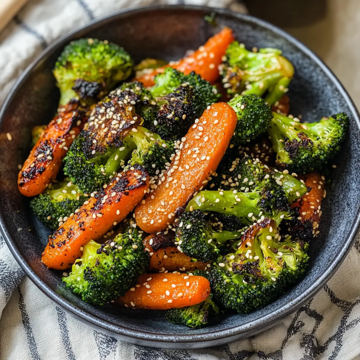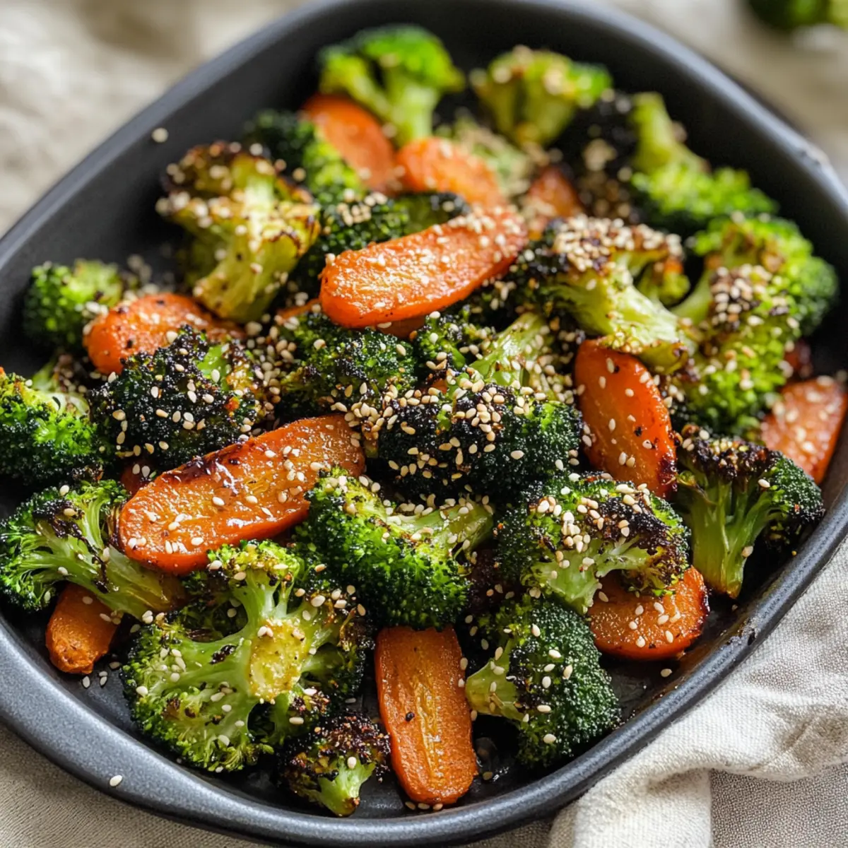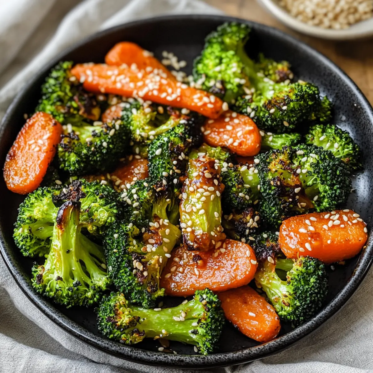 Wenn ich in der Küche stehe und die Aromen von frischem Ingwer und sojasoßengetränkten Gemüsesorten aufsteigen, komme ich sofort in Fernost. Heute lade ich euch ein, diese Reise mit mir zu teilen, während wir gemeinsam unseren köstlichen Gerösteten Brokkoli & Karotten zubereiten. Dieses einfache und gesunde Rezept verwandelt alltägliche Zutaten in eine geschmackvolle Beilage, die nicht nur aromatisch ist, sondern auch eure Nährstoffaufnahme mühelos erhöht. Zudem ist es glutenfrei und perfekt für alle, die ein schnelles, nahrhaftes Gericht suchen. Egal, ob ihr es zu einem saftigen Stück Fleisch, einer Portion Reis oder alleine genießen möchtet, diese harmonische Kombination wird sicherlich für Begeisterung sorgen. Seid ihr bereit, euch selbst zu überraschen? Warum wird dieses Rezept geliebt? Einfachheit: Die Zubereitung ist kinderleicht und benötigt nur wenige Zutaten, sodass ihr im Handumdrehen eine gesunde Beilage zaubern könnt. Vielfalt: Dieses Rezept ist unglaublich anpassungsfähig – tauscht einfach die Karotten gegen Zucchini oder fügt Sesamsamen hinzu, um zusätzliche Texturen zu schaffen! Gesundheit: Reich an Vitaminen und Ballaststoffen, trägt dieses Gericht dazu bei, euren Gemüseanteil spielend zu erhöhen, während es kalorienarm bleibt. Aromatische Aromen: Die Kombination von Ingwer, Honig und Sojasauce sorgt für einen unvergesslichen Geschmack, der an die traditionelle asiatische Küche erinnert. Perfekte Ergänzung: Egal, ob zu gegrilltem Hähnchen, Tofu oder als Hauptgericht – diese gerösteten Gemüse passen hervorragend zu vielen Speisen. Wenn ihr nach weiteren Variationen sucht, probiert einmal Wuerzige Puten Brokkoli, um neue Geschmäcker zu entdecken! Zeitsparend: Mit nur 30 Minuten im Ofen sind diese Brokkoli- und Karottenstücke die schnelle Lösung für ein leckeres Abendessen. Gerösteter Brokkoli & Karotten Zutaten Hier sind die Zutaten, die ihr für dieses köstliche Gericht benötigt: Für das Gemüse Brokkoli-Röschen – bietet viele Nährstoffe und eine knackige Textur. Alternativ könnt ihr auch Blumenkohl verwenden. Karotten – bringen natürliche Süße und leuchtende Farben ins Gericht. Für einen besonderen Geschmack können auch Pastinaken verwendet werden. Knoblauch – verstärkt die Geschmacksintensität. Frischer Knoblauch sorgt für die besten Ergebnisse. Für die Marinade Avocadoöl oder Olivenöl – fungiert als gesunde Fettquelle für das Rösten. Jedes neutrale Öl kann als Ersatz benutzt werden. Honig – sorgt für Süße und hilft bei der Karamellisierung. Agavendicksaft oder Ahornsirup sind vegane Alternativen. Low Sodium Sojasauce oder Tamari – bringt salzige und umami-reiche Noten ins Spiel, die die Frische des Gemüses ergänzen. Kokosaminos bieten eine soja-freie Option. Reisessig – fügt eine milde Säure hinzu. Apfelessig kann ebenfalls verwendet werden. Gemahlener Ingwer – sorgt für eine angenehme Würze. Frischer Ingwer kann bei Bedarf ebenfalls genutzt werden. Geröstetes Sesamöl – verleiht dem Gericht ein intensives Aroma. Bewahrt die Hälfte, um das Gericht kurz vor dem Servieren zu verfeinern. Für das Finish Schwarzer Pfeffer – gibt einen Hauch von Schärfe. Passt die Menge nach Belieben an. Optionale Garnitur (Sesamsamen, gehackte Petersilie) – bereichert die Präsentation und sorgt für zusätzliche Textur. Lasst euch vom Gerösteten Brokkoli & Karotten verzaubern – ein einfaches Rezept, das gesunde Ernährung in euer Leben bringt! Schritt-für-Schritt-Anleitung für Gerösteter Brokkoli & Karotten Step 1: Ofen vorheizen Heizt euren Ofen auf 200 °C (400 °F) vor und legt ein großes Backblech mit Backpapier aus. Dies sorgt dafür, dass der Geröstete Brokkoli & Karotten gleichmäßig röstet und nicht anklebt, während die Aromen sich entfalten. Step 2: Gemüse vorbereiten In einer großen Schüssel kombiniert ihr die Brokkoli-Röschen, die Karotten und den fein gehackten Knoblauch. Schneidet die Karotten in gleichmäßige Scheiben, damit sie gleichzeitig gar werden, und sorgt für ein buntes Farbspiel in eurem Gericht. Step 3: Marinade hinzufügen Fügt nun das Avocadoöl, den Honig, die Sojasauce, den Reisessig, den gemahlenen Ingwer und 1 Esslöffel des gerösteten Sesamöls zu eurem Gemüse hinzu. Mischt alles gut durch, bis die Gemüsestücke gleichmäßig mit der Marinade überzogen sind, was ca. 2-3 Minuten dauert. Step 4: Gemüse verteilen Übertragt die Gemüse-Mischung auf das vorbereitete Backblech und breitet sie in einer gleichmäßigen Schicht aus. Achtet darauf, dass die Brokkoli-Röschen und Karotten nicht übereinander liegen, damit sie schön gleichmäßig rösten und eine goldbraune Farbe entwickeln. Step 5: Rösten im Ofen Röstet die Mischung im vorgeheizten Ofen für etwa 30 Minuten. Wendet das Gemüse nach der ersten 15 Minuten, damit es von allen Seiten schön knusprig wird. Achtet darauf, dass die Ränder leicht karamellisiert und die Karotten weich sind. Step 6: Servieren und garnieren Nehmt das Backblech aus dem Ofen und beträufelt das Gemüse mit dem restlichen gerösteten Sesamöl. Nach Belieben könnt ihr das Gericht mit Sesamsamen und gehackter Petersilie garnieren. Serviert den Gerösteten Brokkoli & Karotten heiß, um die Aromen optimal zur Geltung zu bringen. Vorbereitungen für den Gerösteten Brokkoli & Karotten Ihr gelingt die Zubereitung des Gerösteten Brokkoli & Karotten mühelos auch in der Vorausplanung! Die meisten Zutaten, die für diese köstliche Beilage benötigt werden, können bereits bis zu 24 Stunden im Voraus vorbereitet werden. Schneidet den Brokkoli und die Karotten, und bewahrt sie in einem luftdichten Behälter im Kühlschrank auf, um die Frische zu erhalten; dies verhindert ein Verwelken oder Austrocknen. Die Marinade aus Avocadoöl, Sojasauce, Honig und Gewürzen kann ebenfalls separat gemischt und bis zu 3 Tage im Kühlschrank aufbewahrt werden. Wenn es Zeit ist, das Gericht zuzubereiten, einfach das Gemüse mit der Marin