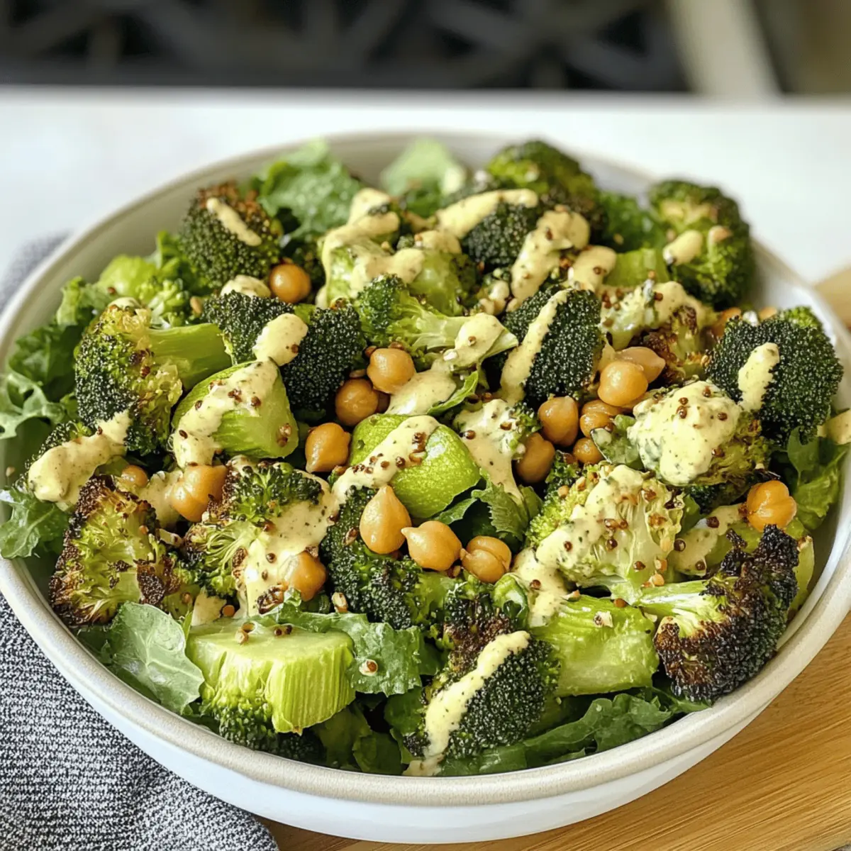Ein köstlicher Gerösteter Brokkoli-Salat mit cremigem Dressing, perfekt für eine gesunde und nahrhafte Mahlzeit.
