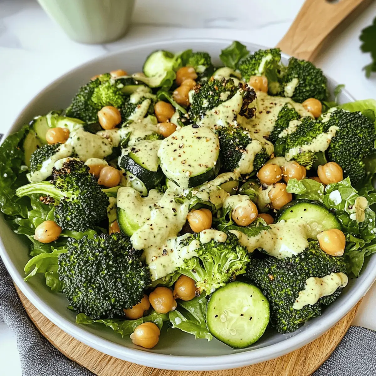Dein Gerösteter Brokkoli-Salat mit cremigem Dressing ist nun fertig! Serviere ihn sofort als sättigende Hauptspeise oder leckere Beilage. Achte darauf, die Kombination aus warmem Gemüse und kühlem Dressing zu genießen, um das volle Geschmackserlebnis zu erleben.