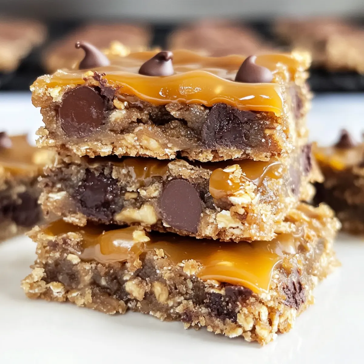 Es war ein regnerischer Sonntagnachmittag, als ich plötzlich das Verlangen verspürte, etwas Süßes zu zaubern. Ich durchstöberte meine Vorratskammer und entdeckte alle Zutaten, die ich für die Herstellung von gesalzenen Karamell-Schokoladenkeks-Oat-Bars benötigte. Diese köstlichen Riegel vereinen eine herzhafte, weiche Haferkekskruste mit zartem Karamell und schmelzenden Schokoladenstückchen – perfekt für jede Gelegenheit! Ob als süße Überraschung für Freunde oder als Soulfood für dich selbst, sie sind schnell zubereitet und bringen garantiert Freude in jede Küche. Bereit, deine Geschmacksnerven mit dieser nostalgischen Leckerei zu verwöhnen? Lass uns gemeinsam das Backabenteuer beginnen! Warum sind diese Riegel so unwiderstehlich? Einfachheit: Die Zubereitung ist kinderleicht und erfordert nur grundlegende Backkenntnisse, sodass du sie auch an einem hektischen Tag schnell zaubern kannst. Köstlicher Geschmack: Die Kombination aus gesalzenem Karamell und Schokolade sorgt für ein Geschmackserlebnis, das die Sinne verführt. Vielseitig: Du kannst die Riegel nach Belieben anpassen, indem du zum Beispiel Nüsse oder verschiedene Schokoladenvarianten hinzufügst. Perfekte Textur: Die weiche und chewy Konsistenz der Riegel harmoniert perfekt mit der knusprigen Haferkeksschicht – ein Hochgenuss! Publikumsliebling: Egal, ob bei Partys oder als Geschenk, diese Riegel kommen immer gut an und sorgen für glückliche Gesichter. Lange Haltbarkeit: Bewahre die Riegel in einem luftdichten Behälter auf, um auch an den Tagen nach dem Backen immer eine süße Versuchung zur Hand zu haben. Zutaten für Gesalzene Karamell-Schokoladenkeks-Oat-Bars • Hier ist die Liste der Zutaten, die du benötigst, um diese köstlichen Riegel zu zaubern! Für den Teig Brauner Zucker – sorgt für Süße und Feuchtigkeit; verwende hellen oder dunklen Zucker für einen intensiveren Geschmack. Ungesalzene Butter – gibt Fett und Reichhaltigkeit; du kannst auch Kokosöl als milchfreie Option verwenden. Vanilleextrakt – verstärkt den Geschmack; für beste Ergebnisse nutze reinen Vanilleextrakt. Weißes Mehl – sorgt für die Struktur der Riegel; Vollkornmehl kann für einen nussigeren Geschmack verwendet werden. Altmodische Haferflocken – verleihen die chewiness und Textur; ersetze sie nicht durch Instant-Hafer. Backsoda – ist ein Treibmittel für eine lockere Textur. Salz – balanciert die Süße aus. Für die Füllung Schokoladenstückchen – bringen Geschmack und Reichhaltigkeit; Halbsüße oder Zartbitter sind ideal, nutze aber auch allergikerfreundliche Schokolade. Weiche Karamellen – sorgen für die köstliche Gooeyness; empfehlenswert sind Werther’s oder Kraft Karamellen, hausgemachte Karamellen sind ebenfalls möglich, benötigen aber etwas mehr Vorbereitung. Schlagsahne – hilft dabei, die Karamellen in eine Sauce zu schmelzen; kannst auch Kokoscreme für eine milchfreie Version verwenden. Mit diesen Zutaten bist du bereit, die unwiderstehlichen gesalzenen Karamell-Schokoladenkeks-Oat-Bars zu kreieren, die alle begeistern werden! Schritt-für-Schritt-Anleitung für Gesalzene Karamell-Schokoladenkeks-Oat-Bars Step 1: Backofen vorheizen Heize den Backofen auf 175°C vor und bereite eine 20×20 cm oder 23×23 cm große Backform vor, indem du sie mit Backpapier oder Alufolie auskleidest und leicht mit Antihaftspray einsprühst. Diese Vorarbeit stellt sicher, dass deine gesalzenen Karamell-Schokoladenkeks-Oat-Bars nach dem Backen leicht herauszunehmen sind. Step 2: Teig zubereiten In einer großen Schüssel verrühre den braunen Zucker, die geschmolzene Butter und den Vanilleextrakt, bis alles gut vermischt ist. Diese Mischung sollte schön cremig und glänzend sein. Danach füge das Mehl, die Haferflocken, das Backsoda und das Salz hinzu und vermenge alles zu einem weichen Keksteig, der leicht zusammenhält. Step 3: Teig in die Form drücken Drücke die Hälfte des Keksteigs gleichmäßig in die vorbereitete Backform. Achte darauf, dass die Schicht gleichmäßig dick ist, was die Grundlage für deine gesalzenen Karamell-Schokoladenkeks-Oat-Bars bildet. Backe den Teig für 10 Minuten, bis er leicht aufgeht und die Ränder goldbraun werden. Step 4: Karamell schmelzen Während der Boden backt, schmelze die weichen Karamellen zusammen mit der Schlagsahne in einer mikrowellengeeigneten Schüssel. Erwärme die Mischung in kurzen Intervallen von 30 Sekunden und rühre zwischendurch, bis sie glatt und zusammenfließend ist. Die Karamellsoße verleiht den Riegeln ihre typische Gooeyness. Step 5: Füllung zusammensetzen Nachdem der Keksboden aus dem Ofen gekommen ist, streue die Schokoladenstückchen gleichmäßig darüber. Gieße die geschmolzene Karamellmischung vorsichtig und gleichmäßig über die Schokoladenstückchen. Da die Riegel eine dekadente Füllung erhalten, wird der nächste Schritt das Krümeln des restlichen Keksteigs auf die Karamellschicht sein, um eine krümelige Oberfläche zu schaffen. Step 6: Backen Backe die gefüllten Riegel für weitere 14-16 Minuten, bis die Ränder goldbraun sind und die Oberseite leicht fest erscheint. Achte darauf, dass die Riegel nicht zu dunkel werden, um ihre zarte Textur zu bewahren. Sie sollten am Ende leicht gewölbt und golden sein. Step 7: Abkühlen lassen Lass die gesalzenen Karamell-Schokoladenkeks-Oat-Bars vollständig abkühlen, idealerweise für 3-4 Stunden, damit sie beim Schneiden nicht zerbröseln. Um den Prozess zu beschleunigen, kannst du die Form im Kühlschrank platzieren, was die Bars auch noch schmackhafter macht. Expertentipps für gesalzene Karamell-Schokoladenkeks-Oat-Bars Karamell richtig schmelzen: Stelle sicher, dass die Karamellen vollständig geschmolzen sind, um eine glatte Füllung zu erhalten. Klumpige Karamellen führen zu ungleichmäßigen Riegeln. Teig gleichmäßig drücken: Drücke den Keksteig gleichmäßig in die Form, um die Basis stabil zu halten. Uneinheitliche Teigschichten können beim Backen ungleichm