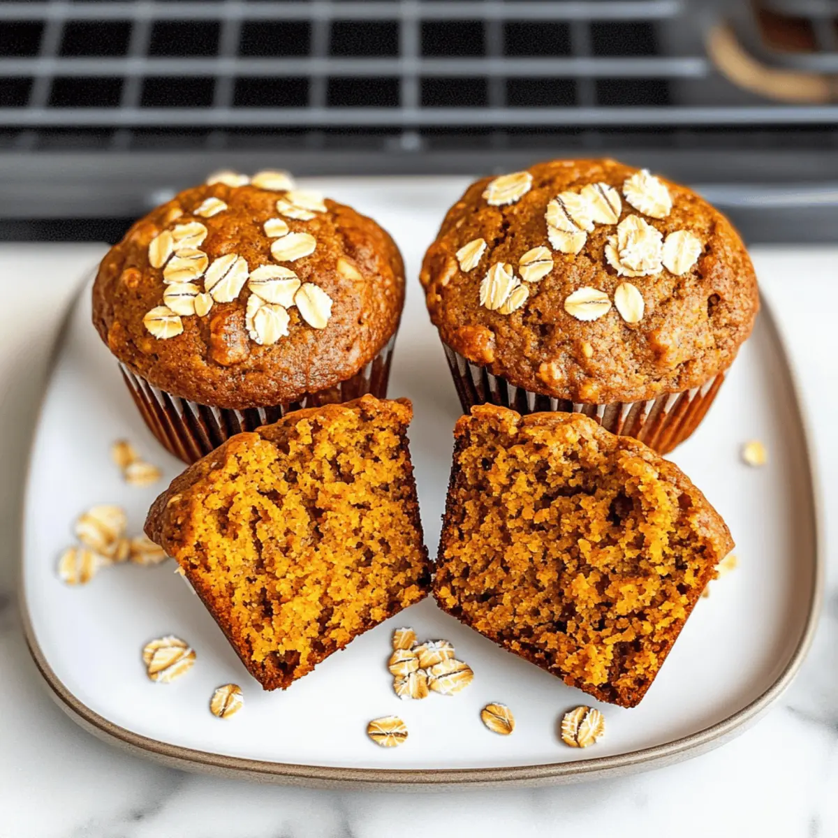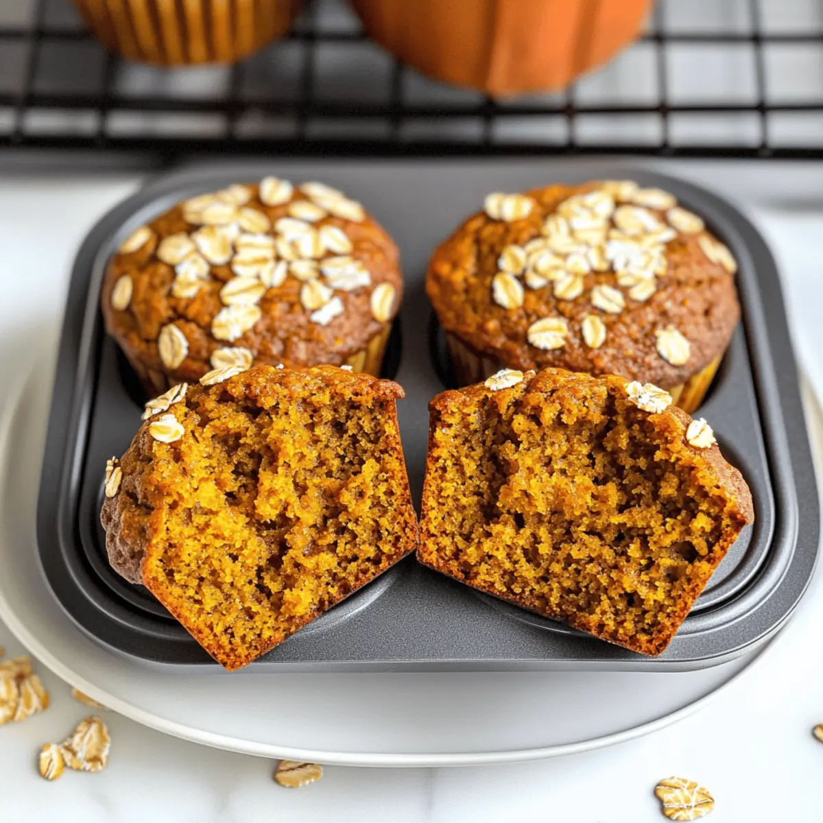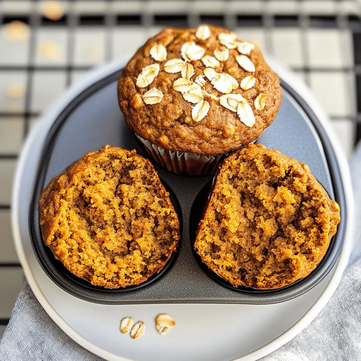 Als ich kürzlich in den Herbstbaumärkten stöberte, überkam mich der köstliche Duft von frisch gebackenem Kürbisgebäck. Diese gesunden Kürbis-Muffins fangen genau dieses Gefühl ein. Sie sind nicht nur ein Genuss für die Sinne, sondern auch ein unkompliziertes One-Bowl-Rezept, das in wenigen Minuten zubereitet ist. Feucht und fluffig, sind sie eine fantastische Wahl für ein gesundes Frühstück oder einen kleinen Snack zwischendurch, ganz ohne schlechtes Gewissen. Mit natürlichen Süßungsmitteln und Vollkornzutaten sind sie der perfekte Weg, um den Herbst in deiner Küche zu feiern. Bist du bereit, diese unwiderstehlichen Muffins auszuprobieren? Lass uns gemeinsam backen! Warum wirst du diese Muffins lieben? Einfachheit: Die gesunden Kürbis-Muffins sind dank des One-Bowl-Ansatzes kinderleicht zuzubereiten. Kein Chaos in der Küche nötig! Vielseitigkeit: Du kannst sie nach Belieben variieren, indem du Zutaten wie Schokoladenstückchen oder Nüsse hinzufügst. Perfekt für jeden Geschmack! Natürlicher Geschmack: Die Kombination aus Kürbis und warmen Gewürzen verleiht diesen Muffins ein einzigartiges, herzhaftes Aroma, das den Herbst perfekt widerspiegelt. Gesunde Wahl: Sie sind nicht nur lecker, sondern auch nährstoffreich, so dass du mit gutem Gewissen snacken kannst. Jede Portion hat nur 147 Kalorien! Platzsparend: Da sie sich wunderbar lagern lassen, sind sie ideal für ein schnelles Frühstück oder einen Snack – einfach im Kühlschrank aufbewahren oder portionsweise einfrieren. Probiere sie zusammen mit einem Gurkensalat mit Joghurt! Gesunde Kürbis-Muffins Zutaten Für den Teig Rapsöl oder geschmolzenes Kokosöl – Sorgt für Feuchtigkeit; kann durch Apfelmus ersetzt werden, um die Kalorien zu senken. Honig oder reiner Ahornsirup – Natürlicher Süßstoff, der Geschmack vermittelt; brauner Zucker kann als Alternative verwendet werden. Naturjoghurt (fettfrei) – Steigert Feuchtigkeit und Protein; kann durch normalen Joghurt oder ungesüßtes Apfelmus ersetzt werden, wenn du milchfrei bist. Großes Ei – Gibt Struktur; kann durch ein Flachseig (1 EL Leinsamenmehl + 2,5 EL Wasser) für eine vegane Option ersetzt werden. Reiner Kürbis (kein Kürbis-Püree) – Hauptgeschmacksträger; keine Alternativen nötig. Backsoda – Lässt die Muffins aufgehen; sollte nicht weggelassen oder durch Backpulver ersetzt werden, ohne die Mengen anzupassen. Gemahlener Zimt – Verleiht einen warmen Gewürzgeschmack; kann durch Kürbiskuchengewürz für intensiveren Geschmack ersetzt werden. Gemahlene Muskatnuss – Verstärkt den saisonalen Geschmack des Kürbisses; frische Muskatnuss ist bevorzugt. Gemahlener Ingwer – Fügt zusätzliche Wärme hinzu; kann gegen mehr Zimt getauscht werden. Gemahlener Piment – Ergänzt den Kürbisgeschmack; kann weggelassen werden, wenn nicht verfügbar. Koscheres Salz – Verstärkt die Süße und balanciert die Aromen; Meersalz kann als Substitute verwendet werden. Weißes Vollkornmehl – Ballaststoffreiche Alternative zu normalem Weizenmehl; kann durch Dinkelmehl oder eine glutenfreie Mischung ersetzt werden. Haferflocken – Fügt Textur hinzu; kann bei Bedarf durch schnelle Haferflocken ersetzt werden, aber die Backzeit anpassen. Schritt-für-Schritt-Anleitung für Gesunde Kürbis-Muffins Step 1: Ofen vorheizen Heize deinen Ofen auf 160 °C (325 °F) vor und fette ein Standard-Muffinblech mit etwas Rapsöl oder Kokosöl ein. Achte darauf, dass alle Zutaten Zimmertemperatur haben, um eine gleichmäßige Vermischung zu gewährleisten. Wenn der Ofen vorheizt, kannst du mit den nächsten Schritten beginnen. Step 2: Flüssige Zutaten vermischen Nimm eine große Schüssel und gib das Rapsöl, den Honig, den Naturjoghurt, das Ei und einen Teelöffel Vanilleextrakt hinein. Verrühre alles mit einem Schneebesen, bis die Mischung schön glatt und cremig ist. Diese Basis sorgt für die feuchte Konsistenz der gesunden Kürbis-Muffins. Step 3: Kürbis hinzufügen In die vorbereitete Mischung fügst du nun den reinen Kürbis hinzu. Rühre alles gut um, bis der Kürbis gleichmäßig verteilt ist und alles gut kombiniert ist. Achte darauf, die Masse nicht zu übermixen, damit die Muffins fluffig bleiben. Step 4: Trockene Zutaten einbringen Streue das Backsoda, den gemahlenen Zimt, die Muskatnuss, den Ingwer, den Piment und das Salz gleichmäßig über die Kürbismischung. Verwende einen Spatel, um alles vorsichtig zu vermengen, bis die trockenen Zutaten vollständig eingearbeitet sind. Dies gibt den Muffins ihren wunderbaren Geschmack und lassen sie gut aufgehen. Step 5: Mehl und Haferflocken hinzufügen Falte nun das weiße Vollkornmehl und die Haferflocken langsam in den Teig. Rühre nur so lange, bis keine trockenen Mehlnester mehr sichtbar sind. Zu viel Rühren könnte die Muffins zäh machen, also sei vorsichtig und achte darauf, dass der Teig gut zusammenkommt. Step 6: Teig in Muffinförmchen füllen Verteile den fertigen Teig gleichmäßig auf die Muffinförmchen, indem du sie bis zum Rand füllst. Wenn du magst, kannst du etwas zusätzliche Haferflocken auf die Oberseite streuen, um eine schöne Textur zu erhalten. Dies ist der letzte Schritt, bevor die Muffins in den Ofen kommen. Step 7: Backen der Muffins Schiebe das Muffinblech in den vorgeheizten Ofen und backe die Muffins für 24 bis 29 Minuten. Überprüfe die Garheit, indem du gegen Ende der Backzeit mit einem Zahnstocher in die Mitte eines Muffins steckst. Wenn er sauber herauskommt, sind die gesunden Kürbis-Muffins perfekt. Step 8: Auskühlen lassen Lasse die Muffins nach dem Backen für 5 Minuten im Blech stehen, damit sie etwas abkühlen. Danach kannst du sie vorsichtig auf ein Kuchengitter transferieren, um vollständig abzukühlen. Diese kleinen Leckerbissen sind jetzt bereit, genossen zu werden! Was passt zu Gesunden Kürbis-Muffins? Die Kombination aus Würze und Süße dieser Muffins findet das perfekte Pendant in einer Vielzahl von Beilagen und Getränken. Lass uns gemeinsam e