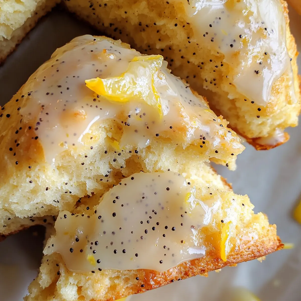 Es war ein sonniger Morgen, als ich in meiner Küche stand und den frischen Duft von Zitrone verspürte. Die Glutenfreien Zitronenscones sind ein absolutes Muss für jedes Frühstück oder als herzhaftes Snack für zwischendurch. Mit ihrer leichten, krümeligen Textur und dem intensiven Zitronen-Geschmack sind sie nicht nur köstlich, sondern auch unglaublich einfach zuzubereiten. Egal, ob für einen besonderen Anlass wie den Muttertag oder einfach, um sich selbst eine Freude zu bereiten, diese Scones sind eine perfekte Wahl. Sie kombinieren sowohl Eleganz als auch die unbeschwerte Freude eines hausgemachten Leckerbissens. Und das Beste? Sie lassen sich hervorragend im Voraus zubereiten und sind ein echter Publikumsmagnet! Bereit, in die Welt der glutenfreien Genüsse einzutauchen? Warum sind diese Scones so besonders? Einfachheit in jedem Bissen: Die Zubereitung der glutenfreien Zitronenscones erfordert nur grundlegende Backkenntnisse, und sie sind in kürzester Zeit fertig. Frischer Zitronengeschmack: Die Kombination aus Zitronensaft und -zesten bringt eine spritzige Frische, die den perfekten Start in den Tag garantiert. Vielfältiger Genuss: Ob zum Frühstück, als Nachmittagsimbiss oder zur Teestunde – diese Scones sind extrem vielseitig und passen zu jeder Gelegenheit. Herzhaft und süß: Mit der Möglichkeit, den Zuckergehalt zu variieren oder sie mit Marmelade zu servieren, können Sie diese Scones nach Ihrem Geschmack anpassen. Ein Publikumsliebling: Ihre unverwechselbare Textur und der verführerische Duft machen sie zu einem Hit bei Familie und Freunden – sie werden immer wieder nach dem Rezept fragen! Zutaten für Glutenfreie Zitronenscones • Diese glutenfreien Zitronenscones erfordern einfache, frische Zutaten, die Ihre Sinne erfreuen werden. Für den Teig Zitronenschale (von 2 mittelgroßen Zitronen) – sorgt für einen hellen, zitrusartigen Geschmack; verwenden Sie Bio-Zitronen für maximale Frische. Zucker (100 Gramm) – bringt Süße und harmonisiert mit der Säure der Zitrone. Glutenfreies Mehrzweckmehl (300 Gramm) – bietet Struktur und Textur; ideal sind Mischungen wie Bob’s Red Mill 1-to-1. Backpulver (14 Gramm/1 Esslöffel) – wirkt als Triebmittel für die perfekte Lockerung; auf Frische achten! Mohnsamen (9 Gramm/1 Esslöffel) – verleiht einen nussigen Crunch; optional, kann weggelassen werden. Koscheres Salz (1/2 Teelöffel) – verbessert den Geschmack; je nach Salztype anpassen. Ungesalzene Butter (113 Gramm, kalt) – entscheidend für die Fluffigkeit; kann durch pflanzliche Butter ersetzt werden. Kefir oder Buttermilch (125 Gramm) – sorgt für Feuchtigkeit und leichte Textur. Großes Ei (1) – verbindet die Zutaten und ist wichtig für die Struktur. Zitronensaft (25 Gramm, frisch gepresst) – intensiviert den Zitronengeschmack im Teig. Für die Glasur Puderzucker (50 Gramm) – süßt die Glasur ohne körnige Textur. Zitronensaft (10-20 Gramm) – für die Anpassung der Glasur-Konsistenz. Rohrzucker – zum Bestreuen vor dem Backen; fügt Textur und zusätzlicher Süße hinzu. Schritt-für-Schritt-Anleitung für Glutenfreie Zitronenscones Step 1: Backblech vorbereiten Lege ein Backblech mit Backpapier aus, um ein Ankleben der Scones zu verhindern. Stelle sicher, dass das Papier glatt und faltenfrei ist, damit die Glutenfreien Zitronenscones gleichmäßig backen können. Step 2: Trockene Zutaten mischen Vermenge in einer kleinen Schüssel das glutenfreie Mehrzweckmehl, Backpulver, Mohnsamen und das koschere Salz gut miteinander. Verwende einen Schneebesen, um Klumpen zu vermeiden und die Zutaten gleichmäßig zu verteilen, was etwa 2 Minuten in Anspruch nimmt. Step 3: Zitronenzucker herstellen In einer großen Schüssel vermische den Zucker mit der Zitronenschale und reibe die Mischung gut zwischen deinen Händen, um das Aroma der Zitronenschale optimal freizusetzen. Dies dauert etwa 1-2 Minuten und sorgt dafür, dass die Glutenfreien Zitronenscones intensiv zitrisch schmecken. Step 4: Zutaten kombinieren Füge die trockenen Zutaten aus der vorherigen Schüssel zur Zitronenzucker-Mischung hinzu und mische alles vorsichtig zusammen. Achte darauf, dass die Mischung gut durchmischt ist, aber verzichte darauf, zu kräftig zu rühren, um die Scones locker zu halten. Step 5: Butter einarbeiten Schneide die kalte Butter in kleine Würfel und füge diese zu den trockenen Zutaten. Vermenge die Butter mit einem Teigmischer oder zwei Gabeln, bis die Mischung die Konsistenz von grobem Paniermehl hat, was etwa 3-4 Minuten dauert. Step 6: Feuchte Zutaten vorbereiten In einer separaten Schüssel schlage den Kefir, das Ei und den Zitronensaft mit einem Schneebesen auf, bis die Mischung schaumig ist. Dies sollte in etwa 2 Minuten geschehen, da dies der Basis der feuchten Zutaten für die glutenfreien Zitronenscones dient. Step 7: Teig herstellen Gib die feuchten Zutaten zu den trockenen Zutaten und vermenge sie vorsichtig, bis alles gerade so vermischt ist. Achte darauf, den Teig nicht zu überarbeiten, da dies zu einer dichten Konsistenz führen könnte – etwa 1-2 Minuten genügen. Step 8: Teig formen Forme den Teig vorsichtig auf dem Backblech zu einem Rechteck, ohne ihn zu kneten. Klopfe und falte den Teig dreimal, um die Fluffigkeit zu gewährleisten. Dies sollte maximal 5 Minuten dauern. Step 9: Teig kühlen Forme den Teig zu einem 15 cm großen Kreis und lege ihn für 10 Minuten in den Kühlschrank. Die Kühle hilft den Scones, beim Backen die richtige Form und Textur zu behalten. Step 10: Ofen vorheizen Heize den Ofen auf 200°C vor, während der Teig kühlt. Dadurch sorgt die Hitze für ein perfektes Aufgehen der glutenfreien Zitronenscones während des Backvorgangs. Step 11: Scones schneiden Nehme den Teig aus dem Kühlschrank und schneide ihn mit einem scharfen Messer in acht gleichmäßige Keile. Ein leichter Druck sorgt dafür, dass die Scones nicht zerfallen, was etwa 2-3 Minuten dauert. Step 12: Für das Backen vorbereiten Bestreiche die Schni