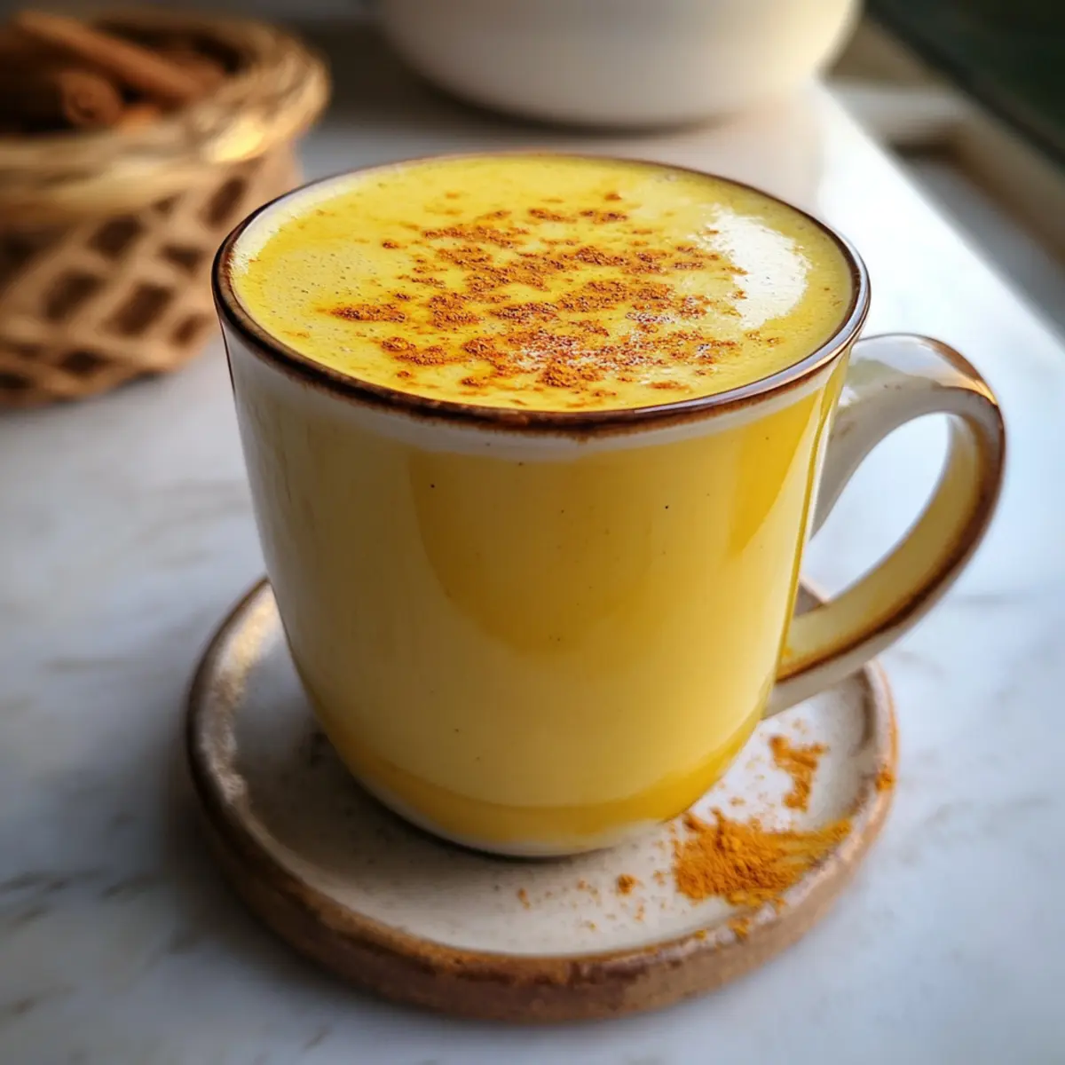 Ich stand neulich in der Küche und erfreute mich am Duft von frisch gemahlenem Zimt, als mir der Gedanke kam: Es könnte Zeit für einen Goldene Turmeric Latte sein! Dieser wunderbare, beruhigende Drink vereint die erdigen Aromen von Kurkuma und warmen Gewürzen wie Ingwer und Zimt, und schafft so ein cremiges, goldenes Trio in meiner Tasse. Nicht nur ist dieses koffeinfreie Wellness-Getränk eine wahre Wohltat für den Körper, sondern es ist auch ein leichter Energiekick für den Geist – perfekt für entspannende Abende oder den belebenden Start in den Tag. Die einfache Zubereitung macht ihn zur idealen Wahl für alle, die in der Küche kreativ sein möchten, ohne viel Zeit zu investieren. Möchtest du erfahren, wie dieser gesunde Genuss dich durch den Tag begleitet? Warum wirst du diesen Goldene Turmeric Latte lieben? Einfachheit: Die Zubereitung ist ein Kinderspiel, ideal für jeden Kochlevel. Wohltuend: Mit seinen entzündungshemmenden Eigenschaften unterstützt dieser Latte nicht nur deine Gesundheit, sondern entzückt auch den Gaumen. Vielseitig: Egal, ob heiß oder kalt, er passt immer! Varianten: Du kannst ganz nach deinem Geschmack experimentieren, zum Beispiel mit unterschiedlichen Pflanzenmilchsorten oder Gewürzen. Crowd-Pleaser: Perfekt für jede Gelegenheit, ob alleine oder mit Freunden – dieser Latte wird alle begeistern. Und wenn du auf der Suche nach weiteren köstlichen Rezepten bist, schau dir unseren Artikel über superleckere Wellness-Getränke an! Goldene Turmeric Latte Zutaten • Höchste Zeit, deinen Tag mit diesem gesunden Genuss zu erhellen! Für die Basis Ungesüßte Milch (1 Tasse) – bildet die cremige Grundlage für deinen Latte; für eine pflanzliche Option nutze Mandel-, Hafer- oder andere Pflanzenmilch. Kurkuma-Pulver (1 TL) oder frische Wurzel (1 Zoll) – sorgt für die charakteristische goldene Farbe und die gesundheitlichen Vorteile; frische Wurzel hat einen intensiveren Geschmack. Für die Gewürze Gemahlener Zimt (½ TL) – verstärkt die Süße und fügt Wärme hinzu; kann durch Zimtstangen zum Ziehen ersetzt werden. Ingwer-Pulver (½ TL) oder frischer Ingwer (1 TL gerieben) – liefert eine würzige Note und wirkt verdauungsfördernd; frisch ist intensiver. Schwarzer Pfeffer (eine Prise) – verbessert die Aufnahme von Curcumin aus Kurkuma; entscheidend, um den gesundheitlichen Nutzen zu maximieren. Für die Süße und Cremigkeit Honig oder Ahornsirup (1 TL, optional) – sorgt für die gewünschte Süße; kann für eine weniger süße Variante weggelassen werden. Kokosöl (½ TL, optional) – verstärkt die Aufnahme von Curcumin und sorgt für eine cremige Konsistenz; kann für ein leichteres Getränk weggelassen werden. Schritt-für-Schritt-Anleitung für Goldene Turmeric Latte Step 1: Zutaten kombinieren Gib die ungesüßte Milch, Kurkuma-Pulver (oder frische Kurkuma-Wurzel), gemahlenen Zimt, Ingwer-Pulver (oder frischen Ingwer), schwarzen Pfeffer und optional Honig oder Ahornsirup in einen kleinen Topf. Stelle sicher, dass alle Zutaten gleichmäßig verteilt sind, um ein gleichmäßiges Geschmackserlebnis zu gewährleisten. Step 2: Erhitzen und Rühren Erhitze die Mischung bei mittlerer bis niedriger Hitze und rühre kontinuierlich mit einem Schneebesen, damit sich die Zutaten gut vermischen. Achte darauf, dass die Mischung nicht kocht, damit die Aromen sanft extrahiert werden. Dies dauert etwa 3–5 Minuten, bis die Mischung warm wird. Step 3: Simmern lassen Lasse die Mischung 5–10 Minuten bei niedriger Hitze simmern, während du gelegentlich umrührst. Überprüfe visuell, dass die Farbe goldig wird und ein ansprechendes Aroma Freisetzung. Achte darauf, dass die Flüssigkeit leicht blubbert, aber nicht kocht, um den vollen Geschmack zu entwickeln. Step 4: Abseihen und Servieren Wenn die Goldene Turmeric Latte fertig ist, siebe die Flüssigkeit durch ein feines Sieb in eine Tasse oder einen Becher, um die festen Bestandteile zu entfernen. Dies sorgt für eine glatte, cremige Textur. Genieße den Latte warm oder lasse ihn abkühlen, um eine erfrischende, kalte Variante zu kreieren. Goldene Turmeric Latte: Vorbereitung für stressfreie Tage Die Goldene Turmeric Latte eignet sich hervorragend für die Vorbereitung, besonders in hektischen Zeiten! Du kannst die Mischung aus ungesüßter Milch, Kurkuma, Zimt, Ingwer und Pfeffer bis zu 24 Stunden im Voraus zubereiten. Verteile die Zutaten in einem luftdichten Behälter und bewahre sie im Kühlschrank auf. Um die Qualität zu wahren, rühre die Mischung vor dem Erwärmen gut durch, da sich die Gewürze absetzen können. Wenn du bereit bist, deinen Latte zu genießen, erhitze die Mischung bei niedriger Hitze unter ständigem Rühren bis sie warm ist und simmere sie für 5–10 Minuten. So hast du in kürzester Zeit ein köstliches, gesundes Getränk zur Hand! Expertentipps für Goldene Turmeric Latte Frische Zutaten: Verwende frischen Kurkuma und Ingwer für einen intensiveren Geschmack und optimale gesundheitliche Vorteile. Die Aromen entfalten sich besser! Schwarzer Pfeffer: Vergiss nicht, eine Prise schwarzen Pfeffer hinzuzufügen. Er verbessert die Aufnahme von Curcumin aus dem Kurkuma und maximiert so die gesundheitlichen Nutzen. Hitze kontrollieren: Erhitze die Mischung sanft bei mittlerer bis niedriger Hitze, um ein Anbrennen zu vermeiden. Dies ermöglicht es den Aromen, sich optimal zu entfalten, ohne dass die Zutaten überkochen. Variationen: Experimentiere mit verschiedenen Pflanzenmilchsorten, um deinen Goldene Turmeric Latte nach deinem Geschmack anzupassen. Mandel-, Hafer- oder sogar Kokosmilch sind tolle Alternativen! Süße anpassen: Passe die Süße nach deinem persönlichen Geschmack an. Füge mehr oder weniger Honig oder Ahornsirup hinzu, um dein perfektes Getränk zu kreieren. Aufbewahrungstipps für Goldene Turmeric Latte Kühlschrank: Lagere deinen Goldene Turmeric Latte in einem luftdichten Behälter für bis zu 2 Tage. Vor dem Servieren sanft erhitzen, um den cremig