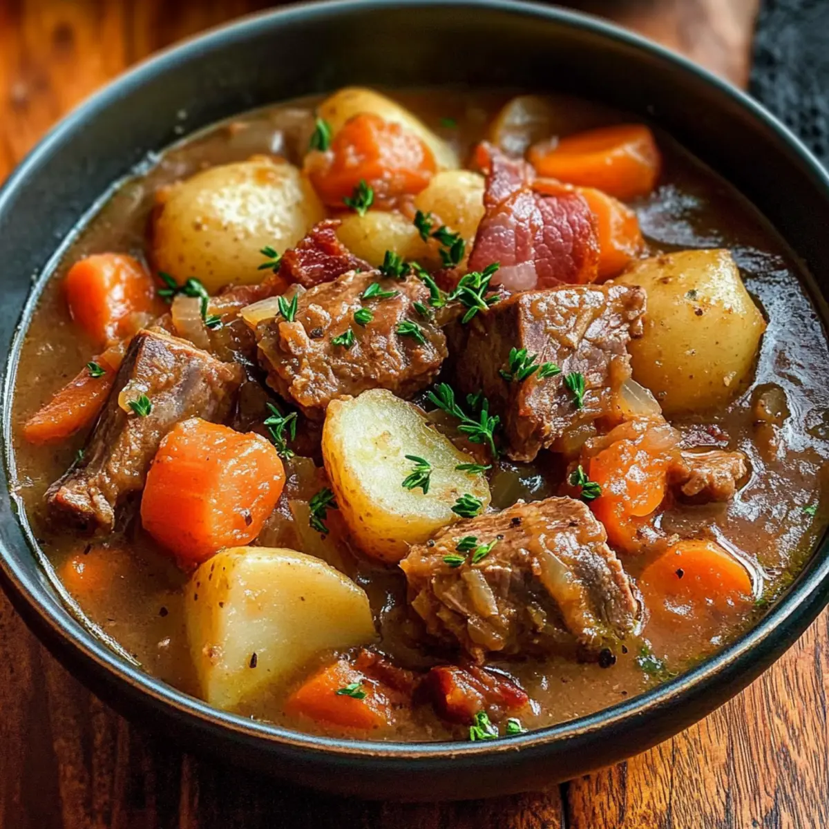 • Rinderbrühe – Basis für die Flüssigkeit des Eintopfs; ersetze die Hälfte durch Guinness für einen authentischen irischen Geschmack.