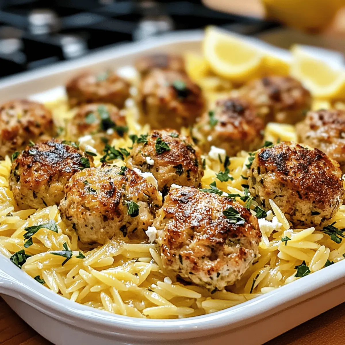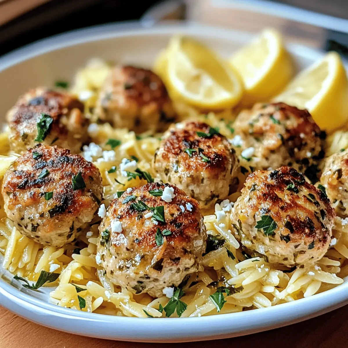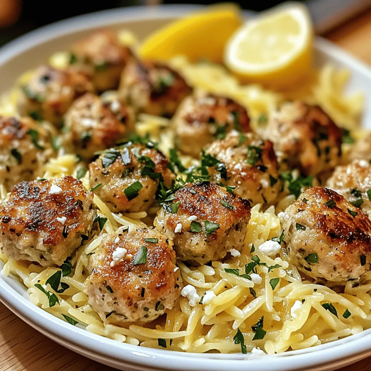 Die warmen Sonnenstrahlen auf meiner Haut und der verlockende Duft von frischen Kräutern haben mich dazu inspiriert, ein Stück Griechenland in meine Küche zu holen. Heute zeige ich euch, wie ihr köstliche Griechische Hähnchenfleischbällchen mit Zitronenorzo zaubern könnt – ein Gericht, das nicht nur schnell zubereitet ist, sondern auch jedem Schlemmer das Wasser im Mund zusammenlaufen lässt. Die saftigen, würzigen Fleischbällchen harmonieren perfekt mit dem spritzigen, zitronenfrischen Orzo und bringen eine leichte und gesunde Note auf den Tisch. Egal, ob für ein alltägliches Abendessen oder eine gesellige Zusammenkunft mit Freunden, dieses Rezept ist ein absolutes Muss. Wollt ihr wissen, wie einfach ihr diesen mediterranen Genuss nachkochen könnt? Warum sind diese Fleischbällchen so besonders? Einfache Zubereitung: Dieses Rezept für Griechische Hähnchenfleischbällchen mit Zitronenorzo ist unkompliziert und benötigt keine speziellen Kochkenntnisse. Perfekt für schnelle Abendessen! Frische Aromen: Mit Zutaten wie Zitronenzesten und frischem Dill zaubert ihr mediterrane Frische auf euren Tisch, die selbst die anspruchsvollsten Gaumen begeistert. Gesunde Wahl: Diese köstlichen Fleischbällchen enthalten mageres Hähnchenfleisch und sind reich an Eiweiß, während der Orzo für eine gesunde Portion Kohlenhydrate sorgt. Ideal für eure Meal-Prep! Vielfältige Varianten: Ob als glutenfreie Version mit Quinoa oder in Kombination mit frischem Gemüse – die Flexibilität dieses Rezeptes lässt keine Wünsche offen. Besonderer Genuss: Die Kombination aus saftigen Fleischbällchen und zitronigem Orzo wird euch und eure Gäste gleichermaßen überraschen. Serviert dazu einen frischen Salat oder einen Gurkensalat mit Garnelen für ein echtes Festmahl! Zutaten für Griechische Hähnchenfleischbällchen mit Zitronenorzo • Entdecken Sie die köstlichen Zutaten, die diesen mediterranen Genuss ausmachen: Für die Fleischbällchen: Hähnchenfleisch – eine magerere Proteinquelle; kann auch durch Putenfleisch ersetzt werden. Ei – wirkt als Binder; sorgt dafür, dass die Fleischbällchen ihre Form behalten. Paniermehl – sorgt für Struktur; wählen Sie gewöhnliches oder Panko-Paniermehl. Olivenöl – für das Braten der Fleischbällchen; verleiht Geschmack und Feuchtigkeit. Feta-Käse – bringt eine salzige und würzige Note; für den authentischen Geschmack sollte Schaf- oder Ziegenmilch-Feta verwendet werden. Frische Petersilie – sorgt für einen frischen, kräuterigen Geschmack; alternativ kann frischer Dill genutzt werden. Getrockneter Oregano – zieht mediterrane Aromen ins Gericht; für die Authentizität unerlässlich. Knoblauchzehen – intensiviert den Geschmack; je nach Vorliebe die Menge anpassen. Zitronenschale – bringt zusätzlichen Schwung; frisch ist am besten. Salz & Pfeffer – grundlegende Gewürze; nach Geschmack anpassen. Für das Zitronenorzo: Orzo-Pasta – die Hauptquelle für Kohlenhydrate; kann durch glutenfreie Pasta, Quinoa oder Reis ersetzt werden. Hühnerbrühe – verleiht dem Orzo zusätzlichen Geschmack; kann bei Bedarf auch durch Wasser ersetzt werden. Butter – sorgt für Reichtum im Orzo; optional zur Verwendung anstelle von Olivenöl. Frischer Dill (zum Garnieren) – bringt zusätzliche Frische ins Gericht. Zitronenscheiben (zum Garnieren) – für extra Spritzigkeit am Tisch. Die Griechischen Hähnchenfleischbällchen mit Zitronenorzo sind nicht nur einfach zuzubereiten, sondern auch ein Fest für die Sinne! Schritt-für-Schritt-Anleitung für Griechische Hähnchenfleischbällchen mit Zitronenorzo Step 1: Fleischbällchen zubereiten In einer großen Schüssel das Hähnchenfleisch mit dem Ei, Paniermehl, Feta-Käse, Petersilie, Oregano, Knoblauch, Zitronenschale, Salz und Pfeffer gut vermengen. Achte darauf, die Mischung vorsichtig zu mischen, um die Fleischbällchen zart zu halten. Forme gleichmäßige Bällchen von etwa 3–4 cm Durchmesser und lege sie auf einen Teller. Step 2: Fleischbällchen braten Erhitze in einer großen Pfanne 2–3 Esslöffel Olivenöl bei mittlerer Hitze. Platziere die geformten Fleischbällchen vorsichtig in der Pfanne und brate sie 4-5 Minuten lang auf jeder Seite, bis sie goldbraun sind und ihre Innentemperatur 74°C erreicht hat. Nimm die Fleischbällchen aus der Pfanne und lasse sie auf einem Küchenpapier abtropfen. Step 3: Orzo kochen Bringe in einem mittelgroßen Topf 1 Liter Hühnerbrühe zum Kochen. Füge den Orzo hinzu und koche ihn nach den Anweisungen auf der Verpackung für etwa 8-10 Minuten, bis er al dente ist. Achte darauf, hin und wieder umzurühren, damit der Orzo nicht am Topfboden kleben bleibt. Nach dem Kochen das überschüssige Wasser abgießen. Step 4: Orzo verfeinern Gebe den gekochten Orzo zurück in den Topf und füge 1–2 Esslöffel Butter, den Saft einer Zitrone, Zitronenschale und den restlichen Knoblauch hinzu. Mische alles gründlich, bis die Butter geschmolzen und die Zutaten gut verbunden sind. Schmecke den Orzo mit Salz und Pfeffer ab, um die Frische des Zitronenaromas hervorzuheben. Step 5: Gericht anrichten Verteile den Zitronenorzo gleichmäßig auf große Teller und platziere die saftigen Griechischen Hähnchenfleischbällchen darauf. Garniere das Gericht mit frischer Petersilie, Dill, zerbröckeltem Feta und Zitronenscheiben für einen extra Spritzer Frische. Genieße dein köstliches mediterranes Abendessen! Was passt zu Griechischen Hähnchenfleischbällchen mit Zitronenorzo? Die perfekte Ergänzung zu diesem mediterranen Genuss verwandelt euer Essen in ein unvergessliches Fest für die Sinne. Frischer Salat: Ein knackiger Gurkensalat mit Tomaten und Feta bringt eine erfrischende Note auf den Tisch. Der Salat harmoniert ideal mit den zarten Fleischbällchen. Gemüseplatte: Bunte, roh oder leicht gedämpfte Gemüsesorten wie Paprika, Zucchini und Karotten bieten einen gesunden Kontrast. Sie sind farbenfroh und sättigend. Griechischer Joghurt: Ein cremiger Dip au