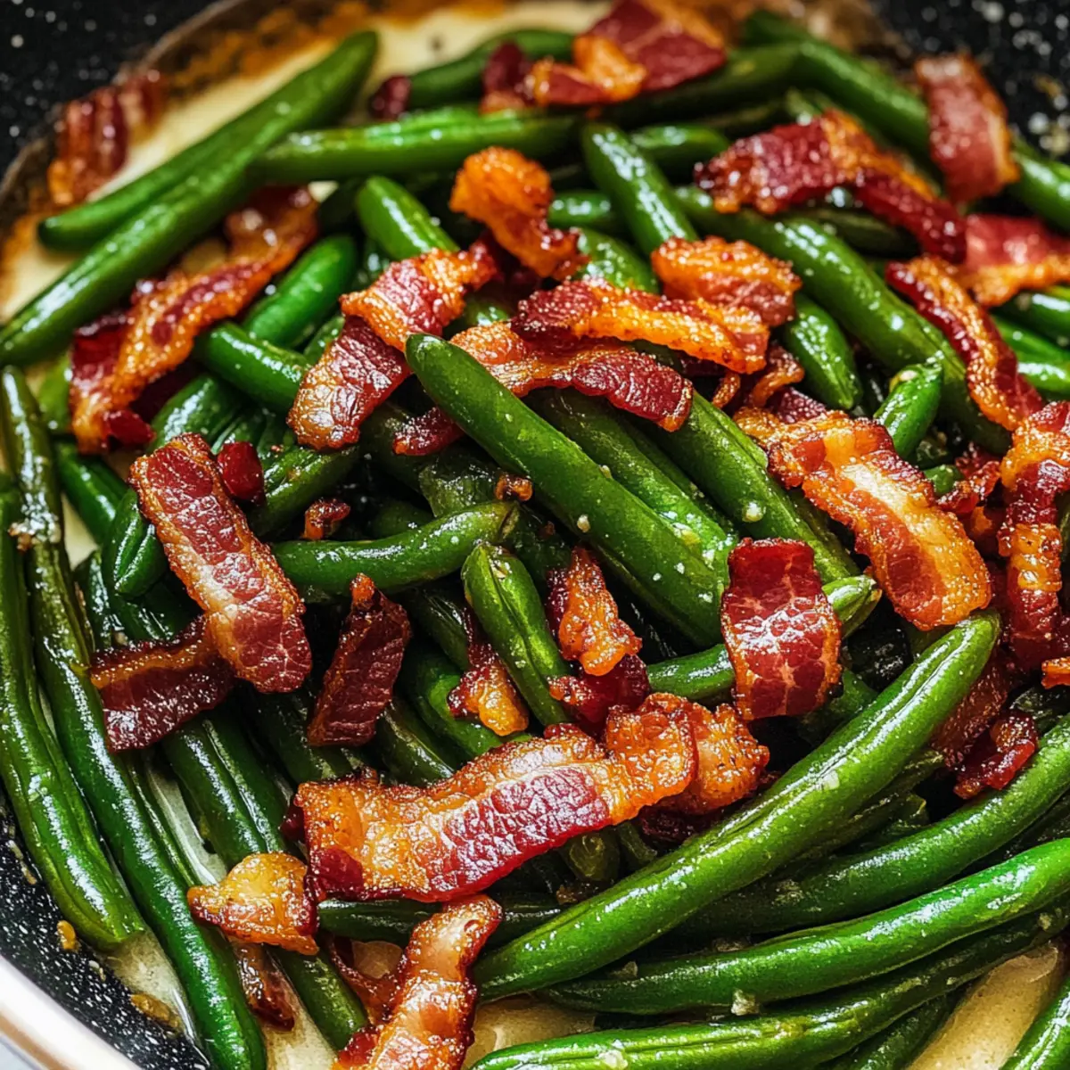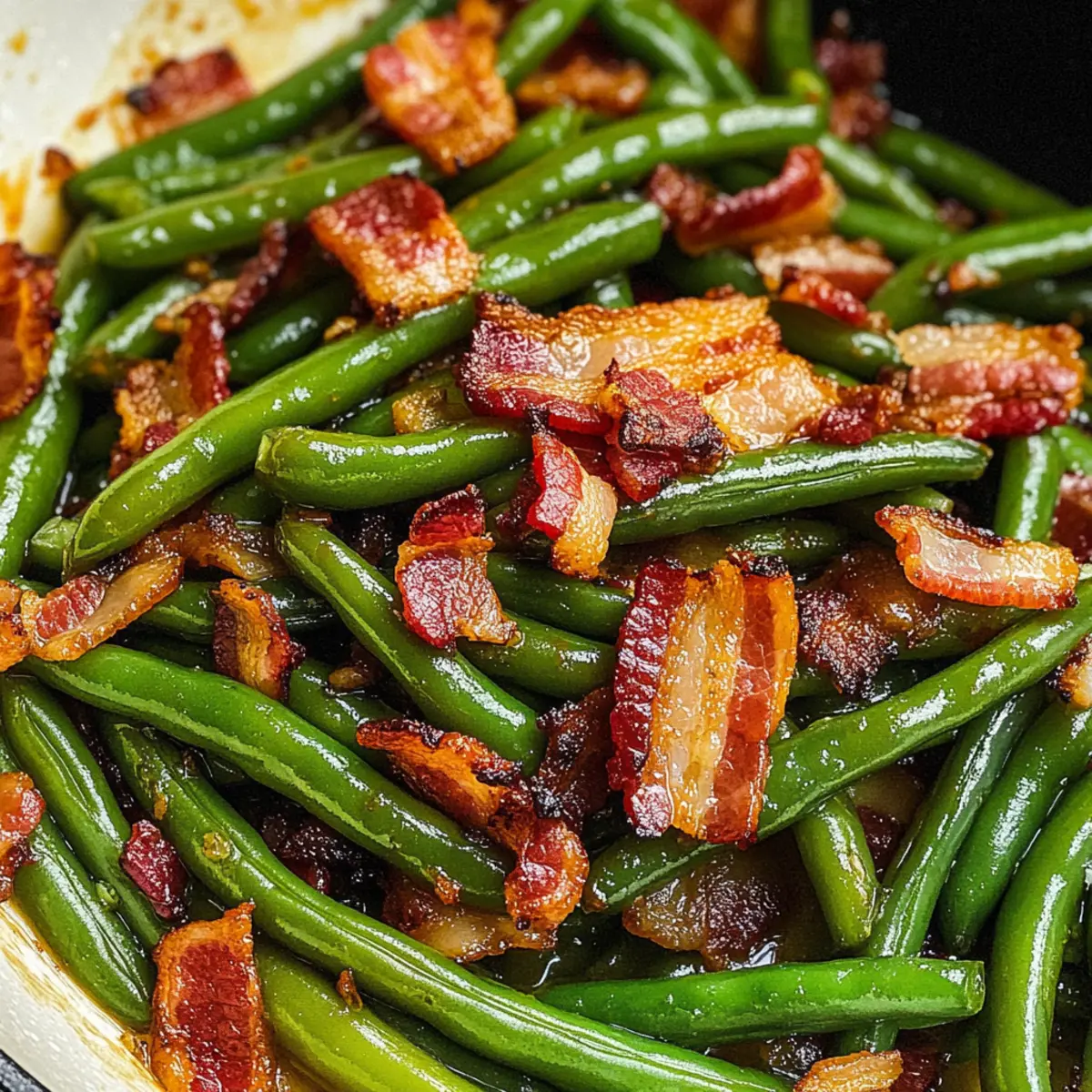 Eine köstliche Kombination aus Süßem und Herzhaftem wird eure Geschmacksknospen definitiv erfreuen: Diese Crack Green Beans mit knusprigem Speck sind das perfekte Rezept für alle, die sich nach einem einfachen und doch beeindruckenden Beilagenklassiker sehnen. In nur wenigen Minuten zubereitet, könnt ihr euch so den Weg zu einem ketofreundlichen Genuss bahnen, der garantiert zum Hit auf jedem Tisch wird. Die knackigen grünen Bohnen vereinen sich mit dem würzigen Aroma von Speck und einem Hauch von Süße, was sie zu einer unwiderstehlichen Ergänzung für euer nächstes Dinner oder Feiertagsessen macht. Habt ihr schon Lust auf etwas ganz Besonderes? Bleibt dran, um herauszufinden, wie ihr diese leckere Köstlichkeit zubereiten könnt! Warum sind diese grünen Bohnen so besonders? Einfachheit: Die Zubereitung ist kinderleicht und erfordert nur wenige Schritte, sodass ihr mehr Zeit für das Genießen habt. Würziger Genuss: Die Kombination aus knusprigem Speck und süßem Aroma bringt euer Geschmackserlebnis auf ein neues Level. Vielseitigkeit: Diese knackigen Bohnen passen zu jedem Gericht – egal, ob zu festlichen Anlässen oder einem herkömmlichen Abendessen. Keto-freundlich: Ihr könnt euch auf eine gesunde Beilage freuen, die gleichzeitig befriedigend und nahrhaft ist. Wenn ihr mehr Ideen für ketofreundliche Rezepte sucht, schaut euch auch unsere ketofreundlichen Rezeptvorschläge an. Crowd-Pleaser: Diese Bohnen sind ein echter Hit bei Familie und Freunden – jeder wird nach dem Rezept fragen! Grünerbsen knacken Zutaten • Frische grüne Bohnen (1 lb) – Hauptzutat, die in der Mitte durchtrennt wird; für eine schnellere Variante können auch Dosengrüne Bohnen verwendet werden. • Speck (½ lb, gehackt) – Sorgt für einen herzhaften, knusprigen Geschmack; für eine kalorienärmere Option kann auch Truthahnspeck verwendet werden. • Speckfett (2 Esslöffel) – Das Kochfett, das den Geschmack verstärkt; bei Verwendung von Truthahnspeck, mit Olivenöl ersetzen. • Gehackter Knoblauch (1 Teelöffel) – Fügt eine aromatische Tiefe hinzu; kann durch 1 Teelöffel Knoblauchpulver ersetzt werden. • Sojasoße (2 Esslöffel) – Bringt einen umami Geschmack; Tamari verwenden für eine glutenfreie Variante. • Brauner Zucker (2 Esslöffel) – Balanciert die herzhaften und salzigen Geschmäcker; zuckerfreie Alternativen halten es ketofreundlich. Genießt die knackigen grünen Bohnen zu Hause und entdeckt, wie einfach es ist, köstliche grünerbsen knacken zuzubereiten! Schritt-für-Schritt-Anleitung für Knackige Grünerbsen mit Bacon Step 1: Speck braten Erhitze eine große Pfanne bei mittlerer Hitze und gib den gehackten Speck hinein. Brate ihn für etwa 8 Minuten, bis er goldbraun und knusprig ist. Verwende eine temperaturbeständige Schaumkelle, um den Speck herauszunehmen und ihn auf Küchenpapier abtropfen zu lassen. Lasse 2 Esslöffel des Speckfetts in der Pfanne, um die Aromen zu intensivieren. Step 2: Grünerbsen sautieren Erhöhe die Temperatur der Pfanne auf mittelhoch und füge die vorbereiteten, frischen grünen Bohnen hinzu. Sautiere die grünen Bohnen für etwa 2 Minuten, bis sie anfangen zu blitzen und eine leuchtende Farbe annehmen. Dies sorgt dafür, dass sie ihren knackigen Biss bewahren und die Sauce später gut aufnehmen. Step 3: Gewürze hinzufügen Sobald die Bohnen blitzen, reduziere die Hitze auf mittel. Gib den gehackten Knoblauch, die Sojasoße und den braunen Zucker zu den Bohnen und vermische alles gut. Decke die Pfanne mit einem Deckel ab und lasse die Bohnen etwa 8 Minuten lang weitergaren, damit sie zart, aber noch etwas knackig bleiben. Bei Verwendung von Dosengrünen Bohnen diesen Schritt auslassen. Step 4: Speck einrühren Nach den 8 Minuten nimm den Deckel ab und rühre die gekochten Speckstücke unter die grünen Bohnen. Lass die Mischung noch kurz auf der Hitze, damit sich die Aromen gut vermischen können. Die Kombination aus dem süß-salzigen Geschmack des Specks und den grünen Bohnen wird einfach unwiderstehlich! Step 5: Servieren Sobald alles gut vermischt und erhitzt ist, nimm die Pfanne vom Herd. Serviere die knackigen grünen Bohnen warm als perfekte Beilage zu deinem Lieblingsgericht. Verwöhne dich und deine Gäste mit diesem köstlichen, ketofreundlichen Rezept der knackigen grünen Bohnen! Expertentipps für knackige Grünerbsen Die richtige Kochzeit: Achte darauf, die grünen Bohnen nicht zu lange zu garen; sie sollten zart, aber trotzdem knackig sein, um ihren Biss zu behalten. Aromatische Ergänzungen: Für zusätzlichen Geschmack kannst du beim Sautieren der Bohnen auch gehackte Zwiebeln oder einen Hauch von Chili hinzufügen. Fettwahl: Wenn du Truthahnspeck verwendest, ersetze das Speckfett durch hochwertiges Olivenöl, um die Aromen zu intensivieren und die Rezepts für die grünerbsen knacken gesund zu halten. Vorsicht beim Süßen: Experimentiere mit verschiedenen Süßungsmitteln, wie zum Beispiel Stevia oder Agavendicksaft, um deine Bohnen ketofreundlich zu halten, ohne auf den süßen Geschmack zu verzichten. Fütterungsvielfalt: Wenn du das Rezept variieren möchtest, kannst du die grünen Bohnen durch andere knackige Gemüse wie Zuckerschoten oder Spargel ersetzen. Vorbereitungen für die Knackigen Grünerbsen mit Bacon Diese Knackigen Grünerbsen mit Bacon sind perfekt für alle, die Zeit sparen möchten! Ihr könnt die frischen grünen Bohnen bis zu 24 Stunden im Voraus vorbereiten, indem ihr sie trimmt und halbiert. Lagert sie in einem praktischen, luftdichten Behälter im Kühlschrank, um die Frische zu bewahren. Auch der Speck kann schon 3 Tage zuvor gebraten und in einem separaten Behälter aufbewahrt werden – so bleibt er knusprig! Wenn es Zeit zum Servieren ist, erhitzt einfach die Bohnen und fügt den Speck sowie die Gewürze hinzu, um ein ebenso leckeres wie schnelles Ergebnis zu erhalten. Diese Vorbereitungen ermöglichen es euch, in der Küche effizient zu arbeiten und dennoch ein köstliches 