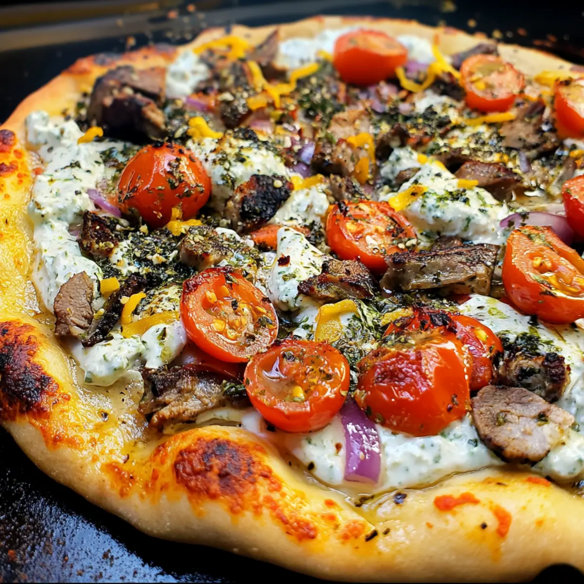 Es war einmal ein regnerischer Abend, als ich Lust auf etwas Gewöhnliches hatte, aber zugleich auch auf einen mediterranen Gaumenschmaus. So entstand die Idee für meine Gyro Pizza mit Tzatziki-Drizzle. Diese kreative Fusion aus klassischer Pizza und griechischen Aromen bringt nicht nur ein Lächeln auf die Gesichter Ihrer Liebsten, sondern macht auch das Kochen zum Kinderspiel. Mit einem knusprigen, goldenen Boden und reichlich Toppings ist diese Pizza nicht nur schnell zubereitet, sondern eignet sich auch hervorragend für ein geselliges Abendessen unter Freunden. Und das Beste? Ihr werdet den unvergesslichen Geschmack von frisch zubereitetem Tzatziki lieben! Seid ihr bereit, eure Geschmacksknospen auf eine aufregende Reise mitzunehmen? Warum ist diese Gyro Pizza ein Hit? Einzigartiger Geschmack: Mit der Kombination aus saftigem Gyro und frischem Tzatziki wird jeder Bissen zum Erlebnis. Einfach zuzubereiten: Diese Rezept ist so unkompliziert, dass es auch Anfängern in der Küche gelingt. Ideal für gesellige Abende: Perfekt zum Teilen – bringt Freunde und Familie zusammen. Vielseitige Toppings: Variiert nach Belieben! Ob zusätzlich Gemüse oder unterschiedliche Käsesorten, die Möglichkeiten sind endlos. Schnell und schmackhaft: In weniger als 1,5 Stunden vom Teig bis zum Genuss – die perfekte Lösung für einen stressfreien Feierabend. Genießt diese geschmackvolle Neuinterpretation der Pizza und entdeckt auch andere fantastische Rezepte auf meiner Seite, wie die tolle Mediterrane Slideshow oder die Tzatziki-Variation! Gyro Pizza mit Tzatziki-Drizzle Zutaten Für den Teig Mehl – Allzweckmehl sorgt für die Struktur; Vollkornmehl kann für eine kräftigere Textur verwendet werden. Schnellhefe – Die Instanthefe ermöglicht eine zügige Teigvorbereitung; normale Hefe kann länger zum Aufgehen benötigen. Salz – Unverzichtbar für den Geschmack und die Balance der Zutaten. Warmes Wasser (~110°F) – Aktiviert die Hefe; darauf achten, dass das Wasser nicht zu heiß ist, um die Hefe nicht zu töten. Olivenöl – Für Feuchtigkeit und Geschmack; kann durch Raps- oder Sonnenblumenöl ersetzt werden. Für die Toppings Gyro-Fleisch – Das Hauptprotein; kann durch Hähnchen oder Rinderfleisch ersetzt werden. Rote Zwiebel – Gibt eine scharfe und knackige Note; Schalotten sind eine mildere Alternative. Cocktailtomaten – Frisch und saftig; normale Tomaten können in dünne Scheiben geschnitten werden. Paprika – Für Süße und Farbe; jede Farbvariante ist möglich oder kann weggelassen werden. Artischockenherzen – Für erdige Noten; sowohl Dosen- als auch Tiefkühlprodukte sind geeignet. Portabella-Pilze – Sorgen für einen umami Geschmack; können durch andere Pilzsorten ersetzt oder weggelassen werden. Frischer Dill – Aromatischer Geschmack für das Tzatziki; Minze oder Petersilie als Alternativen möglich. Zitronensaft – Bringt Frische in die Sauce; Limette kann auch verwendet werden. Für das Tzatziki Griechischer Joghurt – Für Cremigkeit; sour cream kann als Ersatz dienen. Knoblauch – Frisch gehackt sorgt für intensiven Geschmack; Knoblauchpulver ist eine Option. Erleben Sie den einzigartigen Geschmack der Gyro Pizza mit Tzatziki-Drizzle und bringen Sie die Aromen des Mittelmeers direkt in Ihre Küche! Schritt-für-Schritt-Anleitung für Gyro Pizza mit Tzatziki-Drizzle Step 1: Teig zubereiten In einer Schüssel das warme Wasser (etwa 43°C) mit der Schnellhefe vermischen und 10 Minuten stehen lassen, bis es schäumt. In einer großen Rührschüssel Mehl und Salz gut vermengen, dann das Olivenöl und die Hefe-Mischung hinzufügen. Den Teig 10 Minuten durchkneten, bis er glatt und elastisch ist, dann in eine gefettete Schüssel geben und abgedeckt an einem warmen Ort 1 Stunde gehen lassen, bis er sich verdoppelt hat. Step 2: Ofen vorheizen Den Ofen auf die höchste Temperatur mit eingeschlossenem Pizzastein vorheizen. Dies dauert etwa 30 Minuten. Anschließend die Temperatur auf 190°C reduzieren und weitere 30 Minuten warten. Diese Technik sorgt dafür, dass die Gyro Pizza mit Tzatziki-Drizzle einen knusprigen Boden erhält, der wie in einer Pizzeria schmeckt. Step 3: Toppings vorbereiten Die Cocktailtomaten und Artischockenherzen in eine Schüssel geben, mit Olivenöl, Salz und Pfeffer vermengen und auf einem Backblech verteilen. Im Ofen etwa 10 Minuten rösten, bis sie leicht angeschrumpelt und aromatisch sind. Während die Toppings rösten, Joghurt, Dill, Zitronensaft und gehackten Knoblauch in einer separaten Schüssel für das Tzatziki mixen und bis zur Verwendung kühlstellen. Step 4: Pizza belegen Den aufgegangenen Teig auf einer bemehlten Fläche ausrollen, dabei einen Rand lassen. Die Oberfläche mit dem griechischen Marinade bestreichen, bevor das Tzatziki großzügig verteilt wird. Als Nächstes das vorgeröstete Gyro-Fleisch, die Zwiebeln, Paprika und die gebratenen Tomaten gleichmäßig auf dem Teig verteilen. Den Feta darüber streuen, um zusätzlichen Geschmack zu erhalten. Step 5: Backen Die Pizza auf den vorgeheizten Pizzastein legen und 10–15 Minuten backen, bis der Käse geschmolzen und der Rand goldbraun ist. Nach Bedarf den Grill für 5–10 Minuten hinzuschalten, um die Oberseite perfekt zu bräunen. Behalte die Pizza im Auge, damit sie nicht verbrennt. Step 6: Fertigstellen Die fertig gebackene Gyro Pizza mit Tzatziki-Drizzle aus dem Ofen nehmen und mit frischen Gurkenscheiben garnieren. Zum Servieren die restliche Tzatziki-Sauce über die Pizza träufeln, um die mediterranen Aromen zu akzentuieren. Lass die Pizza kurz abkühlen, bevor du sie in Stücke schneidest und genießt! Vorausplanungen für die Gyro Pizza mit Tzatziki-Drizzle Die Gyro Pizza mit Tzatziki-Drizzle ist der perfekte Kandidat für Meal Prep! Beginnen Sie, indem Sie den Teig bis zu 24 Stunden im Voraus zubereiten und ihn nach dem Kneten in Frischhaltefolie im Kühlschrank lagern, um die Frische zu bewahren. Auch die Toppings können Sie vorbereiten: Rösten Sie die 