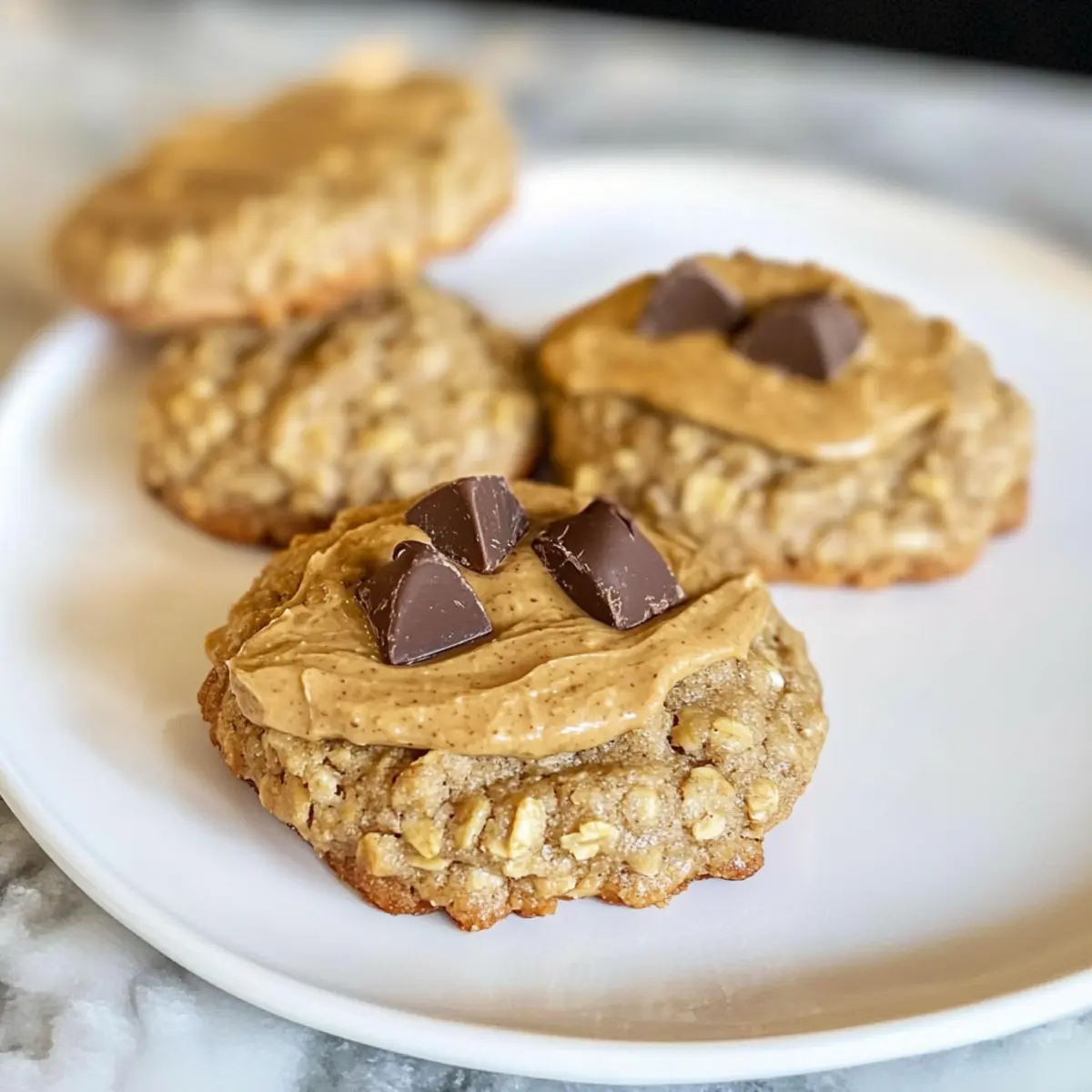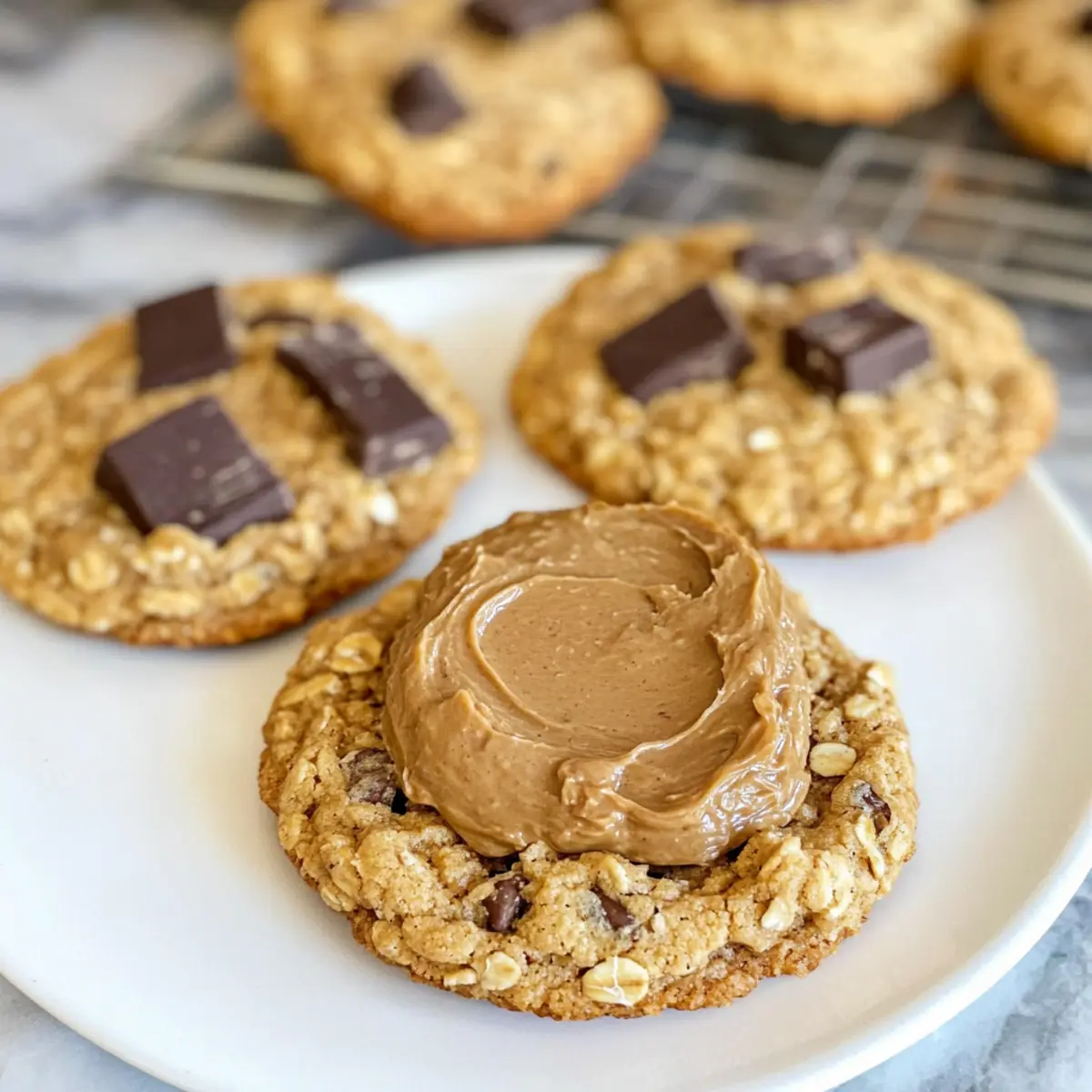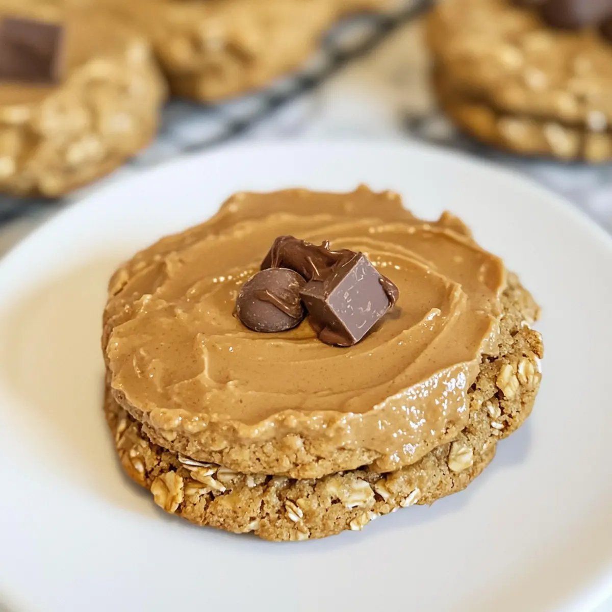 Lass die Kekse kurz auf dem Backblech abkühlen, bevor du 1-2 Esslöffel Biscoff-Kekse-Butter auf jeden Keks streichst. Optional kannst du noch zerbröselte Biscoff-Kekse darüberstreuen. Diese leckere Dekoration verleiht deinen Haferflocken Biscoff Keksen das besondere Extra und sorgt für einen köstlichen Look.