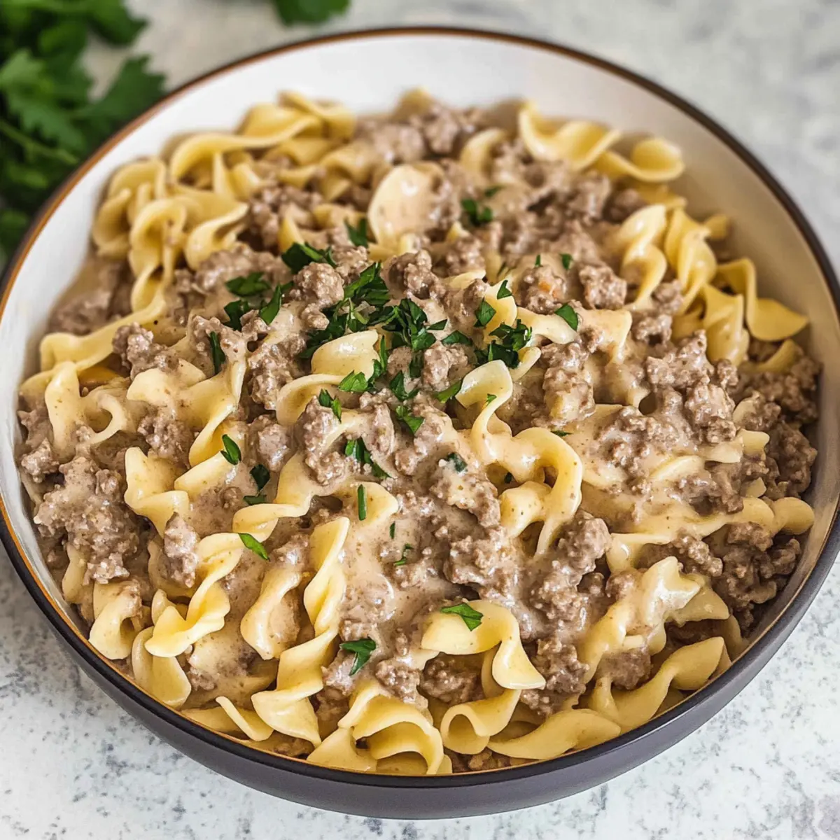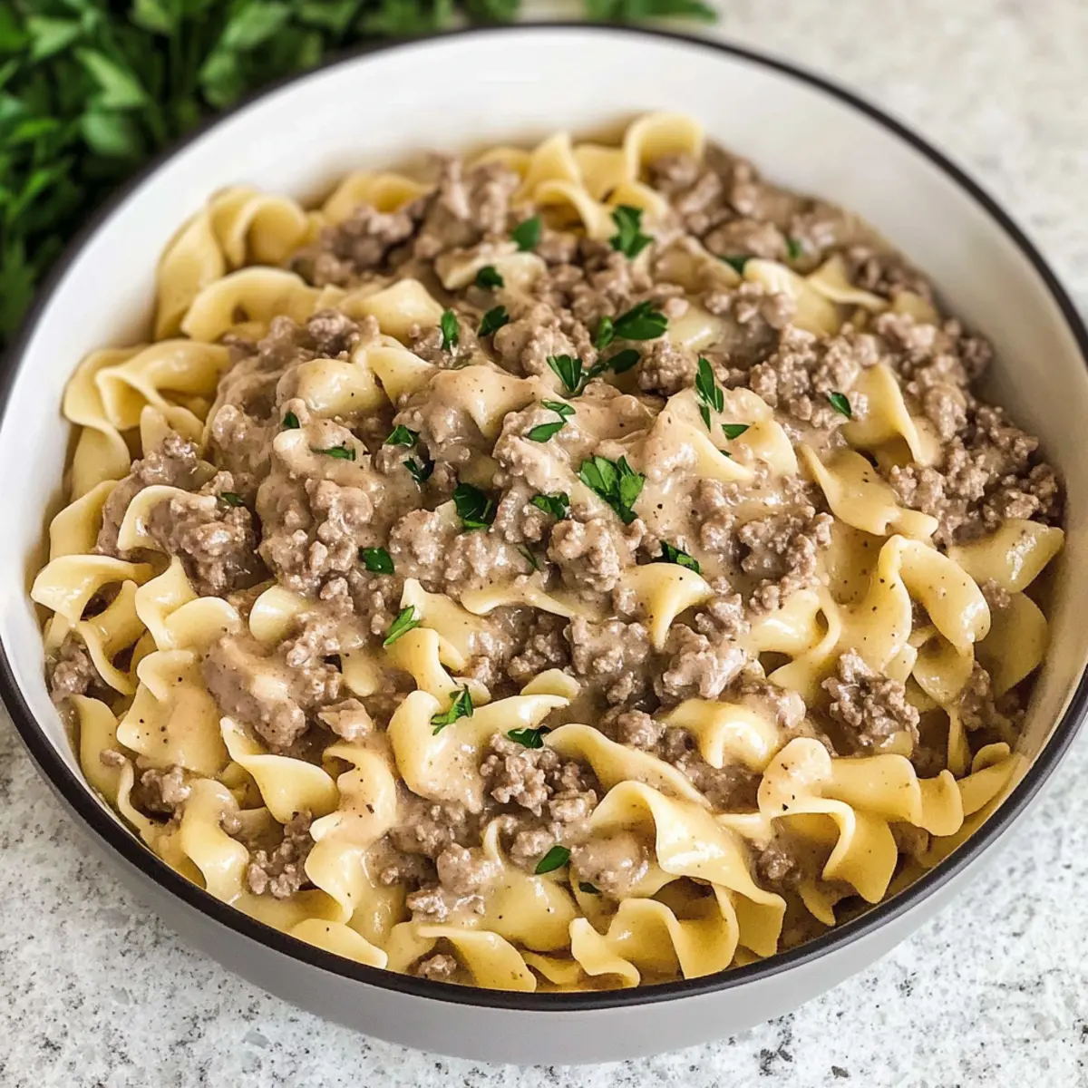 „Könnte ich vielleicht einen Hamburger Stroganoff zaubern?“ hörte ich neulich einen Freund über das Telefon murmeln, während er auf der Suche nach einem schnellen und köstlichen Rezept war. Diese herzliche, seidig-cremige Ausführung bringt die vertrauten Aromen klassischer Familiengerichte direkt auf den Tisch – und das in nur 30 Minuten! Unser Hamburger Stroganoff Rezept ist nicht nur budgetfreundlich, sondern auch ein wahrer Publikumsliebling, der sogar die Kleinsten begeistert. Die Kombination aus saftigem Rinderhack, zarten Nudeln und einer unverwechselbar aromatischen Sauce macht dieses Gericht zum perfekten Comfort Food für hektische Abende. Wer könnte da widerstehen? Lassen Sie uns gemeinsam dieses Familienessen zubereiten, das nicht nur den Magen, sondern auch das Herz erfreut! Warum werden Sie dieses Rezept lieben? Einfachheit: Die Zubereitung ist kinderleicht und benötigt nur grundlegende Kochkenntnisse. Schnell: In nur 30 Minuten steht dieses köstliche Gericht auf dem Tisch – perfekt für hektische Abende. Budgetfreundlich: Mit kostengünstigen Zutaten können Sie eine nahrhafte Mahlzeit für die ganze Familie zaubern. Herzhafter Geschmack: Die Kombination aus Rinderhackfleisch, Champignons und einer cremigen Sauce sorgt für ein unverwechselbares Geschmackserlebnis. Variationsmöglichkeiten: Ob mit Nudeln oder Reis – dieses Rezept ist vielseitig und anpassbar, sodass es immer wieder frisch bleibt. Transformieren Sie Ihr Abendessen mit diesem Hamburger Stroganoff Rezept, das sowohl Kinder als auch Erwachsene begeistert! Hamburger Stroganoff Zutaten • Zutaten: Für das leckere, unkomplizierte Hamburger Stroganoff gibt es einige essentielle Zutaten, die Ihnen helfen, in kürzester Zeit ein köstliches Gericht zuzubereiten. Für die Sauce Rinderhackfleisch – sorgt für eine herzhafte Basis; kann durch Putenhack ersetzt werden für eine leichtere Variante. Zwiebel – fügt süße und aromatische Noten hinzu; frisch gewürfelt verstärkt den Geschmack. Champignons – bringen eine erdige Note ins Spiel; auch andere Pilze sind möglich. Knoblauch – sorgt für zusätzliche Geschmackstiefe; frischer Knoblauch kann für mehr Intensität verwendet werden. Butter – für diebasis der Sauce; kann durch pflanzliches Öl ersetzt werden für eine leichtere Variante. Mehl – für die gewünschte cremige Konsistenz; glutenfreies Mehl kann als Alternative genutzt werden. Rinderbrühe – verleiht dem Gericht einen intensiven Geschmack; Hühnerbrühe ist eine leichtere Option. Senf – fügt eine subtile Schärfe hinzu; Dijon-Senf verstärkt die Aromen. Sauerrahm – sorgt für Cremigkeit und einen Hauch von Säure; griechischer Joghurt ist eine gesündere Alternative. Für die Beilage Salz & Pfeffer – das A und O der Würze; verwenden Sie frischen schwarzen Pfeffer für den besten Geschmack. Nudeln oder Reis – die perfekte Grundlage für das Stroganoff; breite Eiernudeln sind besonders lecker in Kombination. Tauchen Sie ein in die Welt des Hamburger Stroganoff Rezept, das nicht nur schnell und einfach, sondern auch ein wahrer Genuss ist! Schritt-für-Schritt-Anweisungen für Hamburger Stroganoff Rezept Step 1: Butter erhitzen Erhitzen Sie zwei Esslöffel Butter in einer großen beschichteten Pfanne bei mittlerer Hitze. Warten Sie, bis die Butter geschmolzen ist und leicht schäumt, was etwa eine Minute dauert. Achten Sie darauf, dass die Butter nicht braun wird, da dies den Geschmack des Hamburger Stroganoff beeinträchtigen könnte. Step 2: Zwiebeln und Knoblauch anbraten Fügen Sie die gewürfelte Zwiebel und die gehackten Knoblauchzehen hinzu und braten Sie sie, bis sie weich und leicht goldbraun sind, etwa 3-4 Minuten. Rühren Sie gelegentlich um, um ein Anbrennen zu verhindern. Diese aromatischen Zutaten sind die perfekte Grundlage für Ihr Hamburger Stroganoff Rezept. Step 3: Rinderhackfleisch anbraten Geben Sie 500g Rinderhackfleisch in die Pfanne und braten Sie es an, bis es gleichmäßig gebräunt ist, was ungefähr 5-7 Minuten in Anspruch nimmt. Stellen Sie sicher, dass das Fleisch gut durchgegart ist und keine rosa Stellen mehr sichtbar sind. Dies sorgt für eine sichere und schmackhafte Grundlage für Ihr Gericht. Step 4: Champignons hinzufügen Fügen Sie die 250g geschnittenen Champignons in die Pfanne hinzu und braten Sie sie zusammen mit dem Rinderhackfleisch für weitere 4-5 Minuten. Die Champignons sollten weich werden und ihre Flüssigkeit abgeben. Dadurch erhält das Hamburger Stroganoff Rezept eine zusätzliche aromatische Tiefe. Step 5: Mehl einstreuen Streuen Sie zwei Esslöffel Mehl gleichmäßig über die Mischung und rühren Sie gut um, um alles zu vermischen. Kochen Sie die Mischung für etwa 2 Minuten, bis das Mehl leicht gebräunt ist. Dies wird helfen, die Sauce zu verdicken und eine cremige Konsistenz zu erzielen. Step 6: Rinderbrühe hinzufügen Gießen Sie 400ml Rinderbrühe langsam in die Pfanne und bringen Sie die Mischung zum Kochen. Rühren Sie ständig um, um Klumpen zu vermeiden, und lassen Sie alles für etwa 3-4 Minuten köcheln, bis die Sauce anfängt einzudicken. Der herzhafte Geschmack der Brühe wird das Hamburger Stroganoff Rezept perfekt abrunden. Step 7: Sauerrahm und Senf einrühren Reduzieren Sie die Hitze und fügen Sie 200ml Sauerrahm und 1 Teelöffel Senf hinzu. Rühren Sie alles gut um und lassen Sie die Sauce für weitere 2-3 Minuten leicht köcheln, bis sie cremig ist und gut kombiniert. Achten Sie darauf, die Sauce nicht zum Kochen zu bringen, damit der Sauerrahm nicht gerinnt. Step 8: Mit Salz und Pfeffer abschmecken Schmecken Sie die Sauce mit Salz und frisch gemahlenem Pfeffer ab, um die Aromen perfekt auszubalancieren. Passen Sie die Gewürze nach Ihrem Geschmack an und rühren Sie nochmals um. Dies gibt dem Hamburger Stroganoff Rezept den letzten Schliff und macht es wunderbar geschmackvoll. Step 9: Nudeln oder Reis kochen Kochen Sie in der Zwischenzeit 250g Ihrer bevorzugten Nudeln oder Reis nach Pac
