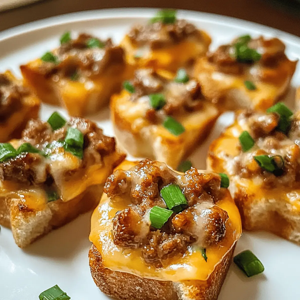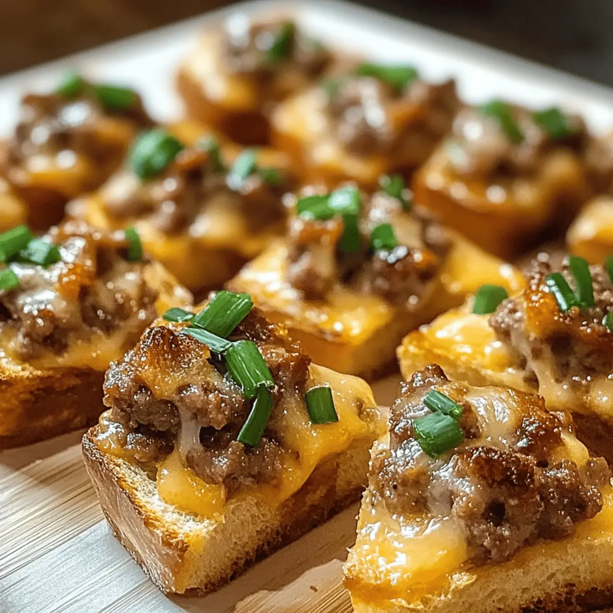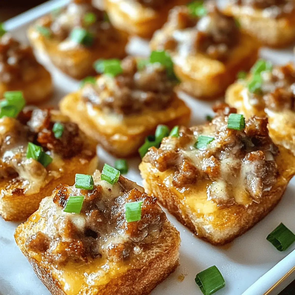 Hast du schon einmal die unwiderstehliche Kombination aus würziger Wurst und cremigem Käse probiert? Bei den Hanky Panky Appetizern wirst du garantiert ins Schwärmen geraten! Diese köstlichen Happen sind nicht nur einfach zuzubereiten, sondern auch unglaublich vielseitig, was sie ideal für jede Art von Feier macht – sei es ein geselliger Abend mit Freunden oder ein festliches Feiertagsessen. Mit minimalem Aufwand zauberst du ein Maximum an Geschmack und verwöhnst deine Gäste mit diesen warmen, knusprigen Leckerbissen. Unglaublich oder? Lassen wir uns überraschen, wie viele zusätzliche Variationen dir einfallen werden! Warum solltest du Hanky Panky lieben? Einfachheit: Die Zubereitung ist kinderleicht – perfekt für Anfänger und erfahrene Köche! Vielseitigkeit: Passen Sie die Zutaten ganz nach Ihrem Geschmack an, sei es mit scharfen Jalapeños oder einer anderen Käsesorte. Aromatischer Genuss: Die Kombination aus würziger Wurst und cremigem Käse sorgt für einen einzigartigen Geschmack, der niemanden kalt lässt. Perfekte Häppchen: Ideal für Partys – die kleinen Bites sind ein echter Publikumsliebling und garantieren, dass sich deine Gäste um die letzte Portion reißen! Entdecke auch die knackigen Serviervorschläge für ein unvergessliches Erlebnis und überrasch deine Gäste mit kreativen Variationen! Hanky Panky Zutaten Die perfekte Mischung für unvergessliche Appetizer! Für die Füllung Hackfleisch – sorgt für den herzhaften Geschmack; du kannst auch Truthahn- oder Hähnchenhack für eine leichtere Variante verwenden. Frischkäse – verbindet die Füllung und sorgt für Cremigkeit; achte darauf, dass er weich ist, damit er sich gut vermischen lässt. Geriebener Cheddar – verleiht einen kräftigen, würzigen Geschmack; wenn du es schärfer magst, probiere Pfefferjack. Für die Basis Französisches Brot – dient als Grundlage für die Füllung und sorgt für eine knusprige Textur; als Alternative eignen sich Mini-Tartschalen für eine besondere Präsentation. Für die Garnitur Frühlingszwiebeln – bringen Farbe und Frische; optional kannst du sie durch Schnittlauch ersetzen oder ganz weglassen. Mit diesen Hanky Panky Zutaten bist du bereit, ein köstliches und einfach zuzubereitendes Gericht zu kreieren, das deine Gäste begeistern wird! Schritt-für-Schritt-Anleitung für leckere Hanky Panky Appetizer Step 1: Ofen vorheizen Heize den Ofen auf 175°C vor und lege ein Backblech mit Backpapier aus. Dies sorgt dafür, dass deine Hanky Panky Appetizer gleichmäßig gebacken werden und nicht ankleben. Während der Ofen aufheizt, kannst du die Vorbereitungen für die Füllung treffen. Step 2: Wurst anbraten Erhitze eine Pfanne bei mittlerer Hitze und brate das Hackfleisch an, bis es gleichmäßig gebräunt ist, etwa 6-8 Minuten. Achte darauf, dass die Wurst gut durchgegart ist und das überschüssige Fett abgelassen wird, damit die Füllung nicht zu fettig wird. Dies ist der Schlüssel zu einer herzhaften und köstlichen Füllung für deine Hanky Panky Appetizer. Step 3: Käse Mischung Reduziere die Hitze und füge den weich gewordenen Frischkäse hinzu. Rühre, bis er vollständig geschmolzen und cremig ist – dies dauert ungefähr 2-3 Minuten. Nun kannst du den geriebenen Cheddar hinzufügen und alles gut vermengen, bis eine homogene Masse entsteht. Diese köstliche Mischung wird deine Nachos unwiderstehlich machen! Step 4: Füllung auf das Brot Schneide das französische Brot in Scheiben und verteile die würzige Wurst-Käse-Mischung großzügig auf jeder Scheibe. Die Füllung sollte schön dick aufgetragen werden, damit die Hanky Panky Appetizer beim Backen ihre köstliche Form behalten. Bereite dich auf die knusprige Textur und den geschmolzenen Käse vor! Step 5: Backen Backe die belegten Brotscheiben im vorgeheizten Ofen für 15-20 Minuten. Achte darauf, dass die Oberfläche goldbraun wird und die Käseschicht schön blubbert. Dies zeigt, dass deine Hanky Panky Appetizer perfekt durchgebacken sind und bereit, serviert zu werden. Step 6: Garnieren und Servieren Nehme die Appetizer aus dem Ofen und garniere sie mit gehackten Frühlingszwiebeln, um eine frische Note hinzuzufügen. Serviere die warmen Hanky Panky Appetizer umgehend, damit deine Gäste sie in ihrer knusprigen, köstlichen Form genießen können. Lass die appetitlichen Genießer nicht lange warten! Expertentipps für die besten Hanky Panky Appetizer Raumtemperatur: Stelle sicher, dass der Frischkäse Zimmertemperatur hat. So lässt er sich besser mit der Wurst vermischen und wird cremiger. Fett ablassen: Achte darauf, das überschüssige Fett nach dem Anbraten der Wurst abzugießen. Das verhindert, dass die Füllung zu fettig wird und sorgt für eine bessere Konsistenz. Backzeit im Blick: Lass die Appetizer nicht aus den Augen! Eine optimale Goldbraun-Färbung zeigt an, dass sie perfekt gebacken sind. Zu langes Backen kann sie austrocknen. Käsevariationen: Experimentiere mit unterschiedlichen Käsesorten, um deine Hanky Panky Appetizer noch abwechslungsreicher und geschmacklich interessanter zu gestalten. Frische Garnitur: Frühlingszwiebeln fügen nicht nur Farbe hinzu, sondern auch einen frischen Geschmack. Vergiss nicht, sie frisch zu hacken und kurz vor dem Servieren zu streuen! Hanky Panky Variationen und Alternativen Lass deiner Kreativität freien Lauf und passe die Hanky Panky Appetizer nach deinem Geschmack an – die Möglichkeiten sind endlos! Eine andere Wurst: Verwende italienische Wurst oder Chorizo für eine würzige Note, die jedem Bissen ein neues Flair verleiht. Die Auswahl der Wurst kann den gesamten Charakter des Gerichts verändern. Käse-Mix: Experimentiere mit Gouda oder Feta für interessante Geschmacksvariationen. Gouda bietet eine süßliche Note, während Feta eine salzige Würze hinzufügt, die lecker ist! Würzige Variante: Füge gehackte Jalapeños oder Peperoni für extra Schärfe hinzu. Ein Hauch von Schärfe kann die Geschmacksknospen aufregend anregen und 