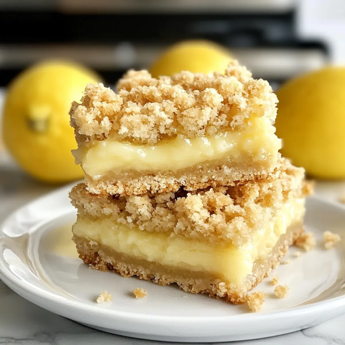 Hausgemachte Zitronenkrümelriegel mit cremiger Zitronenfüllung, buttrigem Boden und krümeligem Topping – perfekt für jede Zusammenkunft.