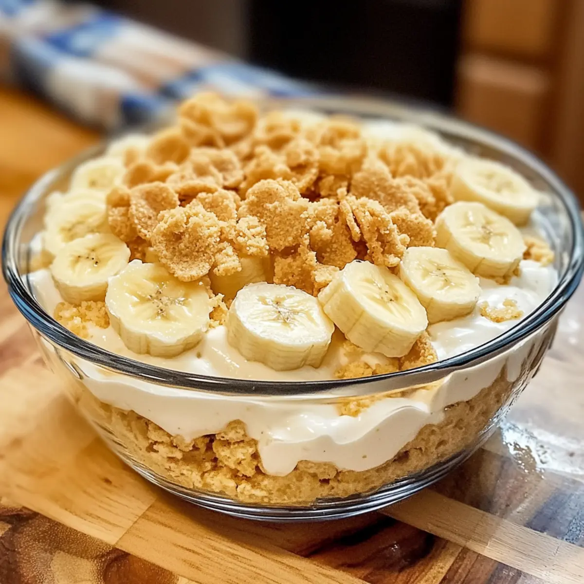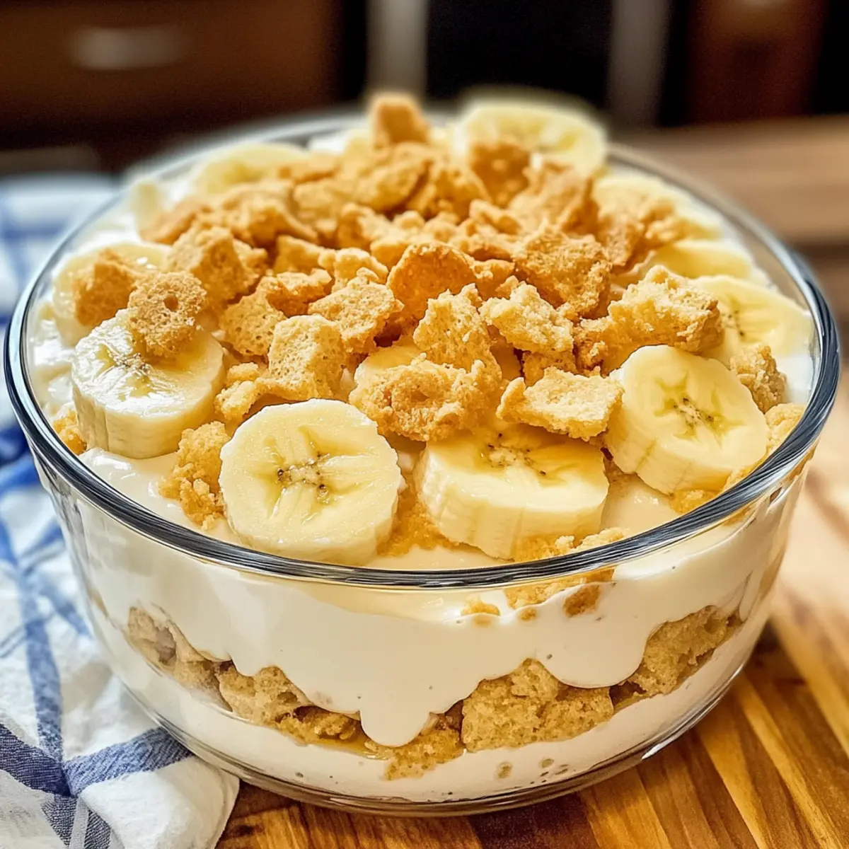 • Final Touch: Streue die zerbröselten Vanillewaffeln erst kurz vor dem Servieren über den Pudding, um den Crunch zu bewahren – ein Muss für den perfekten hausgemachten Bananenpudding!