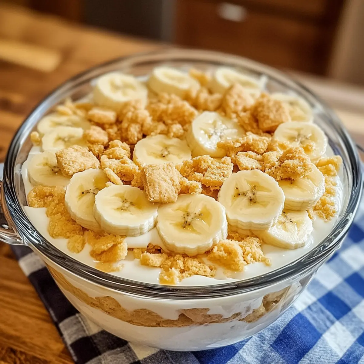 • Frische Deko: Füge die Bananen und die zerbröselten Waffeln erst kurz vor dem Servieren hinzu, damit sie frisch und knusprig bleiben, wodurch der hausgemachte Bananenpudding sein volles Potenzial entfalten kann.
