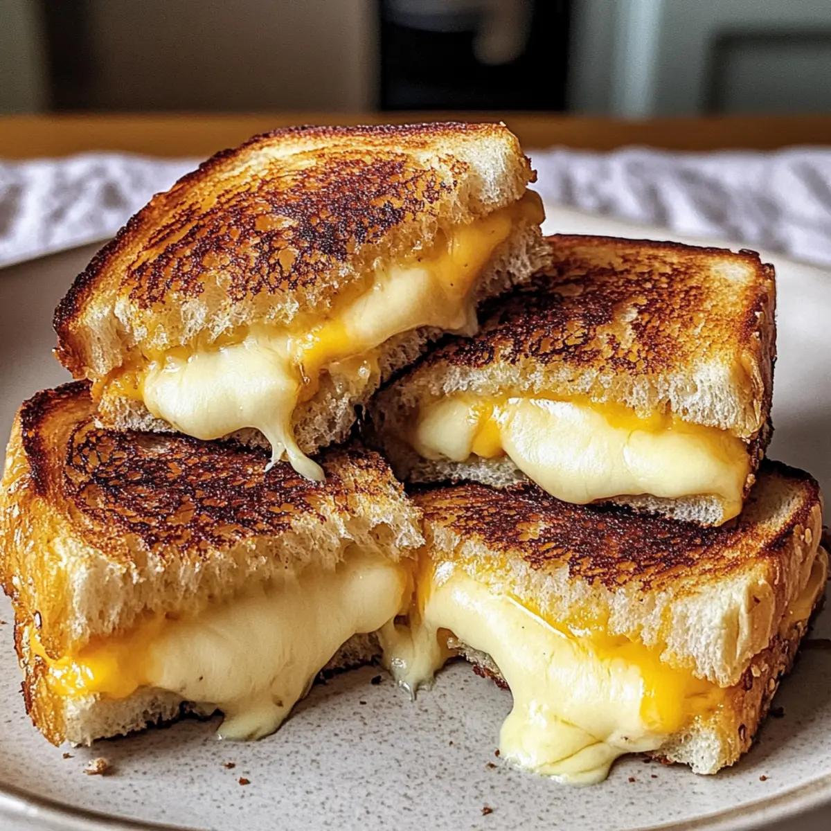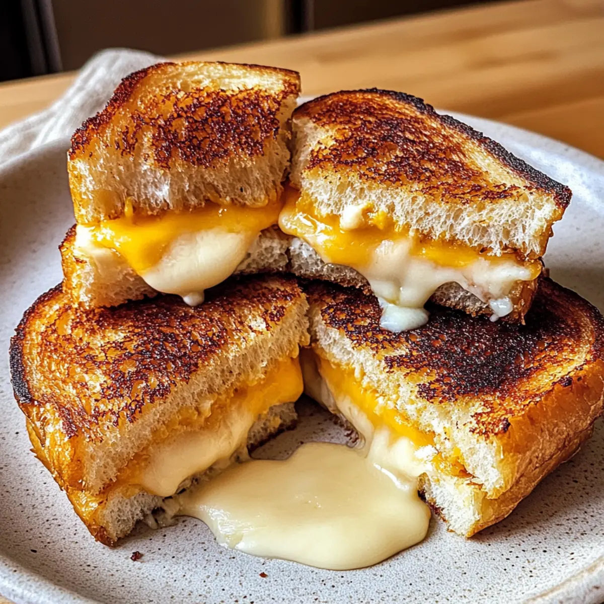 • Gewürze: Füge einen Hauch von Knoblauchpulver oder Chili-Flocken zum Butter-Mix hinzu, um dem Grillkäse eine angenehme Würze zu verleihen. Ein kleiner Kick, der den Genuss steigert!