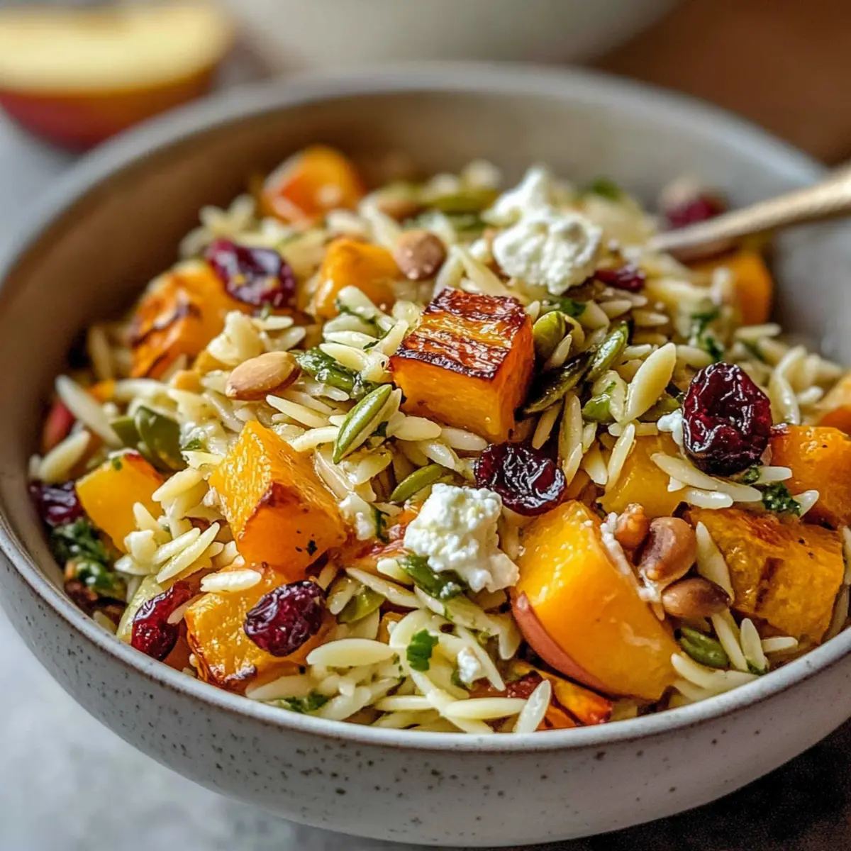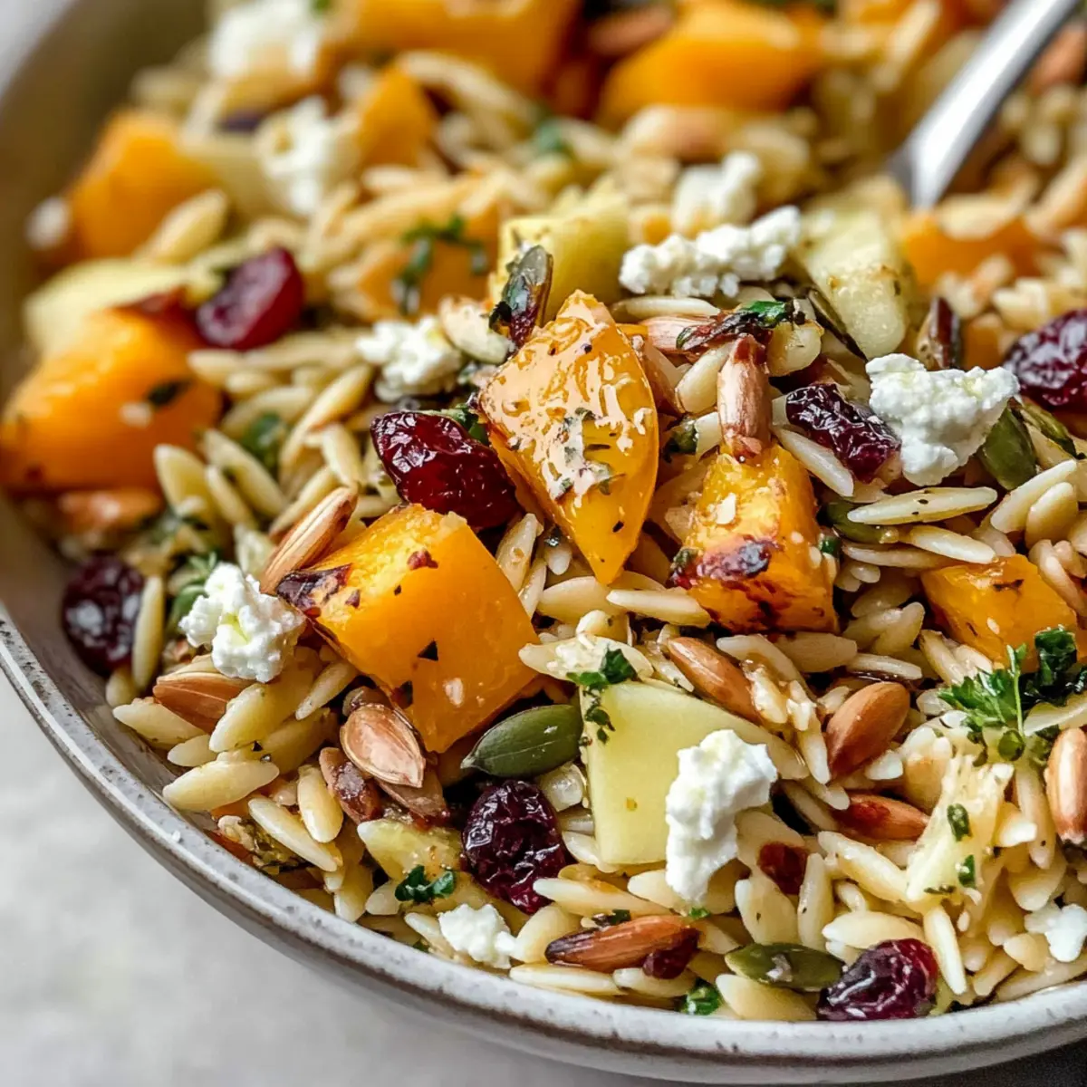 Wenn die ersten Blätter fallen und die Luft frisch und klar wird, ist es an der Zeit, die Küche mit warmen, herzlichen Aromen zu füllen. Der Herbsternte Orzo Salat mit Ahornvinaigrette bringt die besten Geschmäcker dieser Jahreszeit zusammen: nussiges Orzo, zarte Kürbisstücke und knackige Äpfel vereinen sich in einem bunten Fest der Aromen. Dieses Rezept ist nicht nur eine Augenschmaus, sondern auch perfekt für jede Gelegenheit – sei es ein geselliges Beisammensein, ein Sonntagsessen oder als köstliche Beilage zu deinem Grillgericht. Zudem ist der Salat unglaublich vielseitig und kann ganz leicht an verschiedene Ernährungsbedürfnisse angepasst werden, sogar glutenfrei zubereitet werden! Bist du bereit, diese herbstliche Geschmacksexplosion auszuprobieren? Warum ist dieser Herbsternte Orzo Salat besonders? Vielfalt, die begeistert: Dieser Herbsternte Orzo Salat ist nicht nur köstlich, sondern auch überraschend anpassbar – ob glutenfrei oder vegetarisch, er trifft jeden Geschmack! Herzhafte Aromen: Die Kombination aus nussigem Orzo, süßem Kürbis und knackigen Äpfeln ergibt ein Geschmackserlebnis, das deine Sinne verzaubert. Einfach und schnell: Mit wenigen, frischen Zutaten bietet dieses Rezept eine unkomplizierte Zubereitung, ideal für vielbeschäftigte Tage. Perfekte Präsentation: Die lebhaften Farben und Texturen machen diesen Salat zu einem echten Hingucker auf jedem Tisch, ideal für Feste oder einladende Abende. Resteverwertung: Dieser Salat schmeckt nicht nur frisch, sondern verbessert sich sogar, wenn er im Kühlschrank durchzieht – also ideal für Meal Prep! Finde auch andere leckere Rezepte wie unseren Erdbeer Salat Feta oder den Italienischen Hähnchen Salat, die perfekt zur Saison passen. Herbsternte Orzo Salat Zutaten • Mit diesen Zutaten zaubert ihr einen unwiderstehlichen Herbsternte Orzo Salat! Für den Salat Orzo Pasta – bildet die herzliche Grundlage des Salats; glutenfreie Varianten aus Reis oder Mais sind ebenfalls erhältlich. Butternut Kürbis – bringt Süße und Textur; unbedingt bis zur Karamellisierung rösten, um den besten Geschmack zu erzielen. Rosenkohl – sorgt für den Crunch; dünn geschnitten und geröstet, um eine fade Note zu vermeiden. Rote Zwiebel – fügt Schärfe und Süße hinzu; leicht geröstet für eine harmonische Geschmacksintegration. Apfel – bietet Frische und Knackigkeit; keine speziellen Substitutionen erforderlich. Getrocknete Cranberries – liefern eine süß-säuerliche Note; bei Bedarf können Rosinen als Ersatz dienen. Kürbiskerne – bieten Crunch und Nährstoffe; andere Nüsse sind eine gute Variante. Ziegenkäse – fügt Cremigkeit hinzu; optional, aber empfehlenswert; kann weggelassen werden für eine milchfreie Version. Für das Ahorn-Dressing Balsamico-Essig – sorgt für eine ausgewogene Säure; ideal für die Aromatisierung des Dressings. Olivenöl – bringt gesunde Fette; das hochwertige Öl macht einen großen Unterschied im Geschmack. Dijon-Senf – hilft beim Emulgieren des Dressings; sorgt für eine feine Geschmackstiefe. Ahornsirup – fügt eine süße Note hinzu und harmoniert wunderbar mit den anderen Aromen; eine köstliche Beigabe im Herbsternte Orzo Salat. Knoblauchpulver – für einen sanften Geschmack; frisch gehackter Knoblauch kann auch verwendet werden. Wasser – zur Verdünnung des Dressings nach Geschmack; für die gewünschte Konsistenz. Mit dieser köstlichen Zutatenliste bist du bereit, einen unvergesslichen Herbsternte Orzo Salat zu kreieren! Schritt-für-Schritt-Anleitung für den Herbsternte Orzo Salat Schritt 1: Orzo kochen Koche die Orzo-Pasta gemäß den Anweisungen auf der Verpackung in einem großen Topf mit leicht gesalzenem Wasser, bis sie al dente ist, etwa 8-10 Minuten. Achte darauf, gelegentlich zu rühren, um ein Ankleben zu verhindern. Sobald die Pasta fertig ist, abgießen und leicht abkühlen lassen, während du die anderen Zutaten vorbereitest. Schritt 2: Gemüse rösten Heize den Ofen auf 200 °C vor. Breite die gewürfelten Stücke von Butternut-Kürbis, die geschnittene rote Zwiebel und die dünn geschnittenen Rosenkohlblätter auf einem Backblech aus. Besprühe das Gemüse leicht mit Avocadoöl und bestreue es mit einer Prise Salz. Röste das Gemüse für 20-25 Minuten, bis es zart und goldbraun karamellisiert ist. Lasse das Gemüse danach vollständig abkühlen. Schritt 3: Dressing zubereiten In einer kleinen Schüssel vermischst du Balsamico-Essig, Olivenöl, Dijon-Senf, Ahornsirup, Knoblauchpulver und Wasser. Schlage alle Zutaten kräftig mit einem Schneebesen durch, bis eine homogene, cremige Emulsion entsteht. Schmecke das Dressing mit einer Prise Salz ab, um die Aromen perfekt auszubalancieren. Schritt 4: Zutaten kombinieren In einer großen Schüssel gibst du die abgekühlte Orzo-Pasta, das geröstete Gemüse und das frisch zubereitete Ahorn-Dressing. Vermische alles vorsichtig mit einem großen Löffel, sodass die Pasta gleichmäßig mit dem Dressing überzogen wird und die Aromen gut verteilt sind. Schritt 5: Ziegenkäse hinzufügen Lasse den Salat auf Raumtemperatur abkühlen, bevor du den zerbröckelten Ziegenkäse darüberstreust. Du kannst den Käse entweder gleichmäßig auf der Oberfläche verteilen oder vorsichtig unter den Salat heben, je nach Vorliebe. Schritt 6: Servieren oder lagern Serviere den Herbsternte Orzo Salat sofort für einen frischen Genuss oder stelle ihn in den Kühlschrank, damit die Aromen miteinander verschmelzen. Er kann bis zu vier Tage in einem luftdichten Behälter aufbewahrt werden. Bei Bedarf noch etwas Dressing hinzufügen, bevor du ihn servierst. Aufbewahrungstipps für den Herbsternte Orzo Salat Für den Raumtemperatur: Halte den Salat nicht länger als 2 Stunden bei Raumtemperatur, um die Frische und Sicherheit zu gewährleisten. Im Kühlschrank: Du kannst den Herbsternte Orzo Salat bis zu 4 Tage in einem luftdichten Behälter im Kühlschrank aufbewahren. Das Dressing sorgt dafür, dass die Aromen g